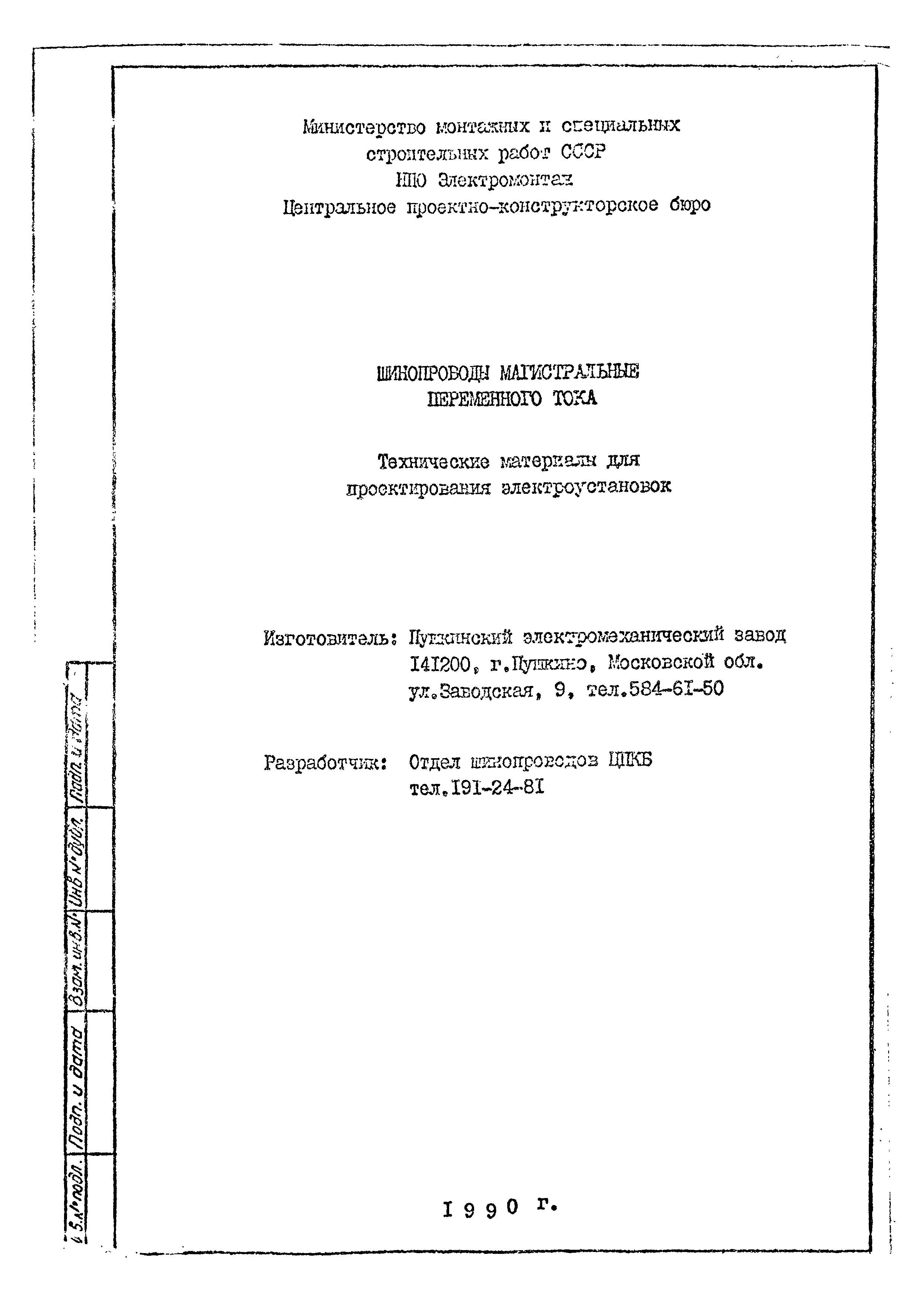 Шинопроводы магистральные переменного тока. Технические материалы для проектирования электроустановок| Статус: | информационный документ | | Название рус.: | Шинопроводы магистральные переменного тока. Технические материалы для проектирования электроустановок | | Дата добавления в базу: | 01.01.2021 | | Дата актуализации: | 01.01.2021 | | Разработан: | Отдел шинопроводов ЦПКБ