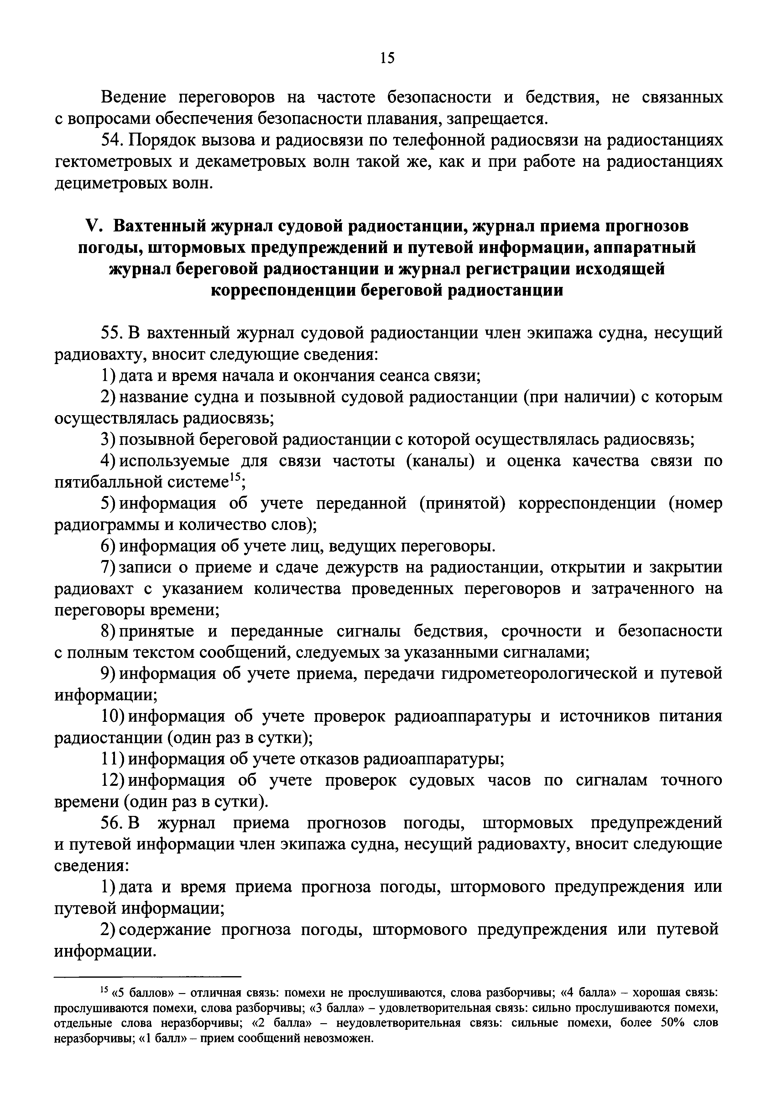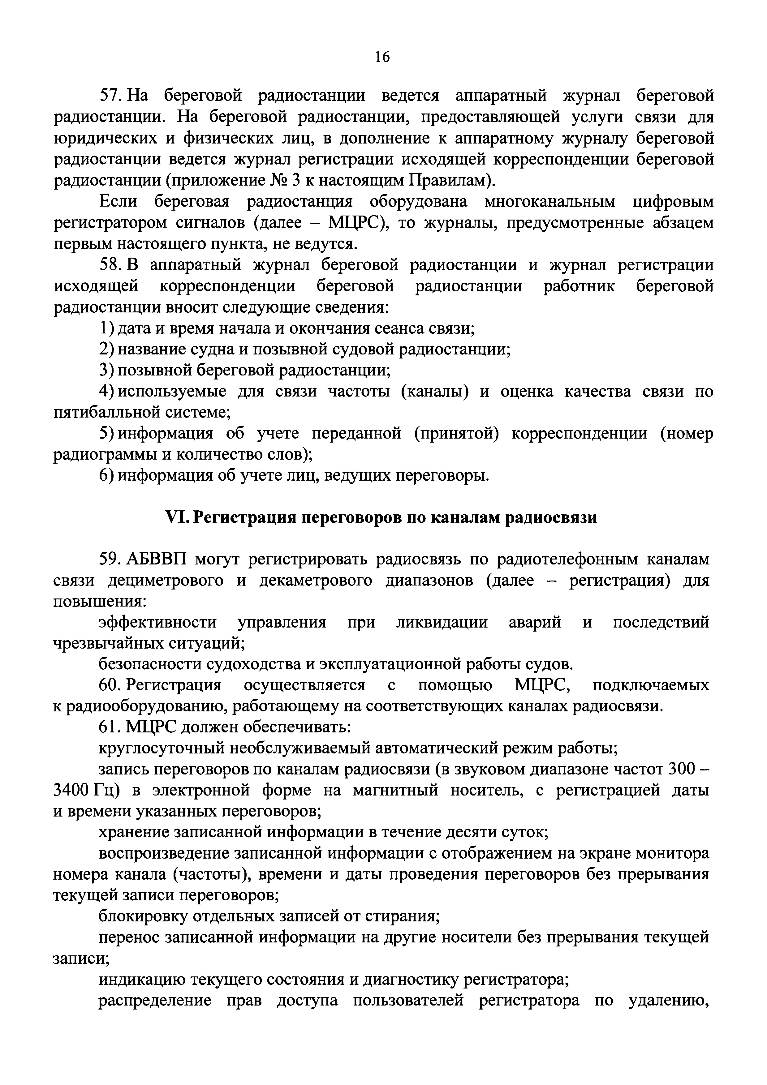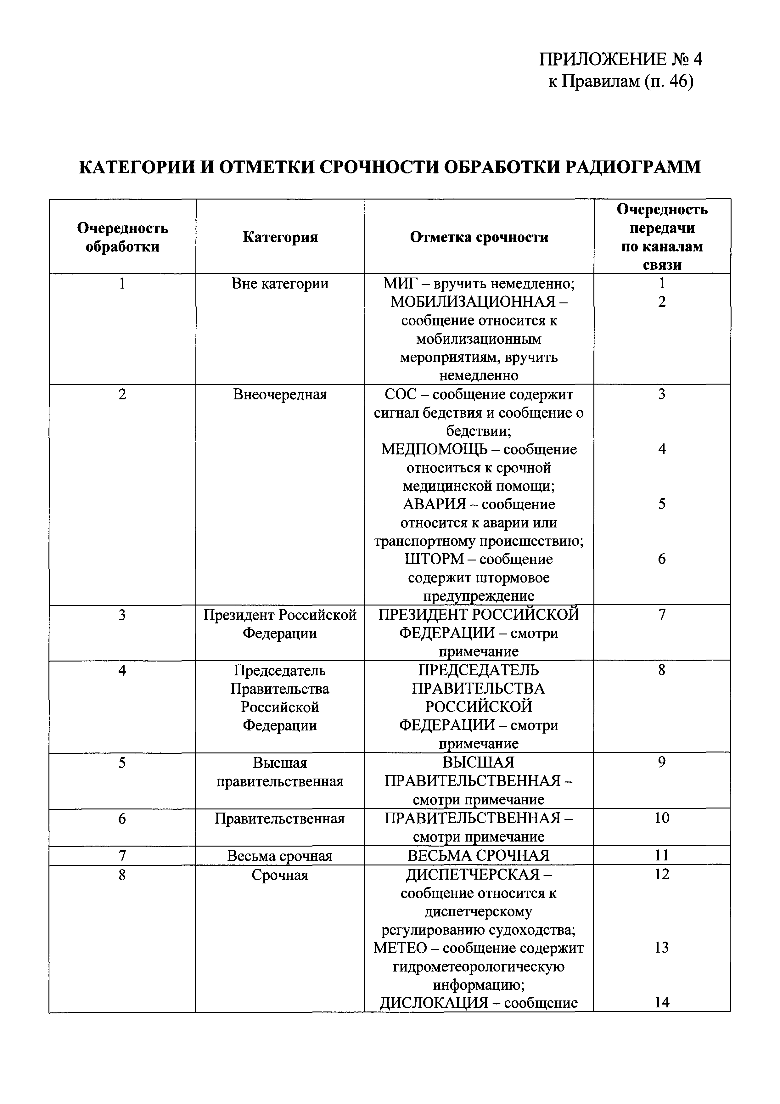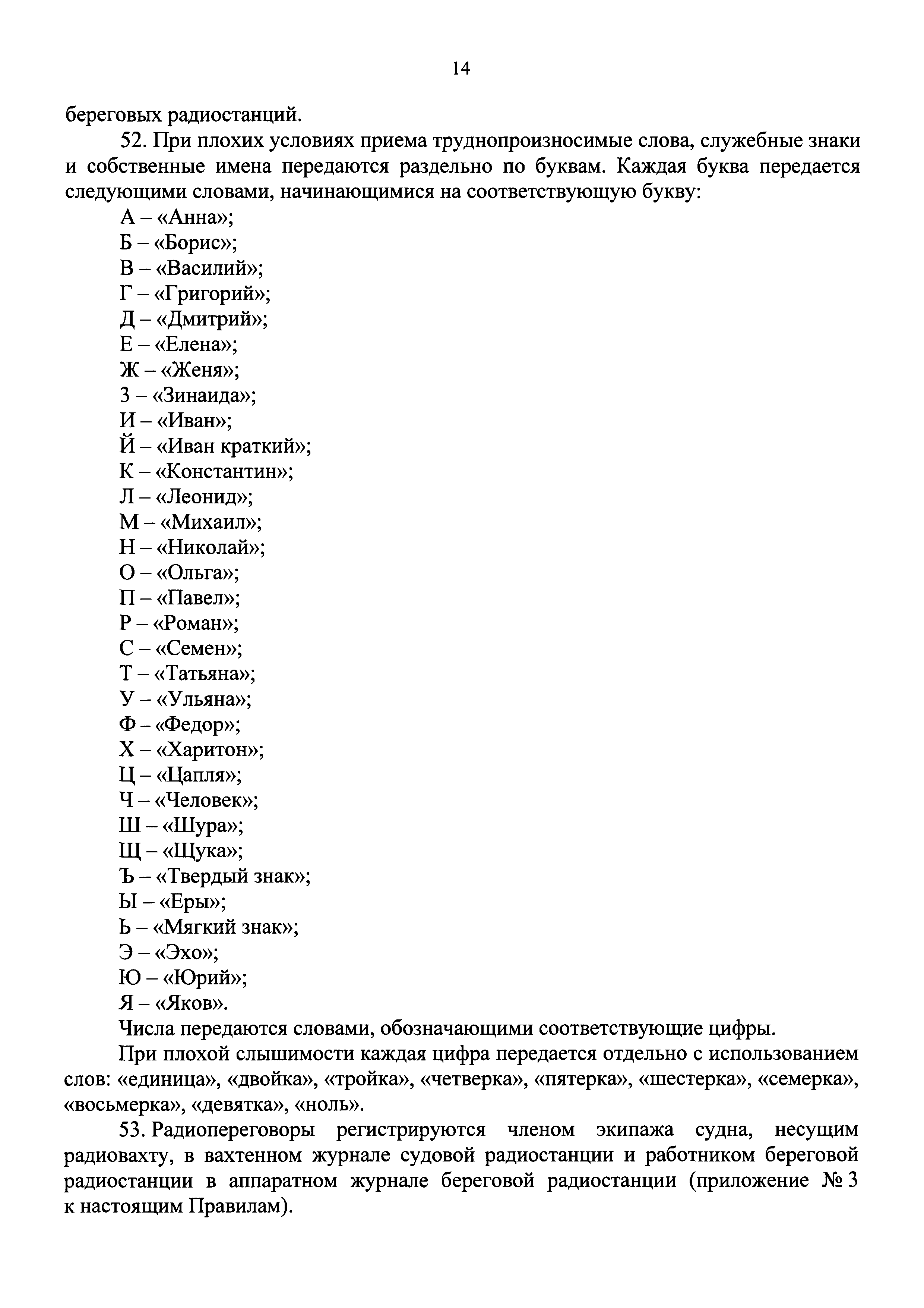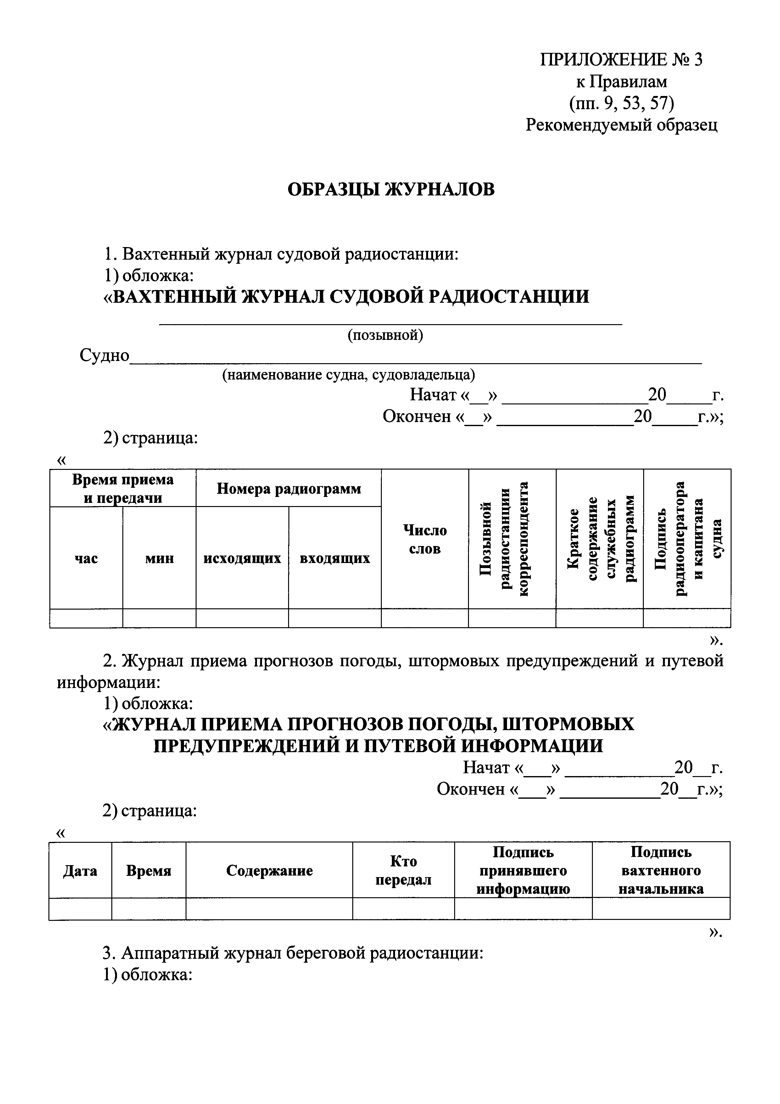 | Оглавление: | I. Общие положения II. Сигналы бедствия, срочности и безопасности III. Специальные радиопередачи IV. Телефонная радиосвязь V. Вахтенный журнал судовой радиостанции, журнал приема прогнозов погоды, штормовых предупреждений и путевой информации, аппаратный журнал береговой радиостанции и журнал регистрации исходящей корреспонденции береговой радиостанции VI. Регистрация переговоров по каналам радиосвязи VII. Подвижная спутниковая служба Приложение № 1. Диапазоны частот и длин волн, используемых в радиосвязи Приложение № 2. Перечень каналов, режимов работы и номиналов частот в диапазоне дециметровых волн в полосах 300,0125 - 300,5125 МГц и 336,0125 - 336,5125 МГц Приложение № 3. Образцы журналов Приложение № 4. Категории и отметки срочности обработки радиограмм |
