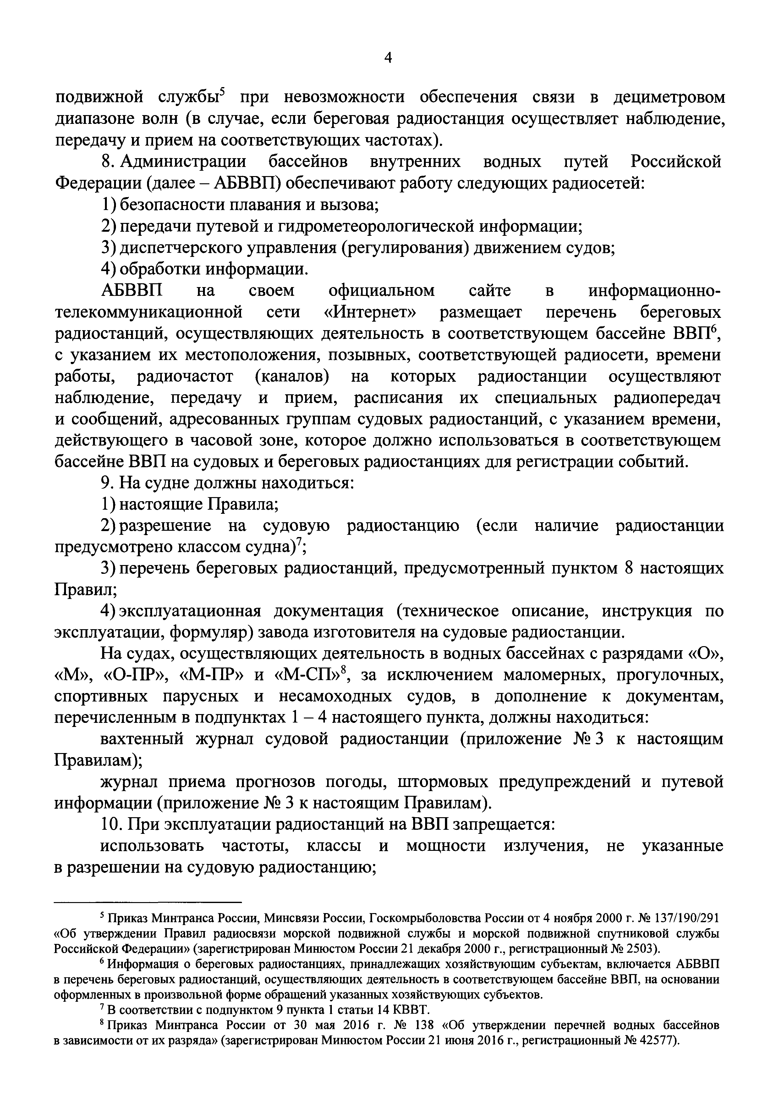 | Область применения: | Правила определяют порядок осуществления радиосвязи на внутренних водных путях Российской Федерации, и распространяются на береговые и судовые радиостанции, а также на юридических и физических лиц, пользующихся услугами подвижной службы и подвижной спутниковой службы на внутренних водных путях |