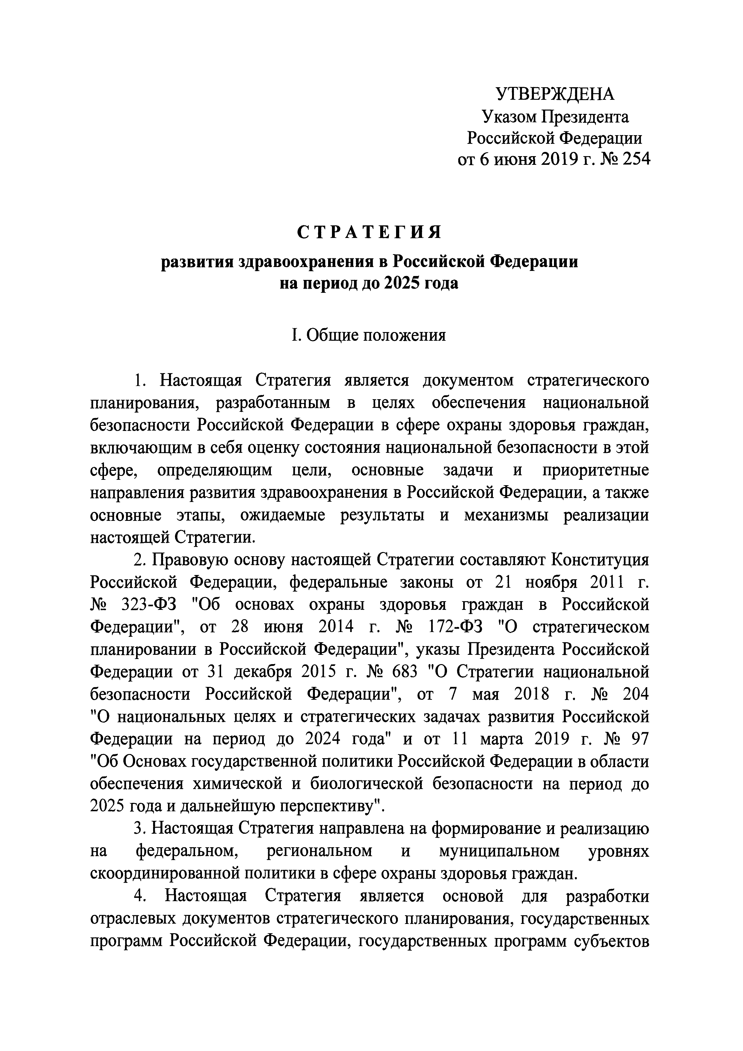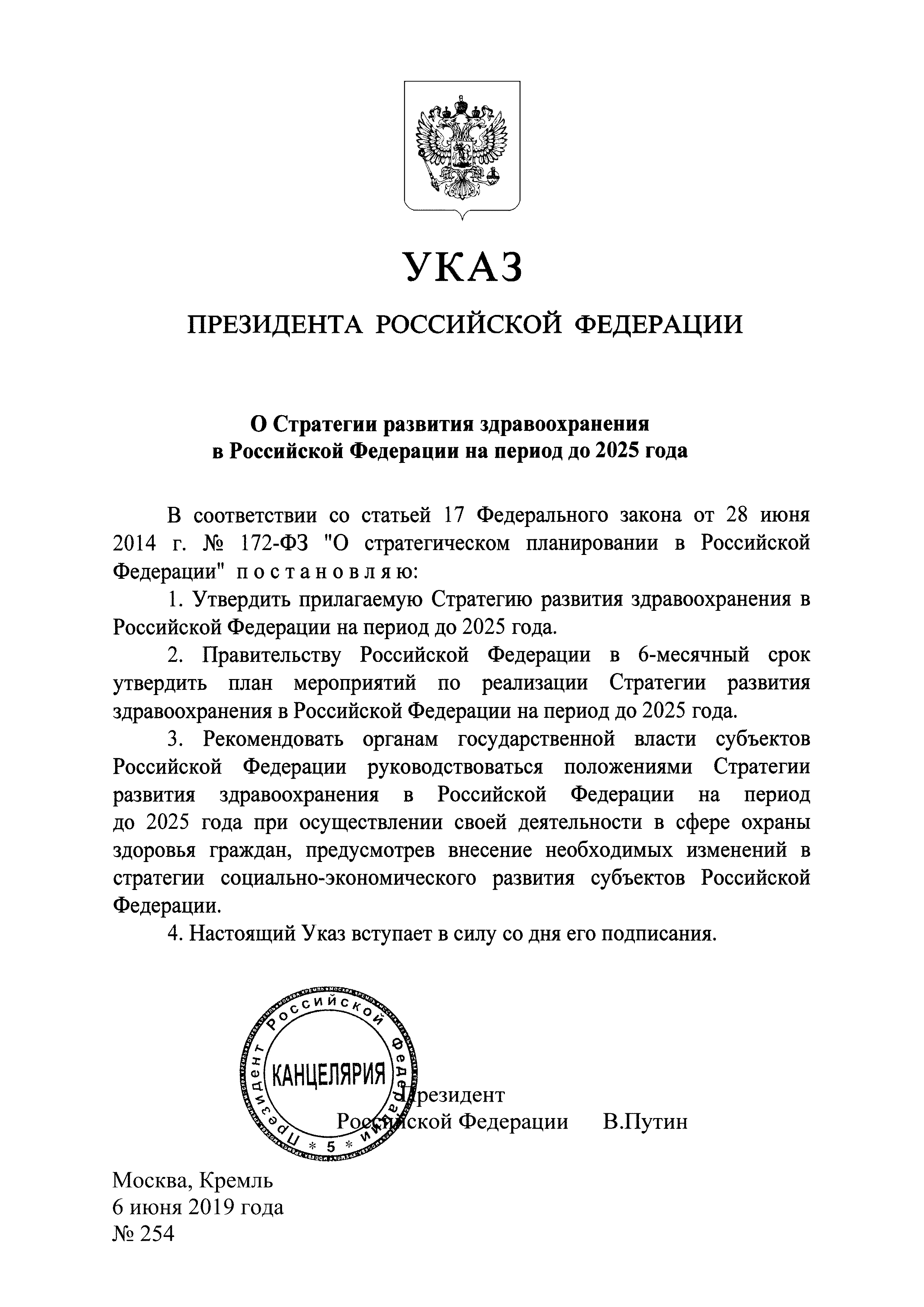 | Утверждён: | 06.06.2019 Президент Российской Федерации (President of the Russian Federation 254)