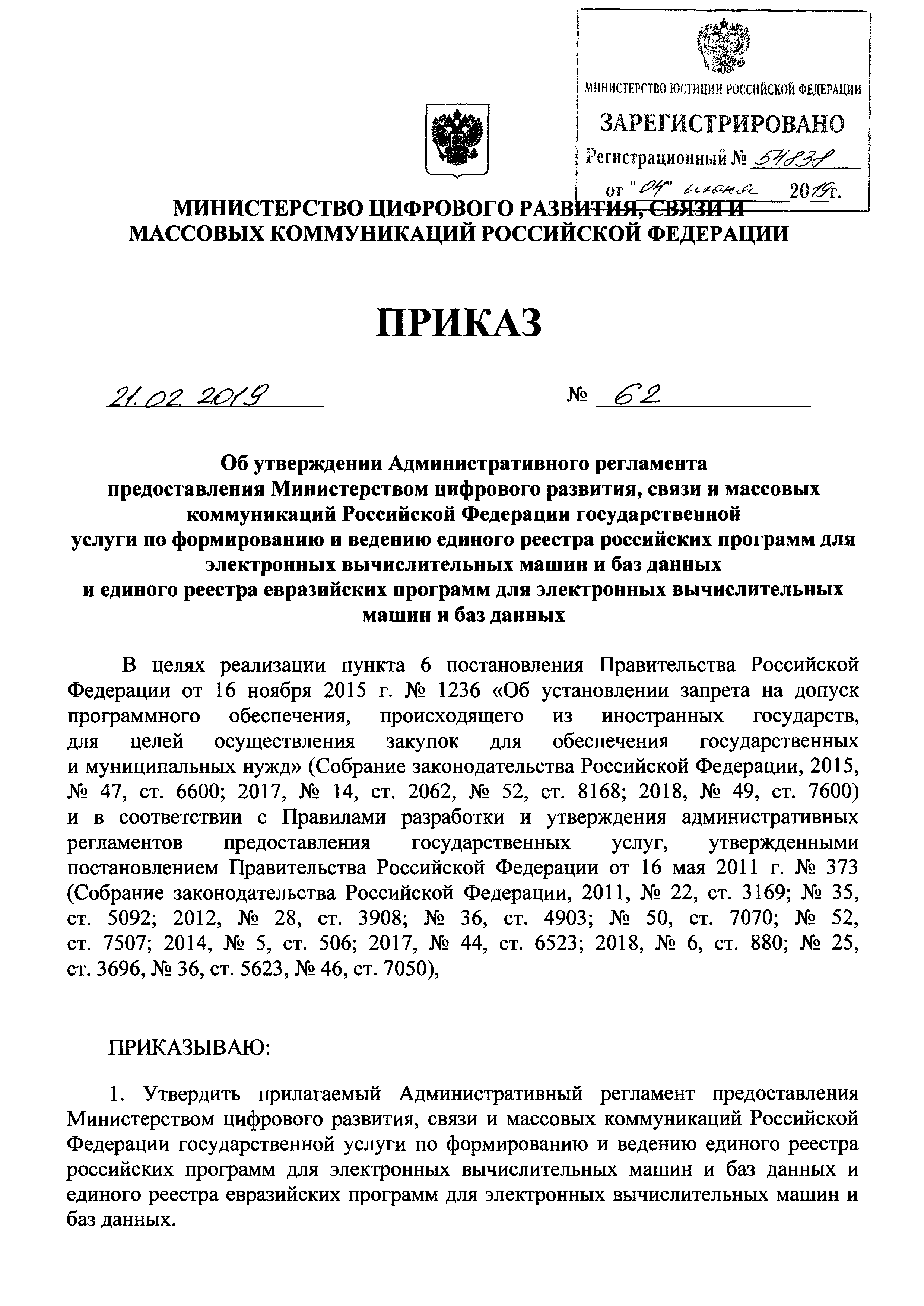 | Утверждён: | 21.02.2019 Министерство цифрового развития, связи и массовых коммуникаций РФ (62) |