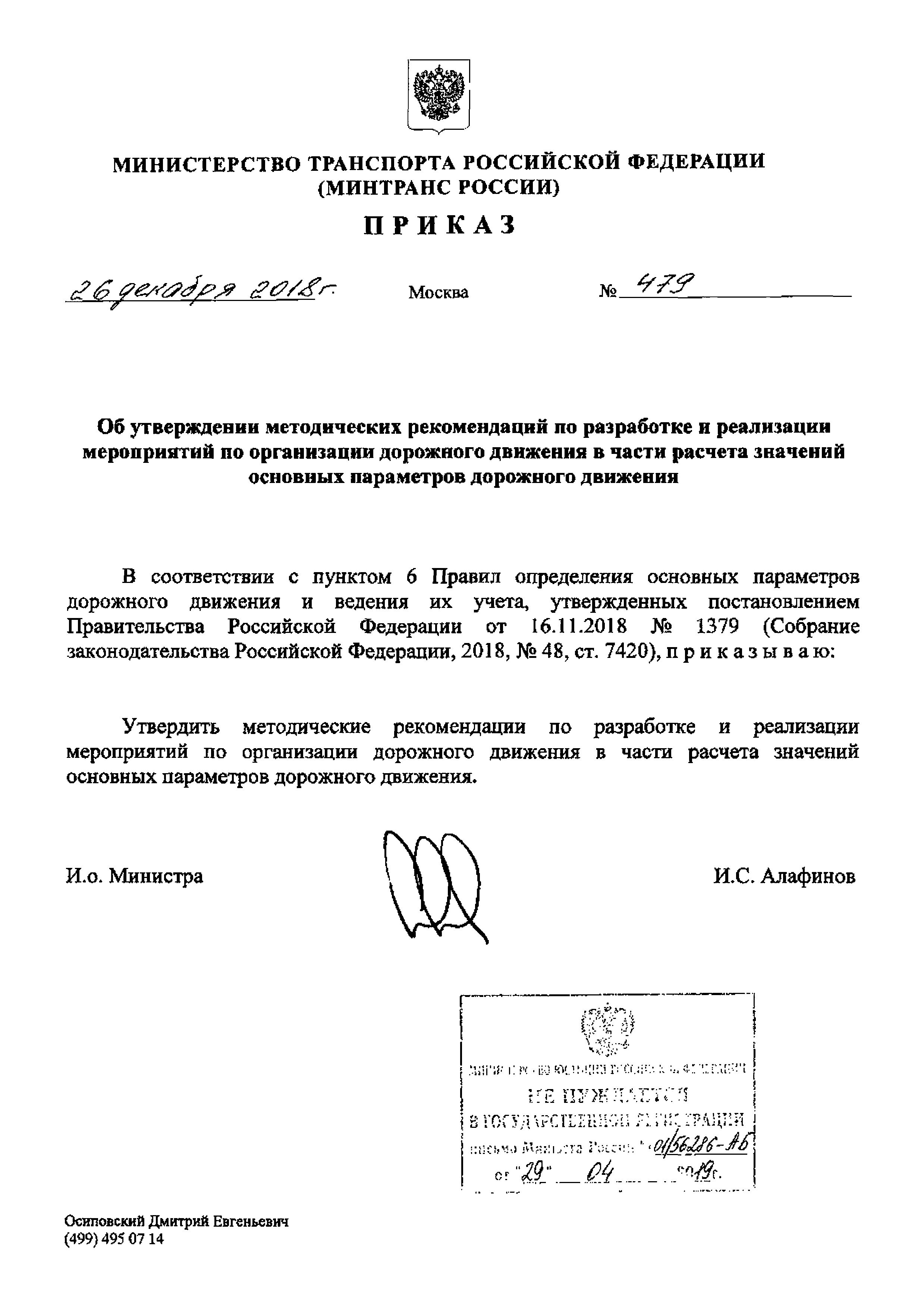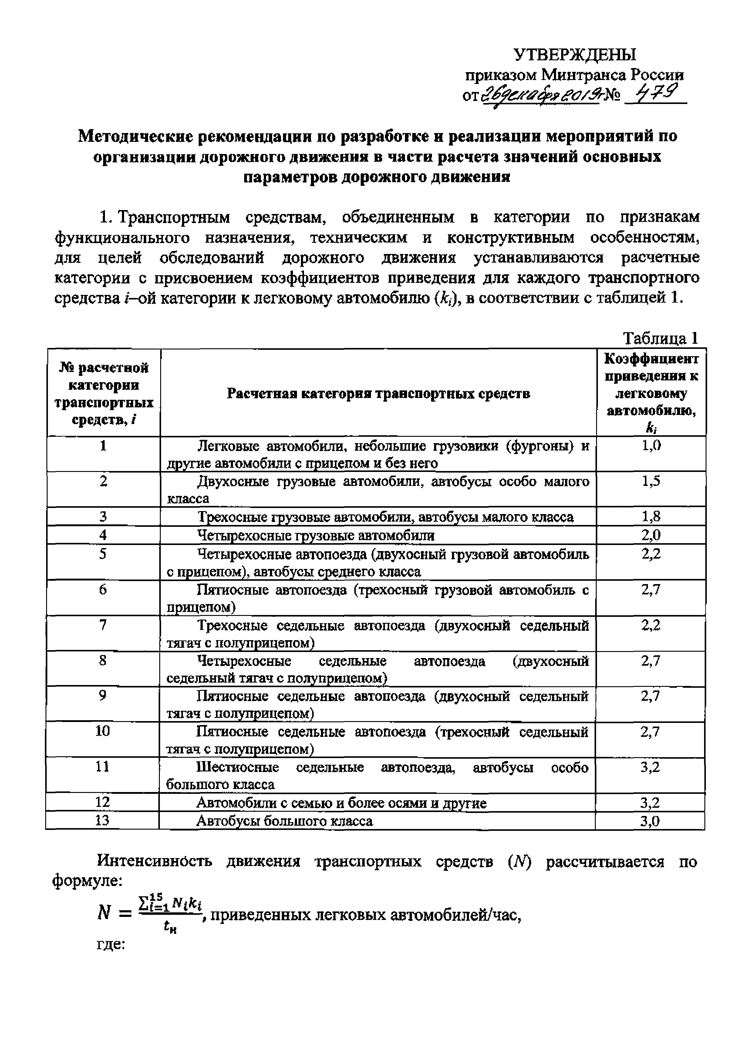 Методические рекомендации по разработке и реализации мероприятий по организации дорожного движения в части расчета значений основных параметров дорожного движения| Статус: | действует | | Название рус.: | Методические рекомендации по разработке и реализации мероприятий по организации дорожного движения в части расчета значений основных параметров дорожного движения | | Дата добавления в базу: | 01.02.2020 | | Дата актуализации: | 01.01.2021 | | Утверждён: | 26.12.2018 Министерство транспорта Российской Федерации (Russian Federation Ministry of Transportation 479)