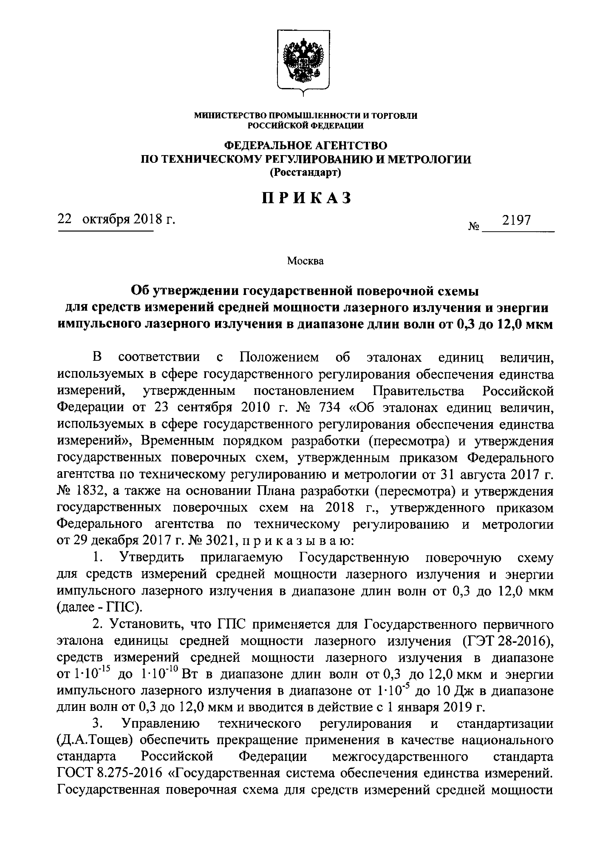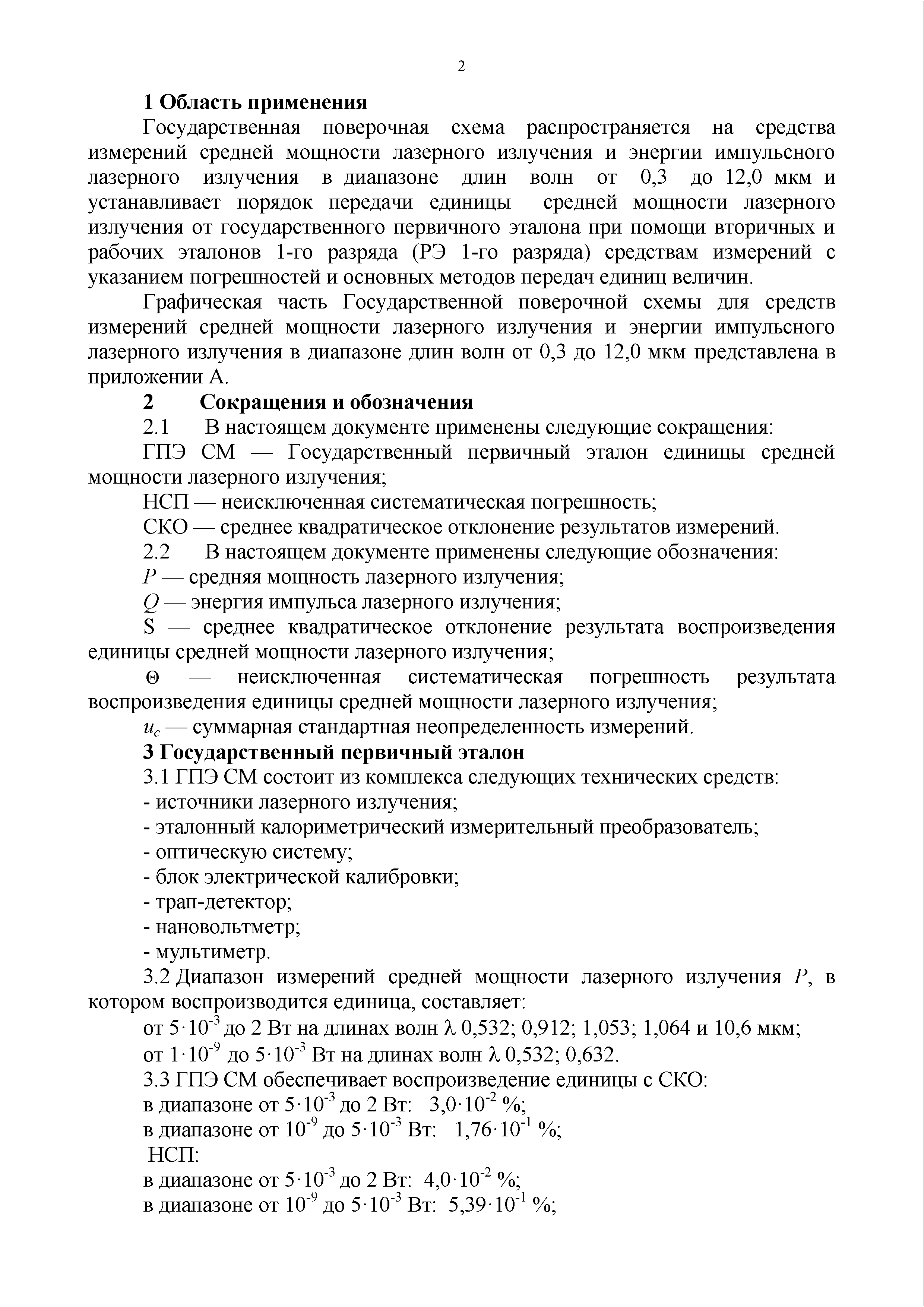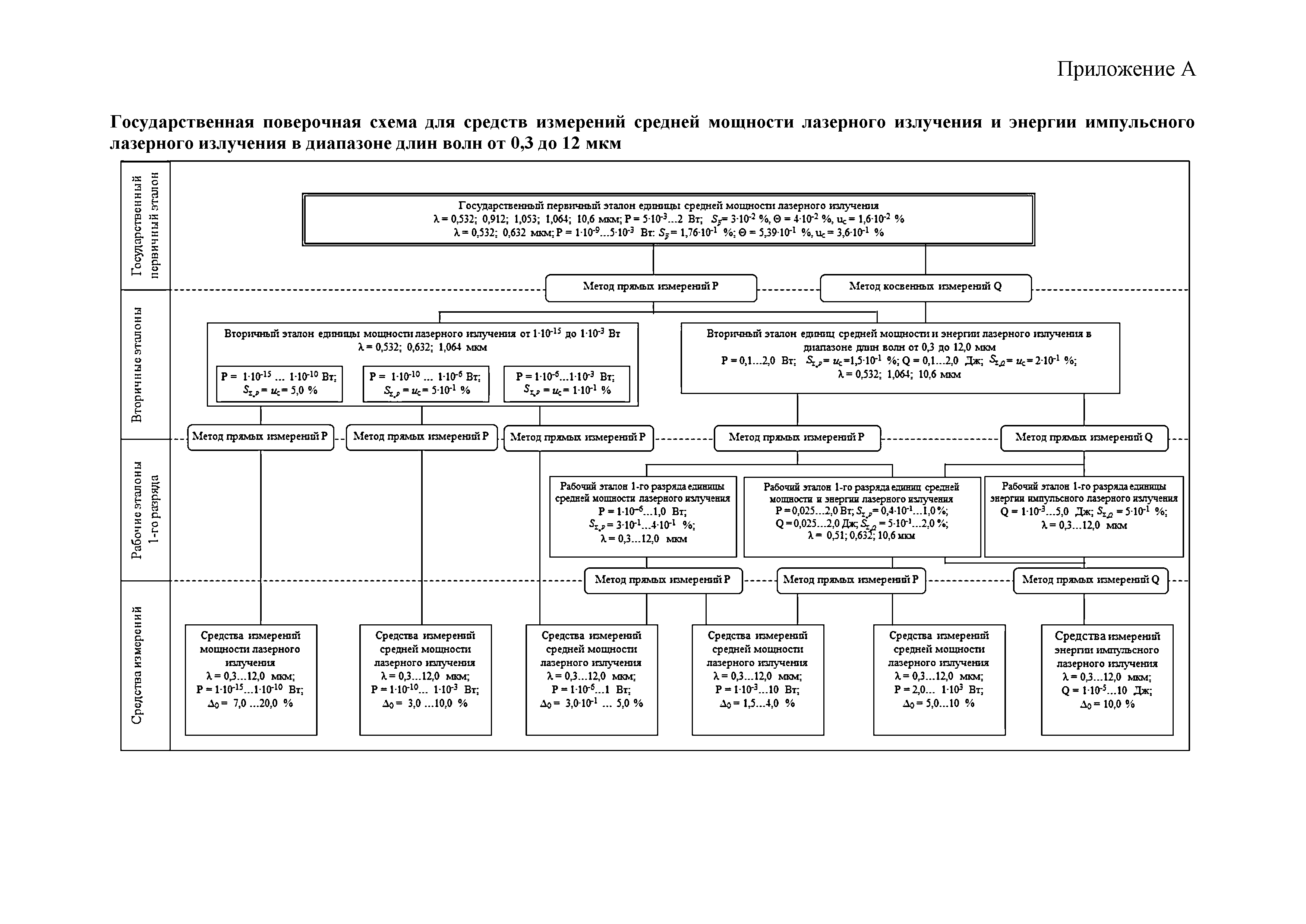 | Название рус.: | Государственная поверочная схема для средств измерений средней мощности лазерного излучения и энергии импульсного лазерного излучения в диапазоне длин волн от 0,3 до 12,0 мкм |