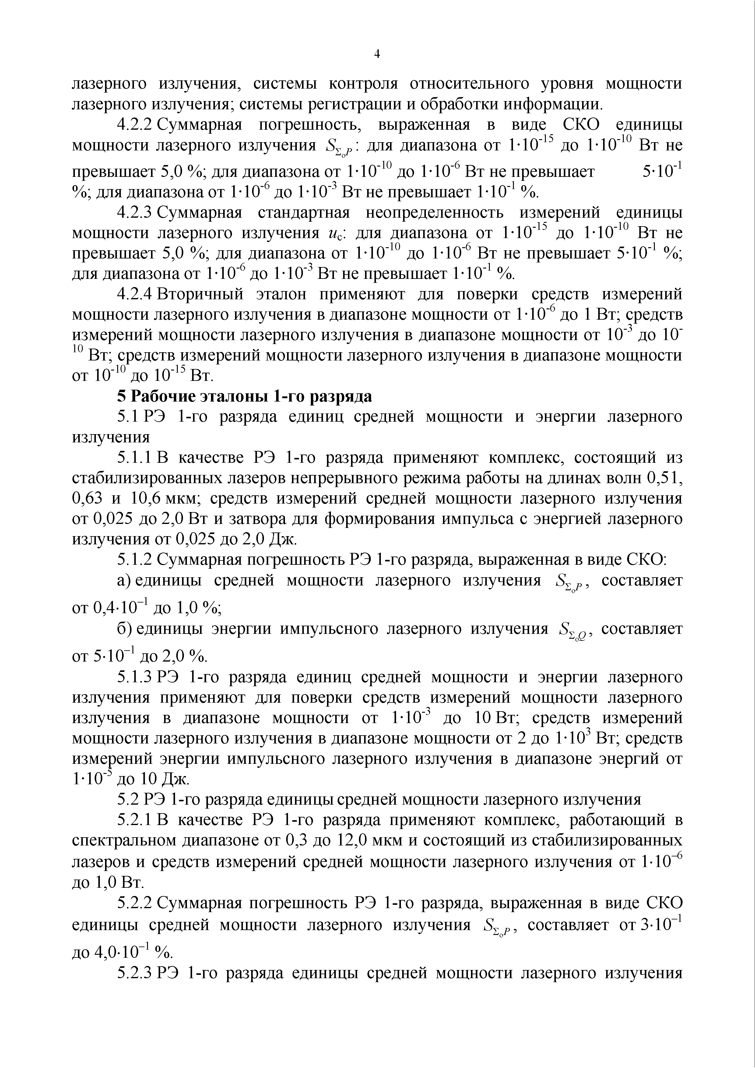 | Оглавление: | 1. Область применения 2. Сокращения и обозначения 3. Государственный первичный эталон 4. Вторичные эталоны 5. Рабочие эталоны 1-го разряда 6. Средства измерений Приложение А. Государственная поверочная схема для средств измерений средней мощности лазерного излучения и энергии импульсного лазерного излучения в диапазоне длин волн от 0,3 до 12,0 мкм |