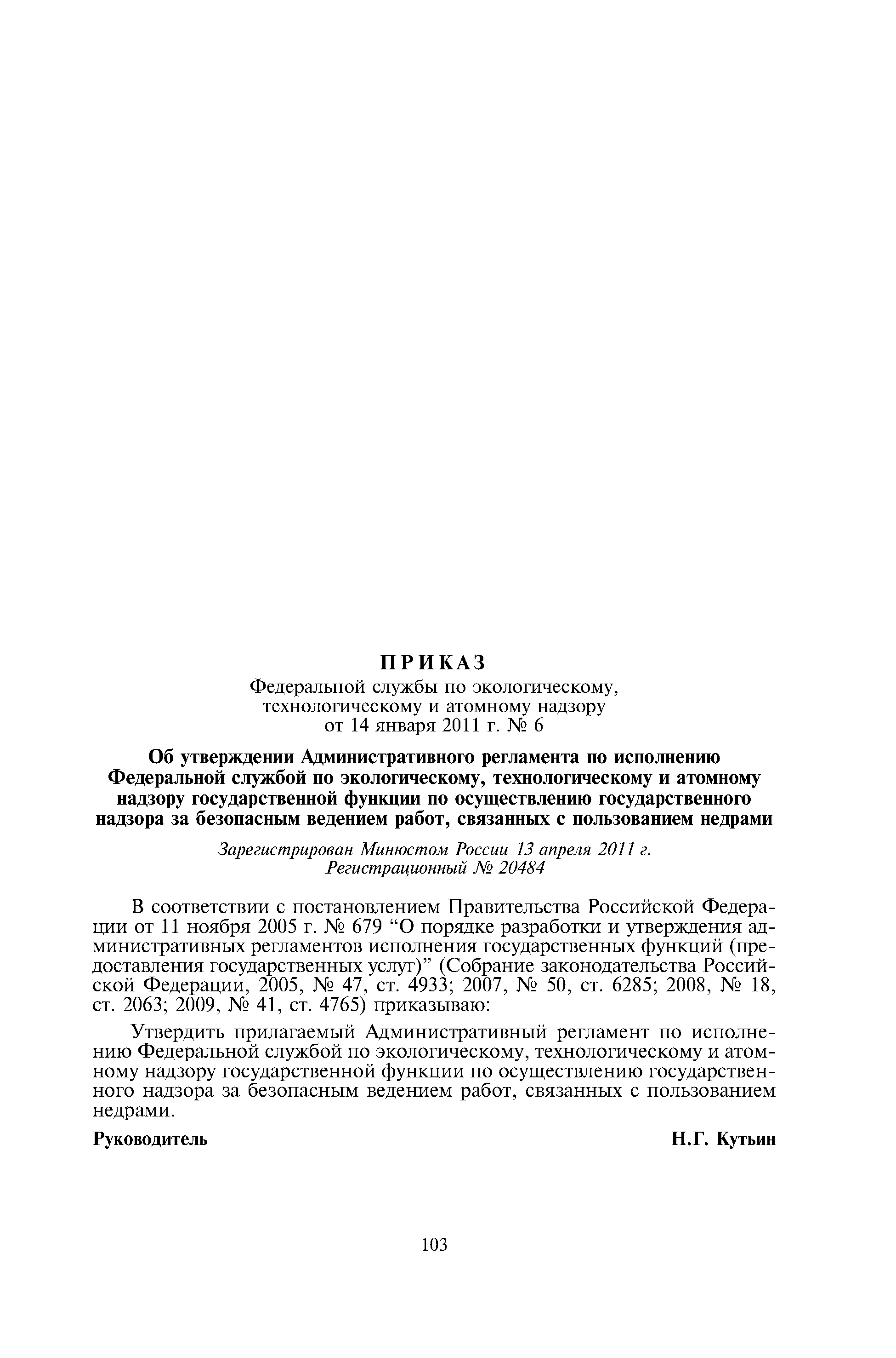 | Название рус.: | Административный регламент по исполнению Федеральной службой по экологическому, технологическому и атомному надзору государственной функции по осуществлению государственного надзора за безопасным ведением работ, связанных с пользованием недрами |