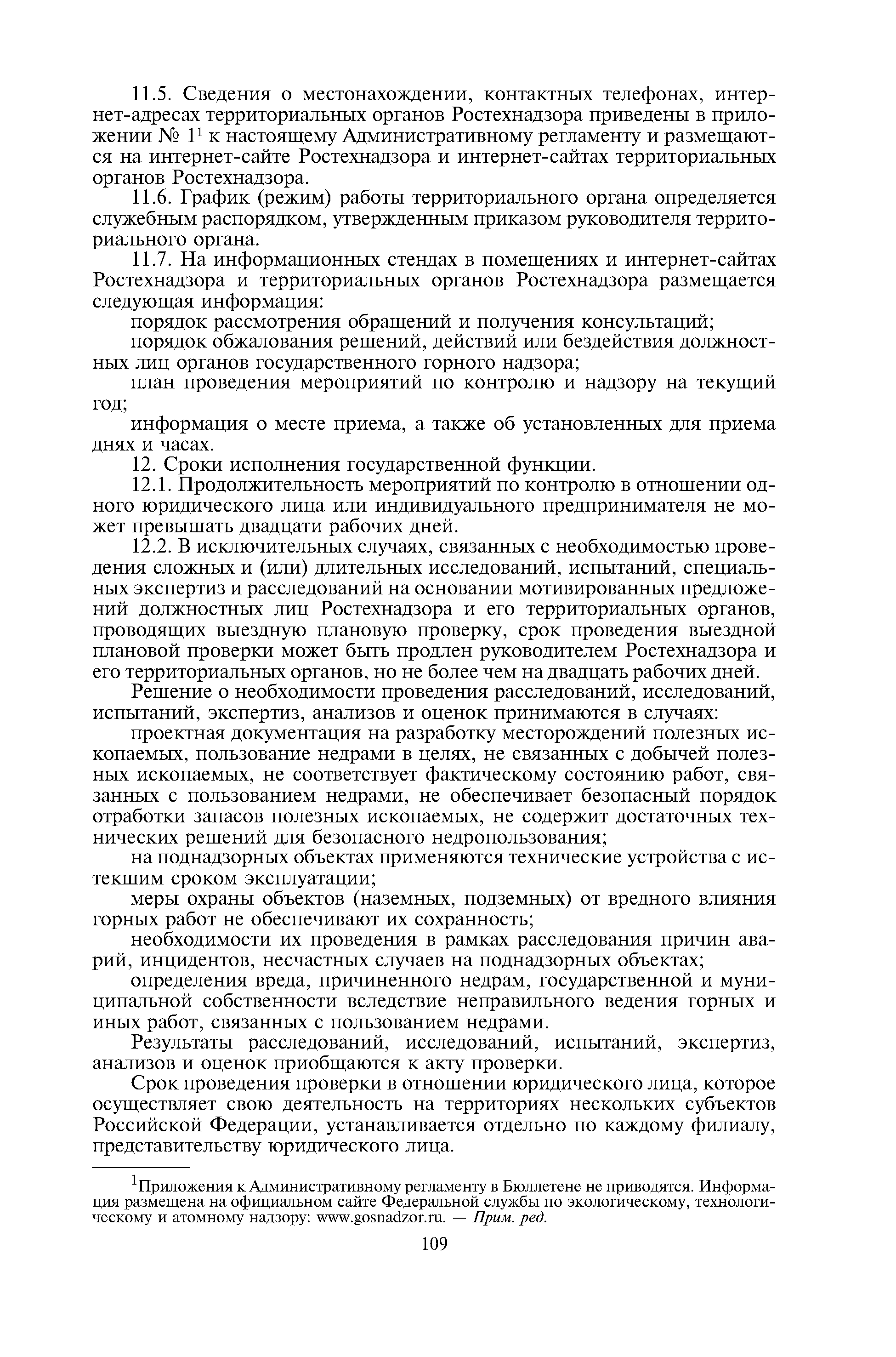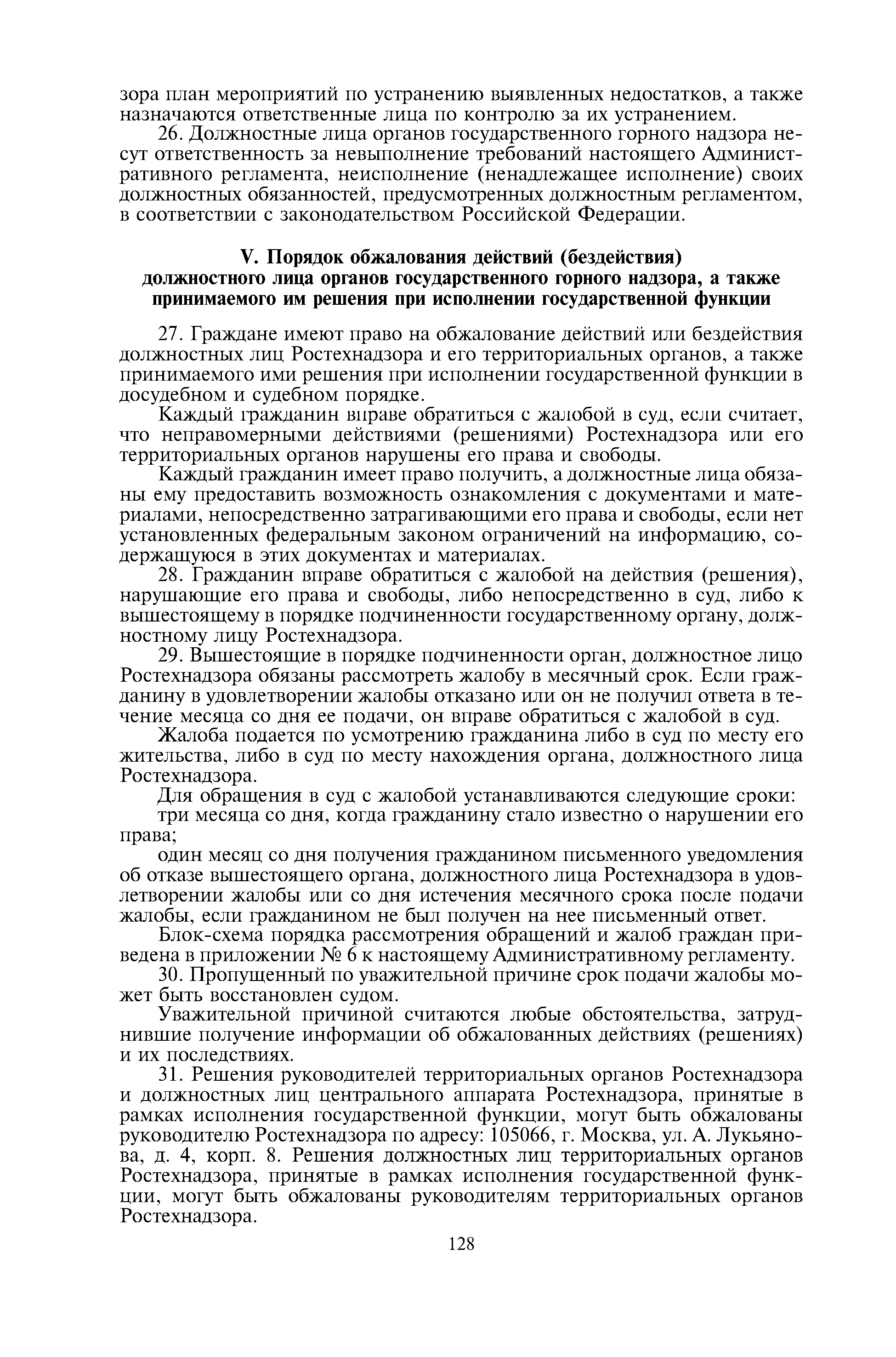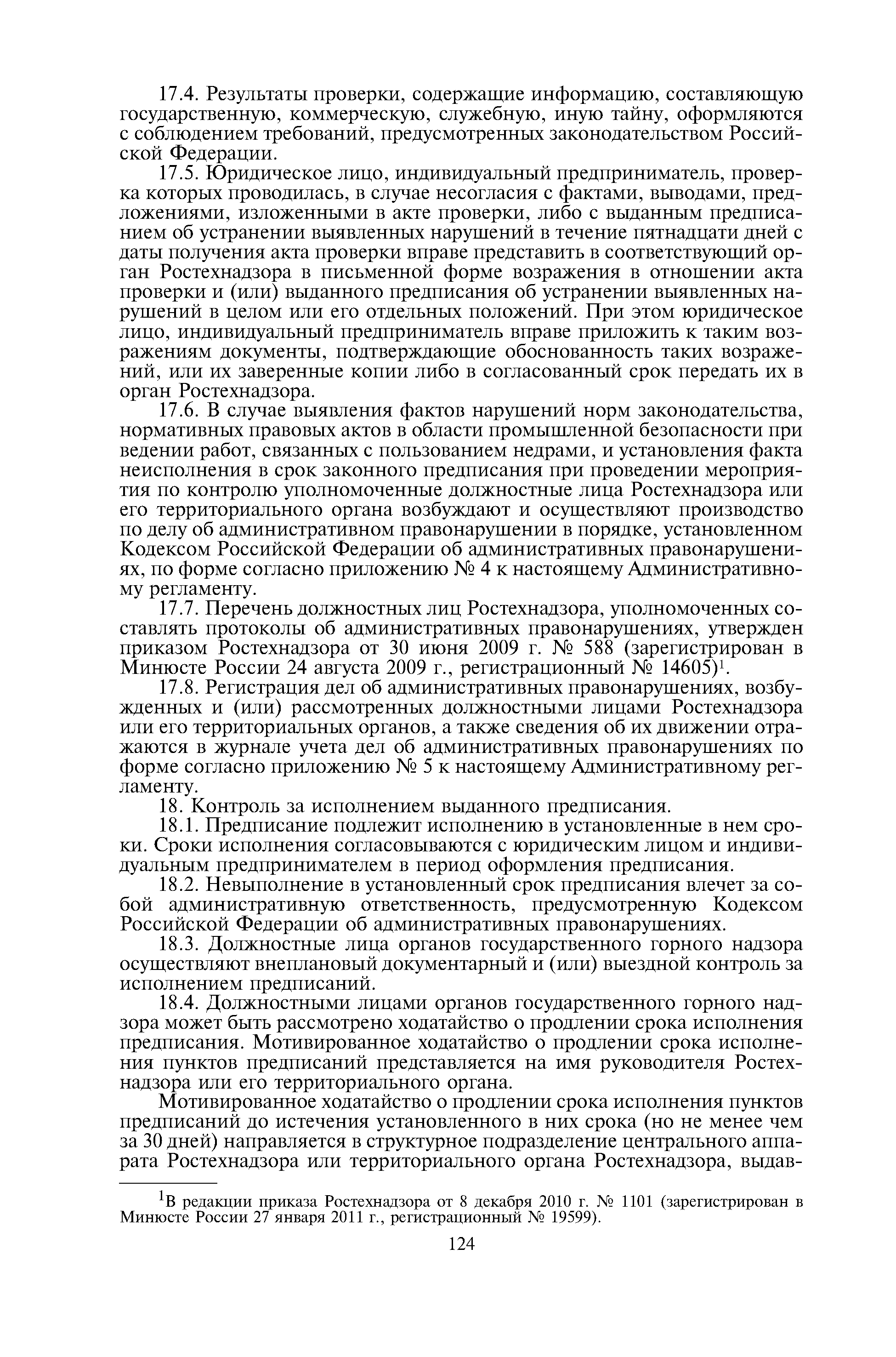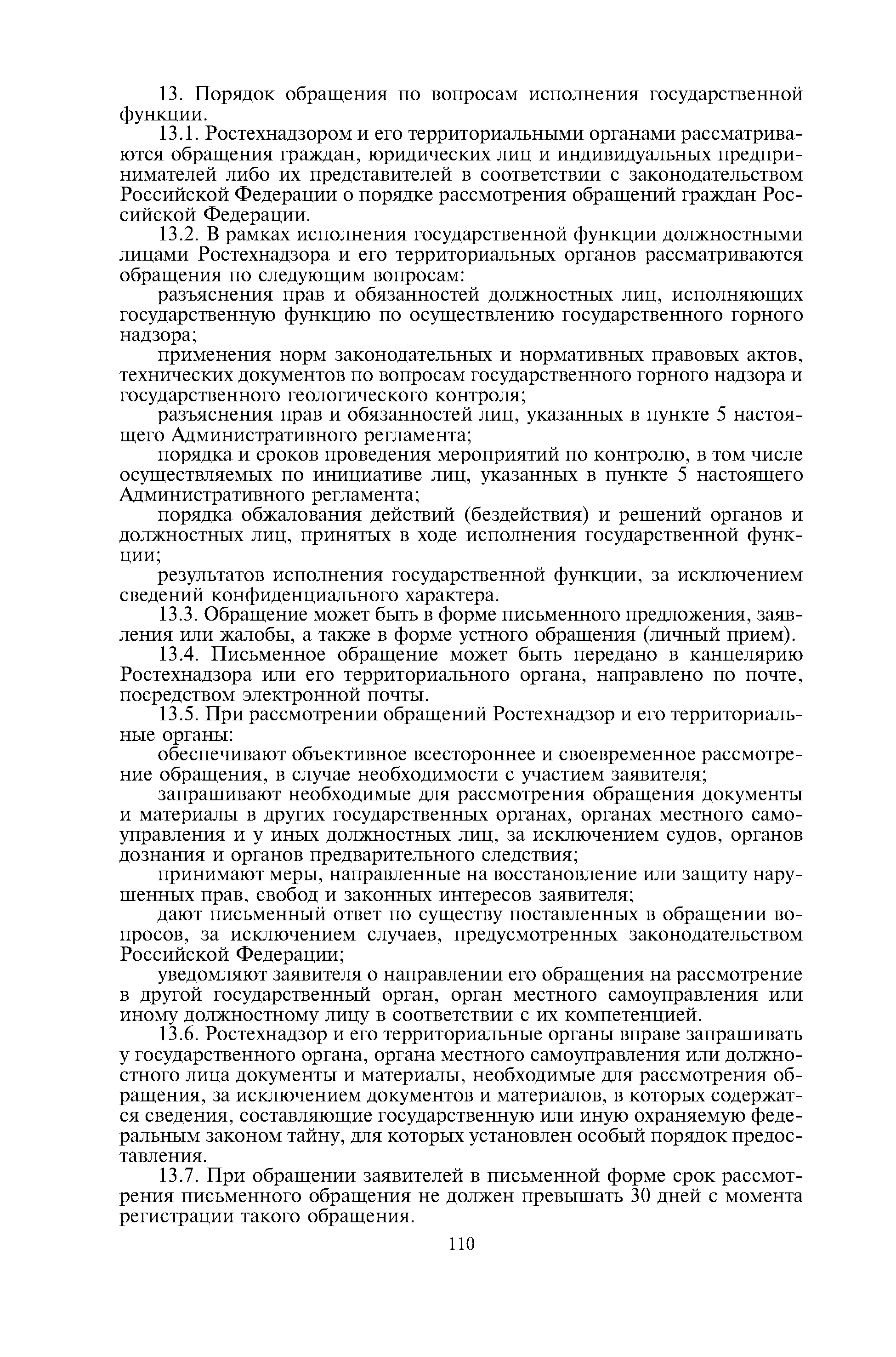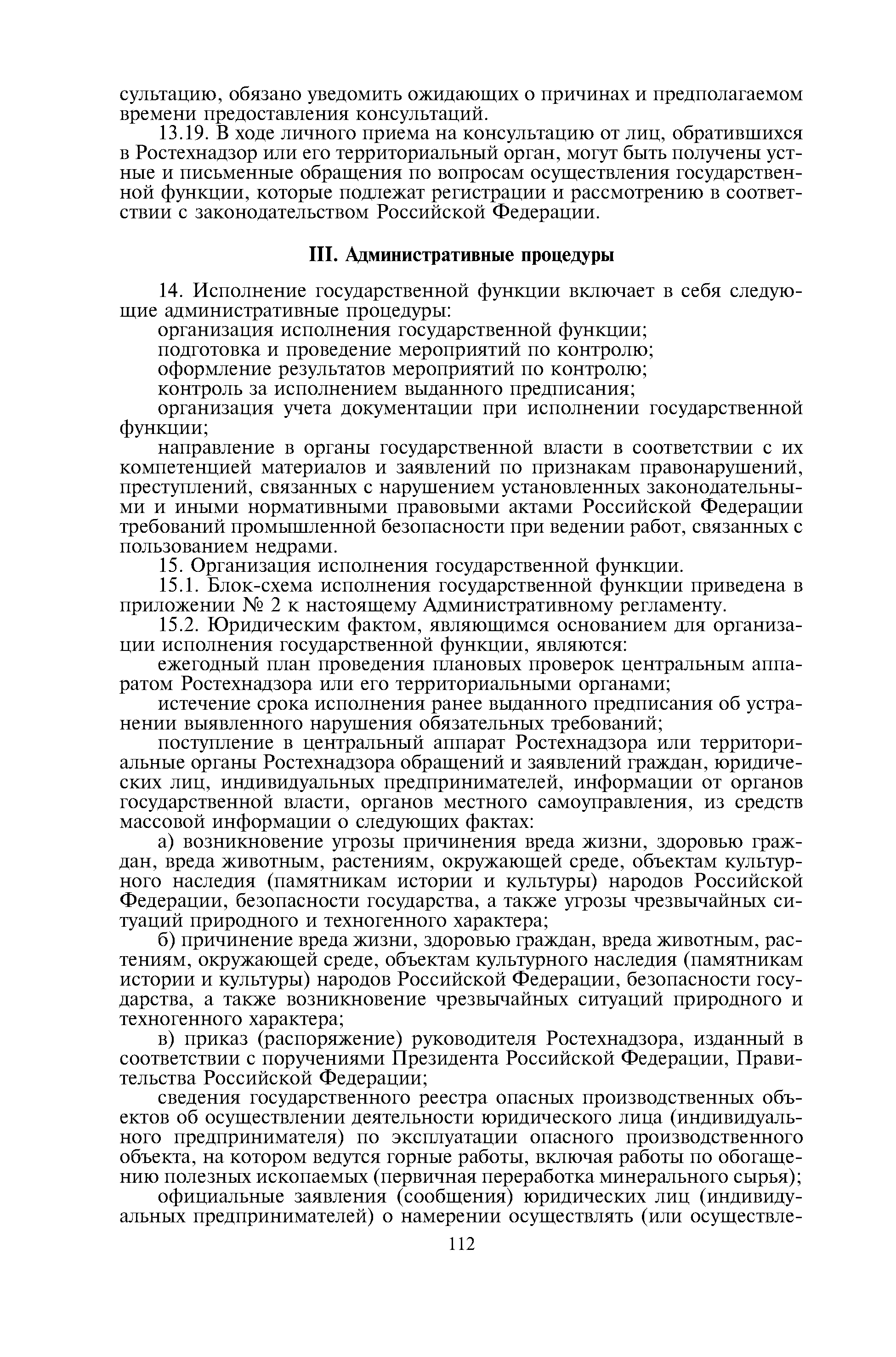 | Оглавление: | I. Общие положения II. Требования к порядку исполнения государственной функции III. Административные процедуры IV. Порядок и формы контроля за исполнением государственной функции V. Порядок обжалования действий (бездействия) должностного лица органов государственного горного надзора, а также принимаемого им решения при исполнении государственной функции Приложение № 1. Список территориальных органов Ростехнадзора Приложение № 2. Блок-схема исполнения государственной функции Приложение № 3. Предписание Приложение № 4. Порядок возбуждения и осуществления производства по делу об административном правонарушении Приложение № 5. Журнал учета дел об административных правонарушениях Приложение № 6. Блок-схема порядка рассмотрения обращений и жалоб граждан |