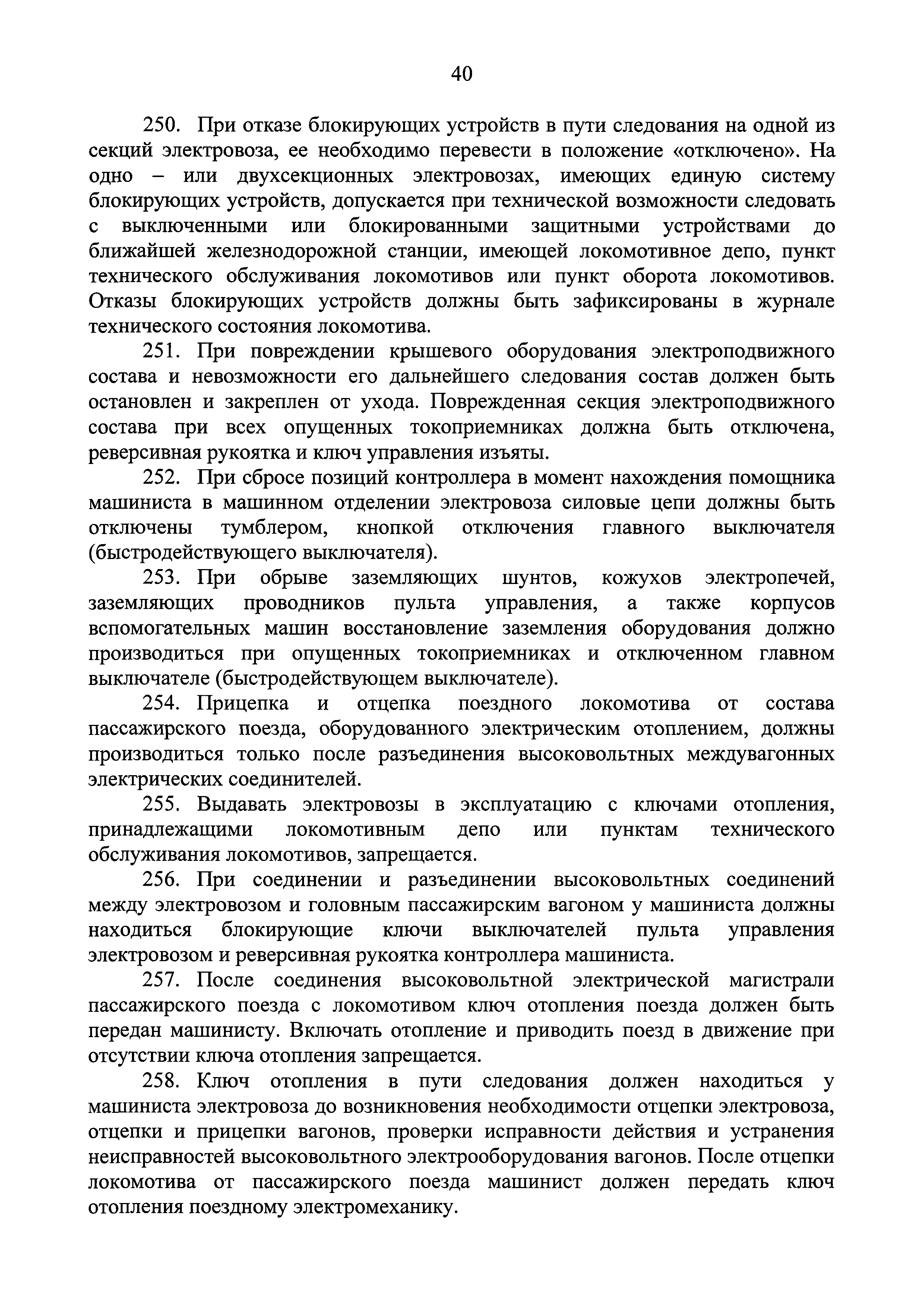 Правила по охране труда при эксплуатации подвижного состава железнодорожного транспорта| Статус: | действует | | Название рус.: | Правила по охране труда при эксплуатации подвижного состава железнодорожного транспорта | | Дата добавления в базу: | 01.02.2020 | | Дата актуализации: | 01.01.2021 | | Дата введения: | 25.08.2019 | | Область применения: | Правила устанавливают государственные нормативные требования охраны труда при эксплуатации и техническом обслуживании железнодорожного подвижного состава, включающего локомотивы, моторвагонный подвижной состав, высокоскоростной железнодорожный подвижной состав, специальный железнодорожный подвижной состав, пассажирские вагоны локомотивной тяги, грузовые вагоны, а также иной, предназначенный для перевозок и функционирования инфраструктуры железнодорожный подвижной состав. Требования Правил обязательны для исполнения работодателями - юридическими лицами и индивидуальными предпринимателями (владельцами железнодорожного подвижного состава), организациями железнодорожного транспорта общего пользования независимо от их организационно-правовых форм, выполняющими работы (оказывающими услуги), связанные с организацией и (или) осуществлением перевозочного процесса, а также работы (услуги), связанные с техническим обслуживанием и эксплуатацией железнодорожного подвижного состава. Правила могут применяться в организациях железнодорожного транспорта необщего пользования, включая владельцев железнодорожных путей необщего пользования, владеющих железнодорожным подвижным составом, а также при эксплуатации и техническом обслуживании железнодорожного подвижного состава, осуществляющего перевозки по железнодорожным линиям, имеющим узкую колею или колею разной ширины.