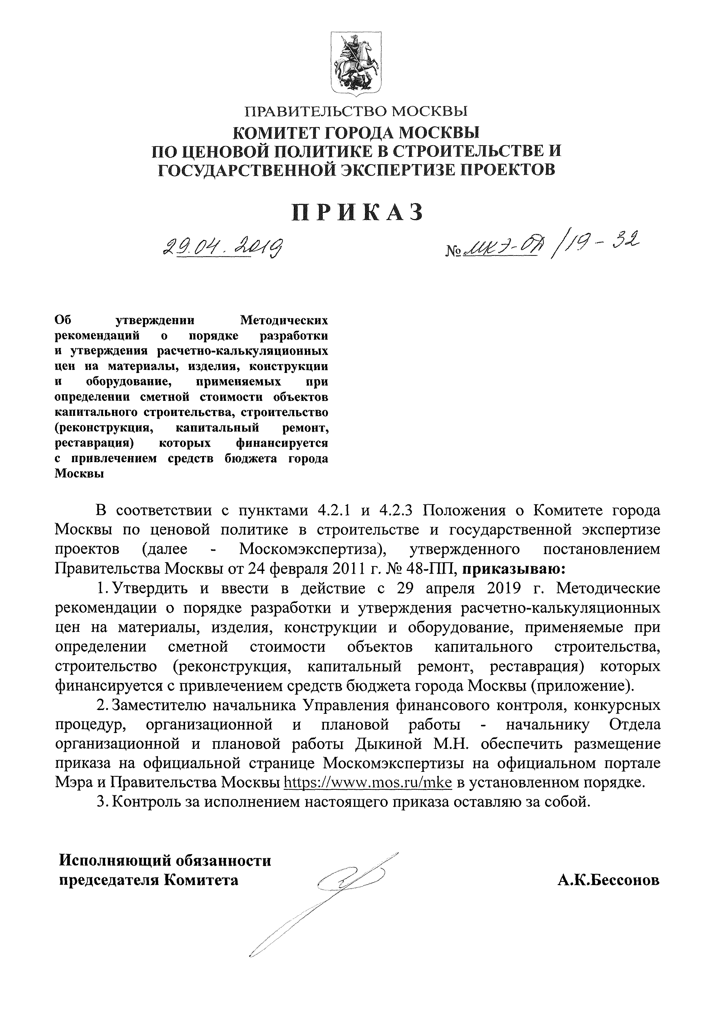 | Утверждён: | 29.04.2019 Комитет города Москвы по ценовой политике в строительстве и государственной экспертизе проектов (МКЭ-ОД/19-32) |