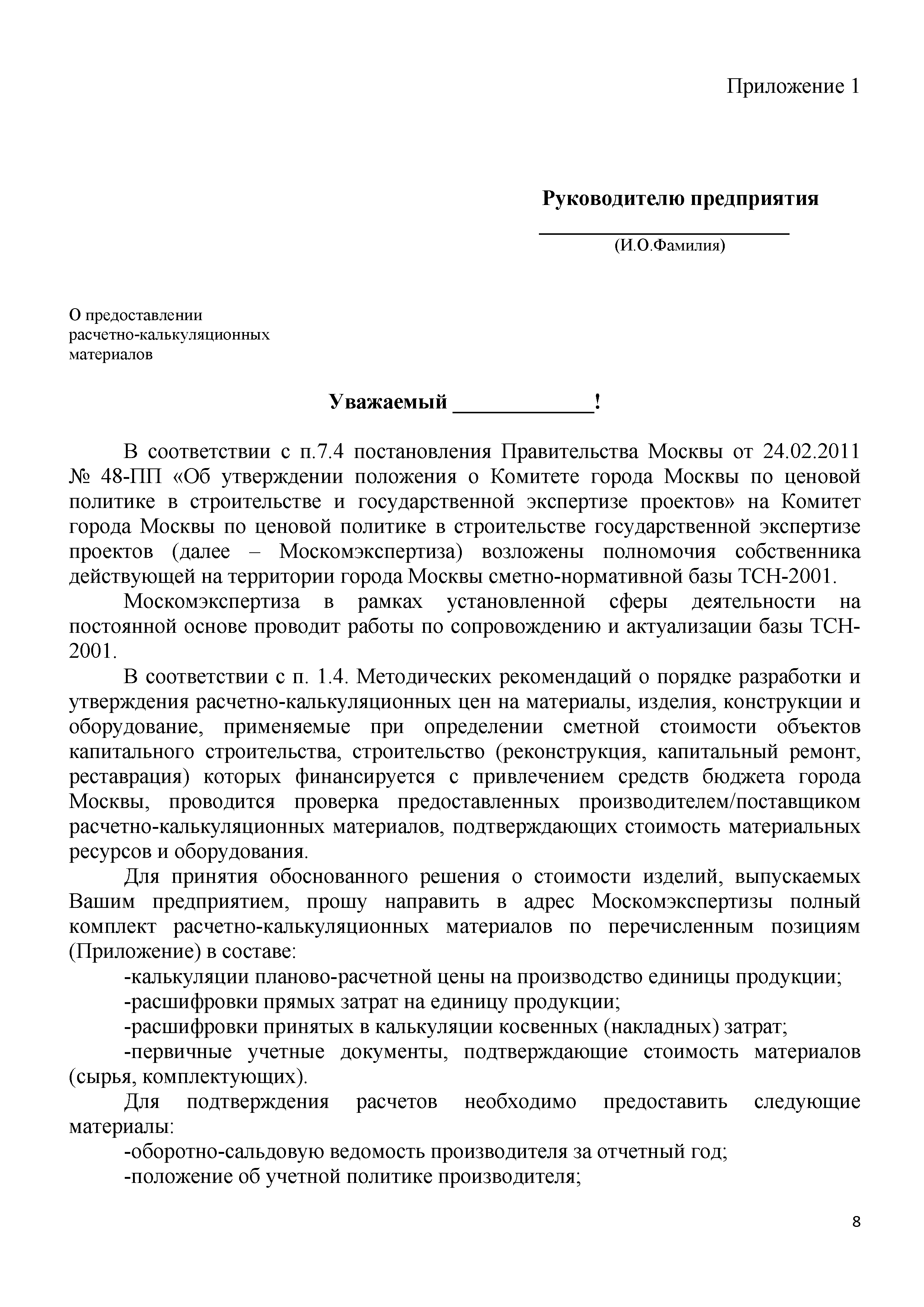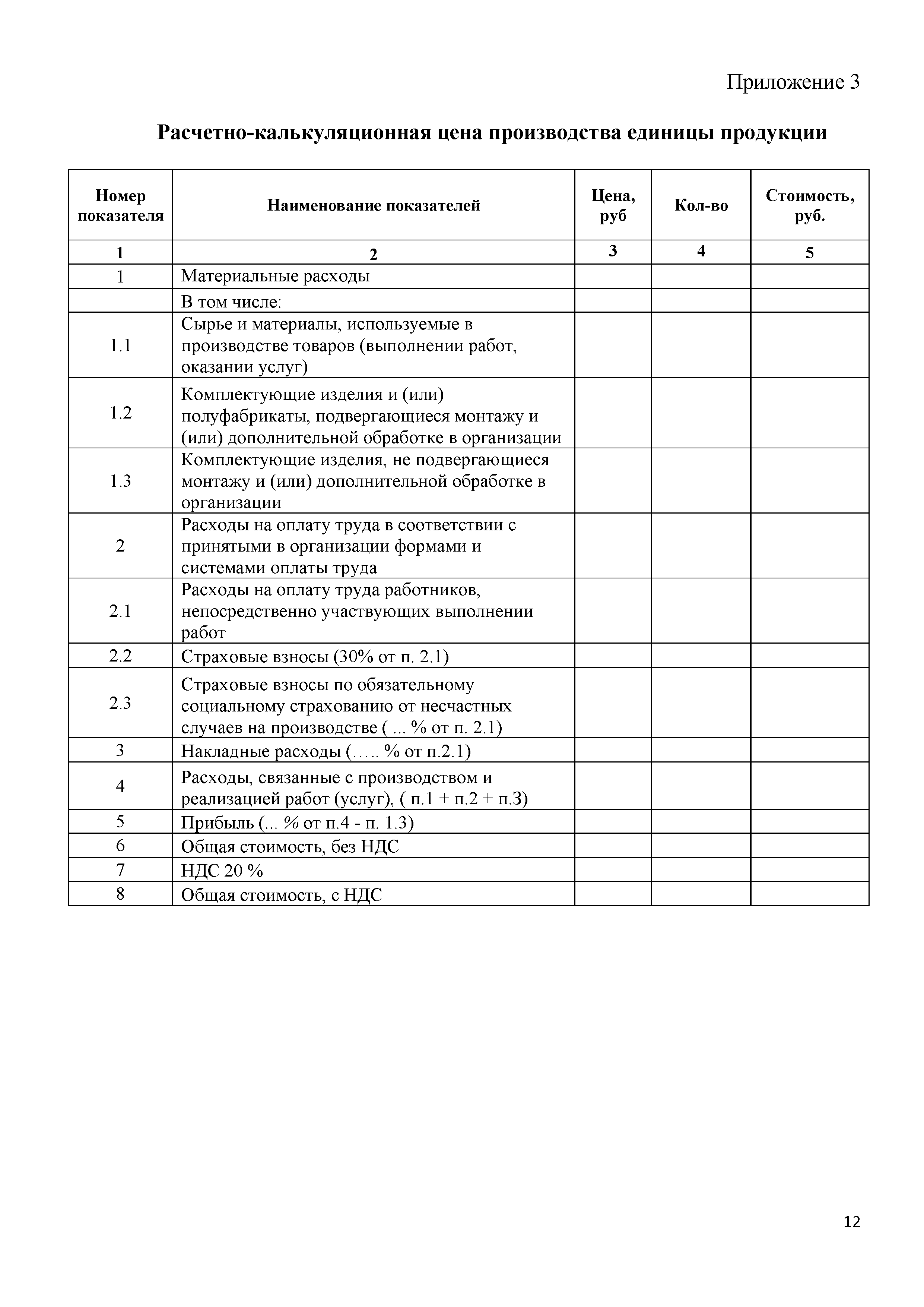 | Оглавление: | 1 Общие положения 2 Термины и определения 3 Требования к формированию запроса расчетно- калькуляционных материалов 4 Разработка расчетно-калькуляционной цены 5 Направление расчетно-калькуляционных материалов 6 Проверка расчетно-калькуляционных материалов и расчетно-калькуляционной цены 7 Структура расчетно-калькуляционных материалов Приложение 1. Форма заявки о предоставлении расчетно-калькуляционных материалов Приложение 2. Форма заявки о рассмотрении расчетно-калькуляционных материалов Приложение 3. Расчетно-калькуляционная цена производства единицы продукции Перечень используемых нормативно-методических документов |