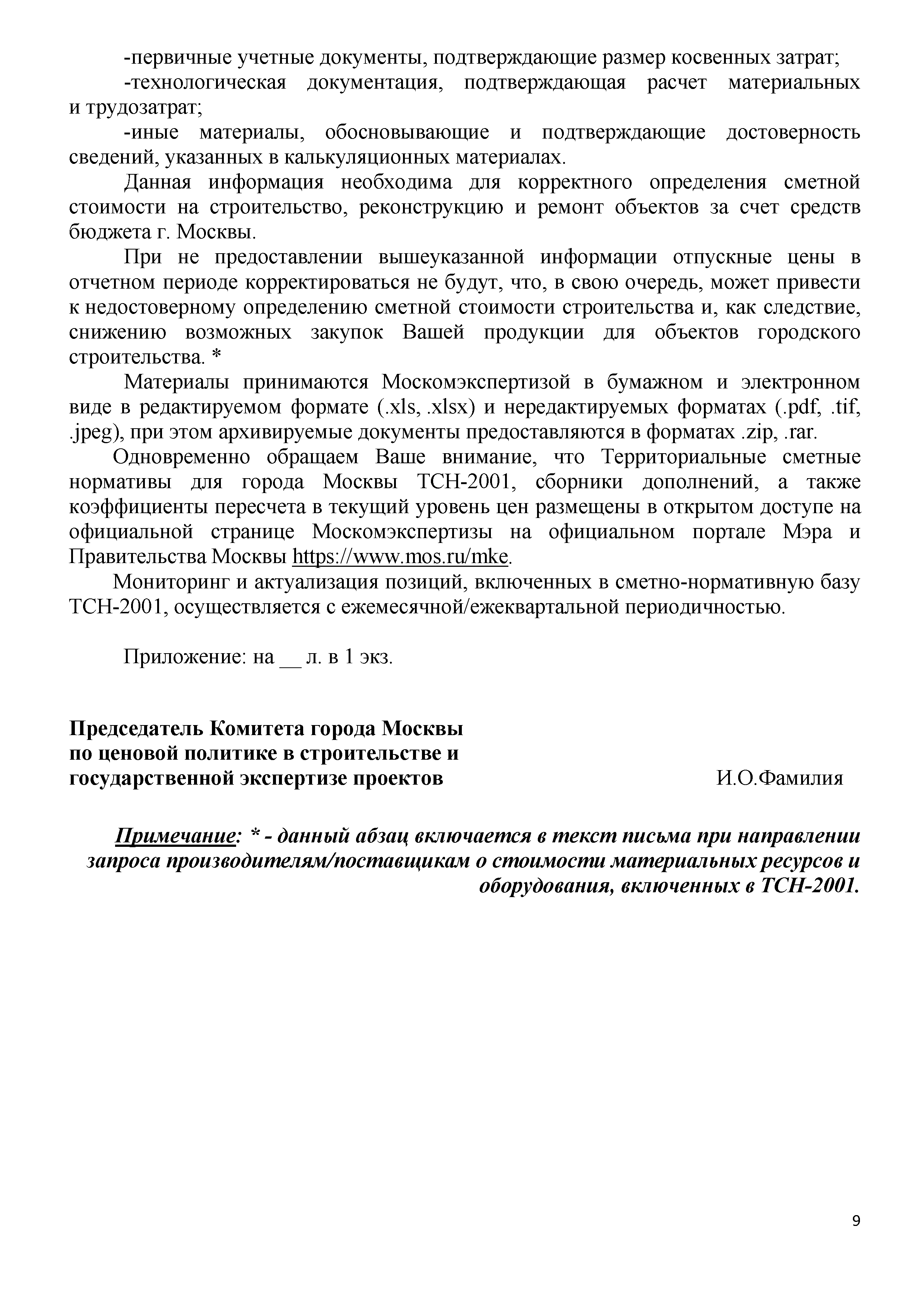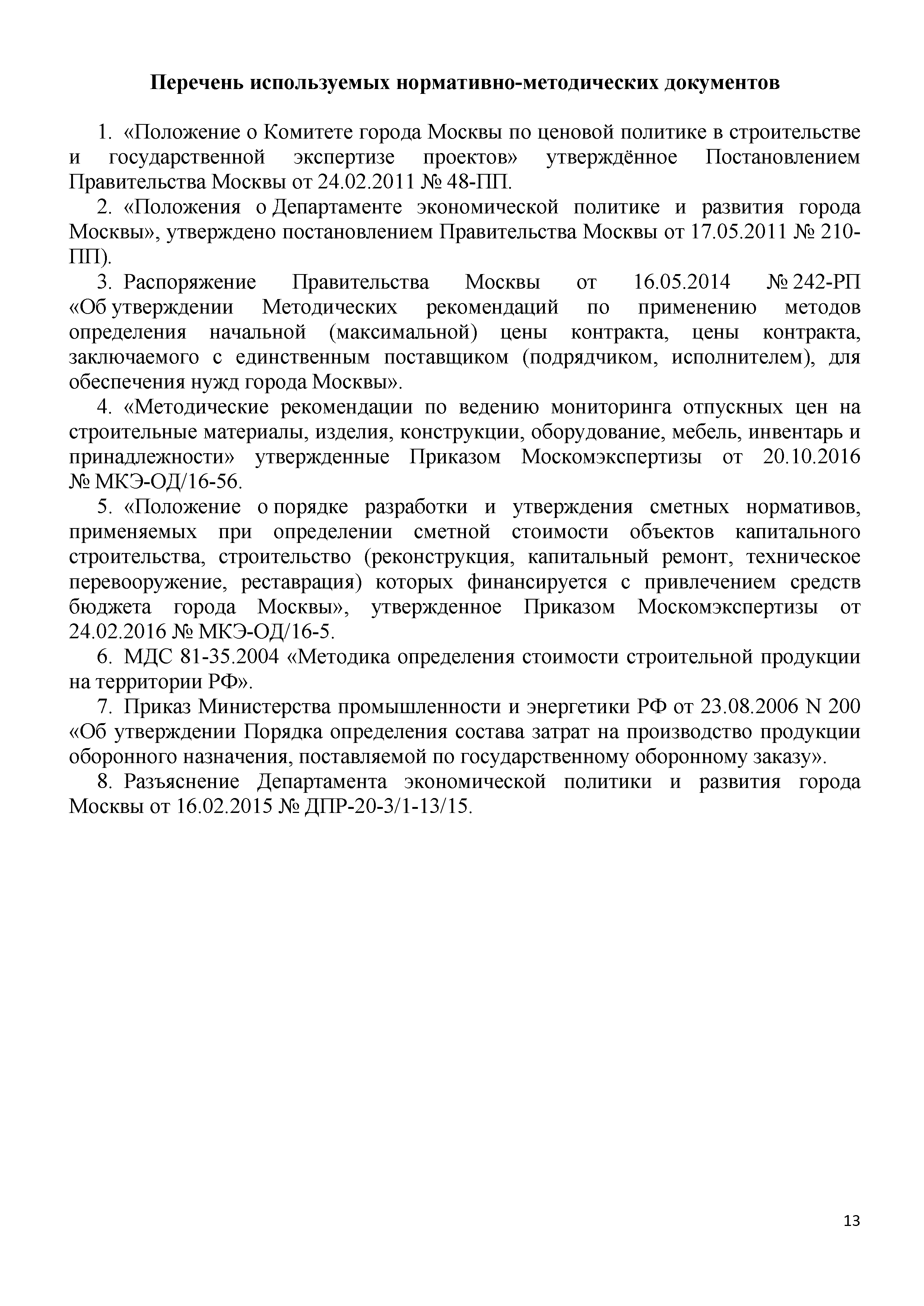 | Название рус.: | Методические рекомендации о порядке разработки и утверждения расчетно-калькуляционных цен на материалы, изделия, конструкции и оборудование, применяемые при определении сметной стоимости объектов капитального строительства, строительство (реконструкция, капитальный ремонт, реставрация) которых финансируется с привлечением средств бюджета города Москвы |