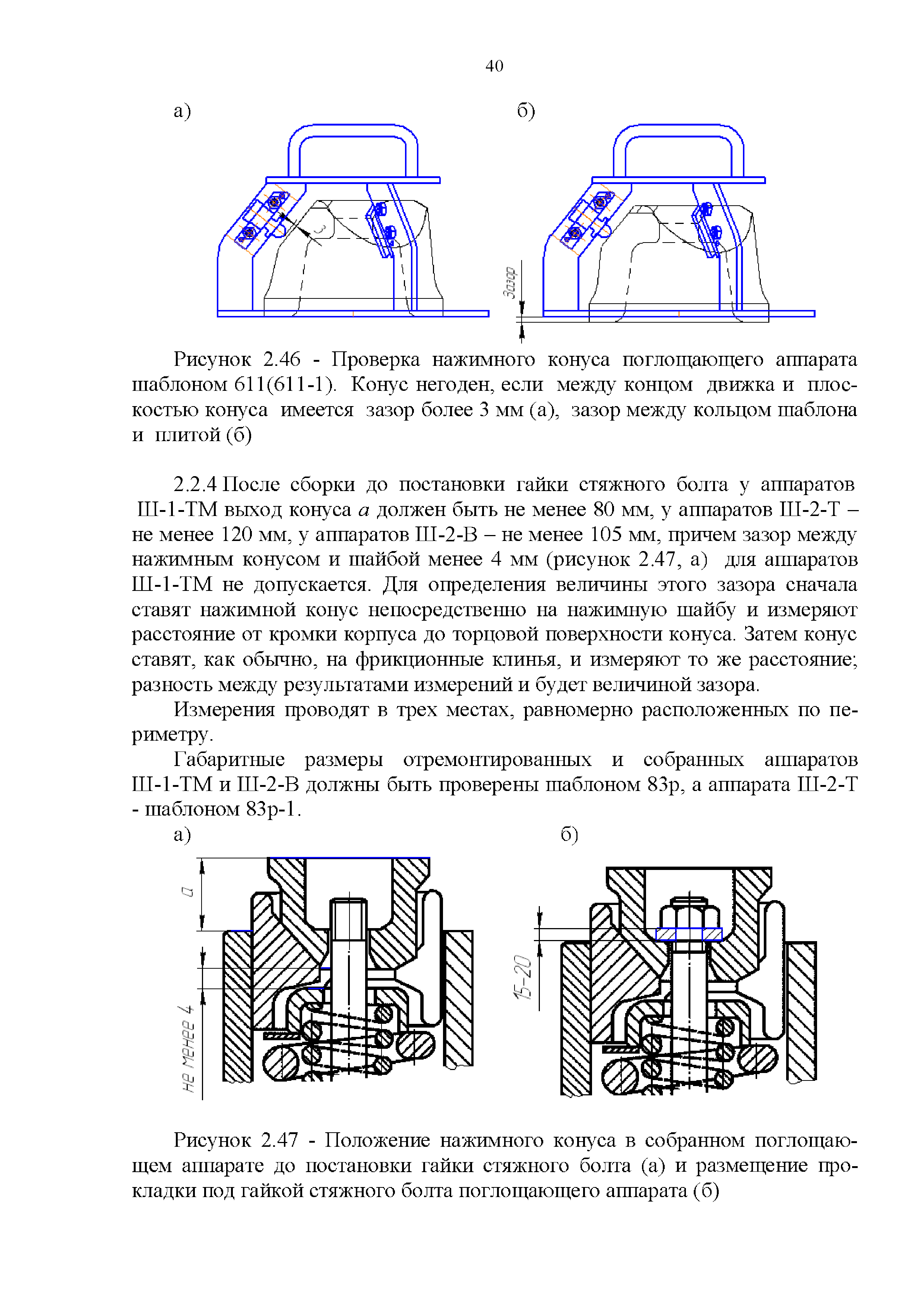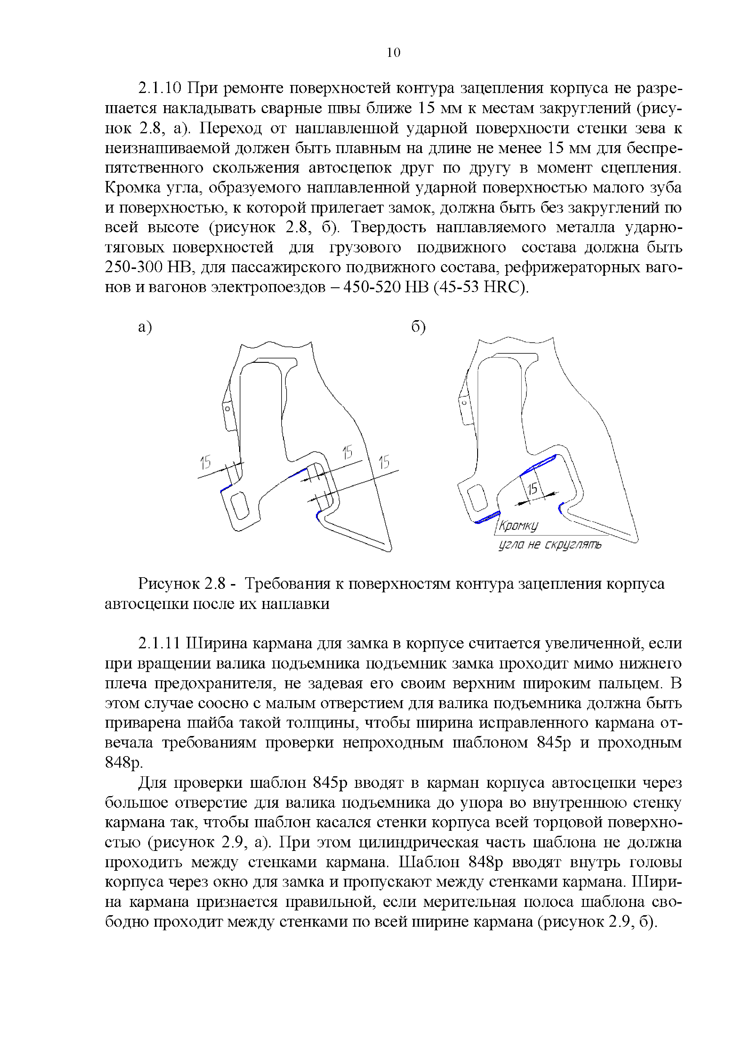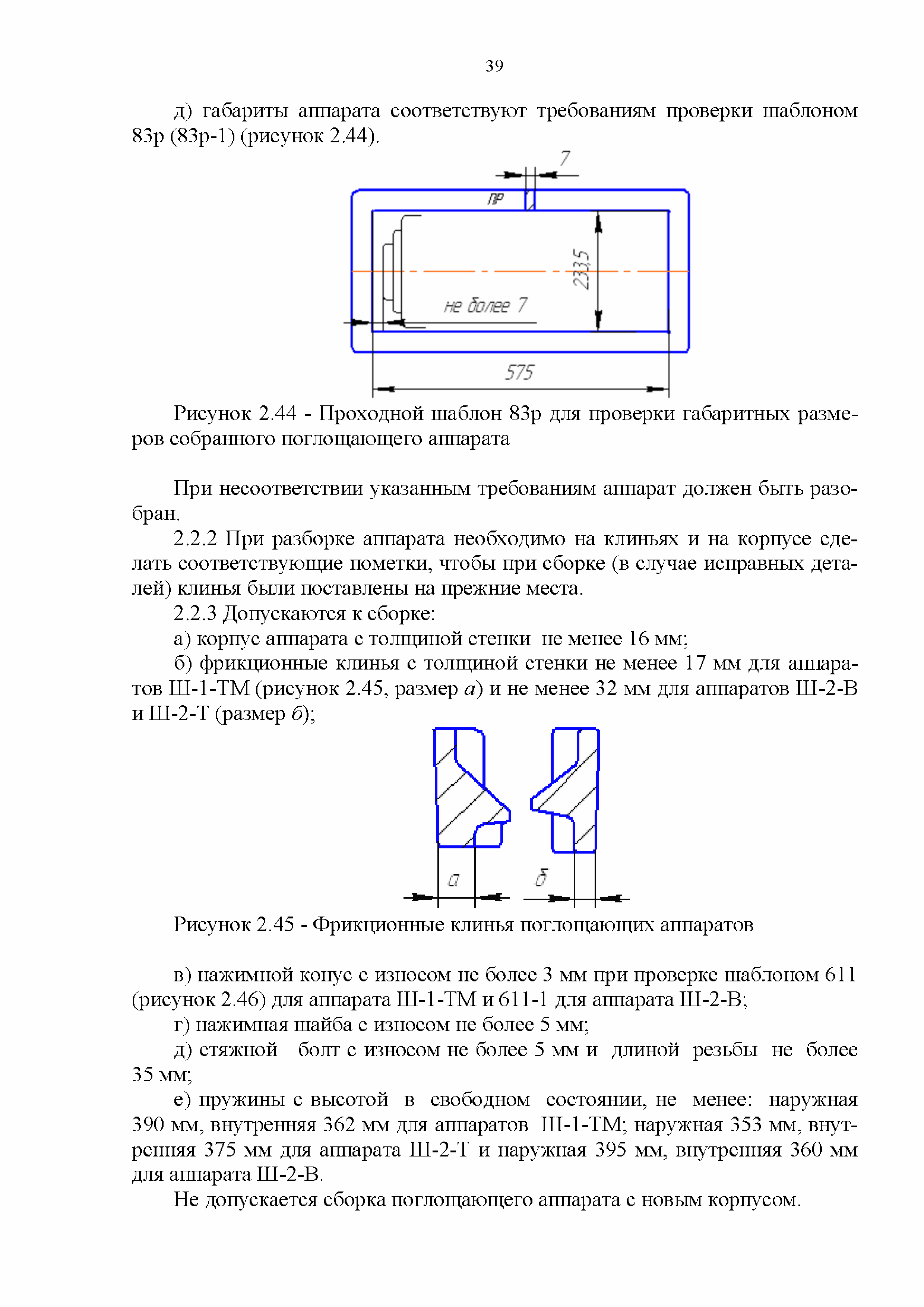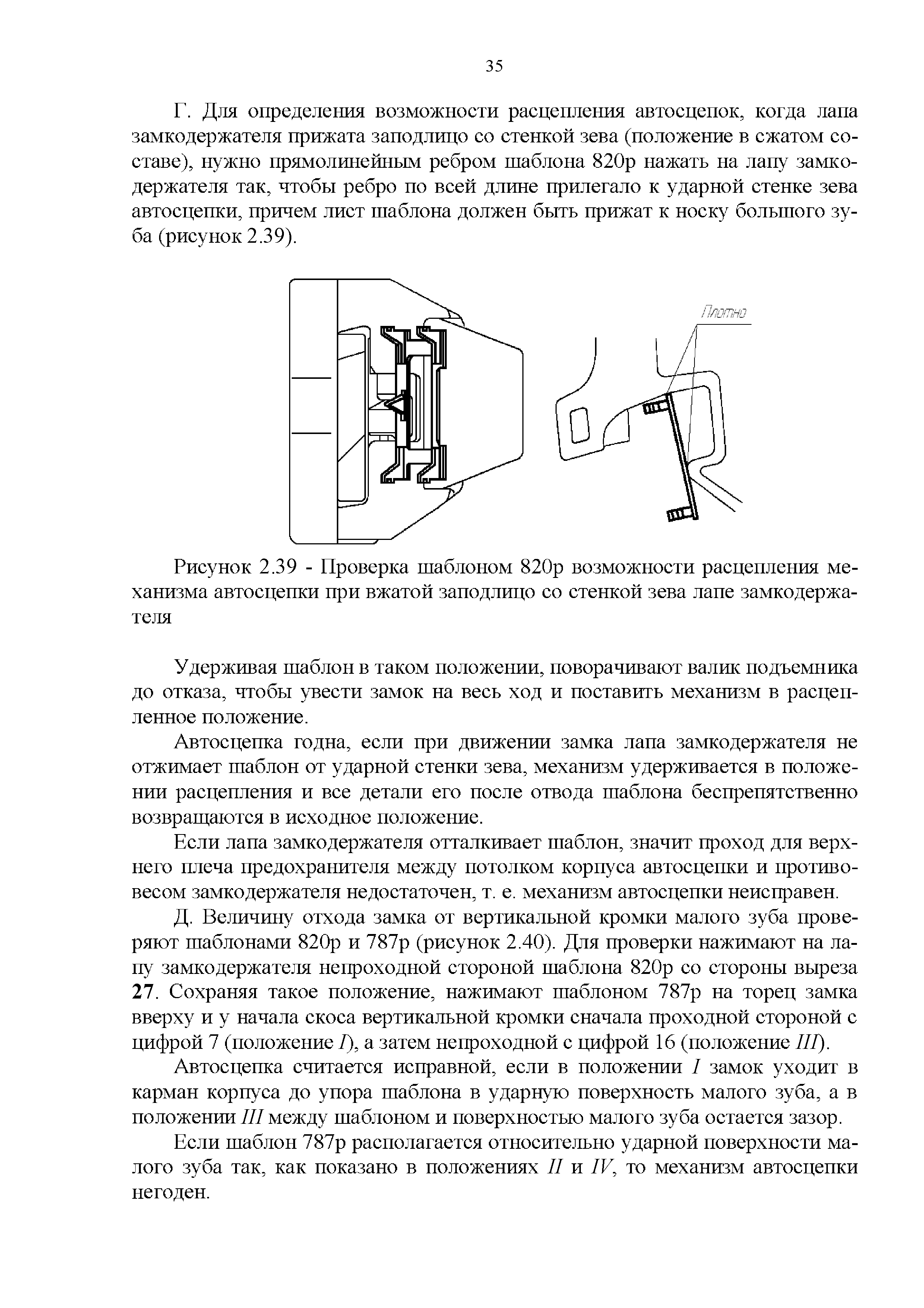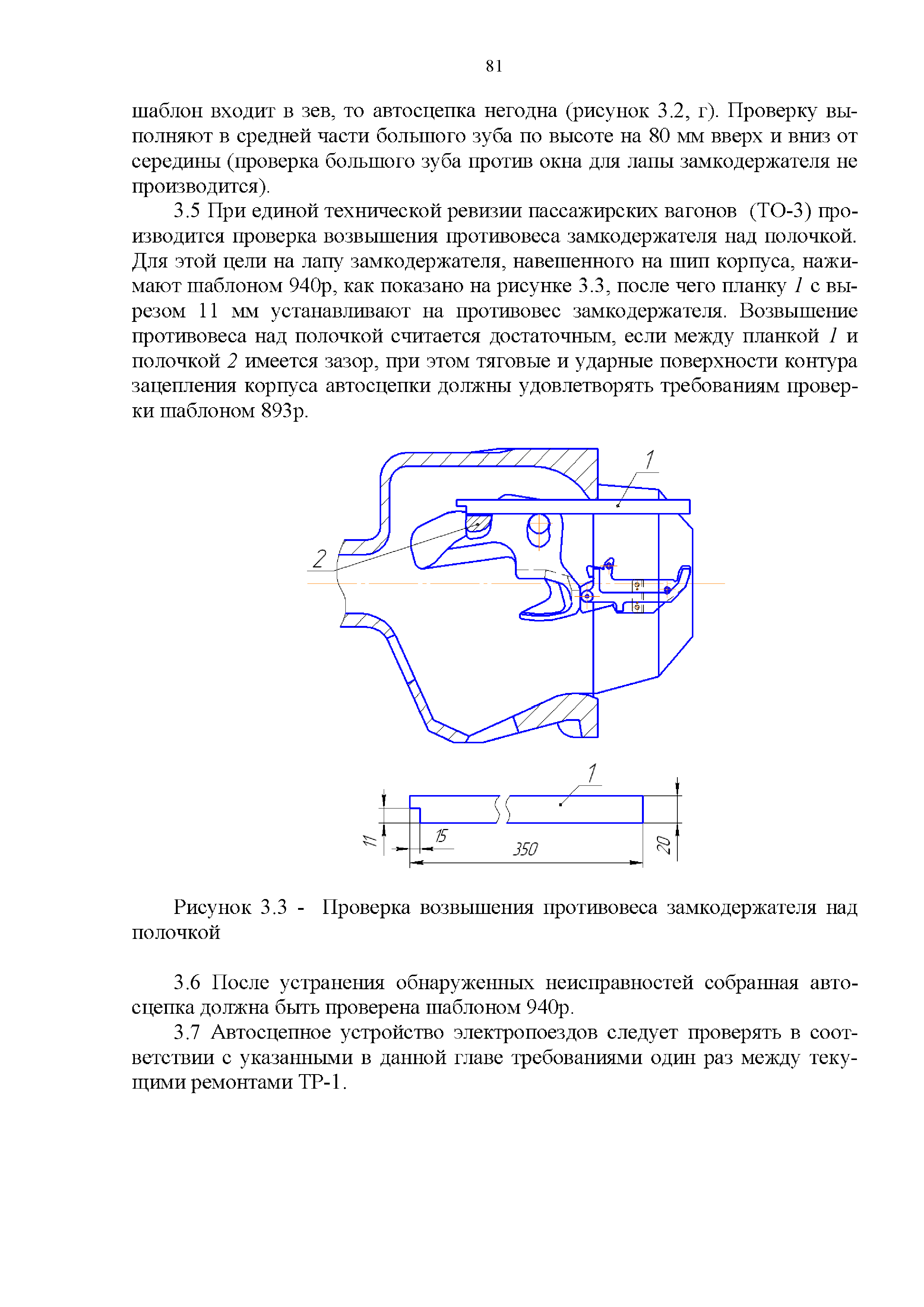 Инструкция по ремонту и обслуживанию автосцепного устройства подвижного состава железных дорог| Статус: | действует | | Название рус.: | Инструкция по ремонту и обслуживанию автосцепного устройства подвижного состава железных дорог | | Дата добавления в базу: | 01.02.2020 | | Дата актуализации: | 01.01.2021 | | Область применения: | Документ предназначен для работников контрольных пунктов автосцепки (КПА) депо и отделений по ремонту автосцепки вагоно- и локомотиворемонтных заводов, а также для специализированных подразделений предприятий по ремонту подвижного состава любой формы собственности, имеющих аттестат установленной формы, выданный железнодорожной администрацией. | | Оглавление: | 1 Общие положения 2 Полный осмотр 2.1 Автосцепка 2.2 Поглощающие аппараты 2.3. Тяговые хомуты 2.4 Клин, валик тягового хомута, упорная плита, передние и задние упоры, поддерживающая планка, планка против истирания 2.5 Детали центрирующего прибора 2.6 Расцепной привод 2.7 Клеймение и окраска отремонтированных и проверенных узлов и деталей автосцепного устройства 2.8 Установка автосцепного устройства 3 Наружный осмотр 4 Проверка автосцепного устройства при техническом обслуживании вагонов и локомотивов 5 Срок гарантии автосцепного устройства Приложение № 1. Примерный перечень оборудования и рекомендуемый технологической оснастки КПА и отделений автосцепки | | Утверждён: | 18.05.2010 Совет по железнодорожному транспорту Государств - участников Содружества (54)