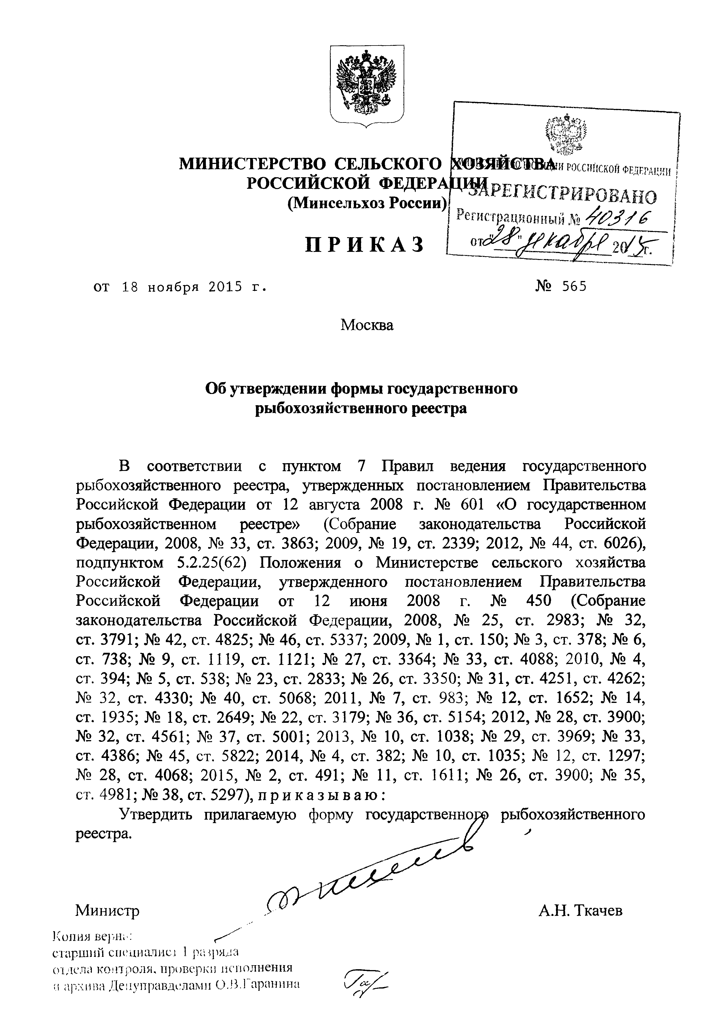 | Утверждён: | 18.11.2015 Министерство сельского хозяйства Российской Федерации (565)