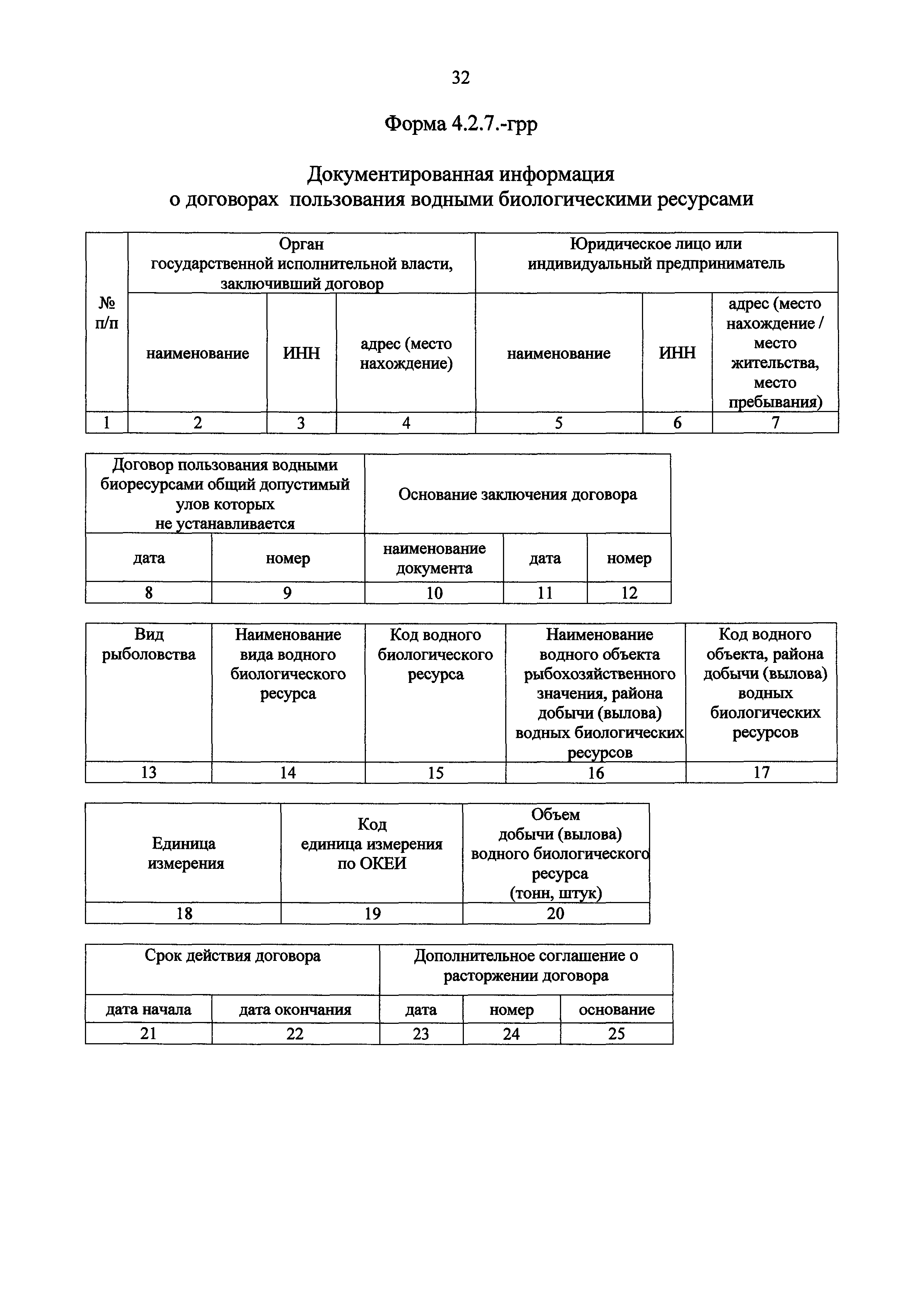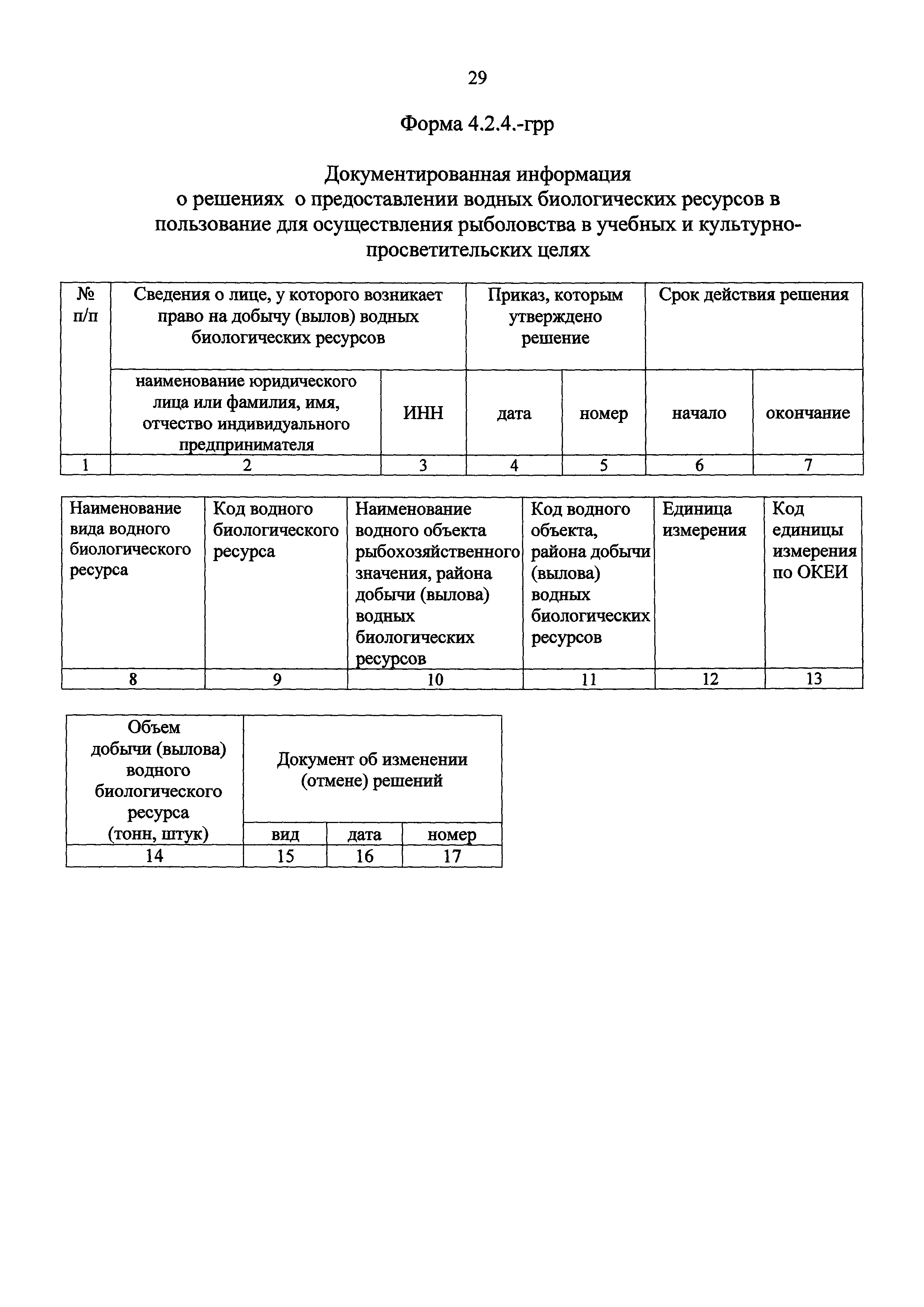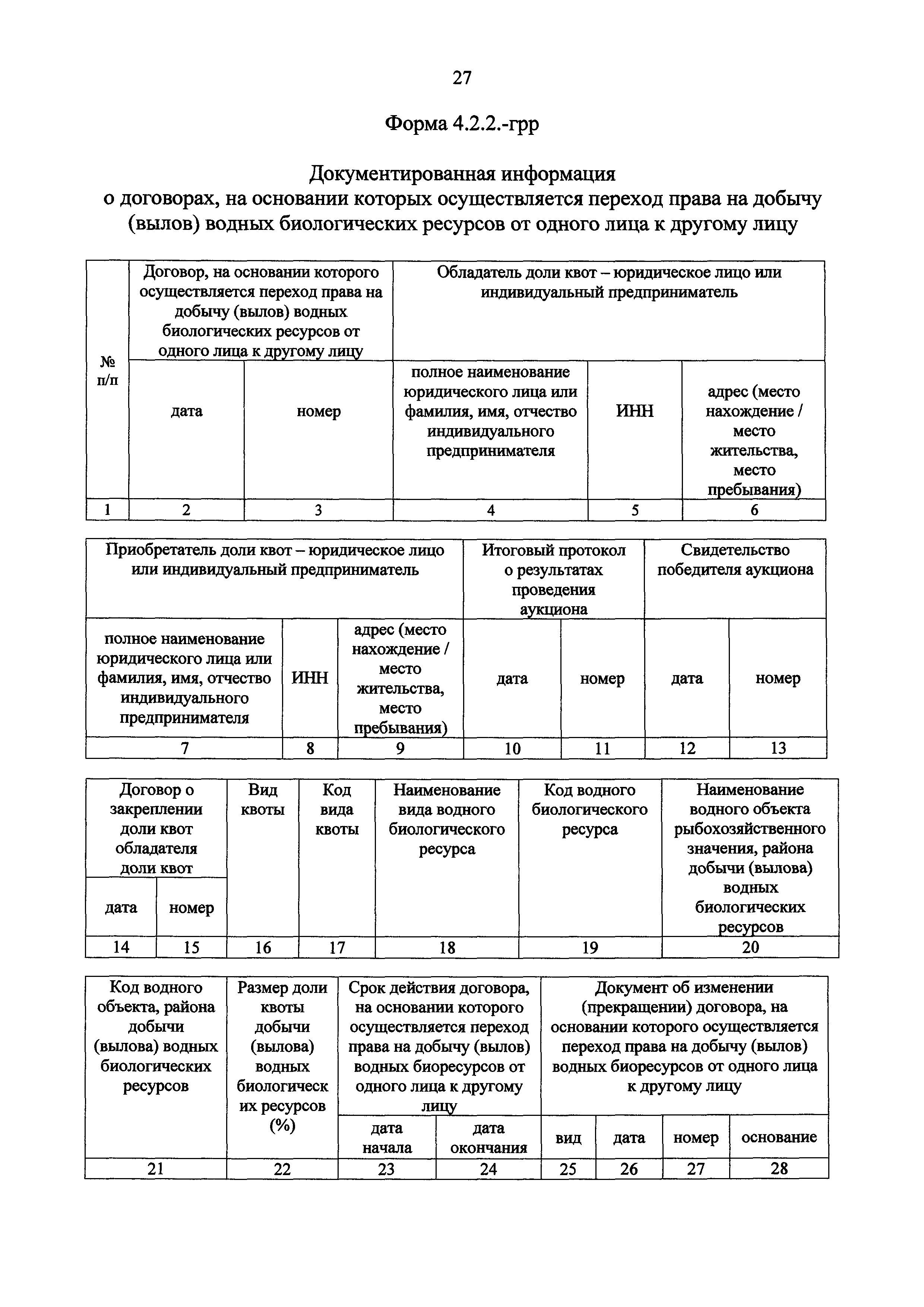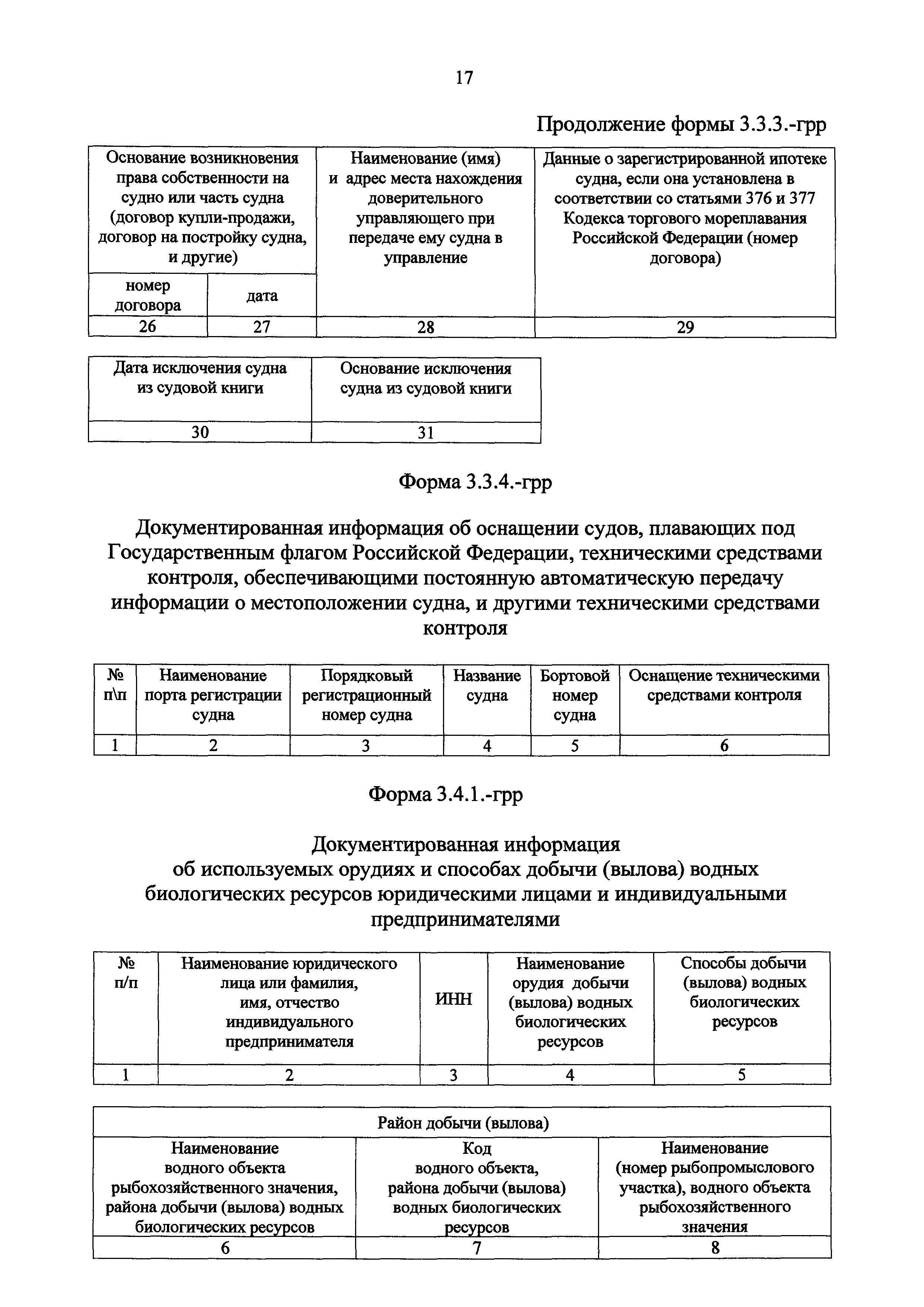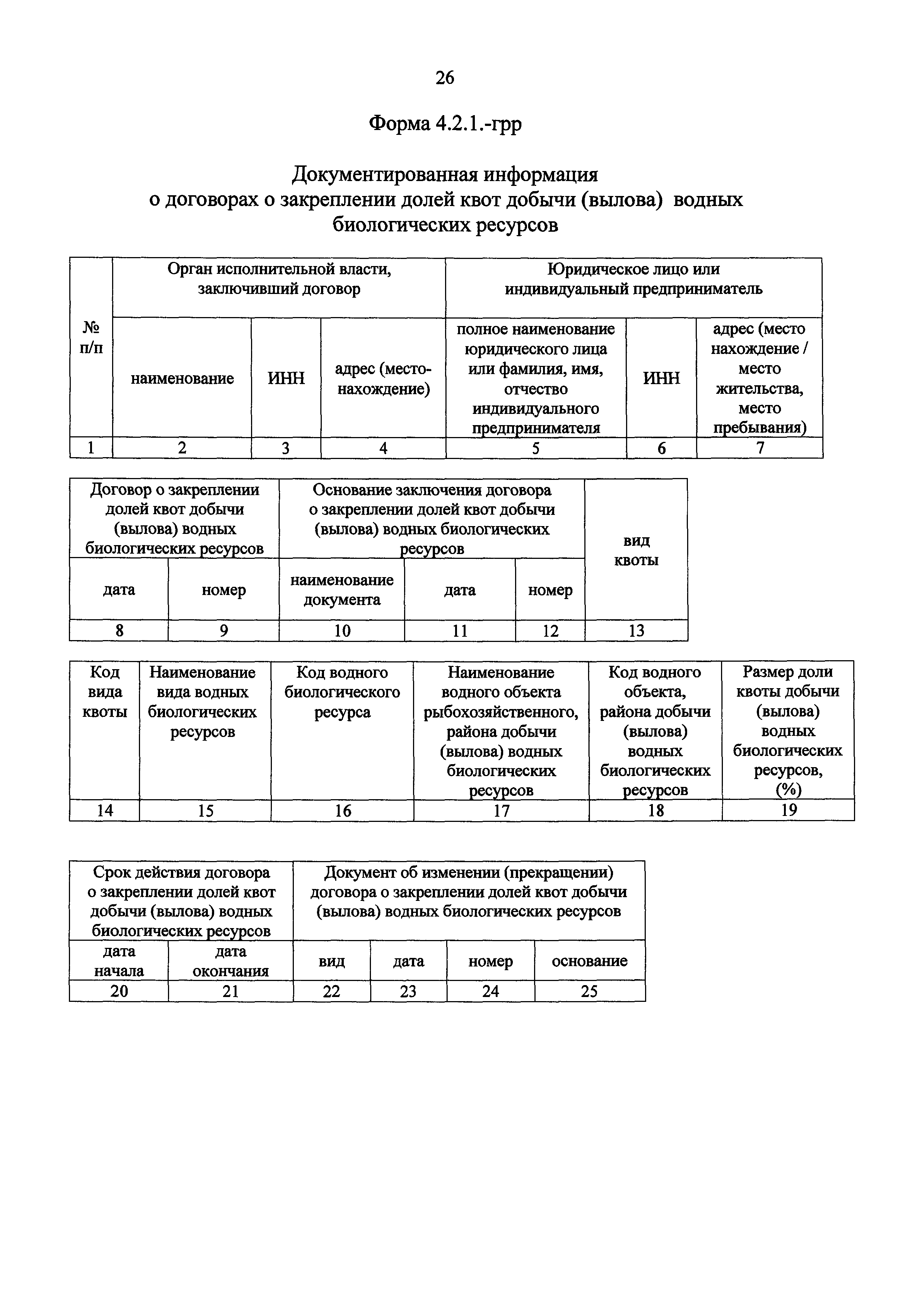 | Оглавление: | I. Структура формы государственного рыбохозяйственного реестра II. Формы по разделам государственного рыбохозяйственного реестра |