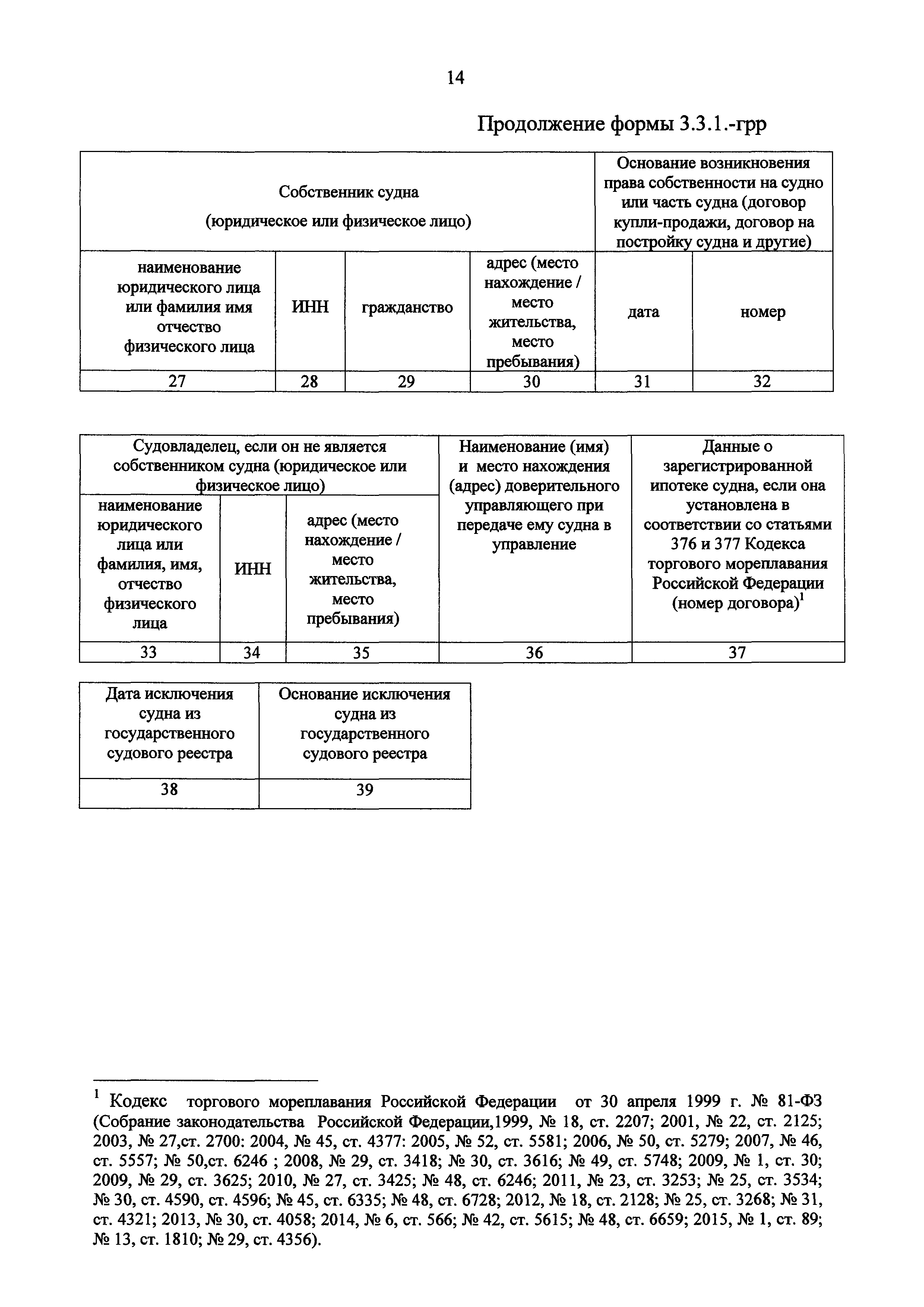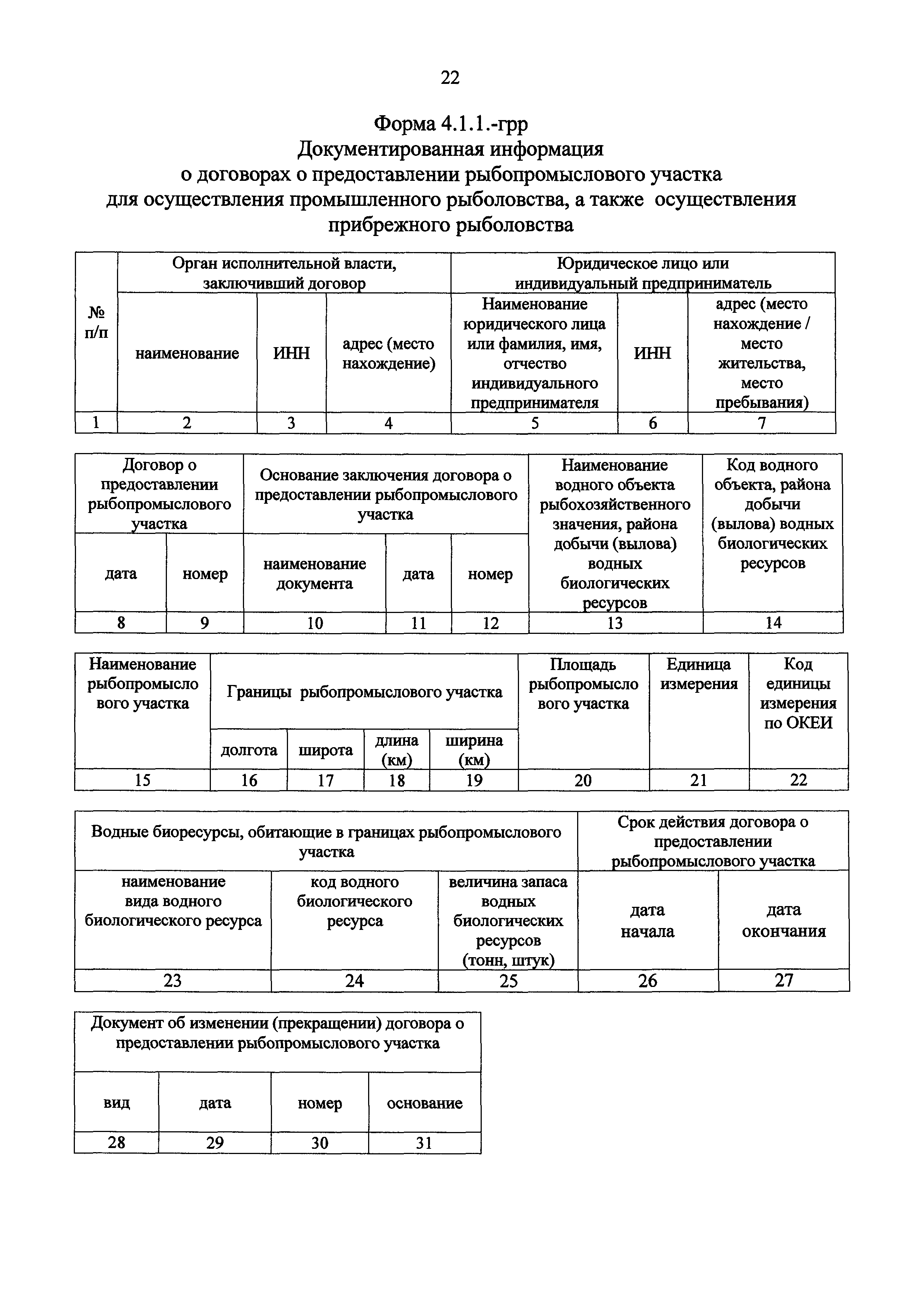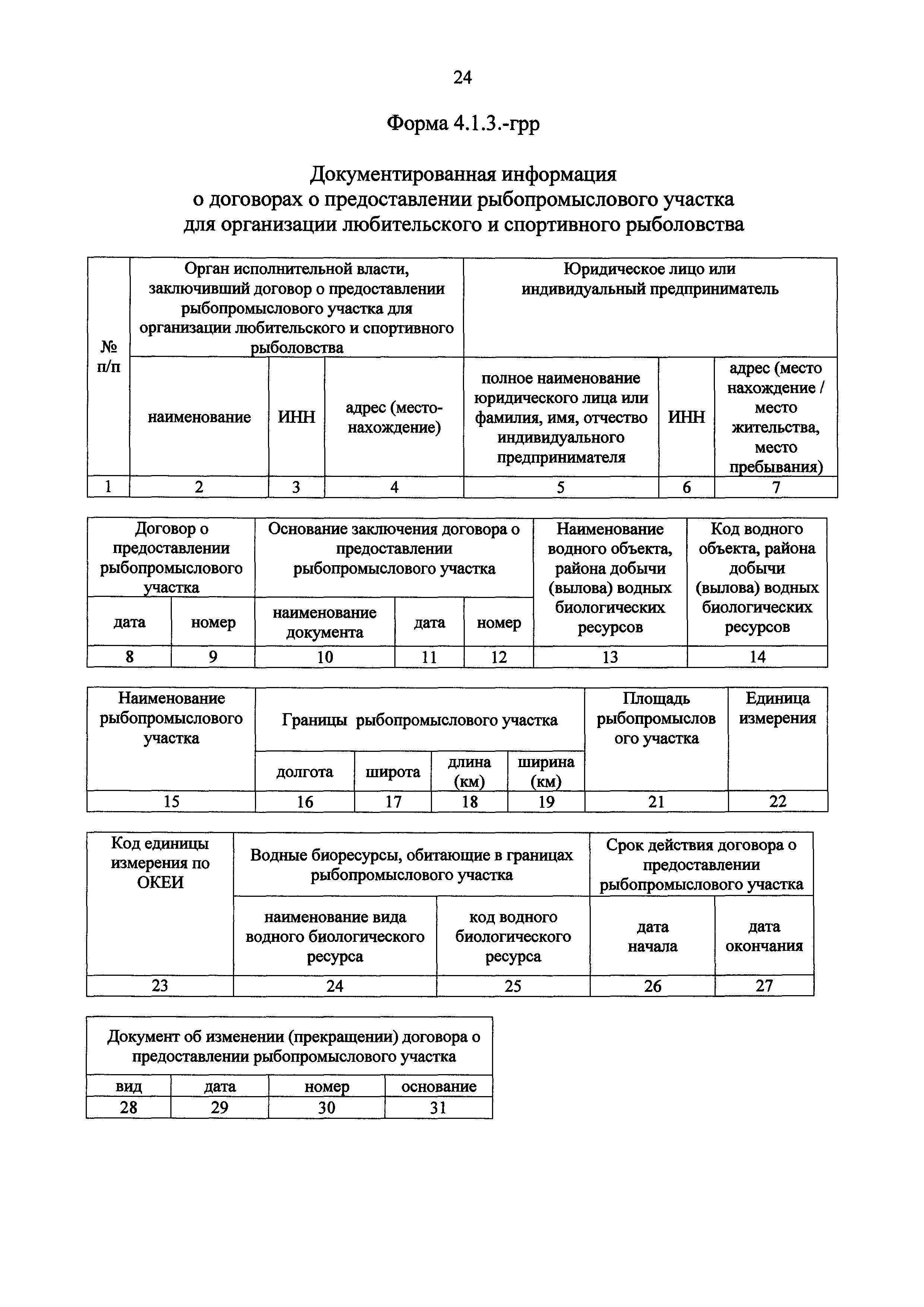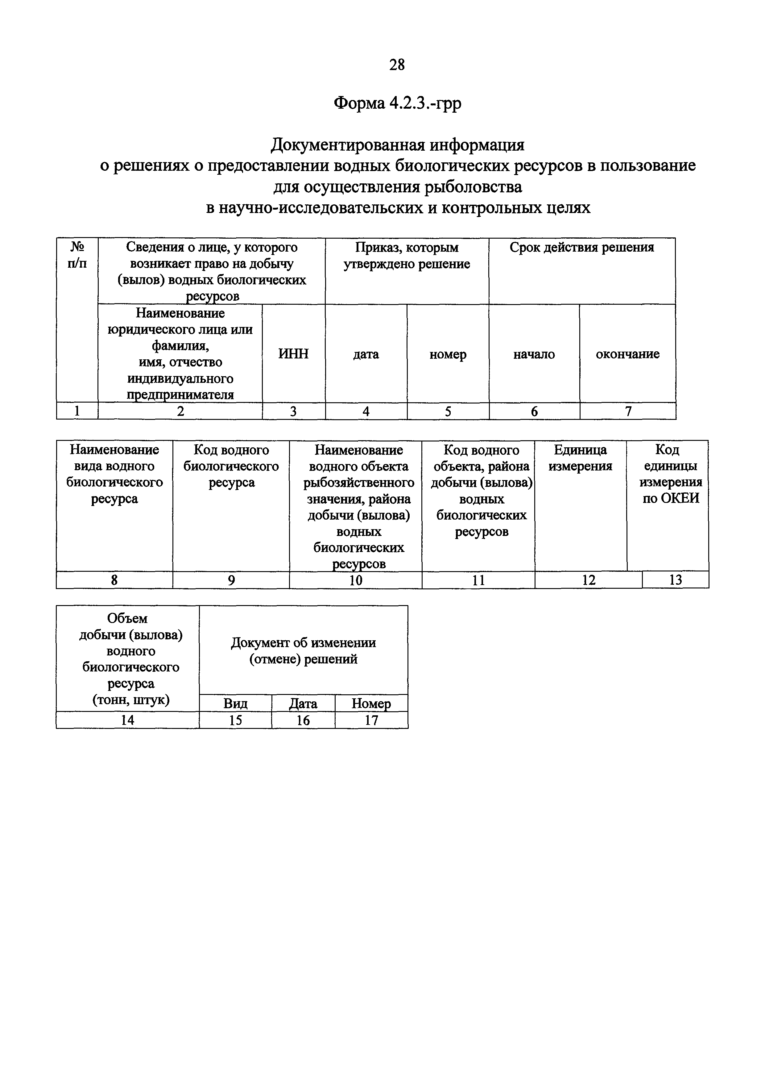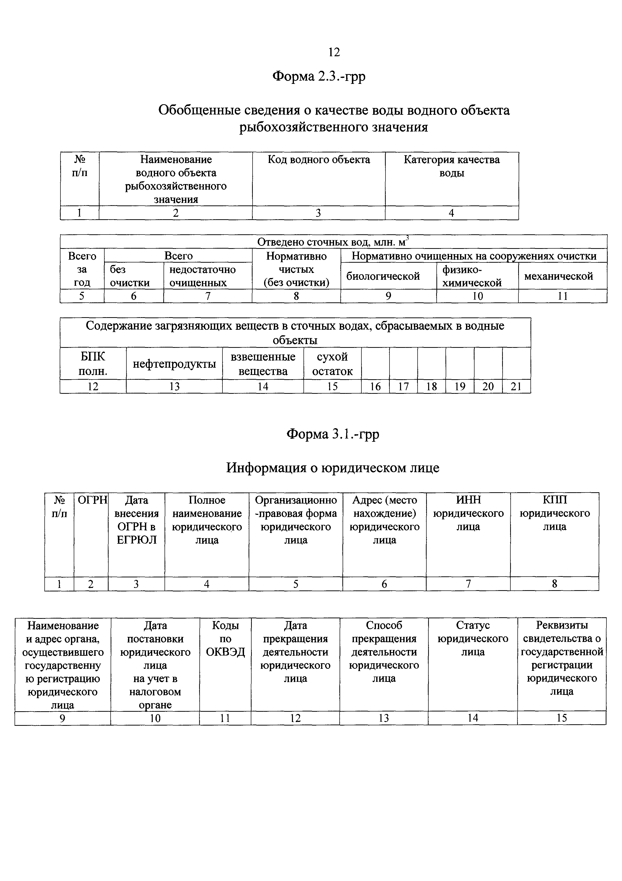 | Оглавление: | I. Структура формы государственного рыбохозяйственного реестра II. Формы по разделам государственного рыбохозяйственного реестра |