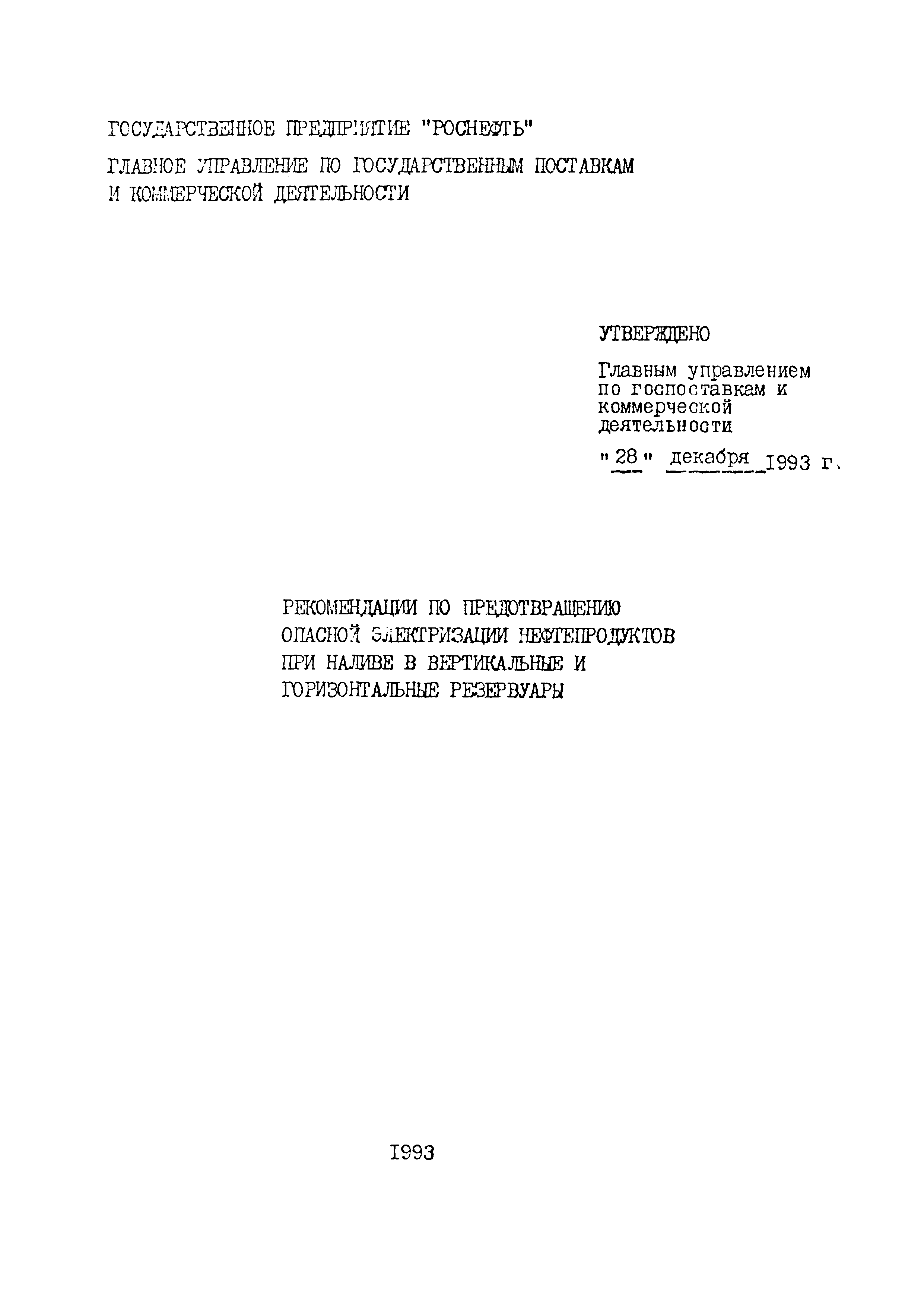 | Утверждён: | 28.12.1993 ГП Роснефть Управление по госпоставкам и коммерческой деятельности