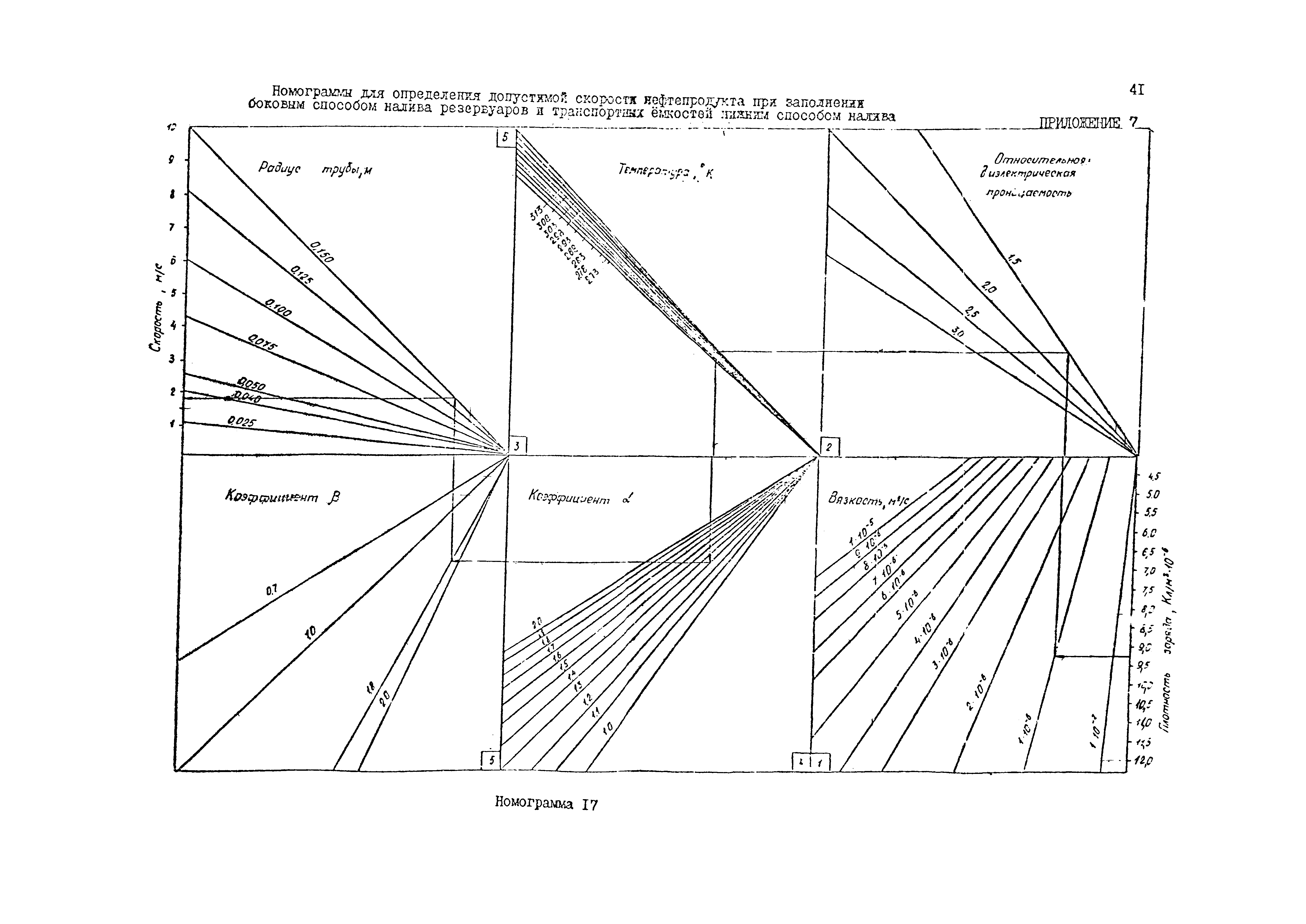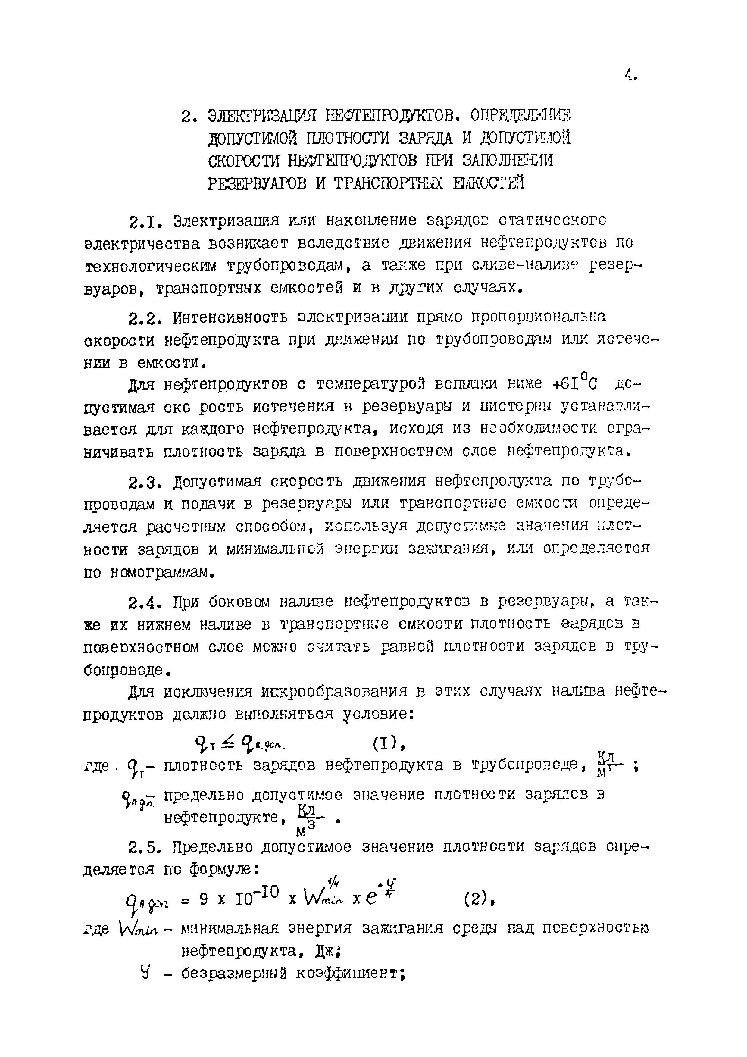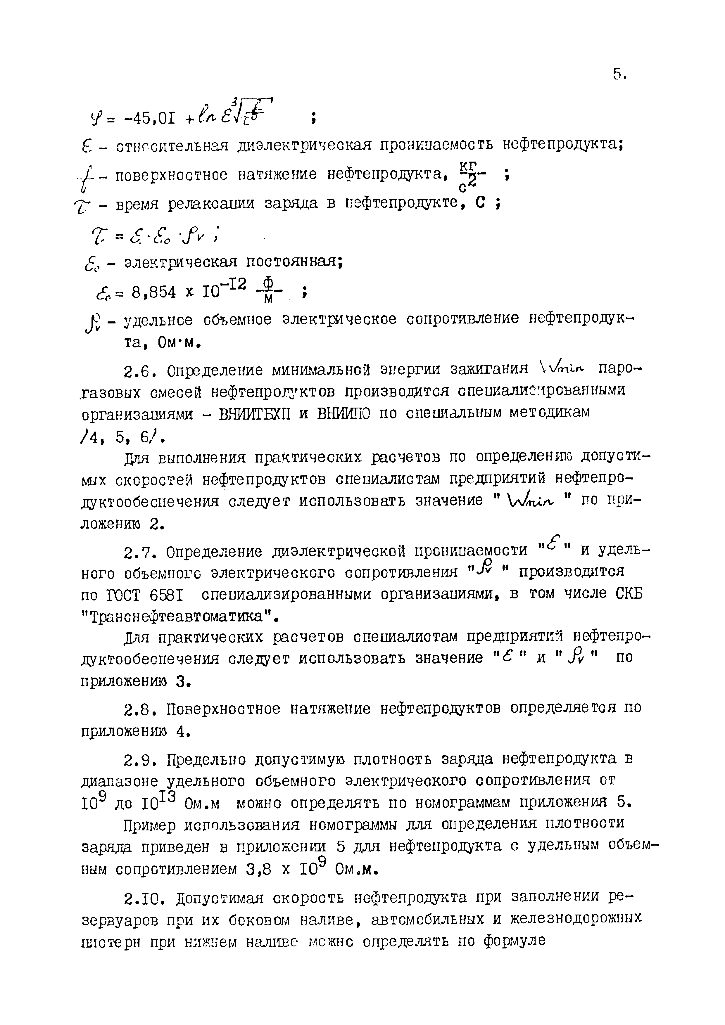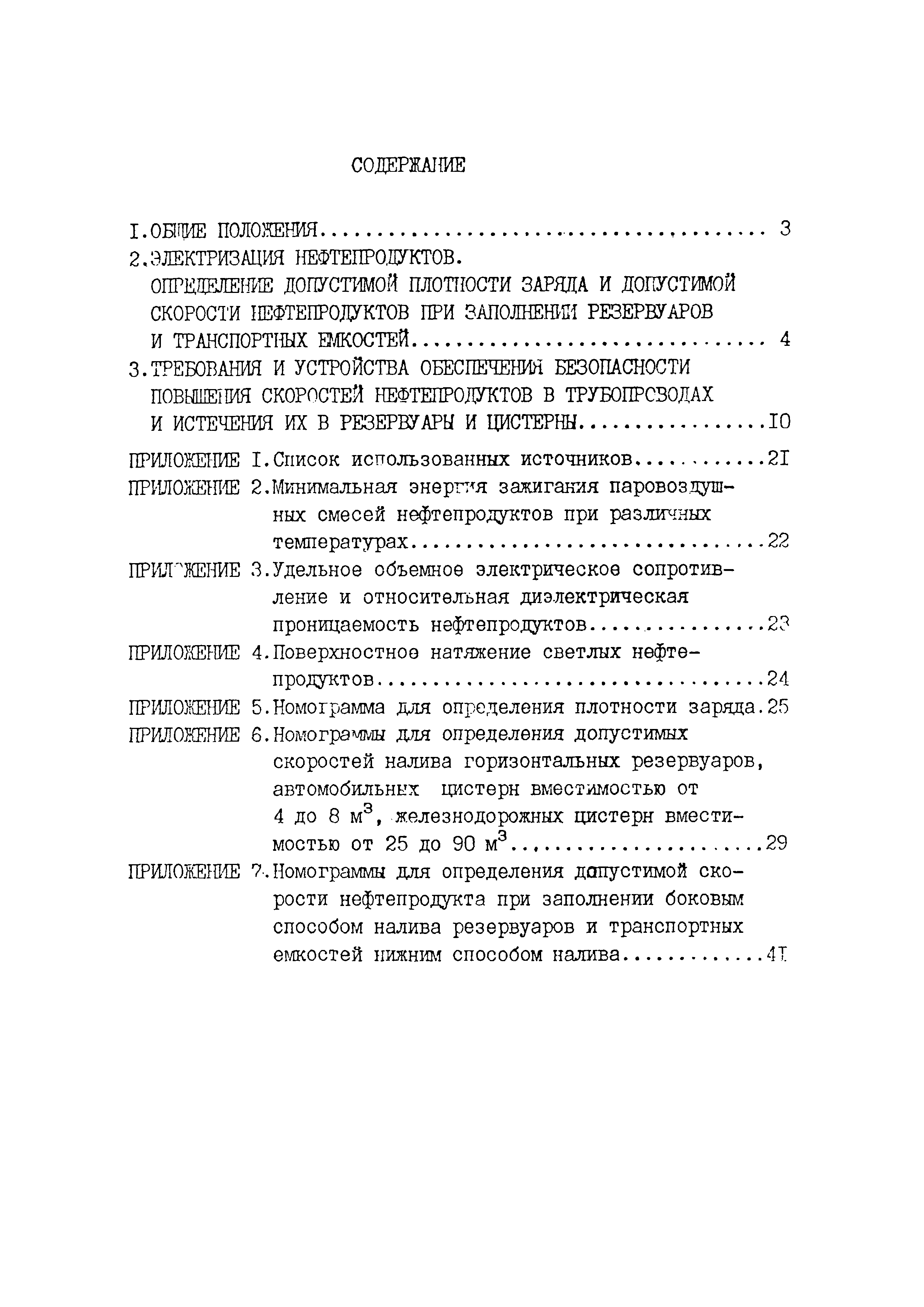 | Оглавление: | 1 Общие положения 2 Электризация нефтепродуктов. Определение допустимой плотности заряда и допустимой скорости нефтепродуктов при заполнении резервуаров и транспортных емкостей 3 Требования и устройства обеспечения безопасности повышения скоростей нефтепродуктов в трубопроводах и истечения их в резервуары и цистерны Приложение 1. Список использованных источников Приложение 2. Минимальная энергия зажигания паровоздушных смесей нефтепродуктов при различных температурах Приложение 3. Удельное объемное электрическое сопротивление и относительная диэлектрическая проницаемость нефтепродуктов Приложение 4.Поверхностное натяжение светлых нефтепродуктов Приложение 5. Номограмма для определения плотности заряда Приложение 6. Номограммы для определения допустимых скоростей налива горизонтальных резервуаров, автомобильных цистерн вместимостью от 4 до 8 м3, железнодорожных цистерн вместимостью от 25 до 90 м3 Приложение 7. Номограммы для определения допустимой скорости нефтепродукта при заполнении боковым способом налива резервуаров и транспортных емкостей нижним способом налива. |
