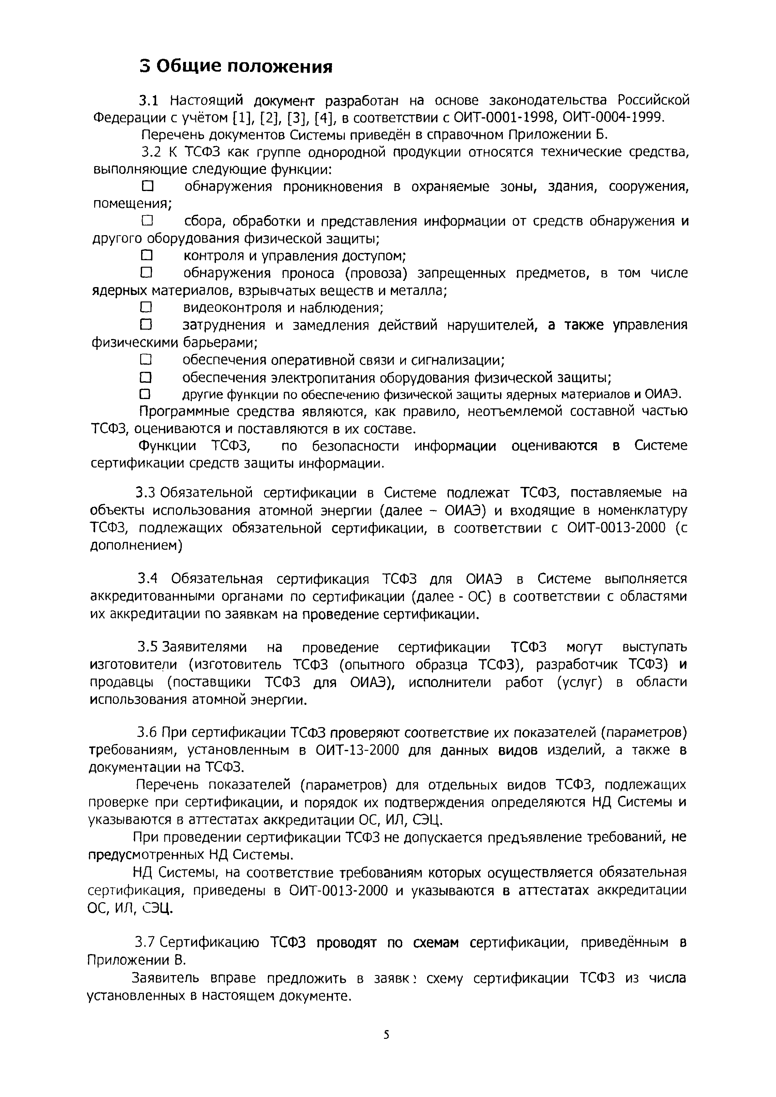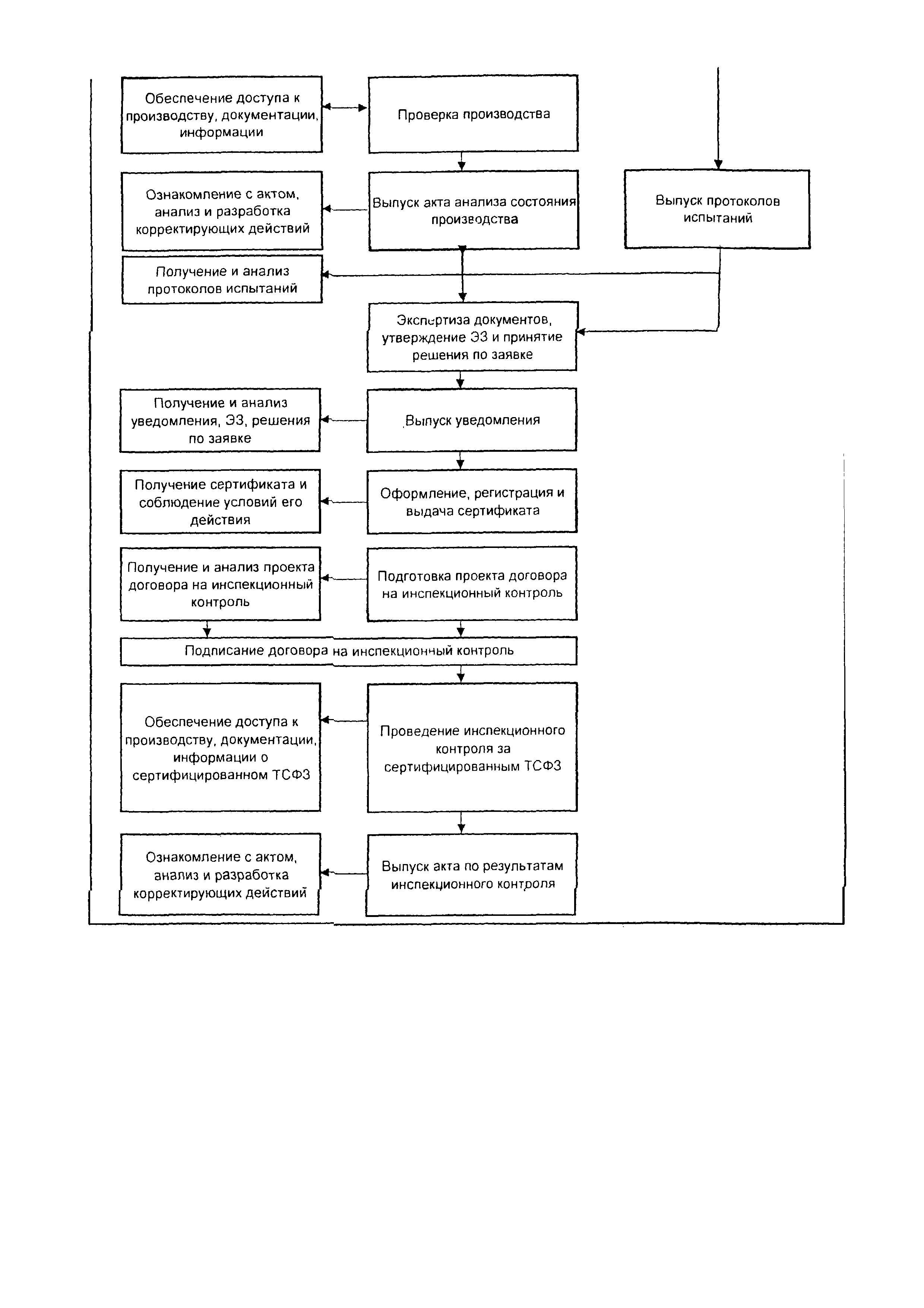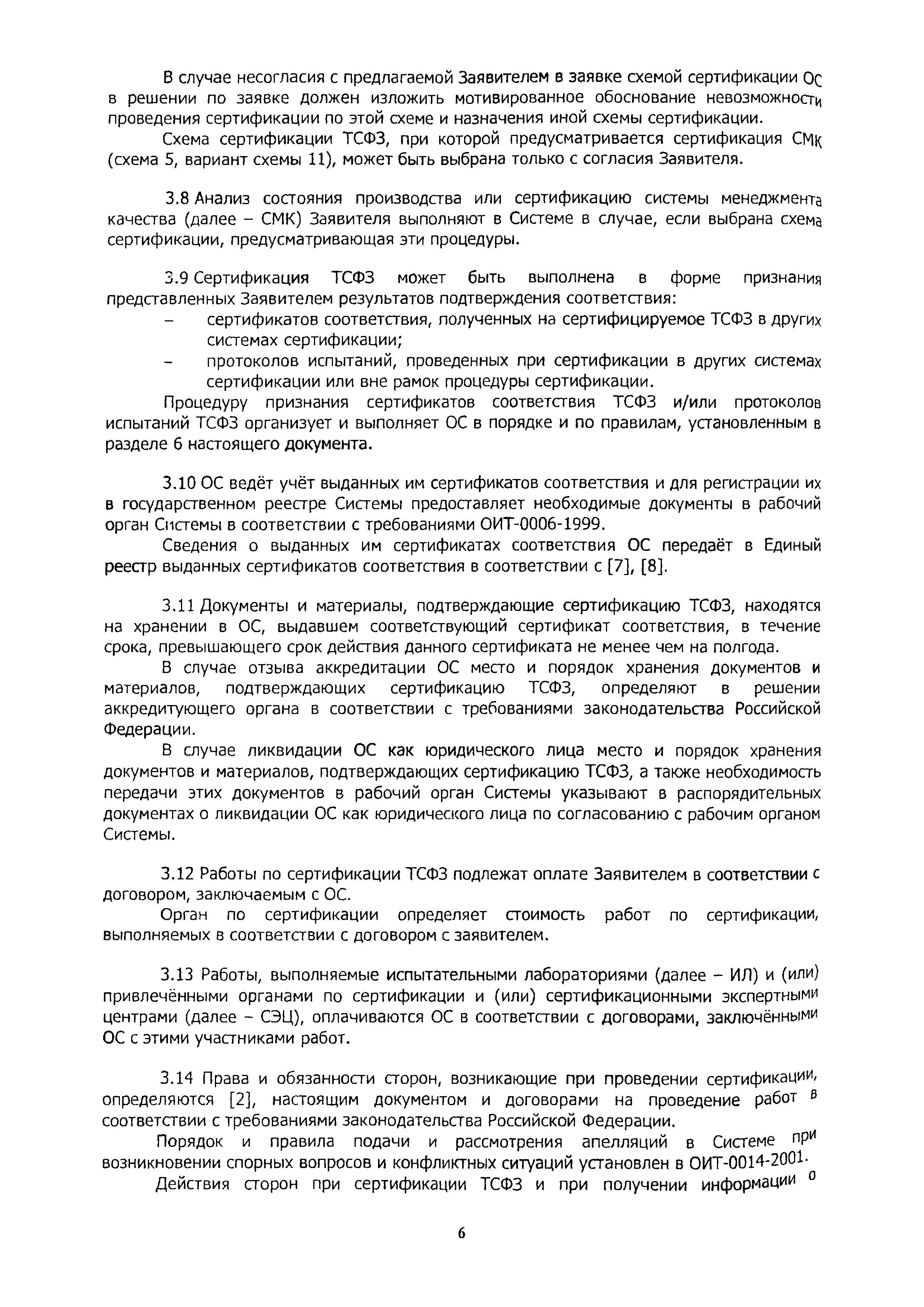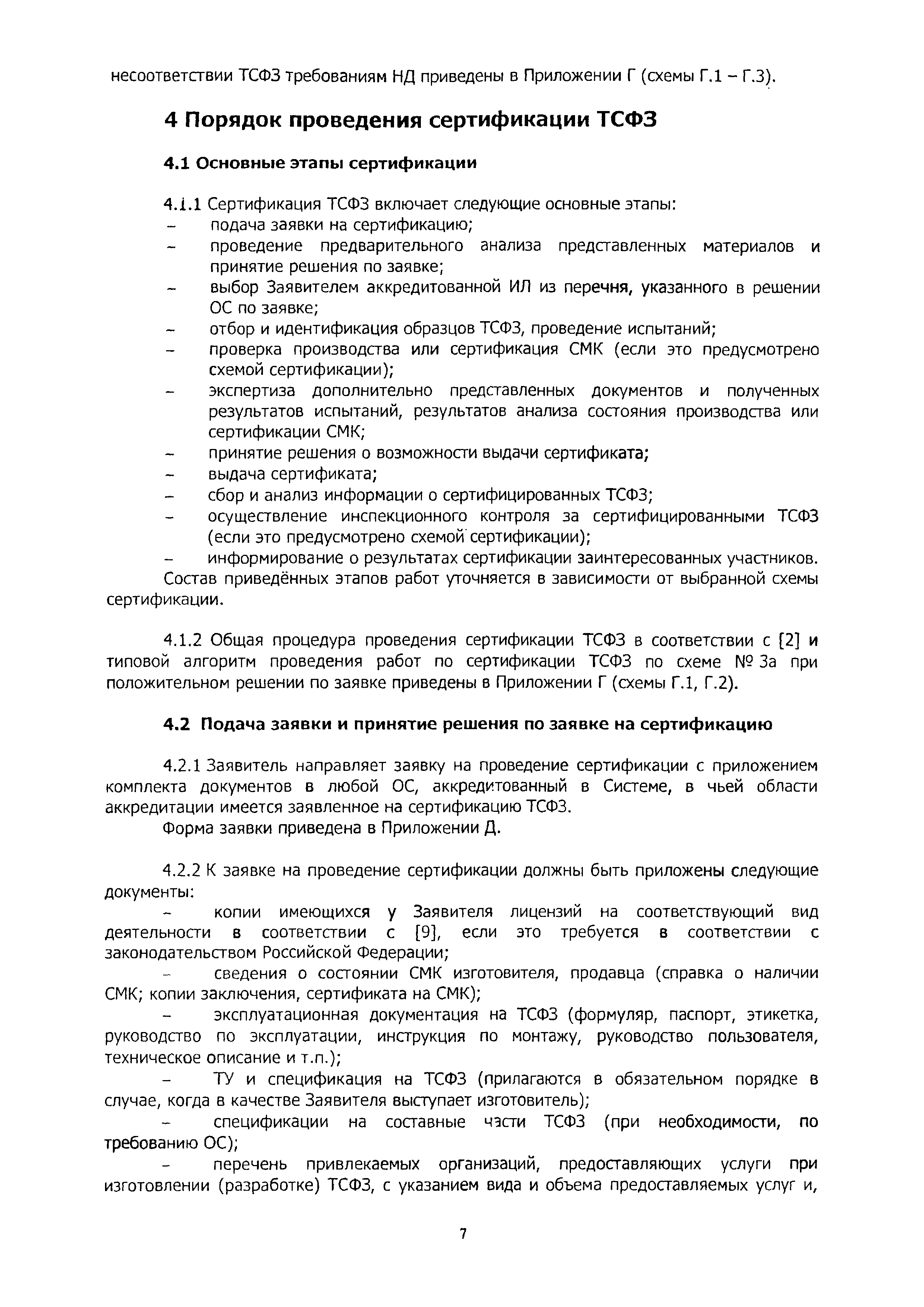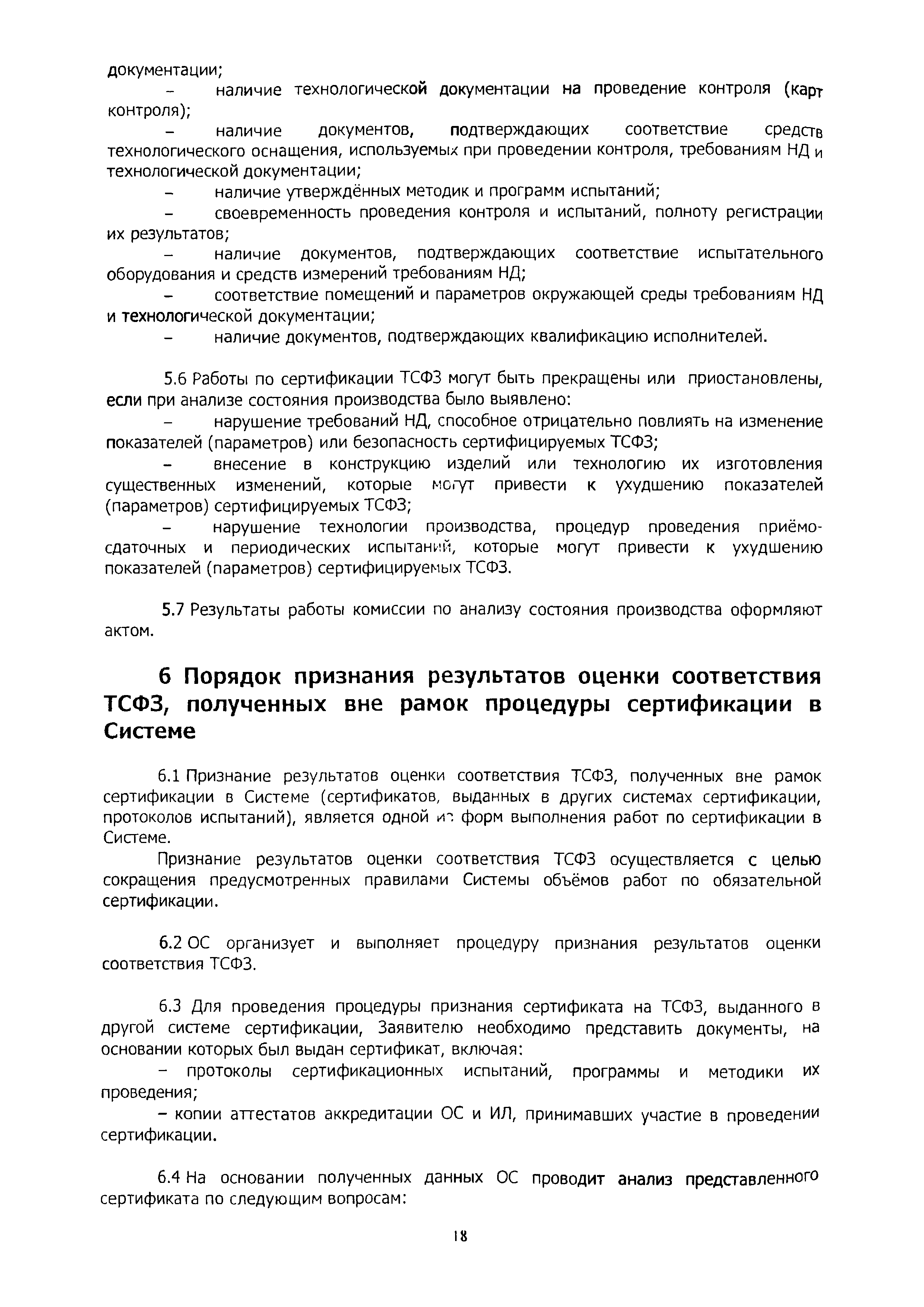 | Оглавление: | 1 Область применения 2 Нормативные ссылки, термины и сокращения 3 Общие положения 4 Порядок проведения сертификации ТСФЗ 4.1 Основные этапы сертификации 4.2 Подача заявки и принятие решения по заявке на сертификацию 4.3 Отбор, идентификация образцов ТСФЗ и проведение испытаний 4.4 Анализ состояния производства (сертификация СМК) Заявителя 4.5 Экспертиза документов и полученных результатов 4.6 Принятие решения о возможности выдачи сертификата 4.7 Порядок выдачи сертификата 4.8 Сбор и анализ информации о сертифицированных ТСФЗ 4.9 Инспекционный контроль за сертифицированными ТСФЗ и информирование о результатах сертификации 5 Порядок проведения анализа состояния производства 6 Порядок признания результатов оценки соответствия ТСФЗ, полученных вне рамок процедуры сертификации в Системе 7 Переходные положения Приложение А Библиография Приложение Б Перечень документов Системы сертификации ОИТ Приложение В Схемы сертификации ТСФЗ Приложение Г Алгоритм проведения работ по сертификации ТСФЗ Приложение Д Форма заявки на проведение сертификации ТСФЗ Приложение Е Форма решения органа по сертификации по заявке Приложение Ж Рекомендации по структуре и содержанию экспертного заключения Приложение И Форма уведомления о выдаче (отказе в выдаче) сертификата соответствия на ТСФЗ |