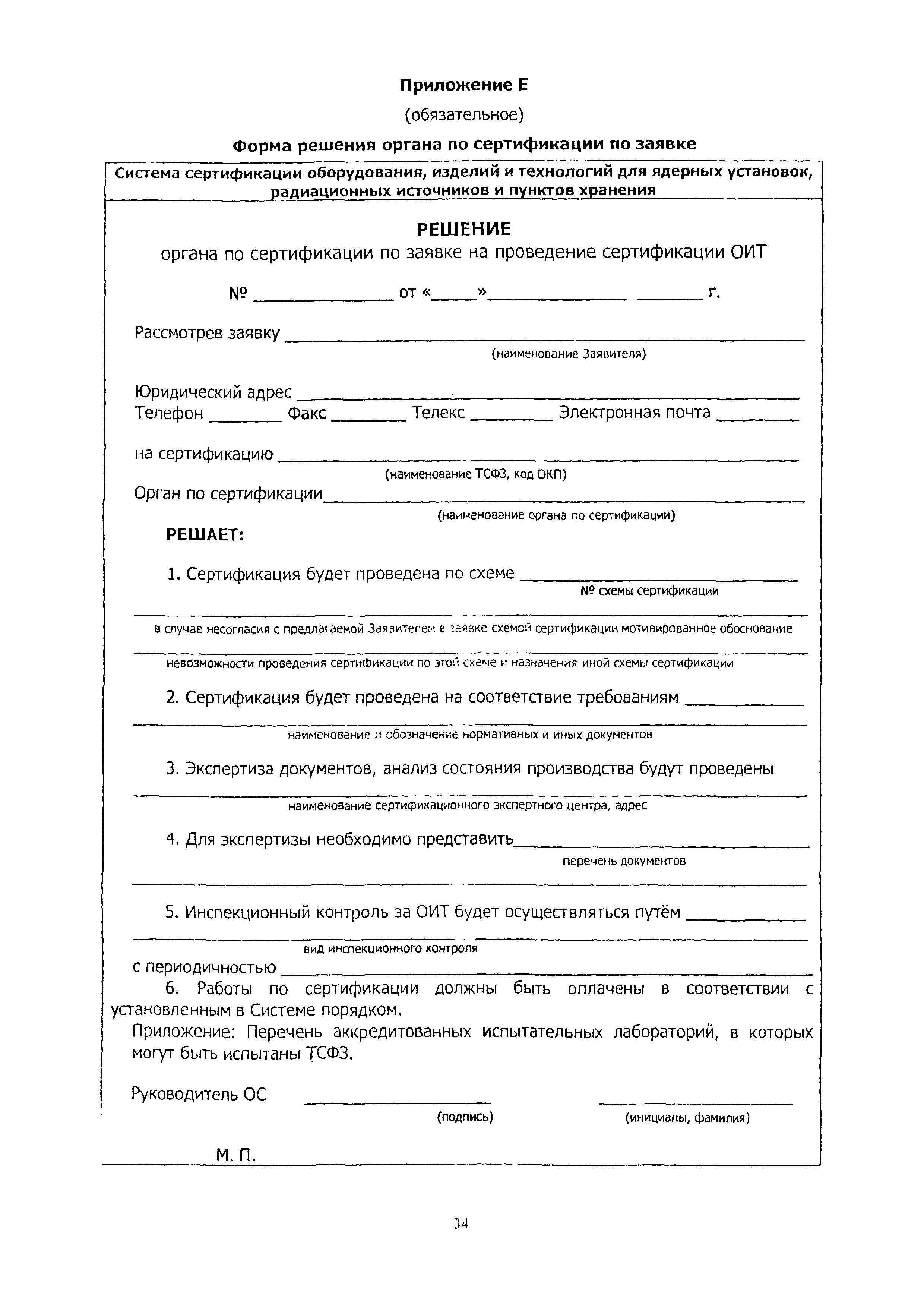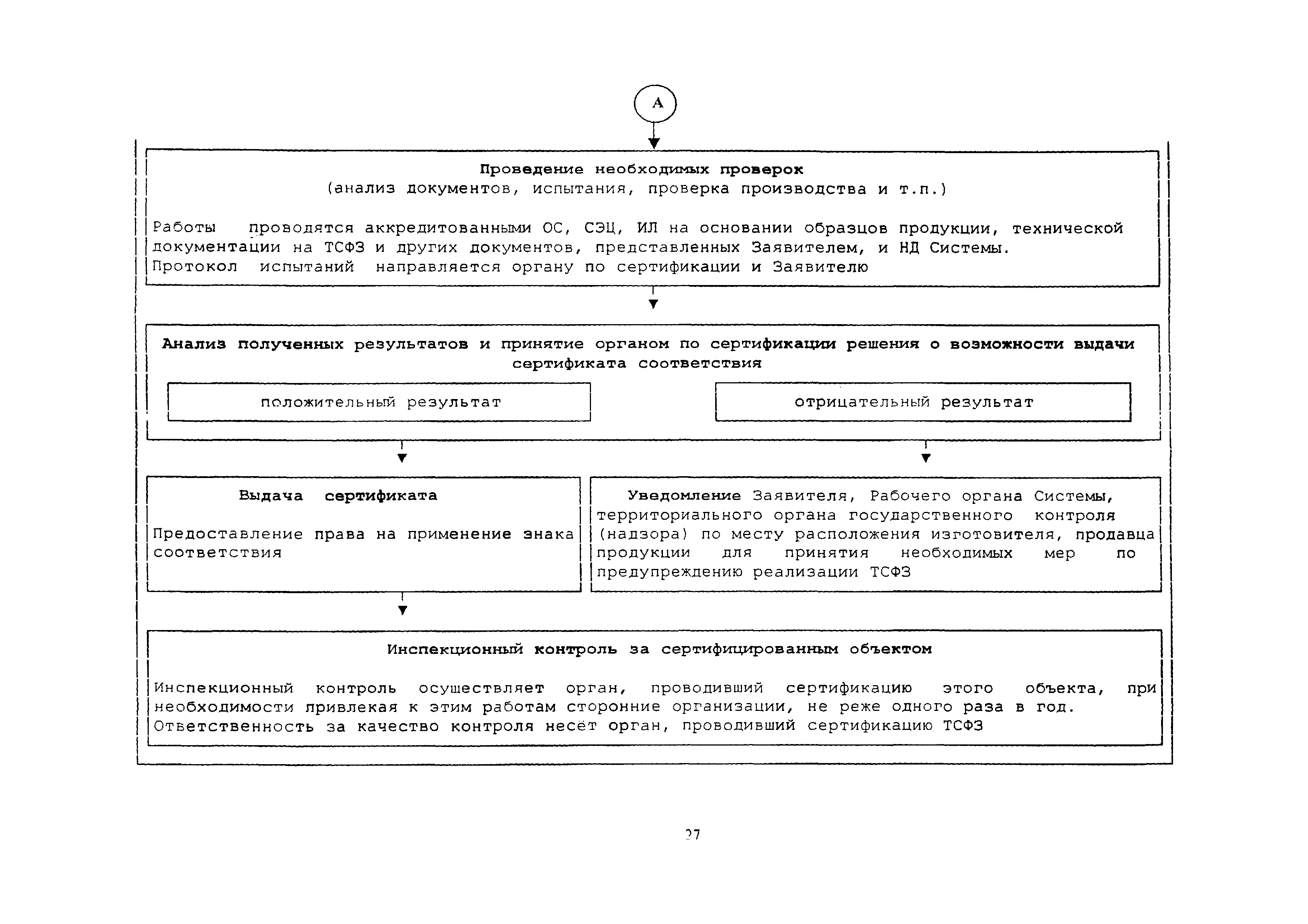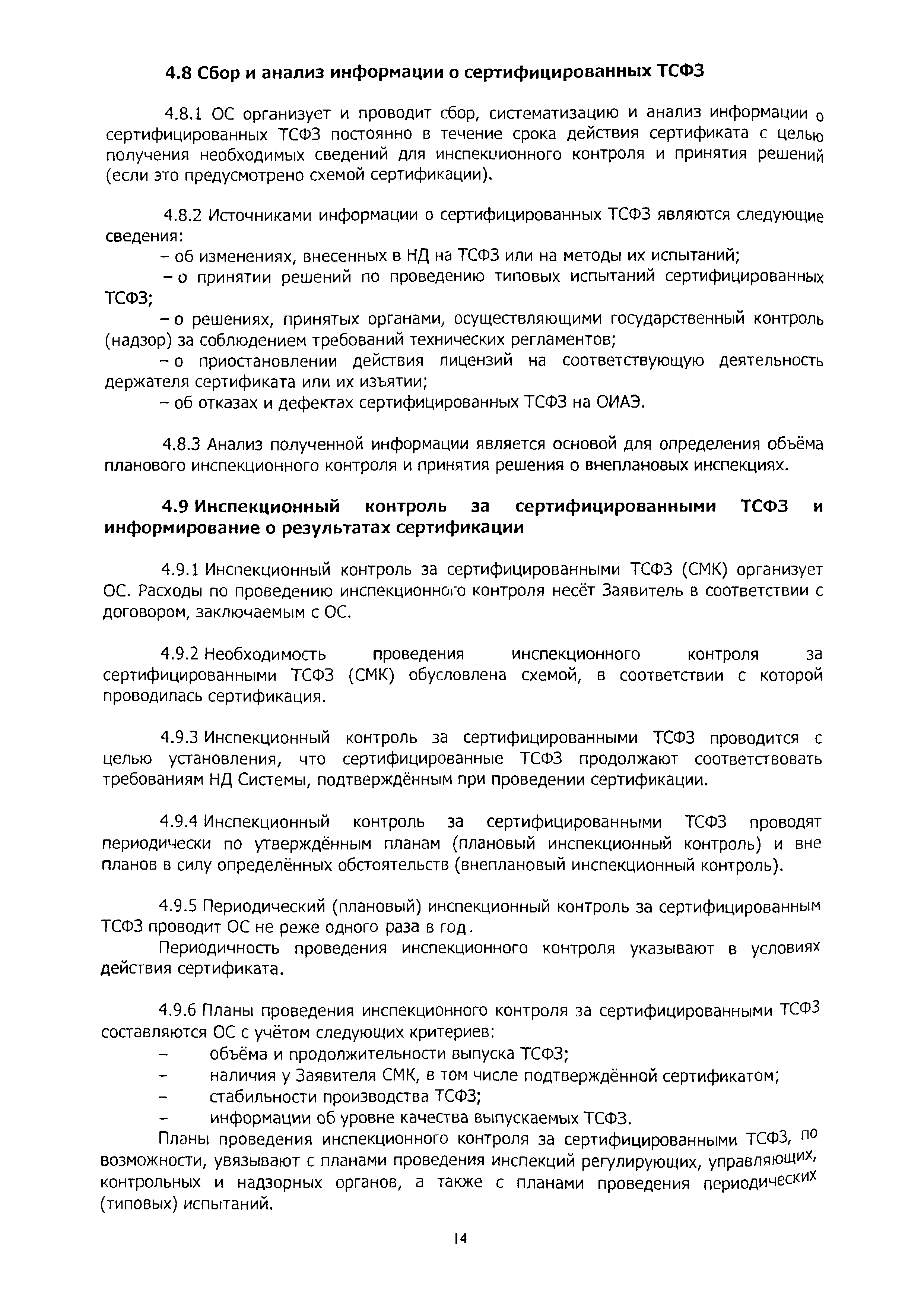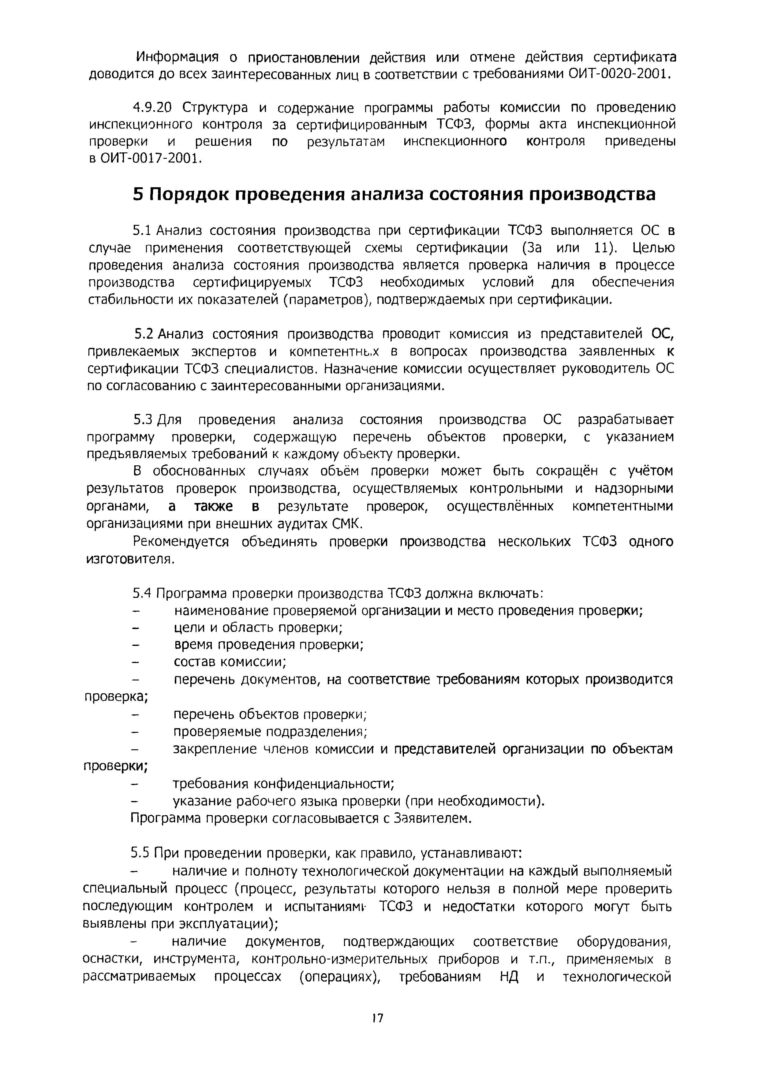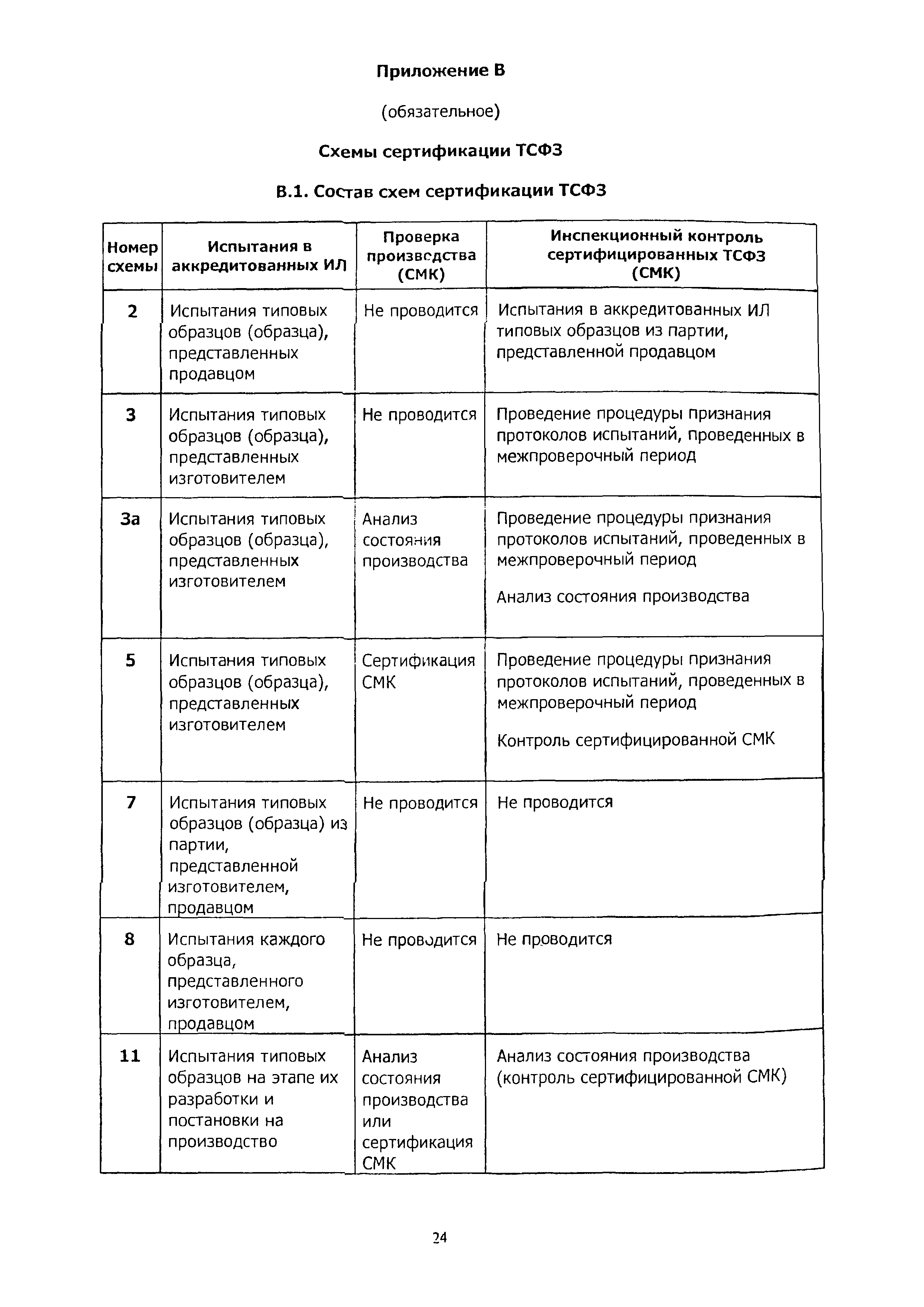 | Оглавление: | 1 Область применения 2 Нормативные ссылки, термины и сокращения 3 Общие положения 4 Порядок проведения сертификации ТСФЗ 4.1 Основные этапы сертификации 4.2 Подача заявки и принятие решения по заявке на сертификацию 4.3 Отбор, идентификация образцов ТСФЗ и проведение испытаний 4.4 Анализ состояния производства (сертификация СМК) Заявителя 4.5 Экспертиза документов и полученных результатов 4.6 Принятие решения о возможности выдачи сертификата 4.7 Порядок выдачи сертификата 4.8 Сбор и анализ информации о сертифицированных ТСФЗ 4.9 Инспекционный контроль за сертифицированными ТСФЗ и информирование о результатах сертификации 5 Порядок проведения анализа состояния производства 6 Порядок признания результатов оценки соответствия ТСФЗ, полученных вне рамок процедуры сертификации в Системе 7 Переходные положения Приложение А Библиография Приложение Б Перечень документов Системы сертификации ОИТ Приложение В Схемы сертификации ТСФЗ Приложение Г Алгоритм проведения работ по сертификации ТСФЗ Приложение Д Форма заявки на проведение сертификации ТСФЗ Приложение Е Форма решения органа по сертификации по заявке Приложение Ж Рекомендации по структуре и содержанию экспертного заключения Приложение И Форма уведомления о выдаче (отказе в выдаче) сертификата соответствия на ТСФЗ |