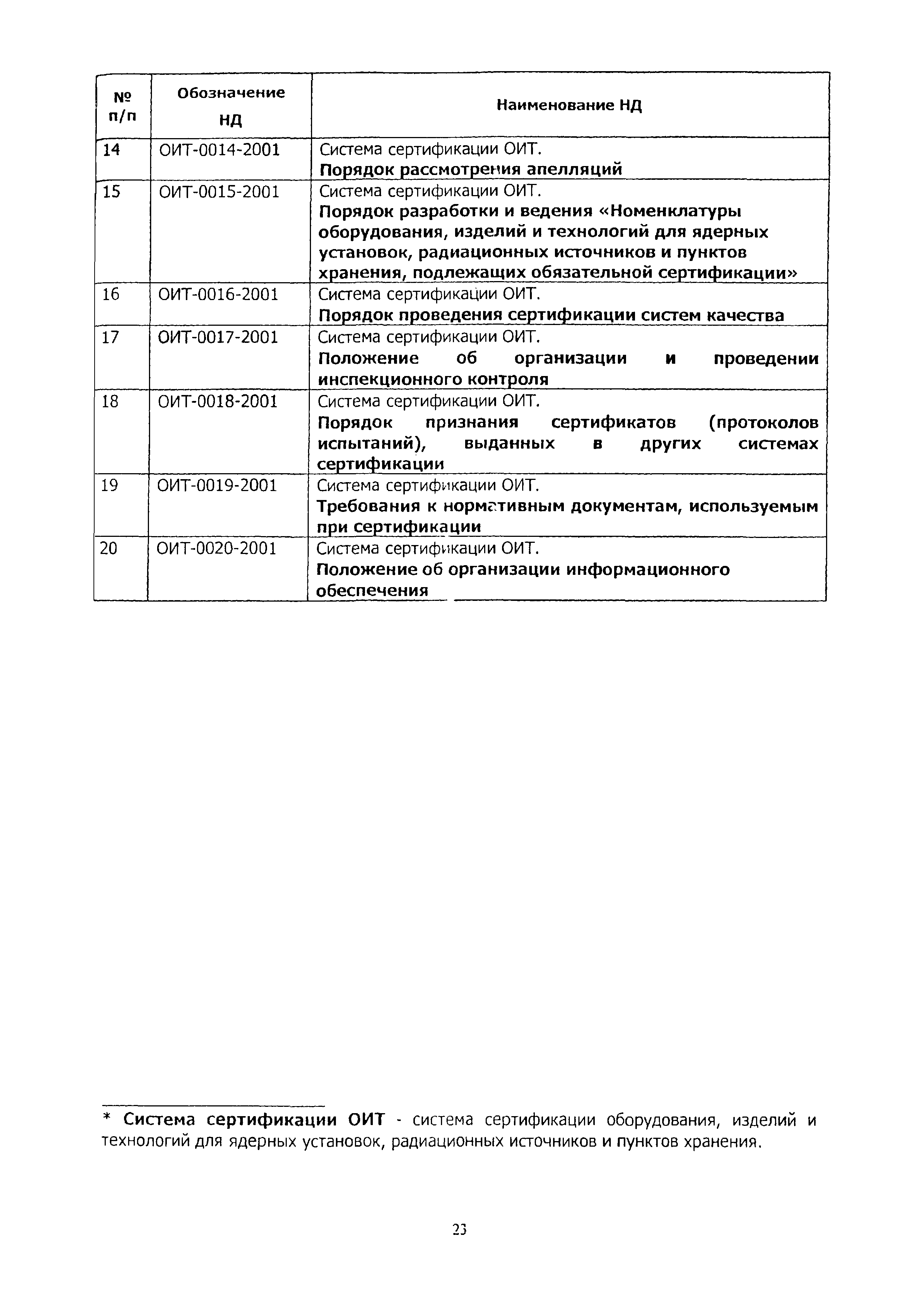 | Обозначение: | ОИТ 0022-2007 |