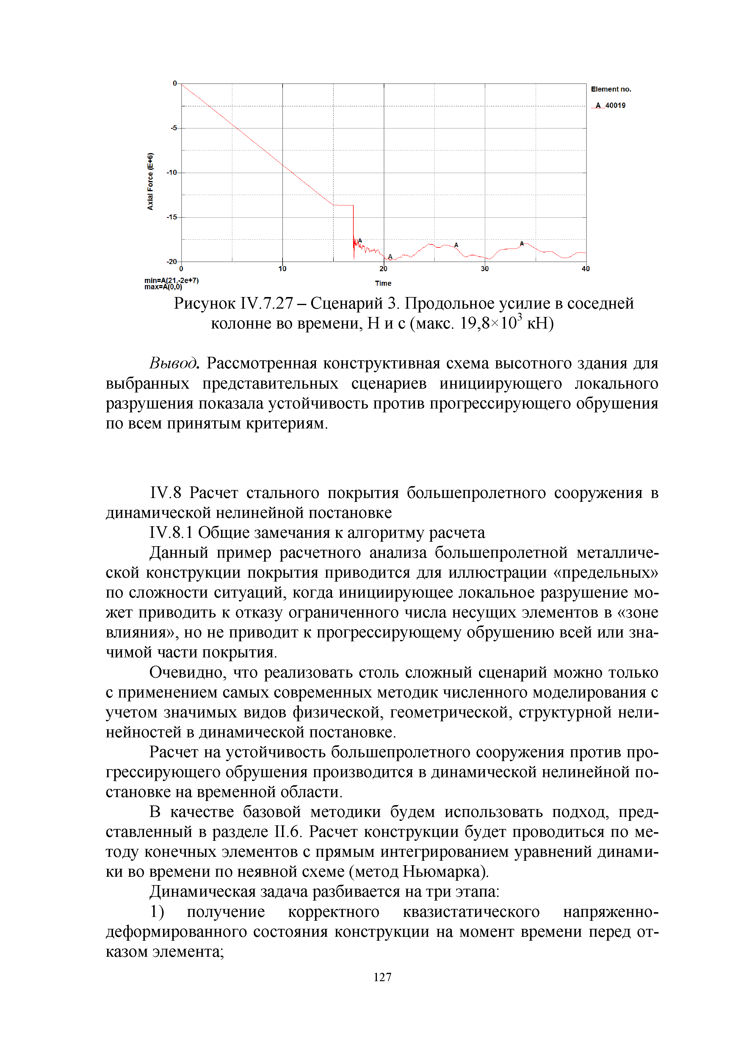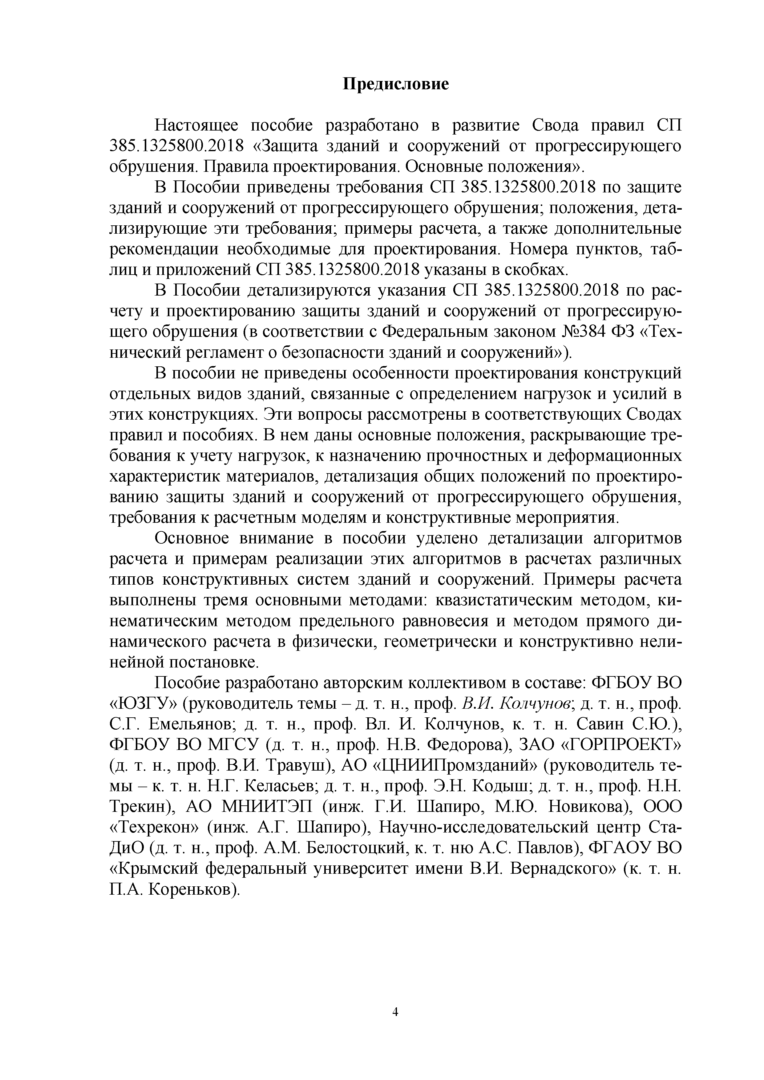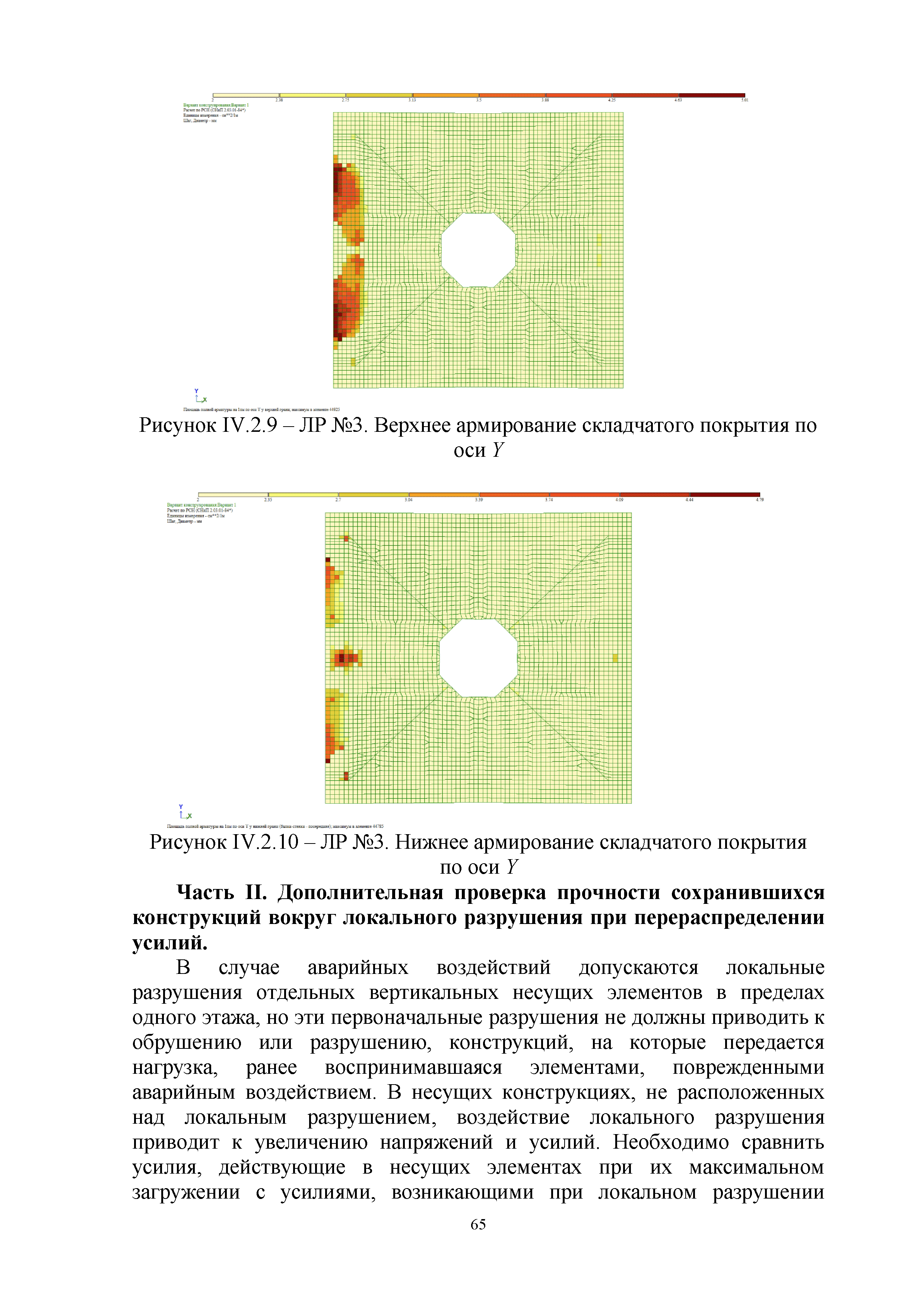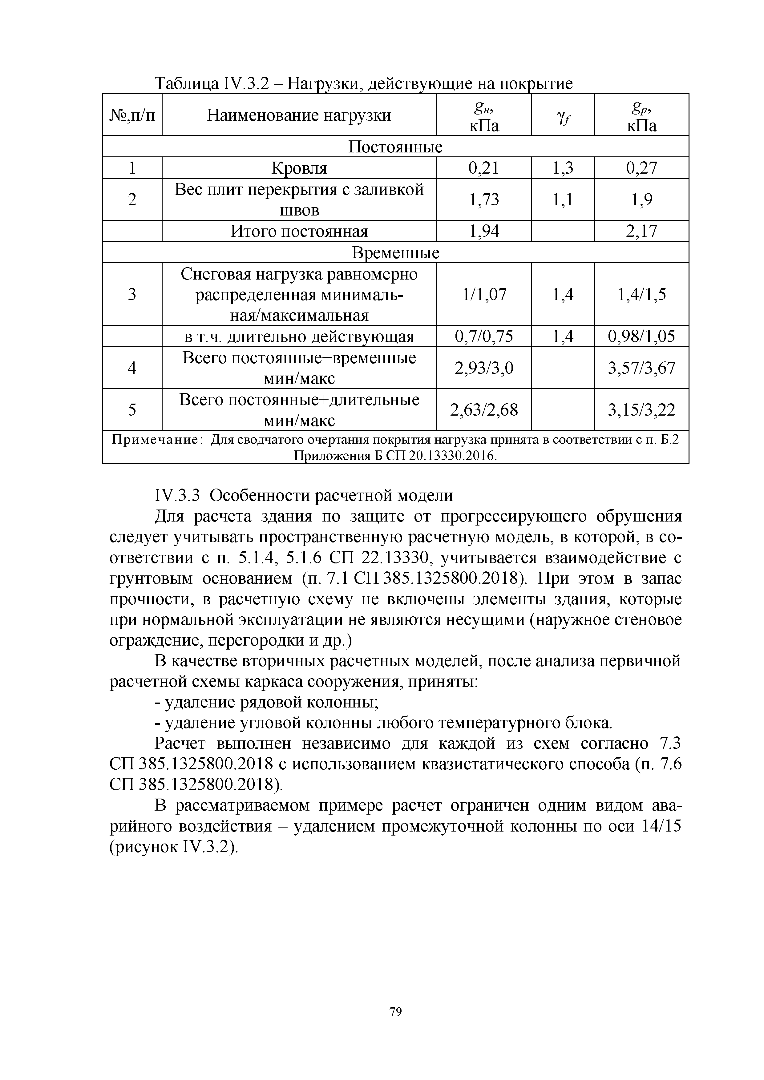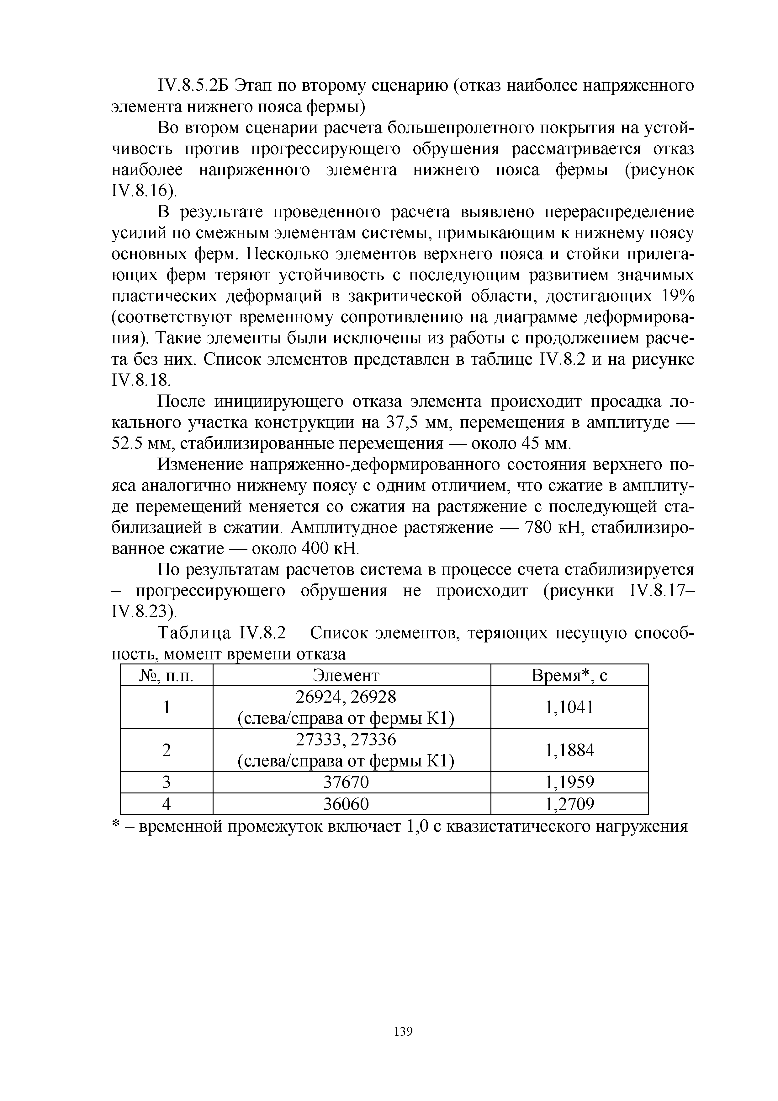 | Оглавление: | Введение 1 Основные положения 1.1 Область применения 1.2 Нормативные ссылки 1.3 Термины и определения 1.4 Общие требования II Исходные данные и методики расчета защиты прогрессирующего обрушения II.1 Характеристики строительных материалов, конструкций и критерии особого предельного состояния II.2 Нагрузки и воздействия II.3 Требования к расчетным моделям II.4 Расчет в квазистатической постановке II.5 Расчет кинематическим методом теории предельного равновесия II.6 Расчет в динамической постановке III Конструктивные мероприятия по защите зданий и сооружений различных конструктивных систем прогрессирующего обрушения III.1 Общие положения III.2 Многоэтажные каркасные здания III.3 Крупнопанельные, кирпичные и комбинированные конструкции зданий и сооружений III.4 Одноэтажные каркасные здания IV Примеры расчета по защите зданий и сооружений прогрессирующего обрушения IV.1 Расчет 17-этажного панельного жилого дома IV.2 Расчет фрагмента кирпичного здания храма IV.3 Расчет производственного шестиэтажного здания с рамно-связевым каркасом IV.3 Расчет каркаса одноэтажного производственного здания IV.4 Расчет каркаса многоэтажного здания с монолитным железобетонным каркасом IV. 5 Расчет защиты эксплуатируемого складчатого пространственного покрытия от прогрессирующего обрушения IV.6 Расчет защиты пространственного покрытия производственного здания из панелей-оболочек коммуникационного типа (КСО) от прогрессирующего обрушения IV.7 Расчет стального каркаса высотного здания в динамической нелинейной постановке IV.8 Расчет стального покрытия большепролетного сооружения в динамической нелинейной постановке Приложение А. Рекомендации по составу и оформлению отчетной документации по результатам расчетов строительных конструкций зданий и сооружений на прогрессирующее обрушение Библиография |