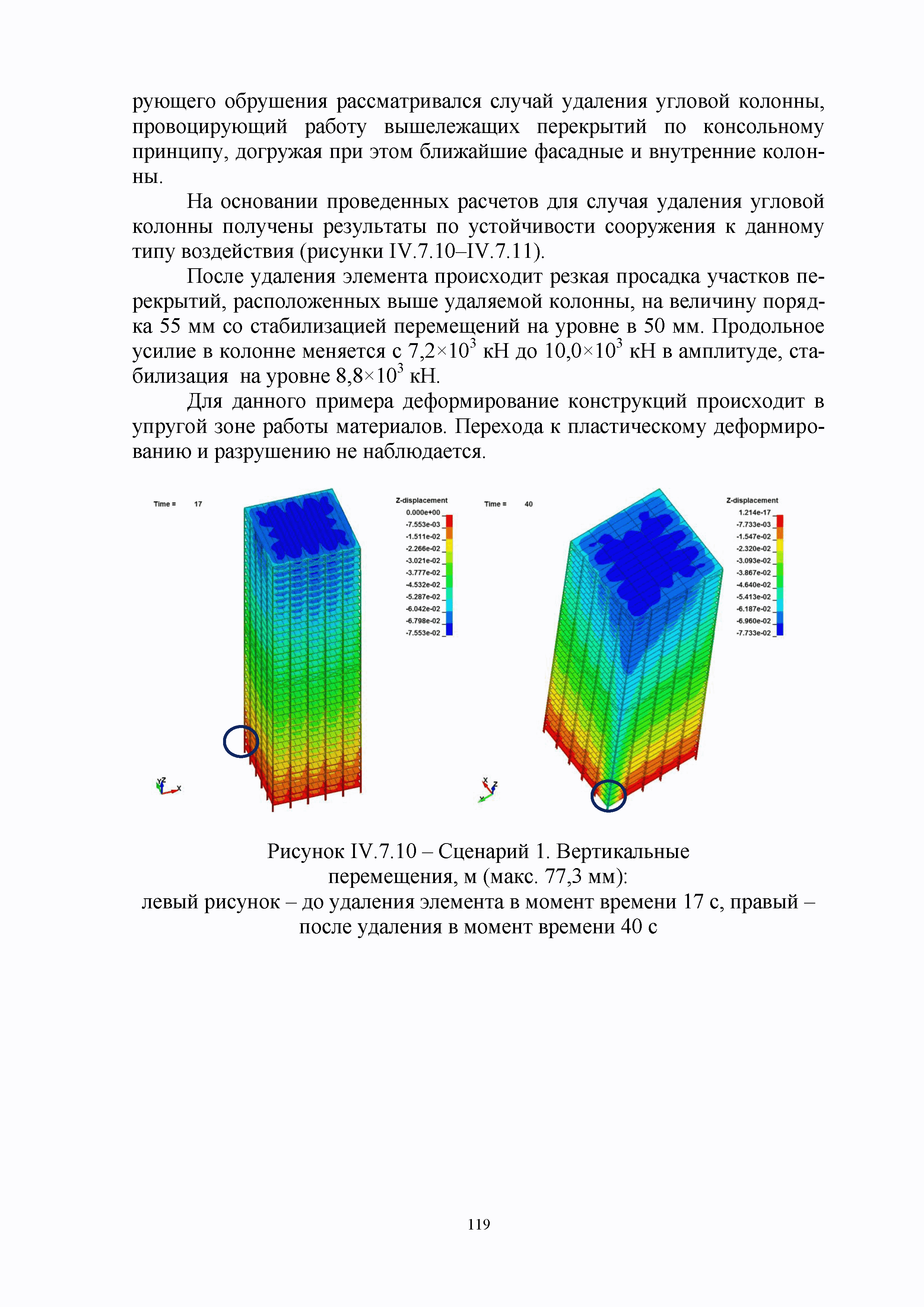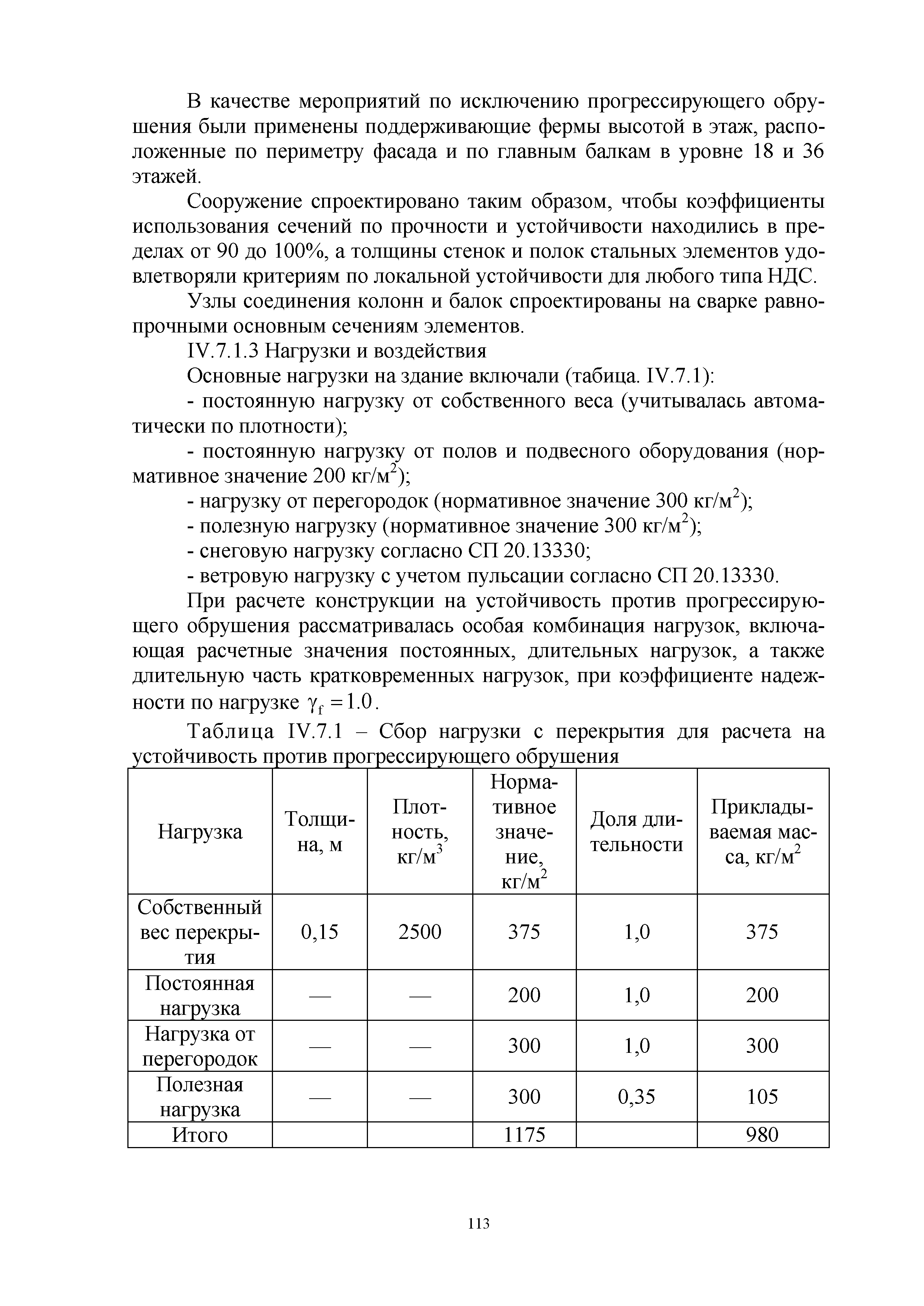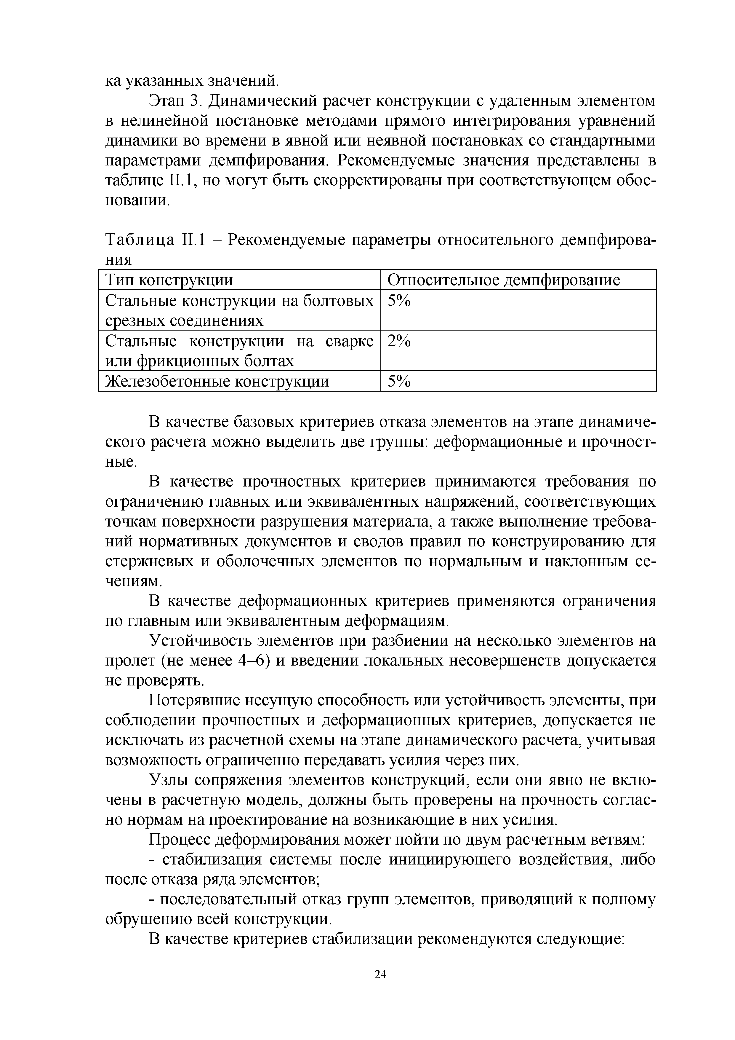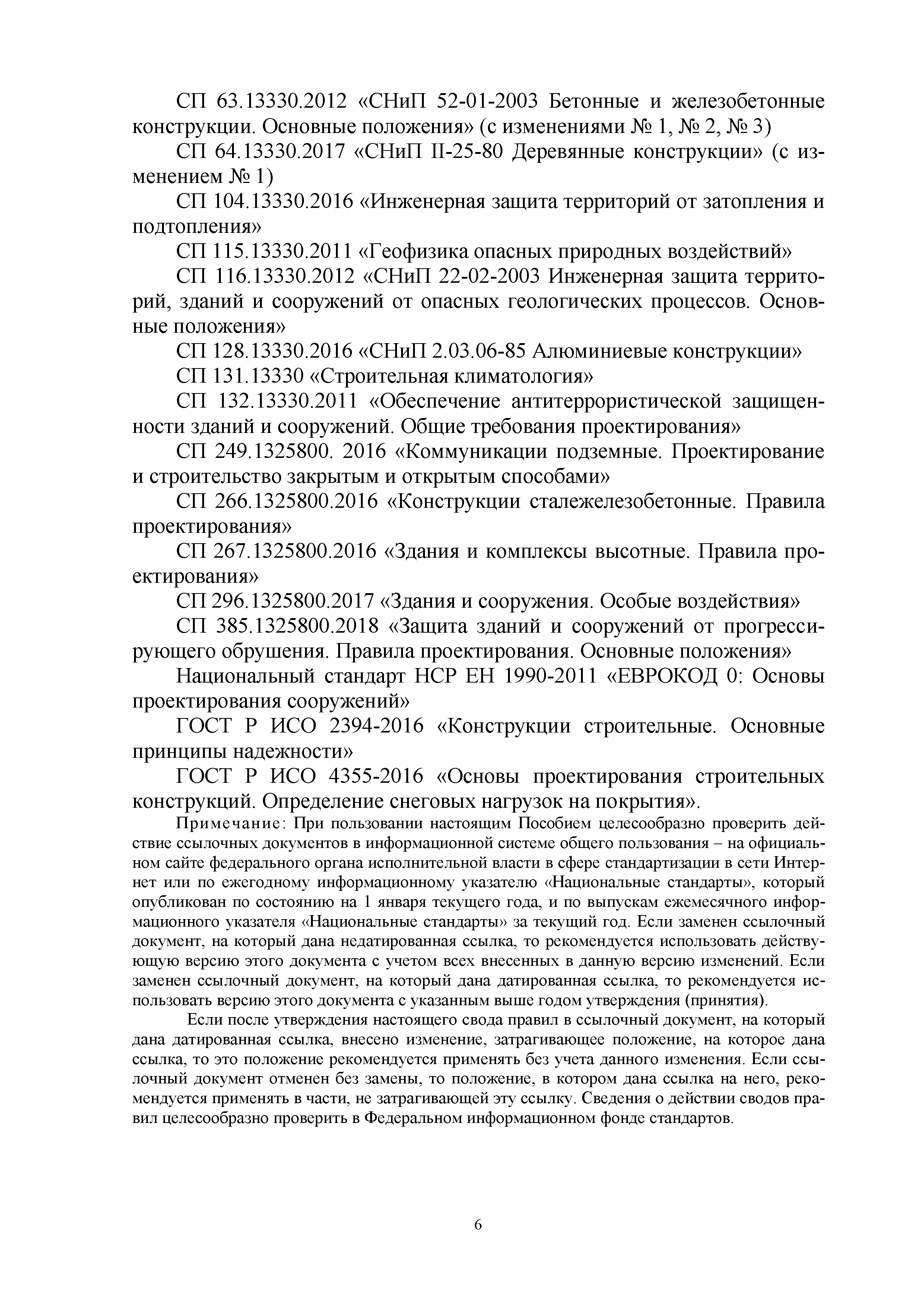 | Оглавление: | Введение 1 Основные положения 1.1 Область применения 1.2 Нормативные ссылки 1.3 Термины и определения 1.4 Общие требования II Исходные данные и методики расчета защиты прогрессирующего обрушения II.1 Характеристики строительных материалов, конструкций и критерии особого предельного состояния II.2 Нагрузки и воздействия II.3 Требования к расчетным моделям II.4 Расчет в квазистатической постановке II.5 Расчет кинематическим методом теории предельного равновесия II.6 Расчет в динамической постановке III Конструктивные мероприятия по защите зданий и сооружений различных конструктивных систем прогрессирующего обрушения III.1 Общие положения III.2 Многоэтажные каркасные здания III.3 Крупнопанельные, кирпичные и комбинированные конструкции зданий и сооружений III.4 Одноэтажные каркасные здания IV Примеры расчета по защите зданий и сооружений прогрессирующего обрушения IV.1 Расчет 17-этажного панельного жилого дома IV.2 Расчет фрагмента кирпичного здания храма IV.3 Расчет производственного шестиэтажного здания с рамно-связевым каркасом IV.3 Расчет каркаса одноэтажного производственного здания IV.4 Расчет каркаса многоэтажного здания с монолитным железобетонным каркасом IV. 5 Расчет защиты эксплуатируемого складчатого пространственного покрытия от прогрессирующего обрушения IV.6 Расчет защиты пространственного покрытия производственного здания из панелей-оболочек коммуникационного типа (КСО) от прогрессирующего обрушения IV.7 Расчет стального каркаса высотного здания в динамической нелинейной постановке IV.8 Расчет стального покрытия большепролетного сооружения в динамической нелинейной постановке Приложение А. Рекомендации по составу и оформлению отчетной документации по результатам расчетов строительных конструкций зданий и сооружений на прогрессирующее обрушение Библиография |