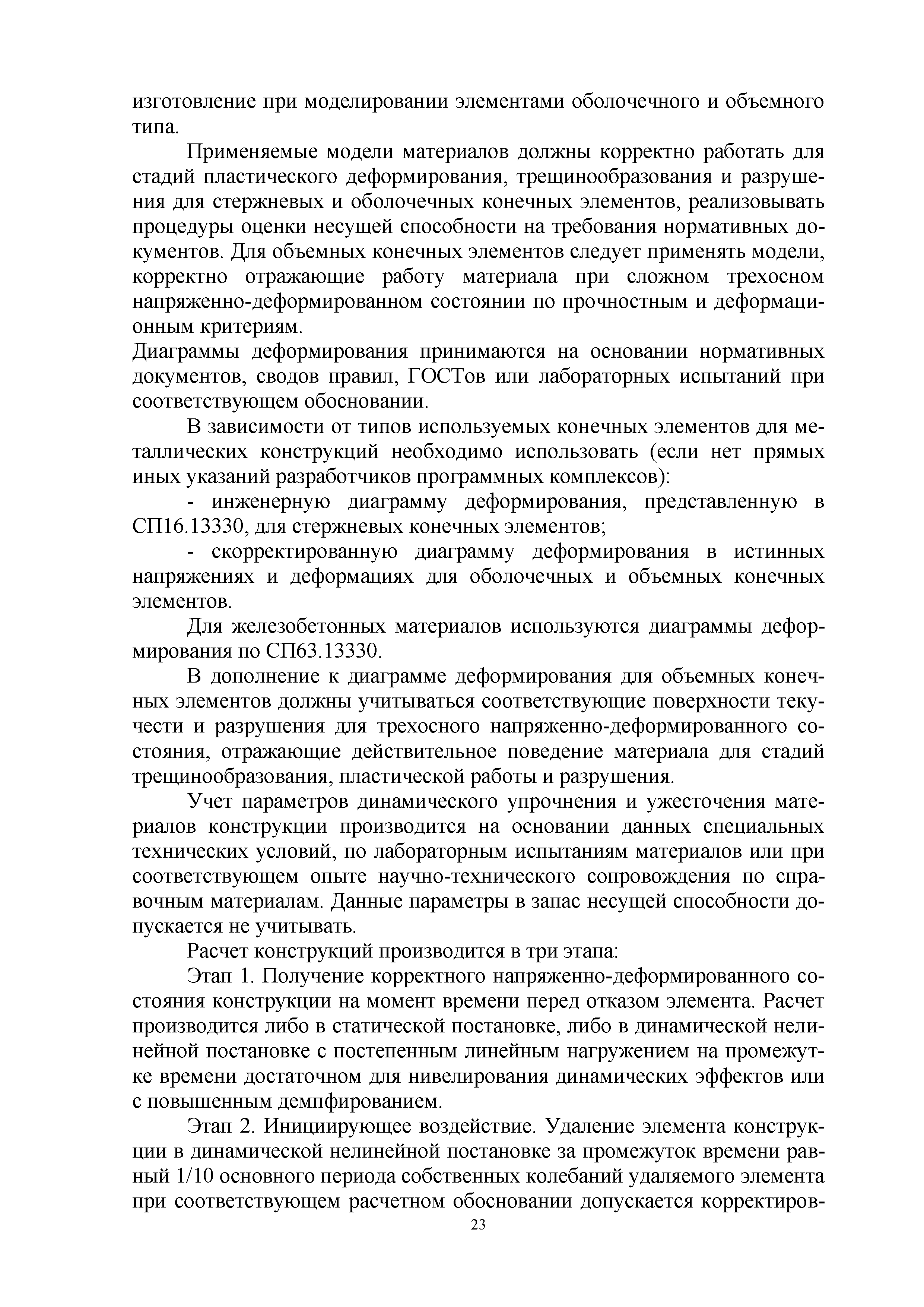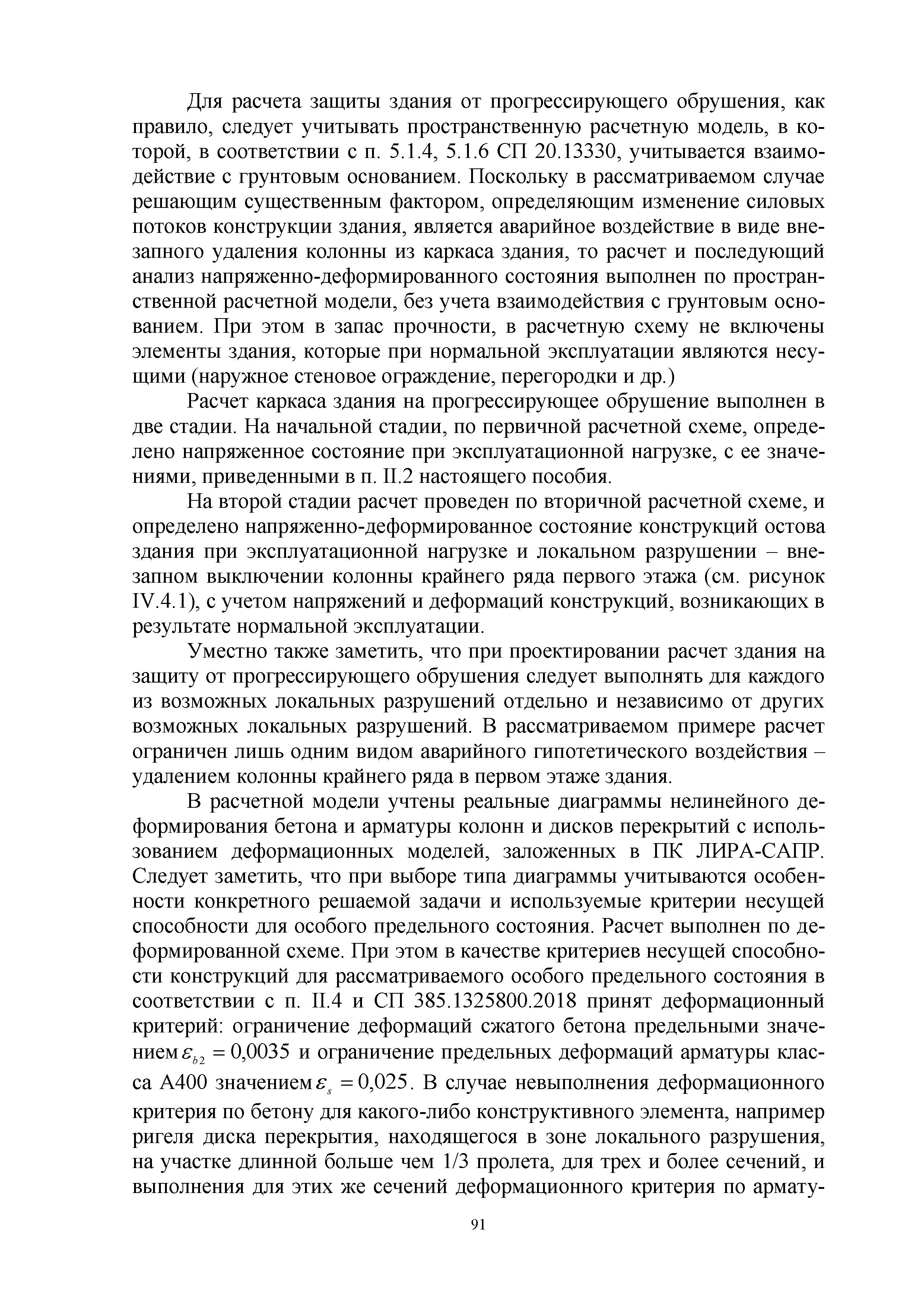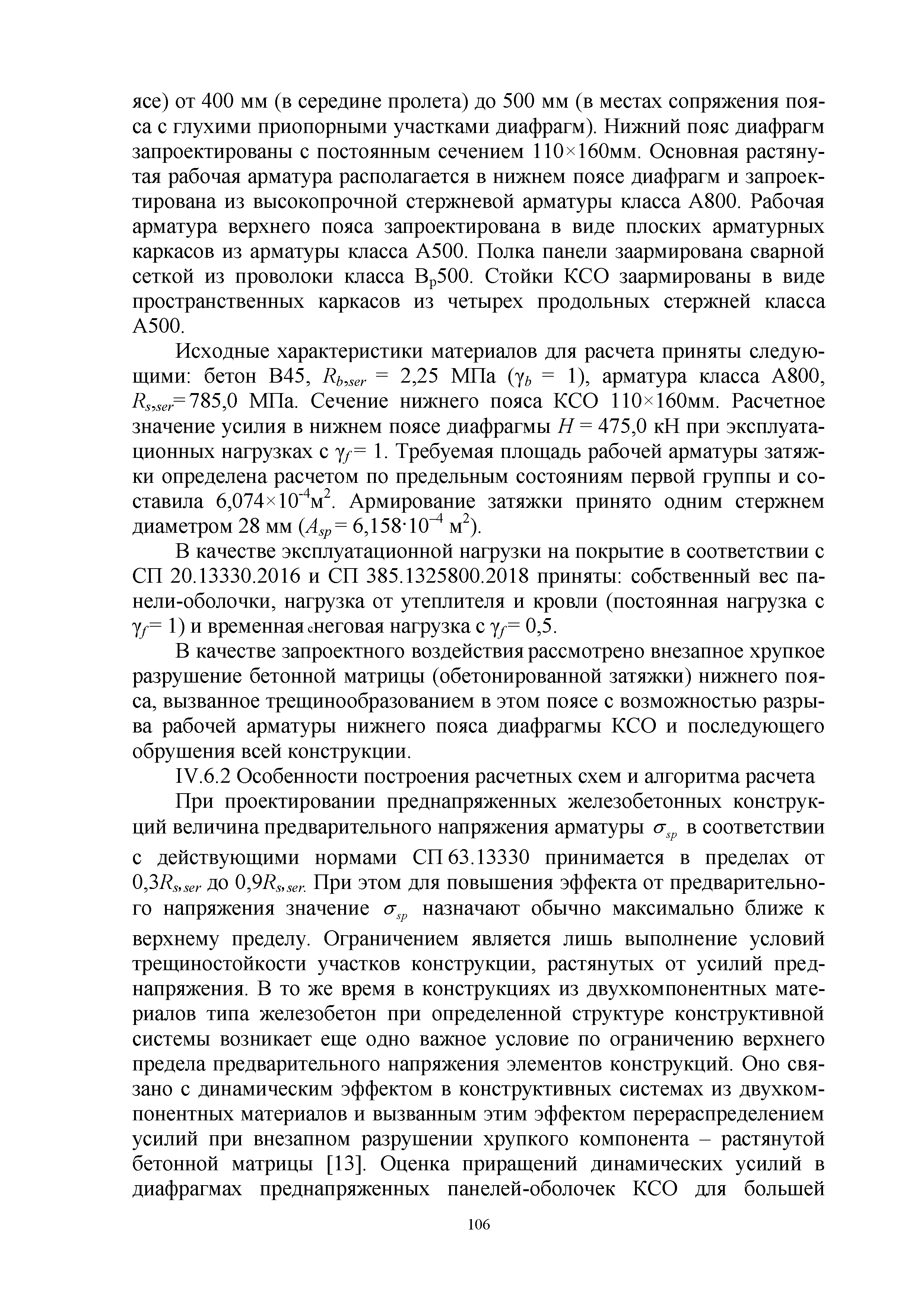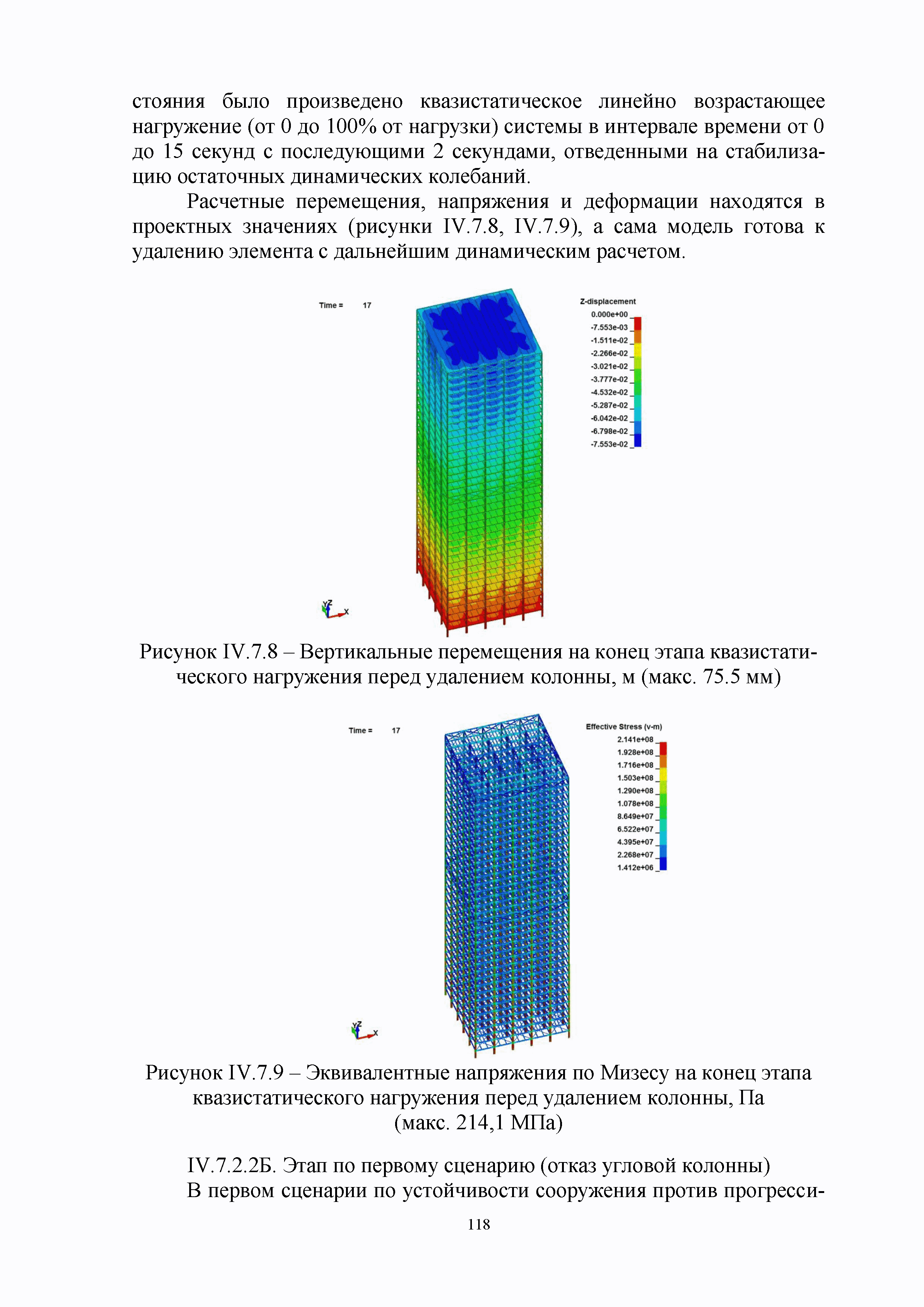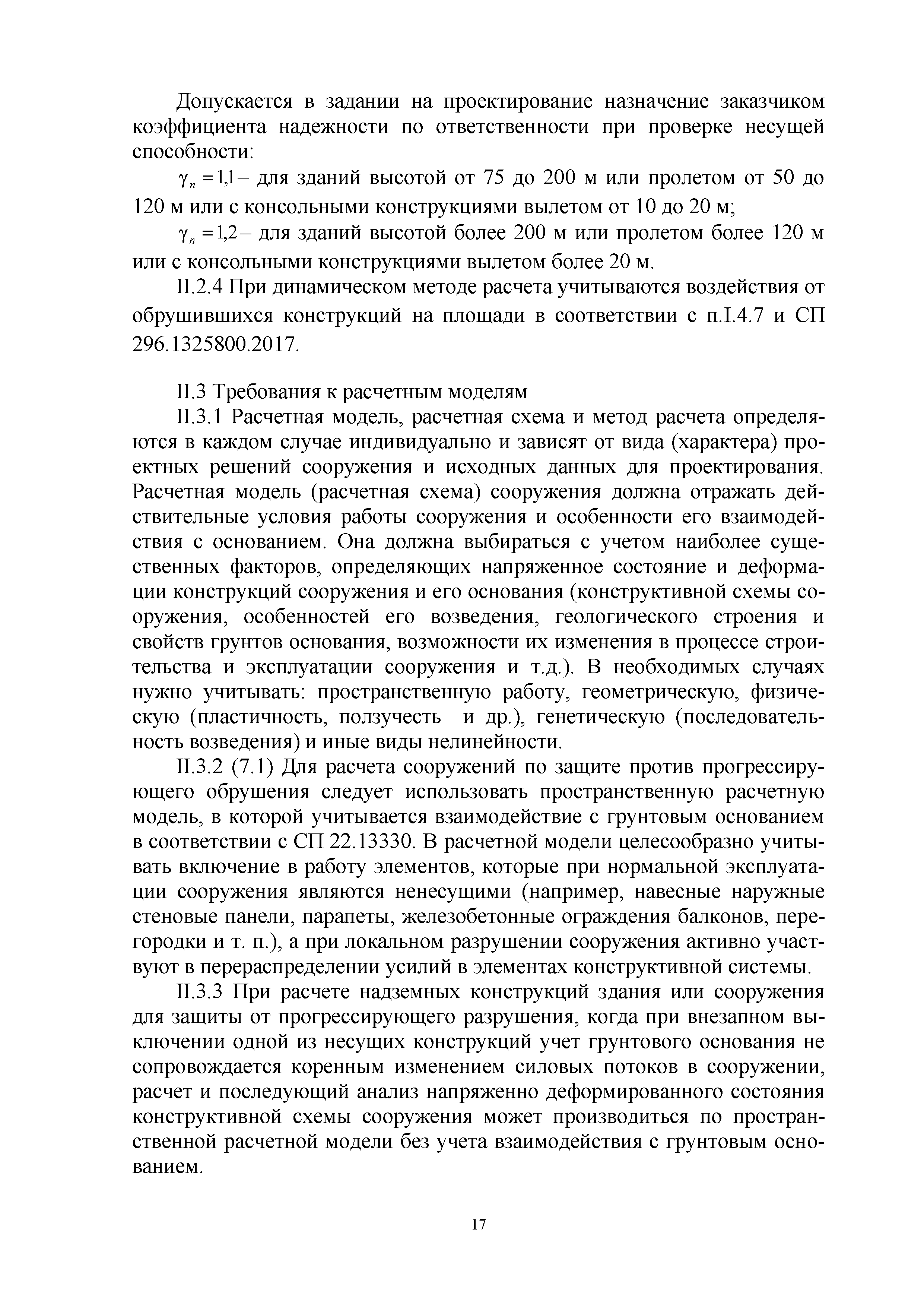 | Оглавление: | Введение 1 Основные положения 1.1 Область применения 1.2 Нормативные ссылки 1.3 Термины и определения 1.4 Общие требования II Исходные данные и методики расчета защиты прогрессирующего обрушения II.1 Характеристики строительных материалов, конструкций и критерии особого предельного состояния II.2 Нагрузки и воздействия II.3 Требования к расчетным моделям II.4 Расчет в квазистатической постановке II.5 Расчет кинематическим методом теории предельного равновесия II.6 Расчет в динамической постановке III Конструктивные мероприятия по защите зданий и сооружений различных конструктивных систем прогрессирующего обрушения III.1 Общие положения III.2 Многоэтажные каркасные здания III.3 Крупнопанельные, кирпичные и комбинированные конструкции зданий и сооружений III.4 Одноэтажные каркасные здания IV Примеры расчета по защите зданий и сооружений прогрессирующего обрушения IV.1 Расчет 17-этажного панельного жилого дома IV.2 Расчет фрагмента кирпичного здания храма IV.3 Расчет производственного шестиэтажного здания с рамно-связевым каркасом IV.3 Расчет каркаса одноэтажного производственного здания IV.4 Расчет каркаса многоэтажного здания с монолитным железобетонным каркасом IV. 5 Расчет защиты эксплуатируемого складчатого пространственного покрытия от прогрессирующего обрушения IV.6 Расчет защиты пространственного покрытия производственного здания из панелей-оболочек коммуникационного типа (КСО) от прогрессирующего обрушения IV.7 Расчет стального каркаса высотного здания в динамической нелинейной постановке IV.8 Расчет стального покрытия большепролетного сооружения в динамической нелинейной постановке Приложение А. Рекомендации по составу и оформлению отчетной документации по результатам расчетов строительных конструкций зданий и сооружений на прогрессирующее обрушение Библиография |