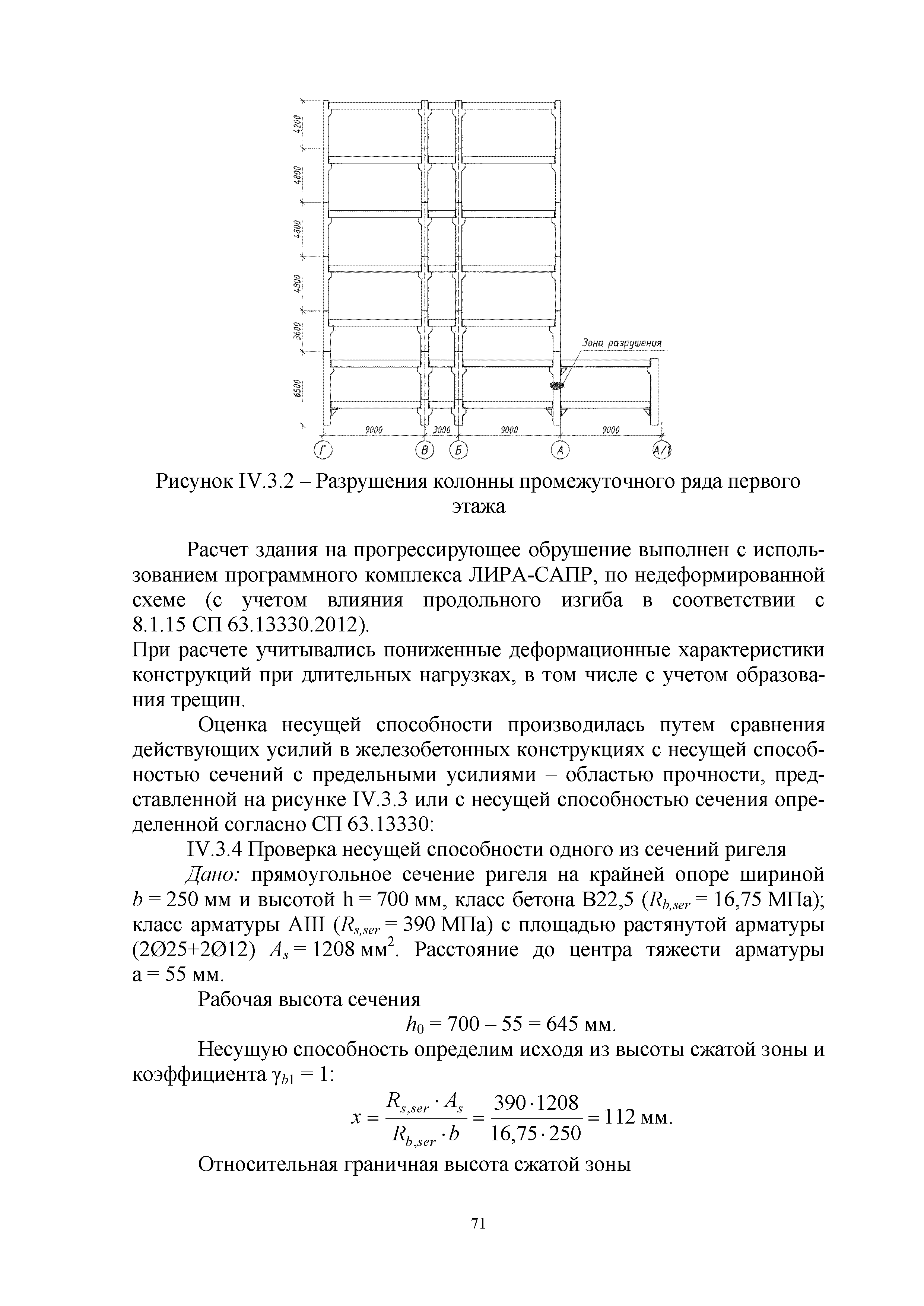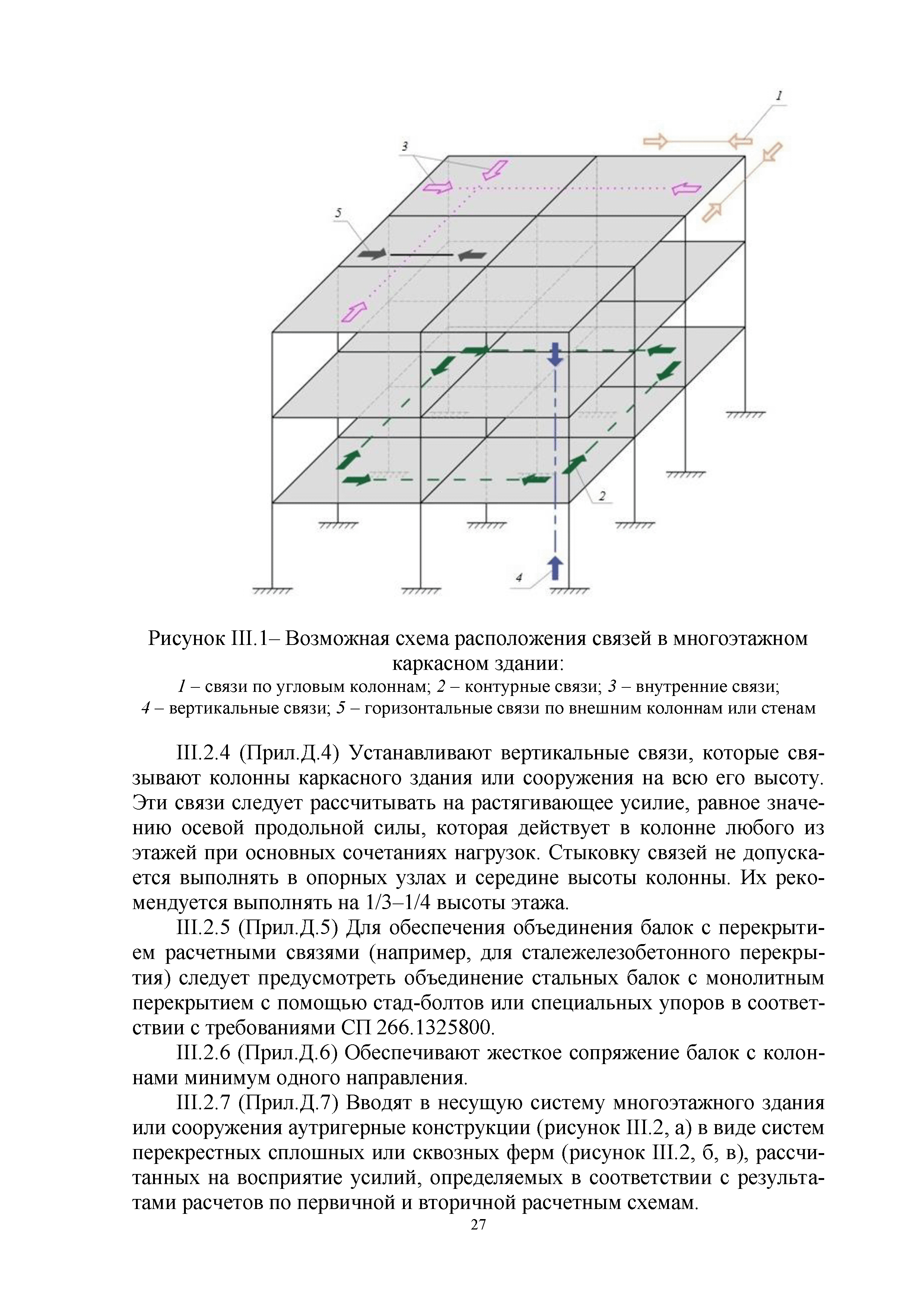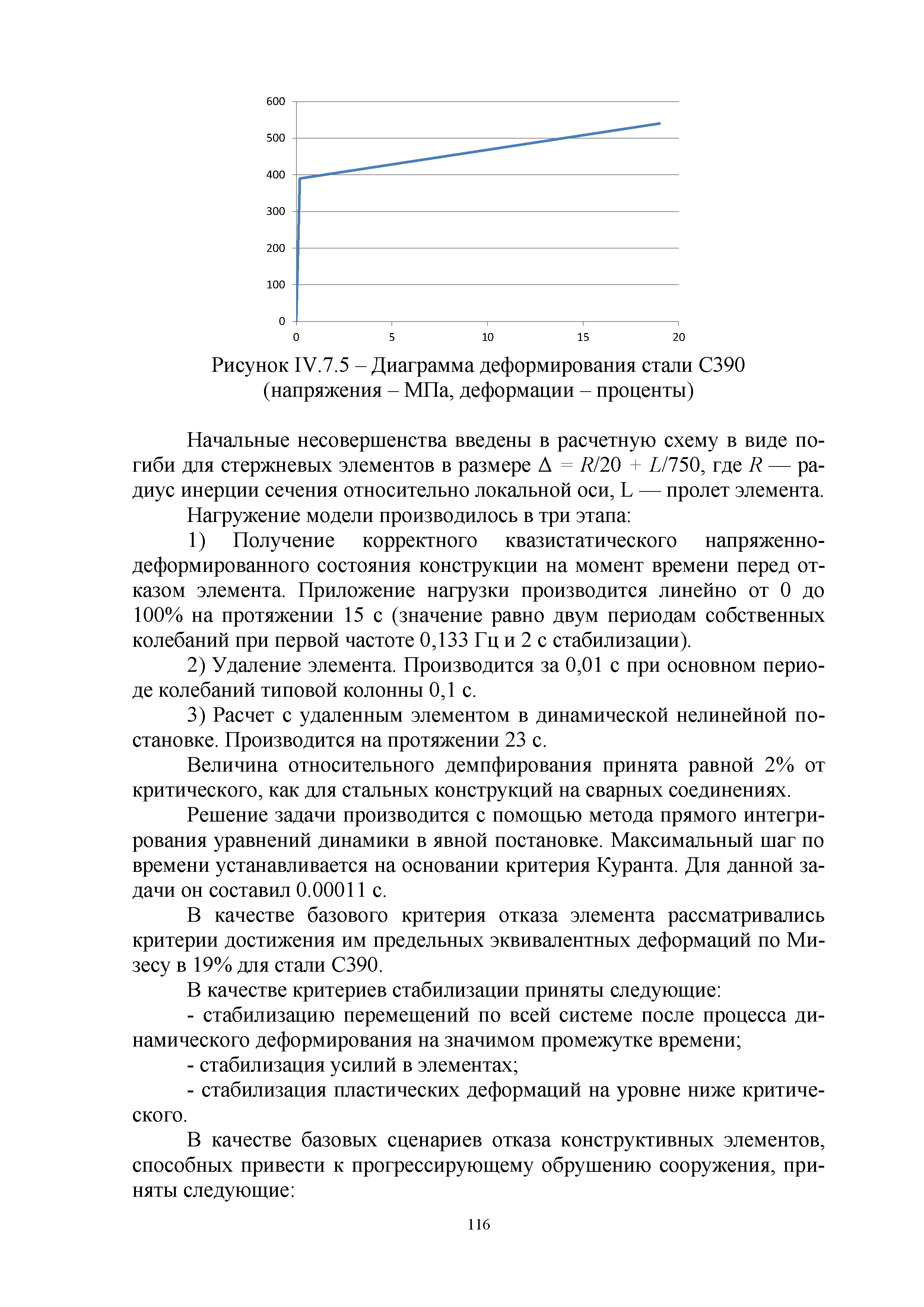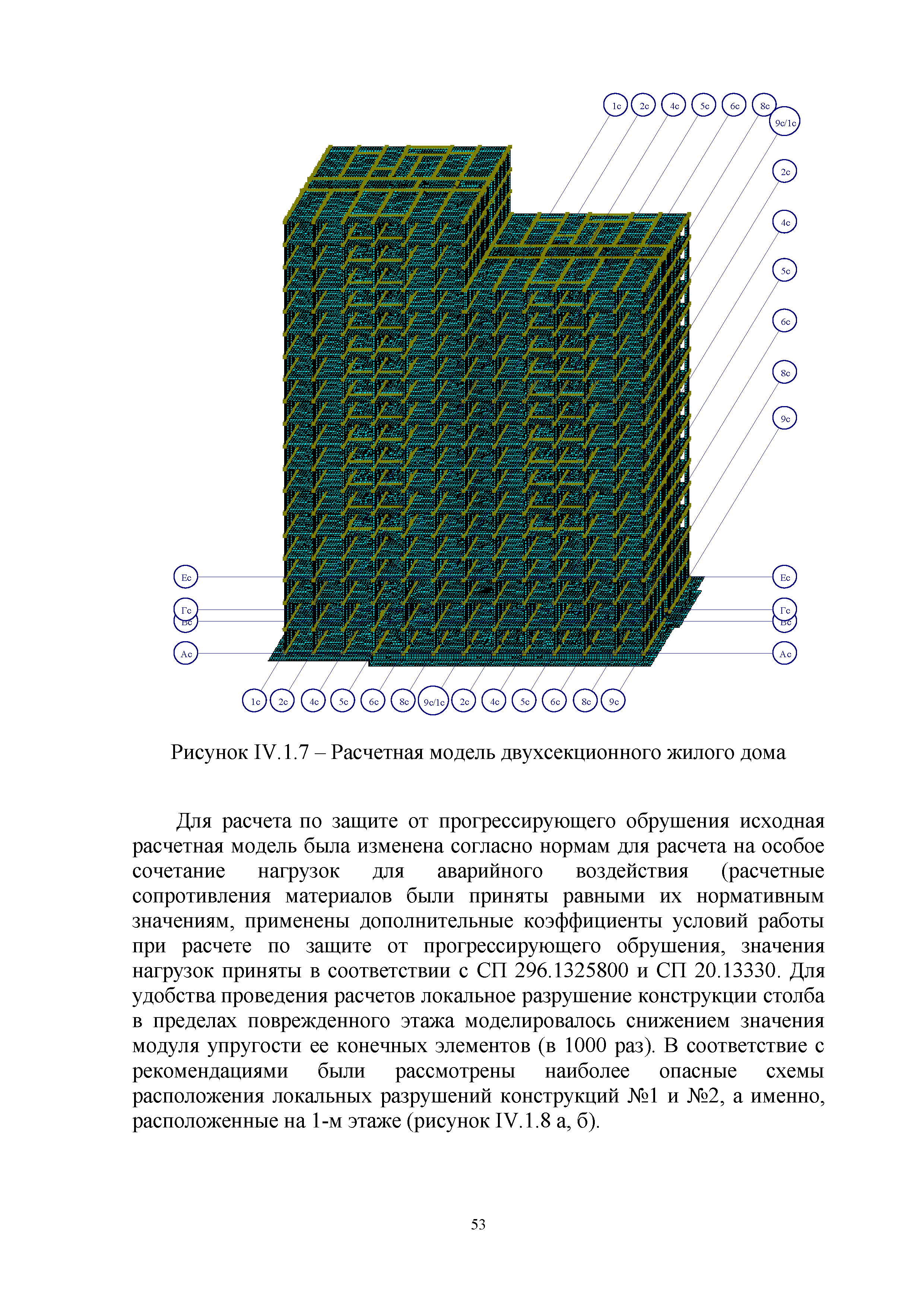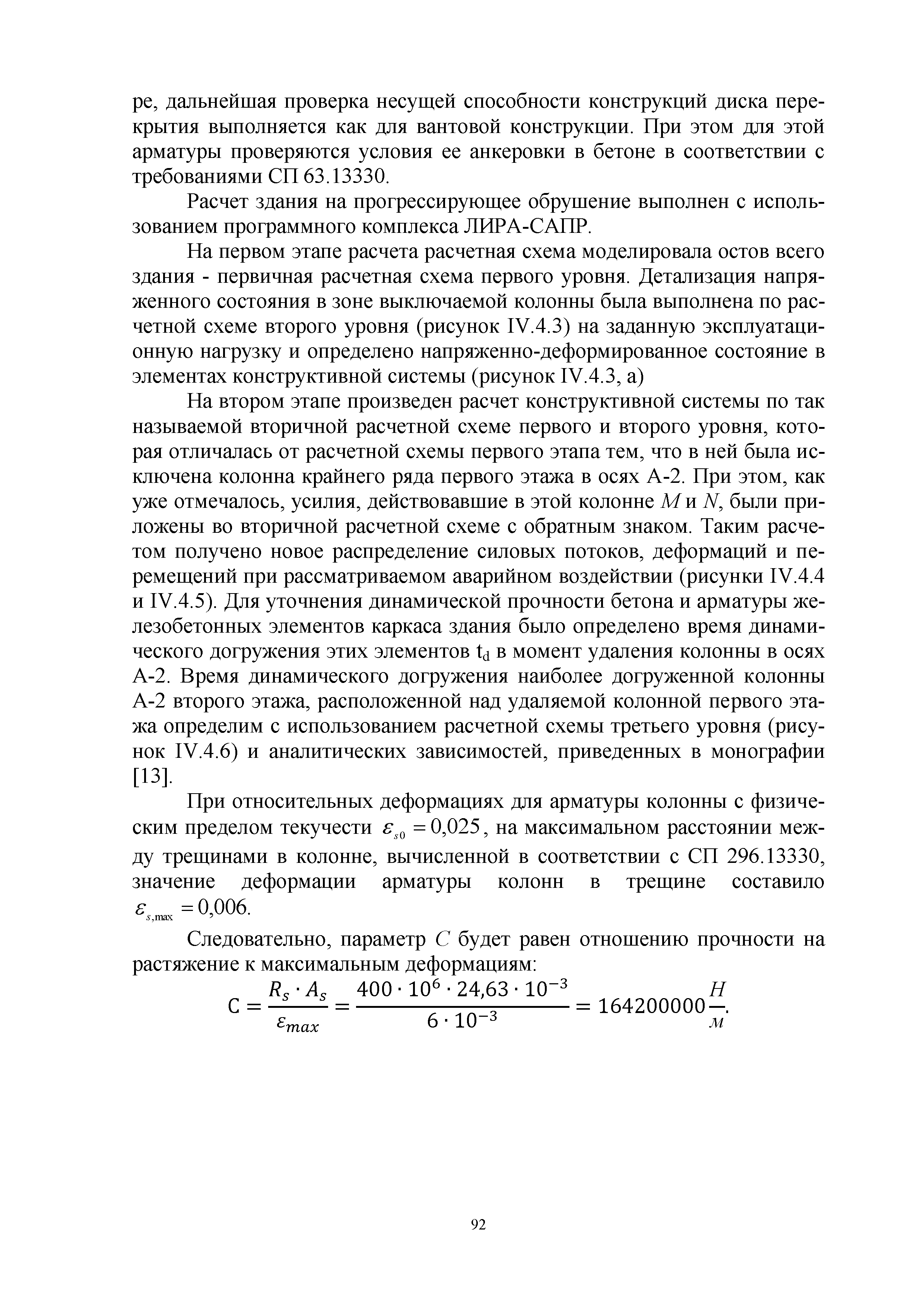 | Оглавление: | Введение 1 Основные положения 1.1 Область применения 1.2 Нормативные ссылки 1.3 Термины и определения 1.4 Общие требования II Исходные данные и методики расчета защиты прогрессирующего обрушения II.1 Характеристики строительных материалов, конструкций и критерии особого предельного состояния II.2 Нагрузки и воздействия II.3 Требования к расчетным моделям II.4 Расчет в квазистатической постановке II.5 Расчет кинематическим методом теории предельного равновесия II.6 Расчет в динамической постановке III Конструктивные мероприятия по защите зданий и сооружений различных конструктивных систем прогрессирующего обрушения III.1 Общие положения III.2 Многоэтажные каркасные здания III.3 Крупнопанельные, кирпичные и комбинированные конструкции зданий и сооружений III.4 Одноэтажные каркасные здания IV Примеры расчета по защите зданий и сооружений прогрессирующего обрушения IV.1 Расчет 17-этажного панельного жилого дома IV.2 Расчет фрагмента кирпичного здания храма IV.3 Расчет производственного шестиэтажного здания с рамно-связевым каркасом IV.3 Расчет каркаса одноэтажного производственного здания IV.4 Расчет каркаса многоэтажного здания с монолитным железобетонным каркасом IV. 5 Расчет защиты эксплуатируемого складчатого пространственного покрытия от прогрессирующего обрушения IV.6 Расчет защиты пространственного покрытия производственного здания из панелей-оболочек коммуникационного типа (КСО) от прогрессирующего обрушения IV.7 Расчет стального каркаса высотного здания в динамической нелинейной постановке IV.8 Расчет стального покрытия большепролетного сооружения в динамической нелинейной постановке Приложение А. Рекомендации по составу и оформлению отчетной документации по результатам расчетов строительных конструкций зданий и сооружений на прогрессирующее обрушение Библиография |