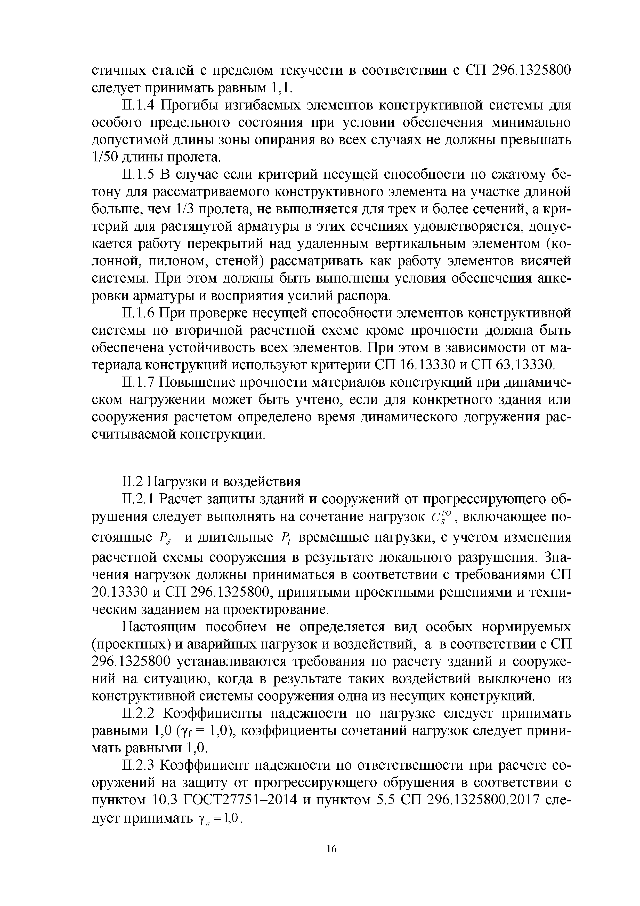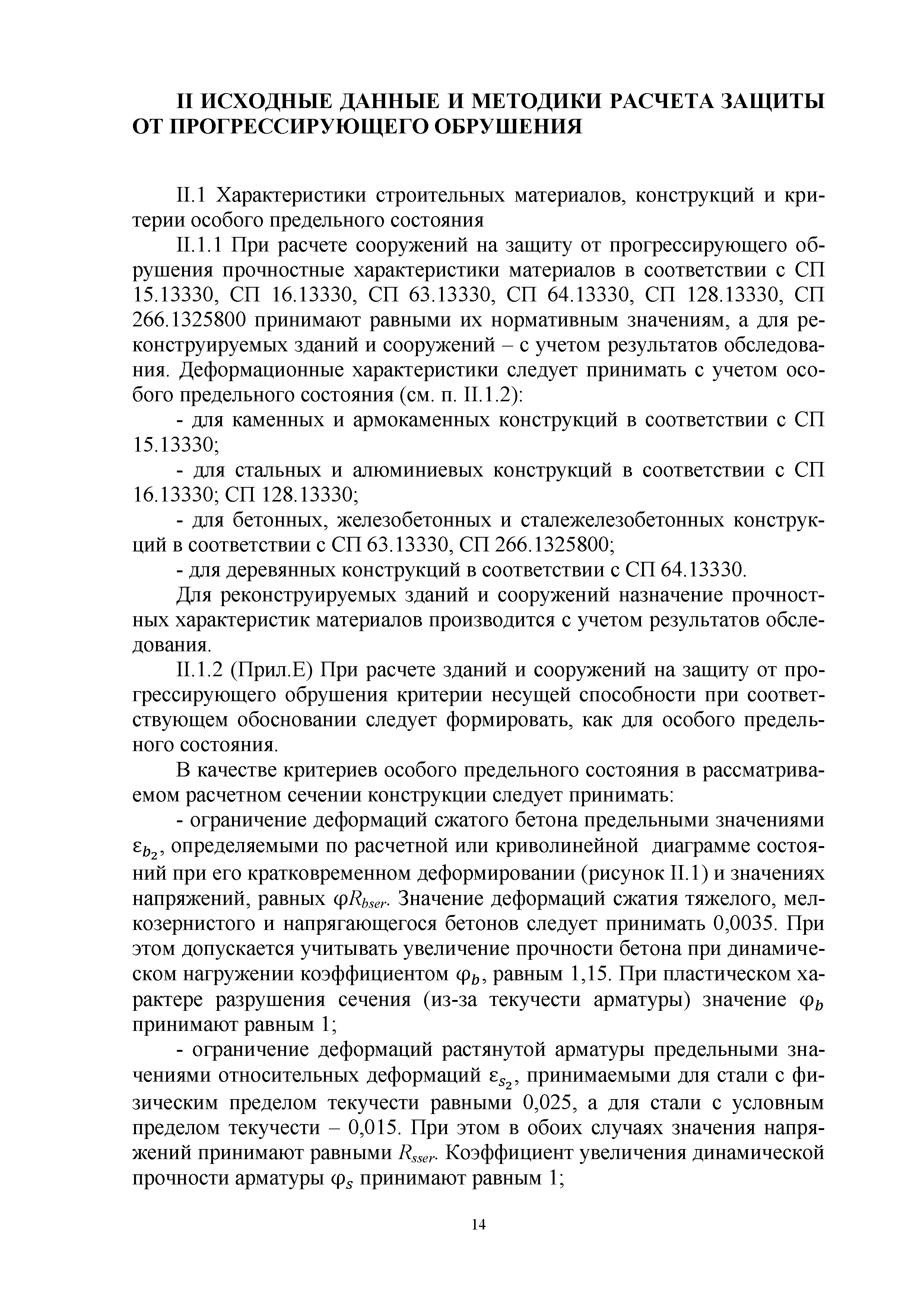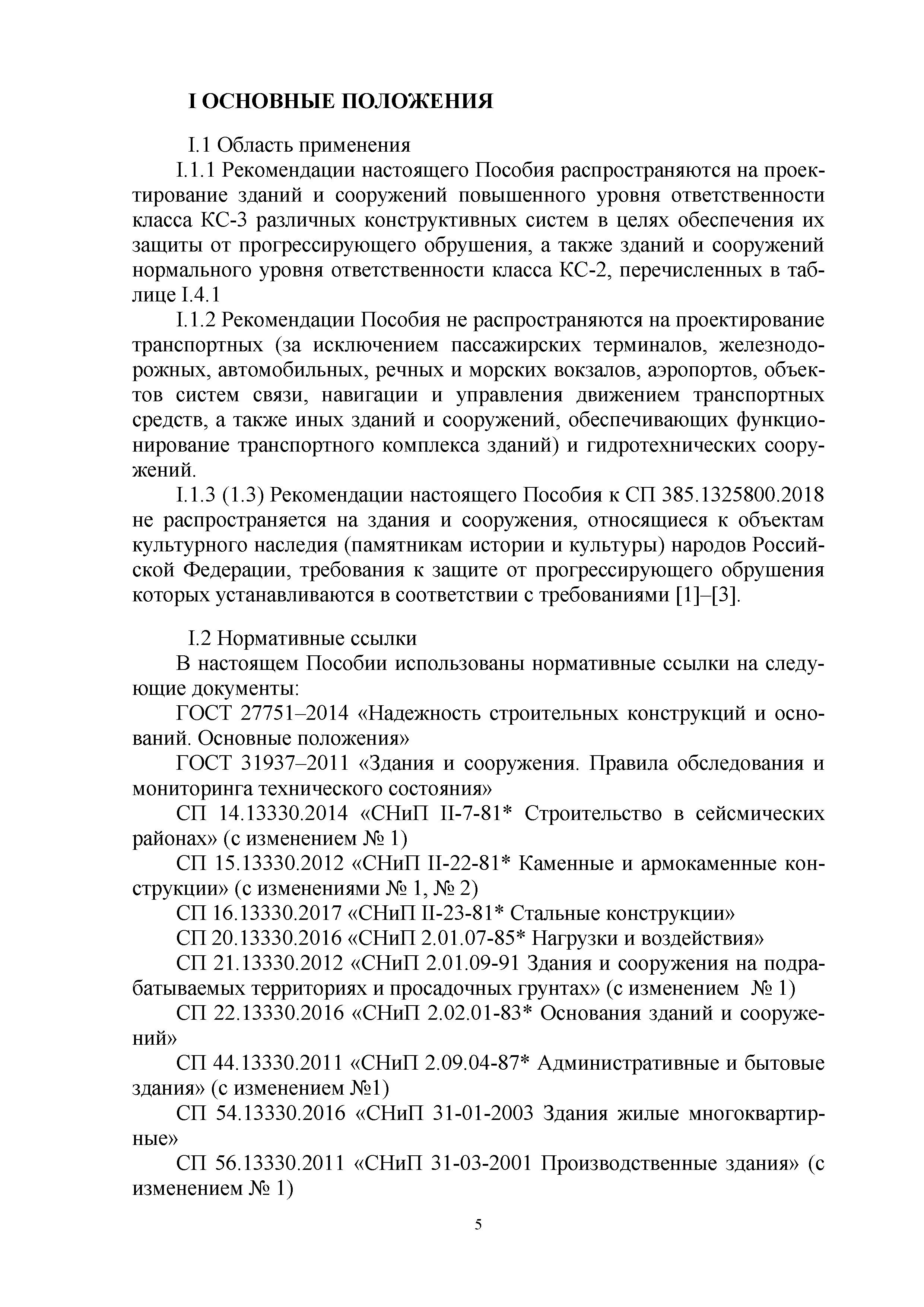 | Область применения: | Рекомендации Пособия распространяются на проектирование зданий и сооружений повышенного уровня ответственности класса КС-З различных конструктивных систем в целях обеспечения их защиты от прогрессирующего обрушения, а также зданий и сооружений нормального уровня ответственности класса КС-2, перечисленных в таблице 1.4.1. Рекомендации Пособия не распространяются на проектирование транспортных (за исключением пассажирских терминалов, железнодорожных, автомобильных, речных и морских вокзалов, аэропортов, объектов систем связи, навигации и управления движением транспортных средств, а также иных зданий и сооружений, обеспечивающих функционирование транспортного комплекса зданий) и гидротехнических сооружений. |
