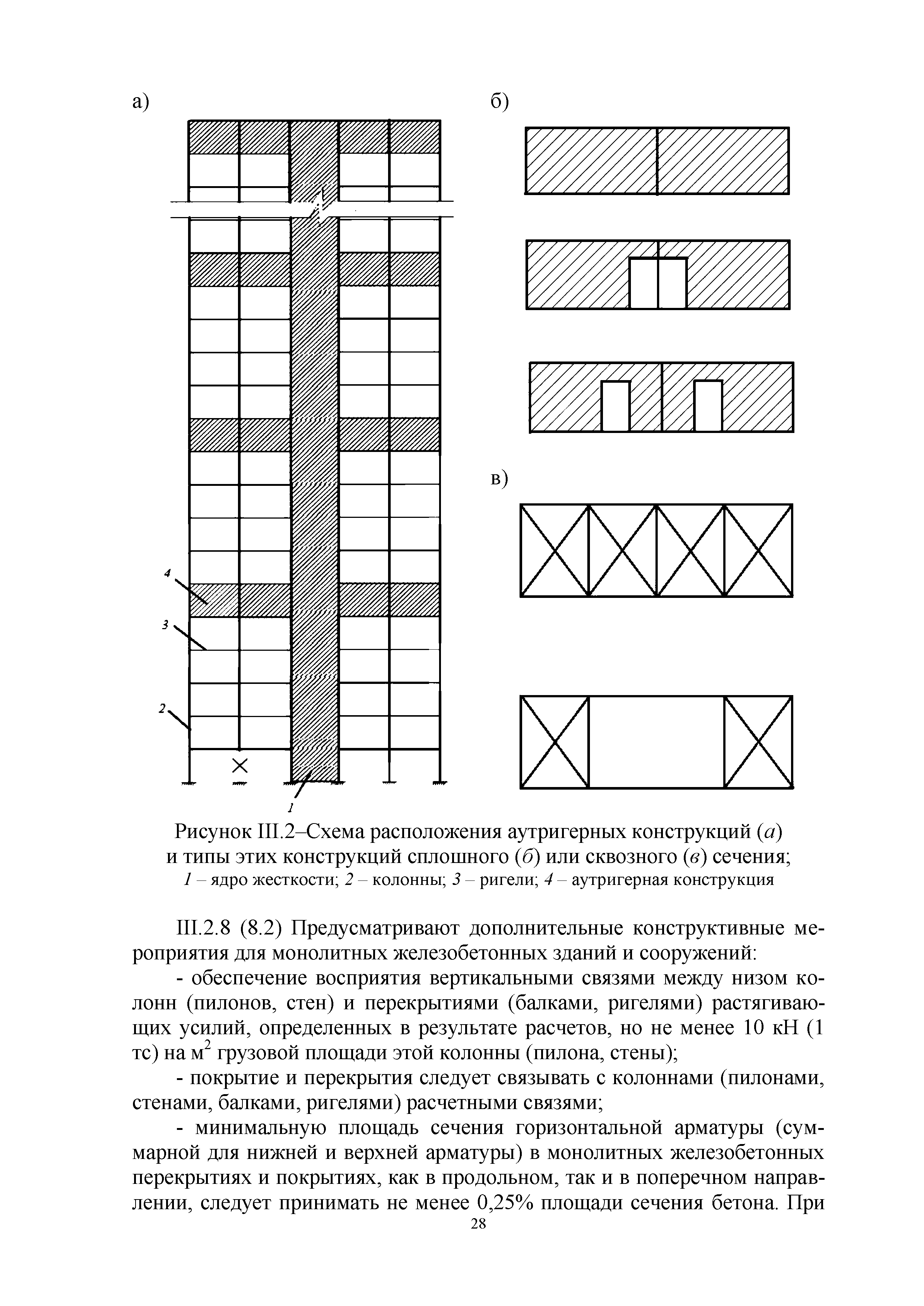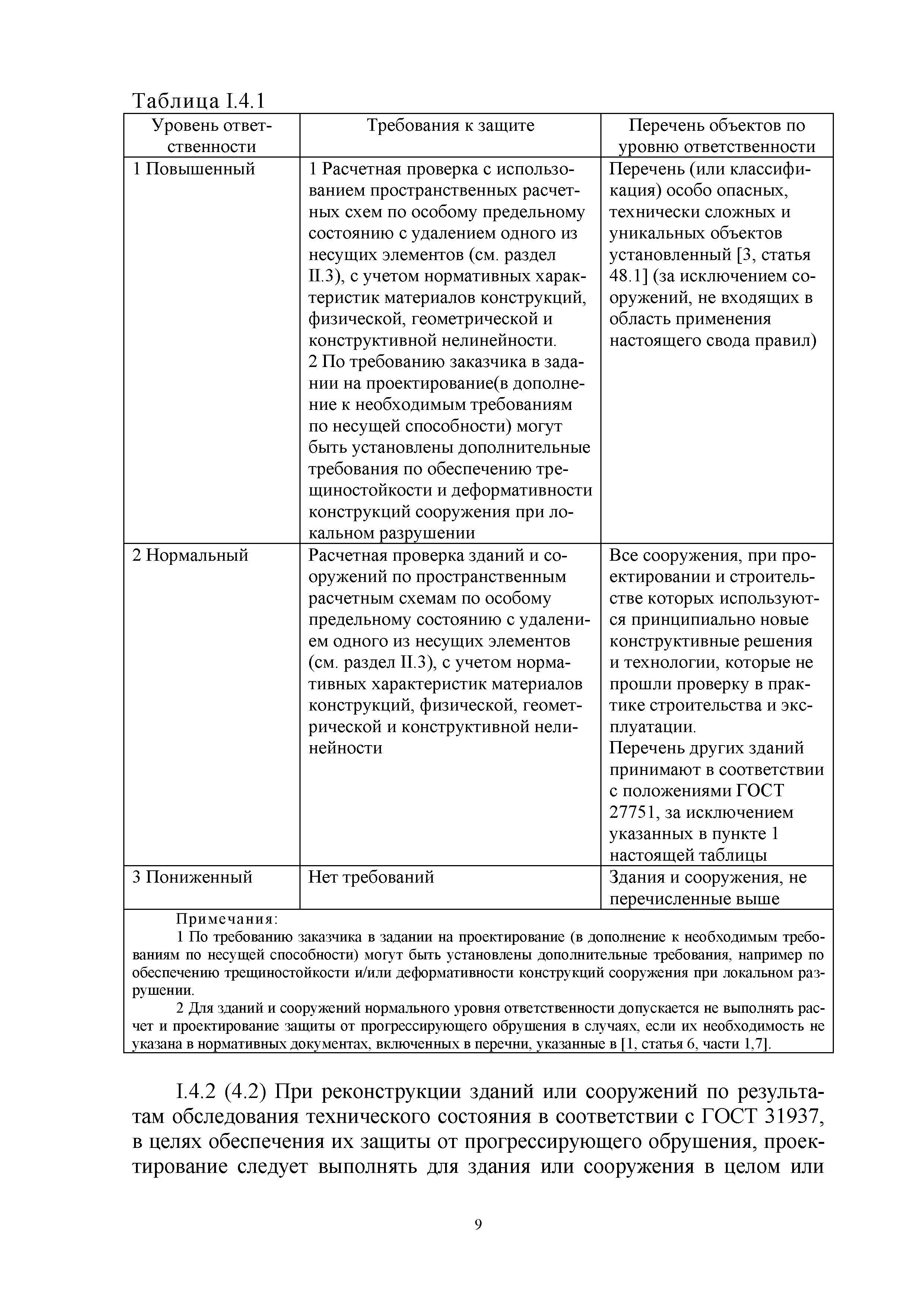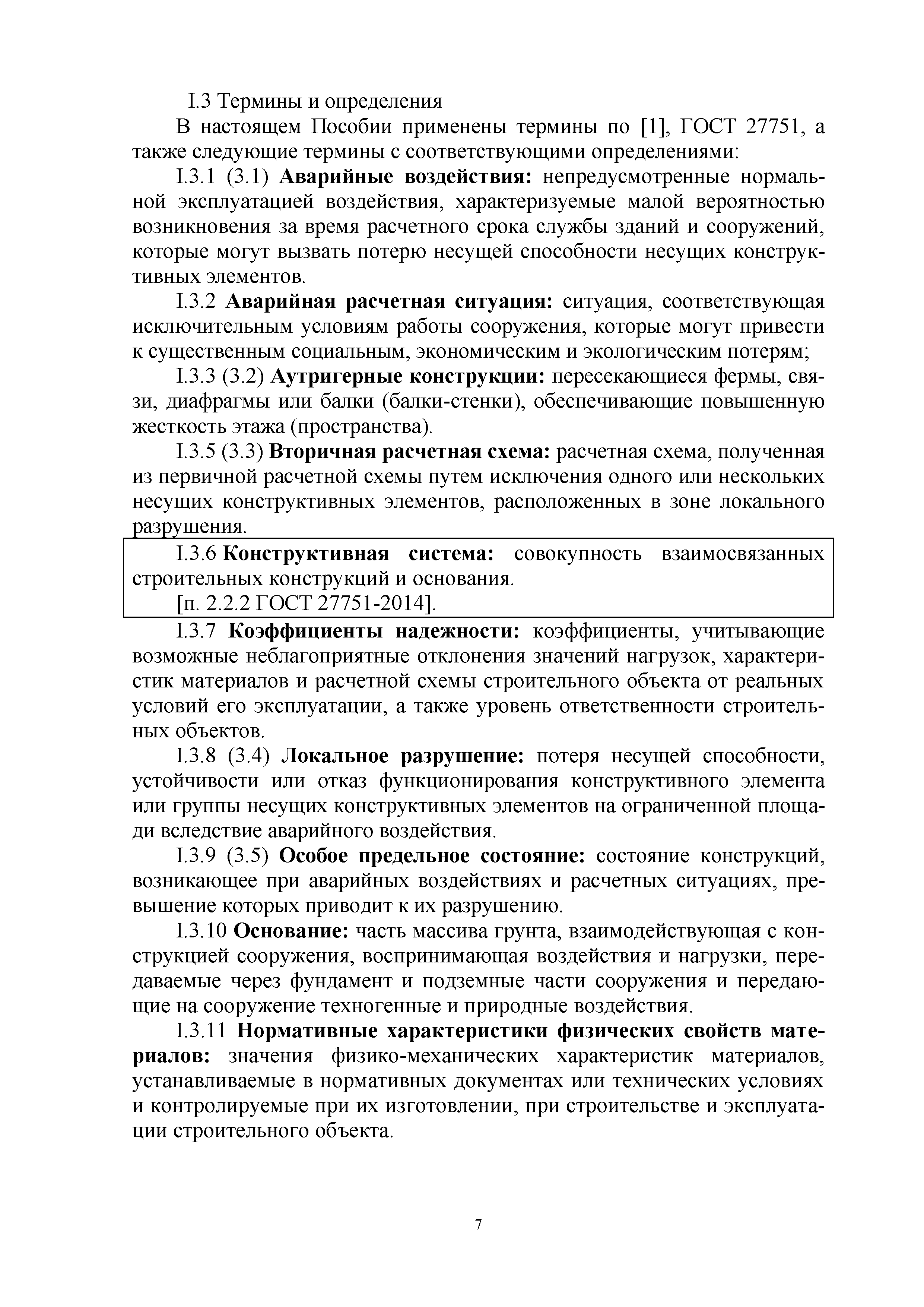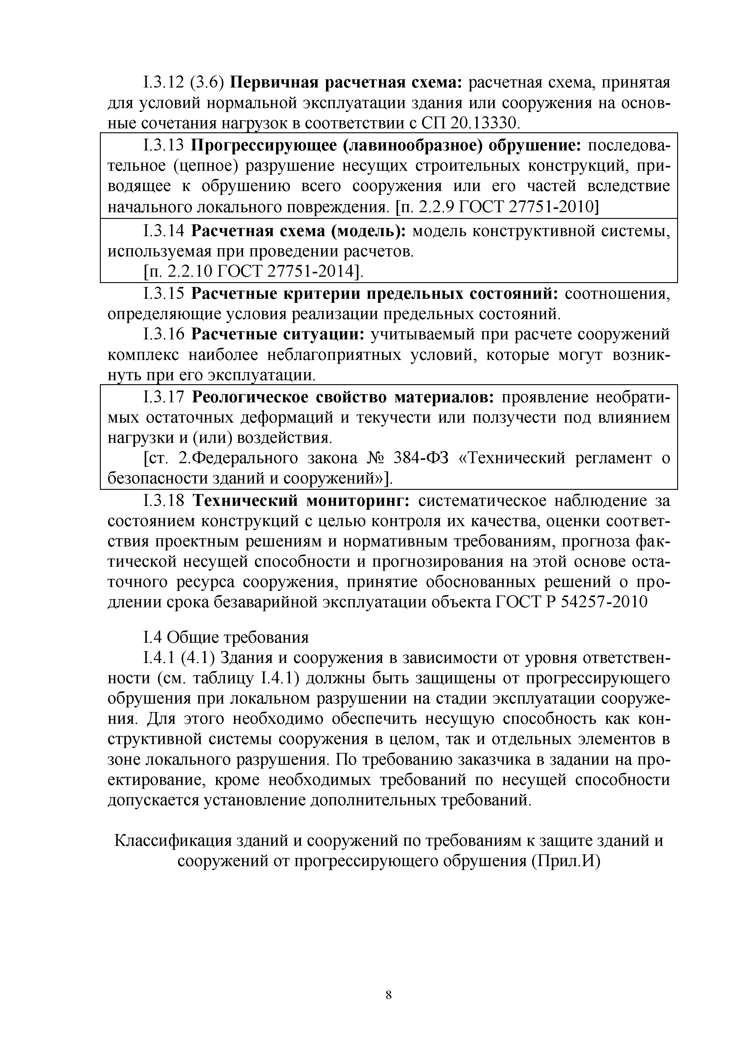 | Область применения: | Рекомендации Пособия распространяются на проектирование зданий и сооружений повышенного уровня ответственности класса КС-З различных конструктивных систем в целях обеспечения их защиты от прогрессирующего обрушения, а также зданий и сооружений нормального уровня ответственности класса КС-2, перечисленных в таблице 1.4.1. Рекомендации Пособия не распространяются на проектирование транспортных (за исключением пассажирских терминалов, железнодорожных, автомобильных, речных и морских вокзалов, аэропортов, объектов систем связи, навигации и управления движением транспортных средств, а также иных зданий и сооружений, обеспечивающих функционирование транспортного комплекса зданий) и гидротехнических сооружений. |