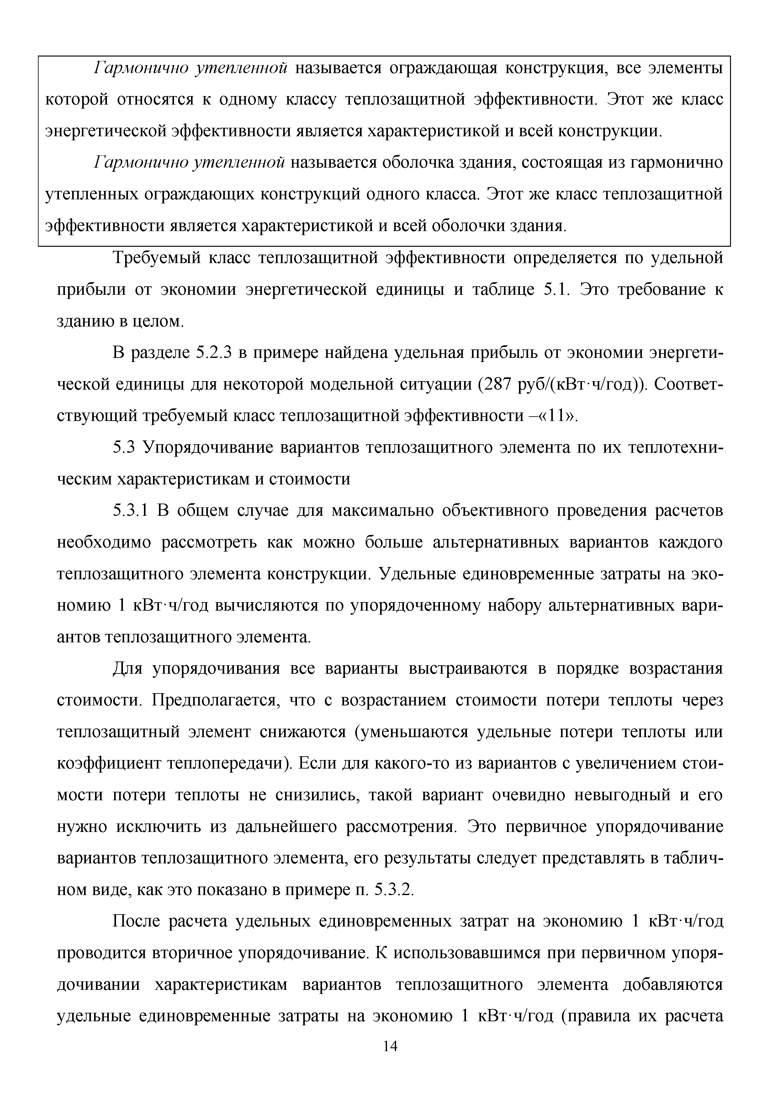 | Оглавление: | Введение 1 Область применения 2 Нормативные ссылки 3 Термины и определения 4 Общие положения 5 Методика оптимизации теплозащитной оболочки 5.1 Описание методики 5.2 Расчет удельной прибыли от экономии энергетической единицы и требуемого класса теплозащитной эффективности здания 5.3 Упорядочивание вариантов теплозащитного элемента по их теплотехническим характеристикам и стоимости 5.4 Расчет удельных единовременных затрат на экономию энергетической единицы 5.5 Оптимизация теплозащитной оболочки здания по окупаемости энергосберегающих мероприятий 5.6 Пример оптимизации теплозащитной оболочки здания по окупаемости энергосберегающих мероприятий 6 Методика выбора иных энергосберегающих решений 6.1 Описание методики 6.2 Удельные единовременные затраты на экономию энергетической единицы для различных энергосберегающих мероприятий 6.3 Выбор оптимального источника энергии |