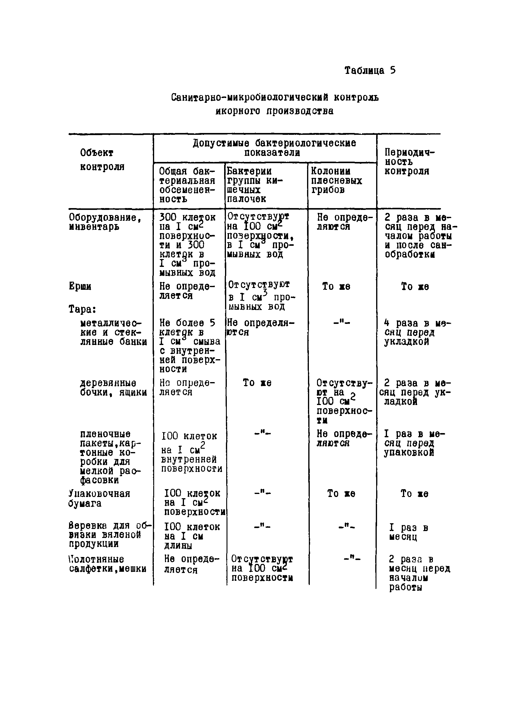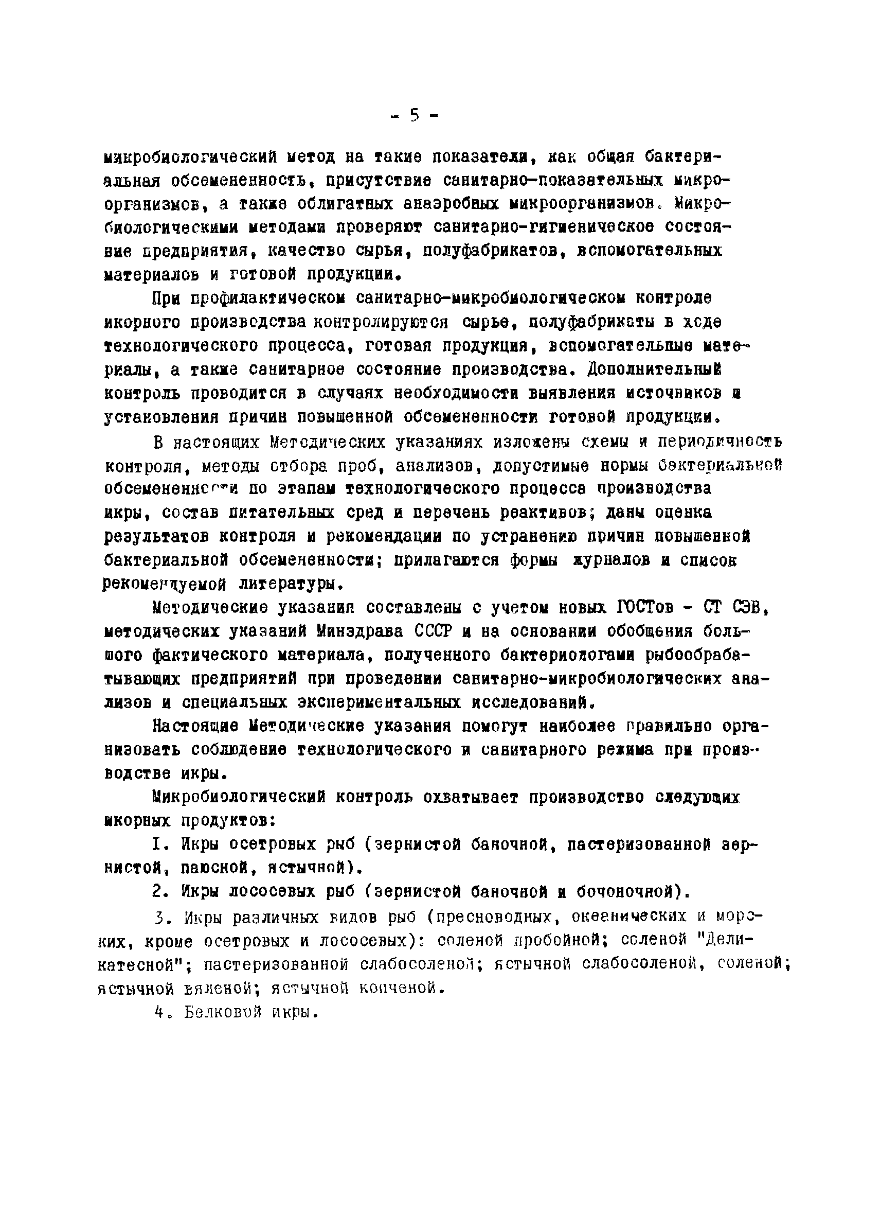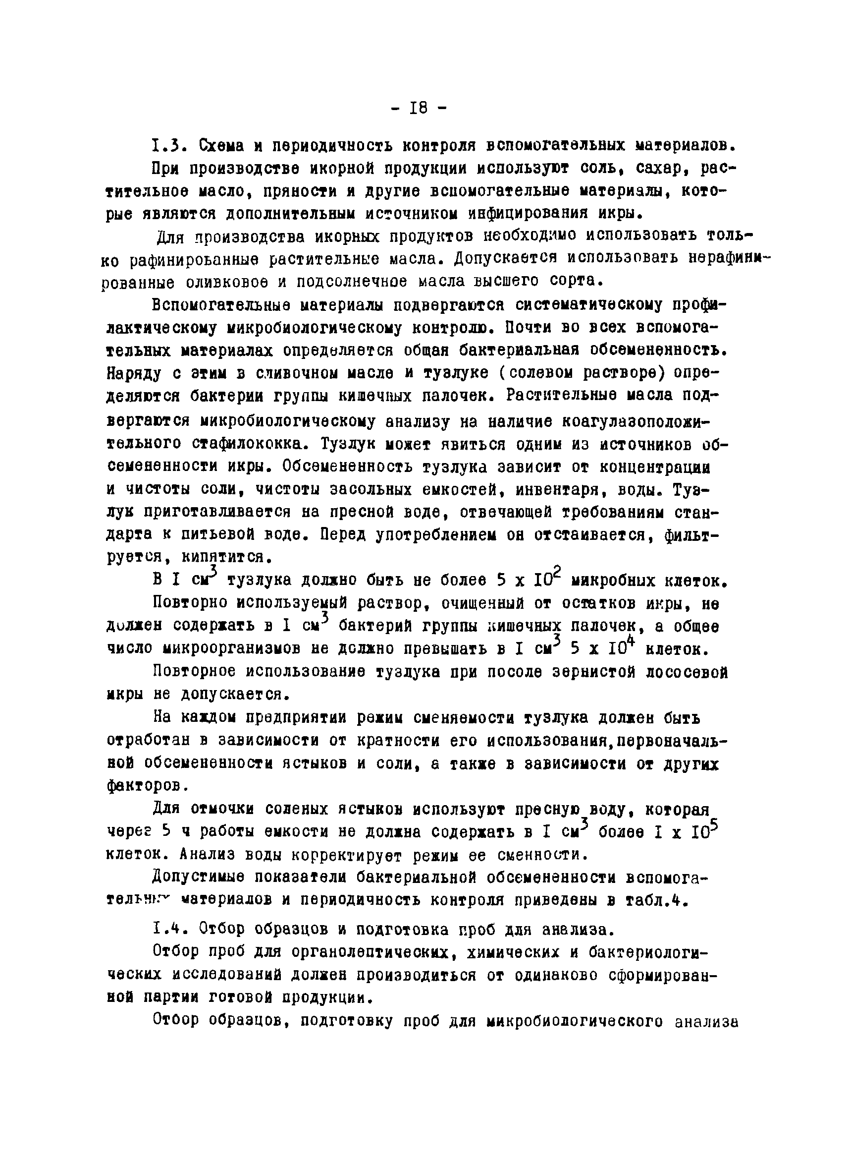 | Область применения: | Методические указания по санитарно-микробиологическому контролю икорного производства предназначены для работников производственных лабораторий, центральных лабораторий проектно-конструкторских и технических бюро всесоюзных рыбопромышленных объединений, учреждений санэпидслужбы, осуществляющих санитарно-микробиологический контроль икорного производства |