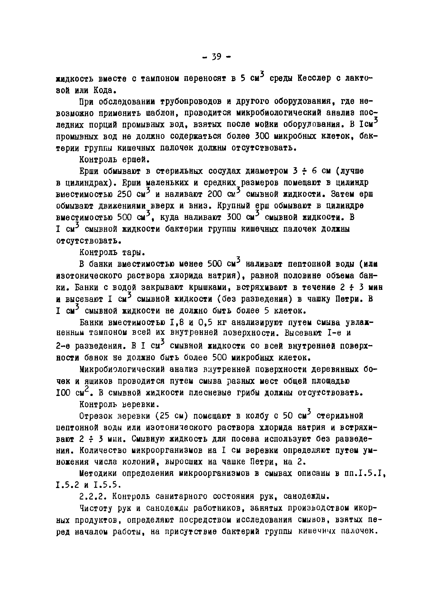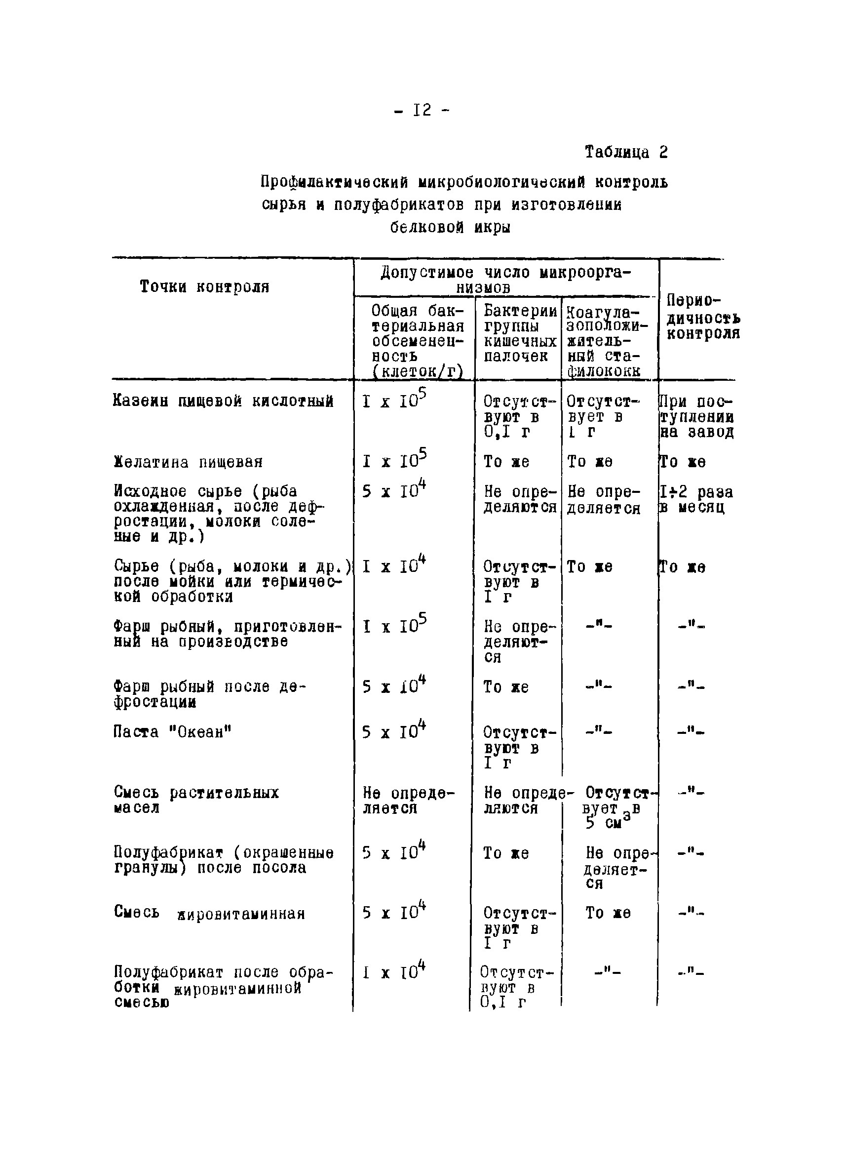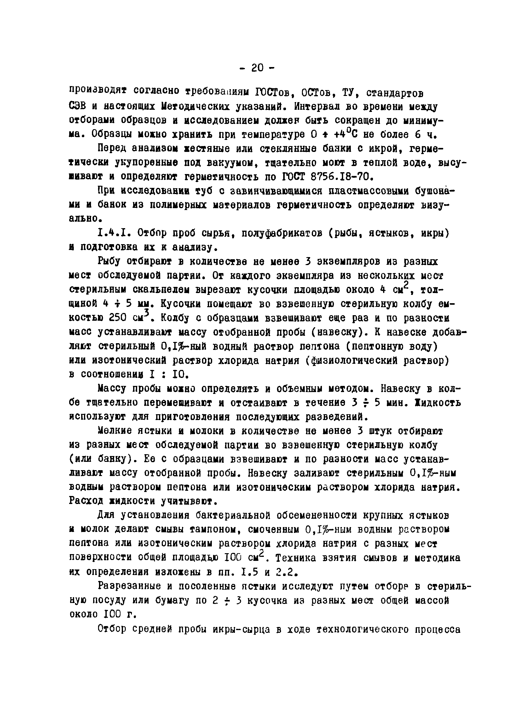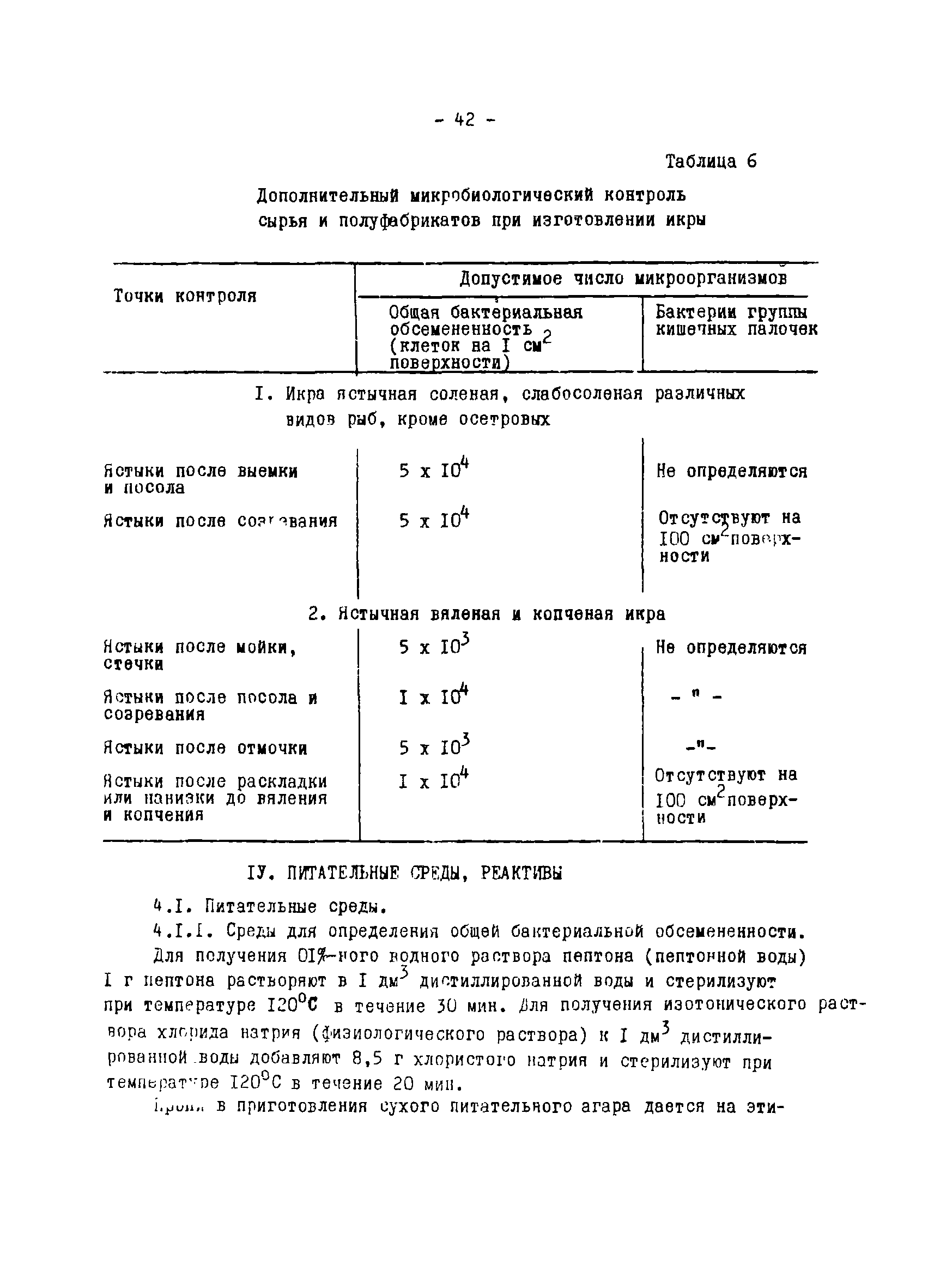 | Область применения: | Методические указания по санитарно-микробиологическому контролю икорного производства предназначены для работников производственных лабораторий, центральных лабораторий проектно-конструкторских и технических бюро всесоюзных рыбопромышленных объединений, учреждений санэпидслужбы, осуществляющих санитарно-микробиологический контроль икорного производства |