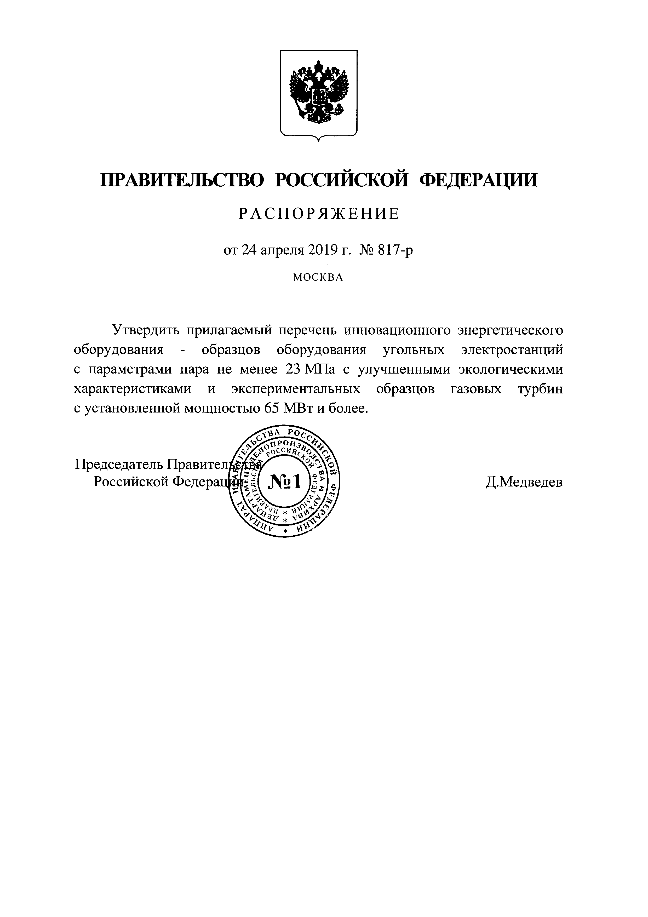 | Утверждён: | 24.04.2019 Правительство Российской Федерации (817-р)