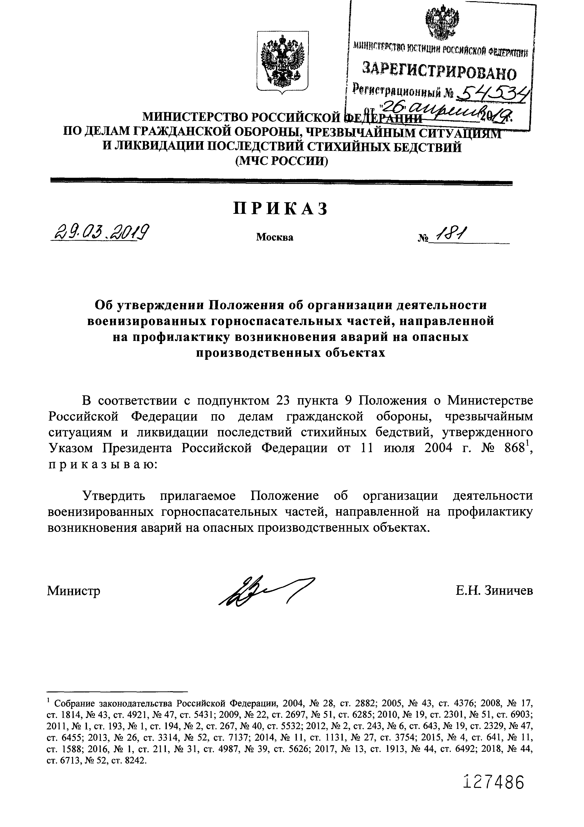 | | Издан: | Официальный интернет-портал правовой информации (www.pravo.gov.ru) (от 29.04.2019. Номер опубликования: 0001201904290029)