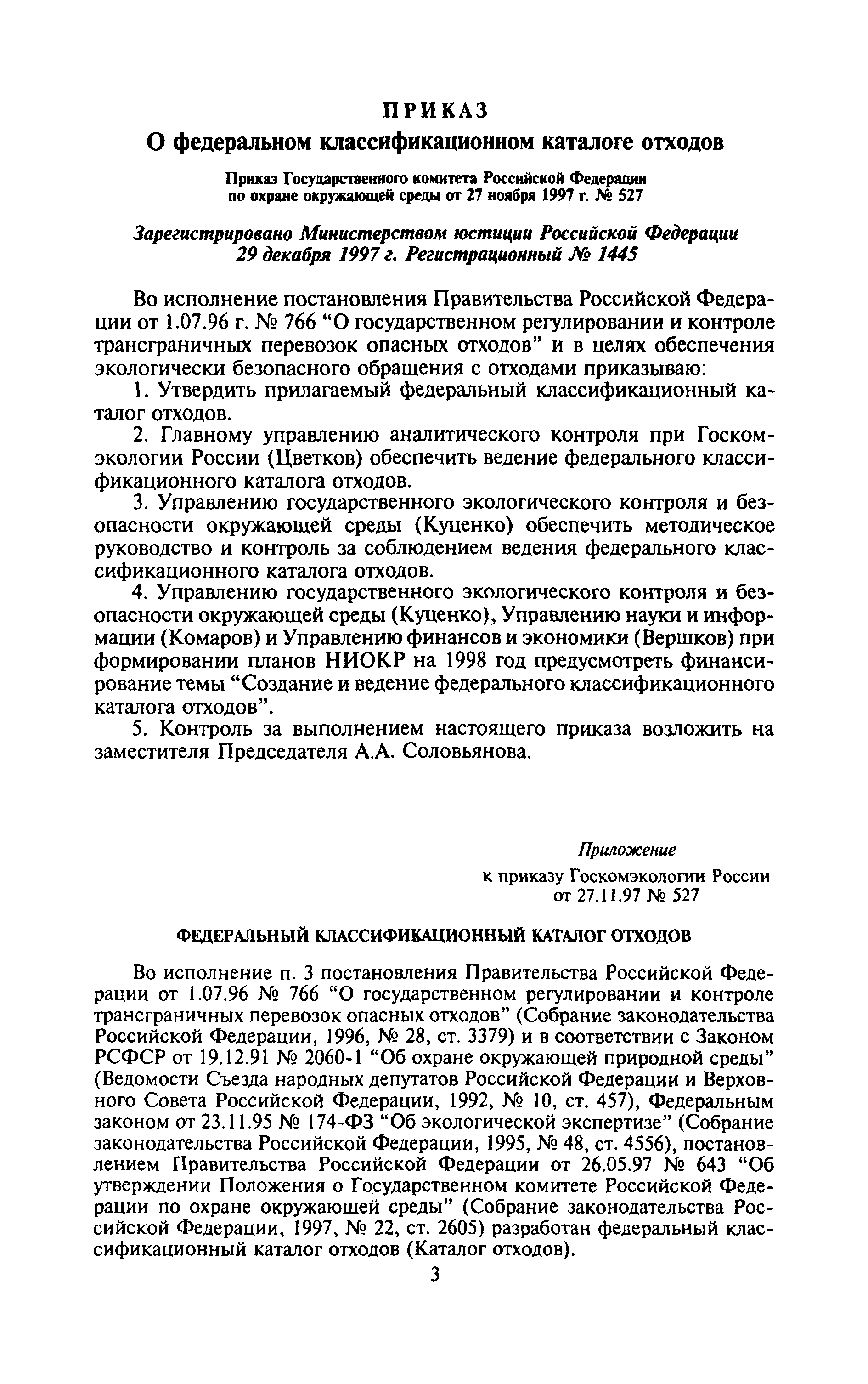 | Утверждён: | 27.11.1997 Госкомэкология России (Russian Federation Goskomekologiya 527)