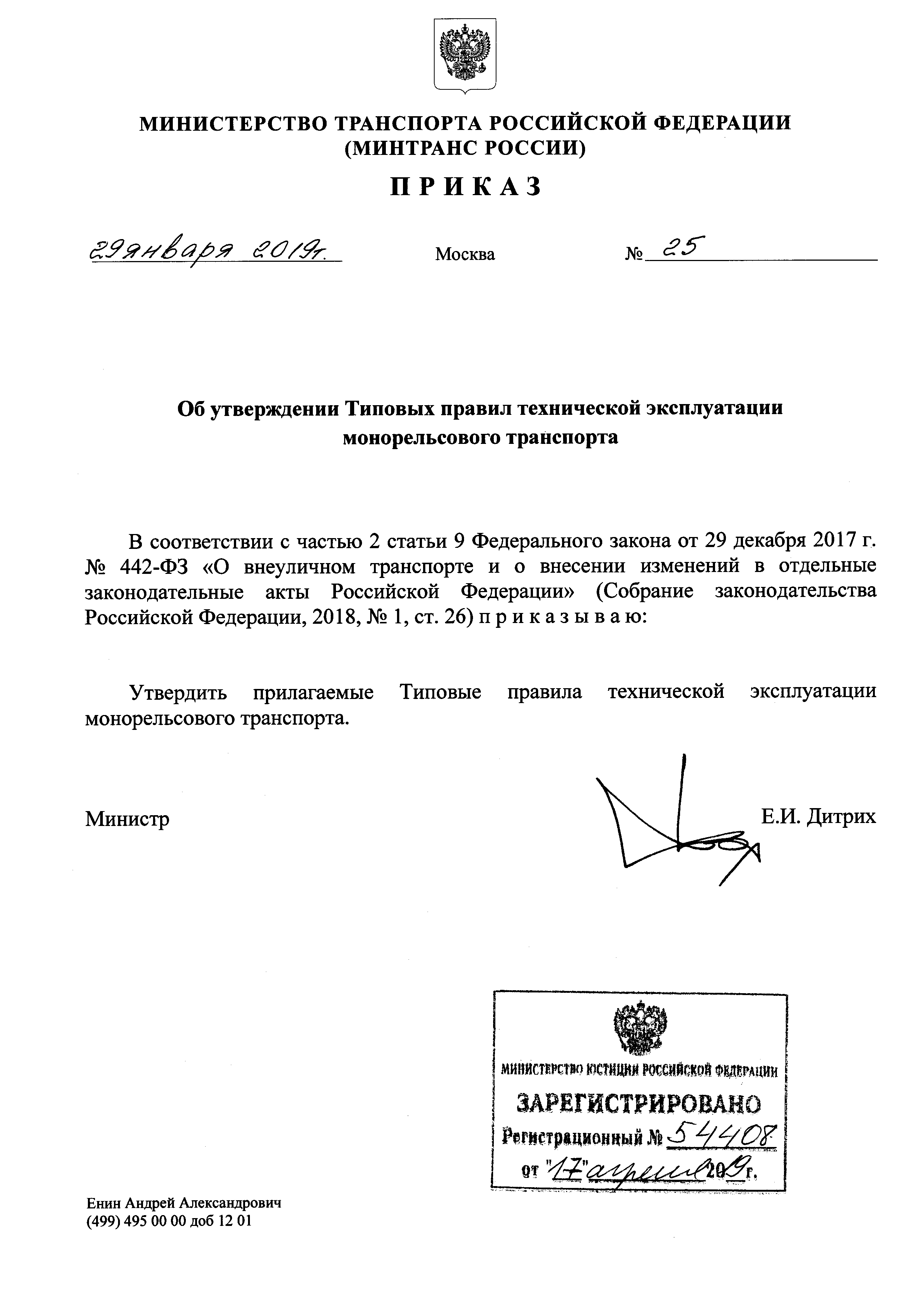 | Утверждён: | 29.01.2019 Министерство транспорта Российской Федерации (Russian Federation Ministry of Transportation 25)