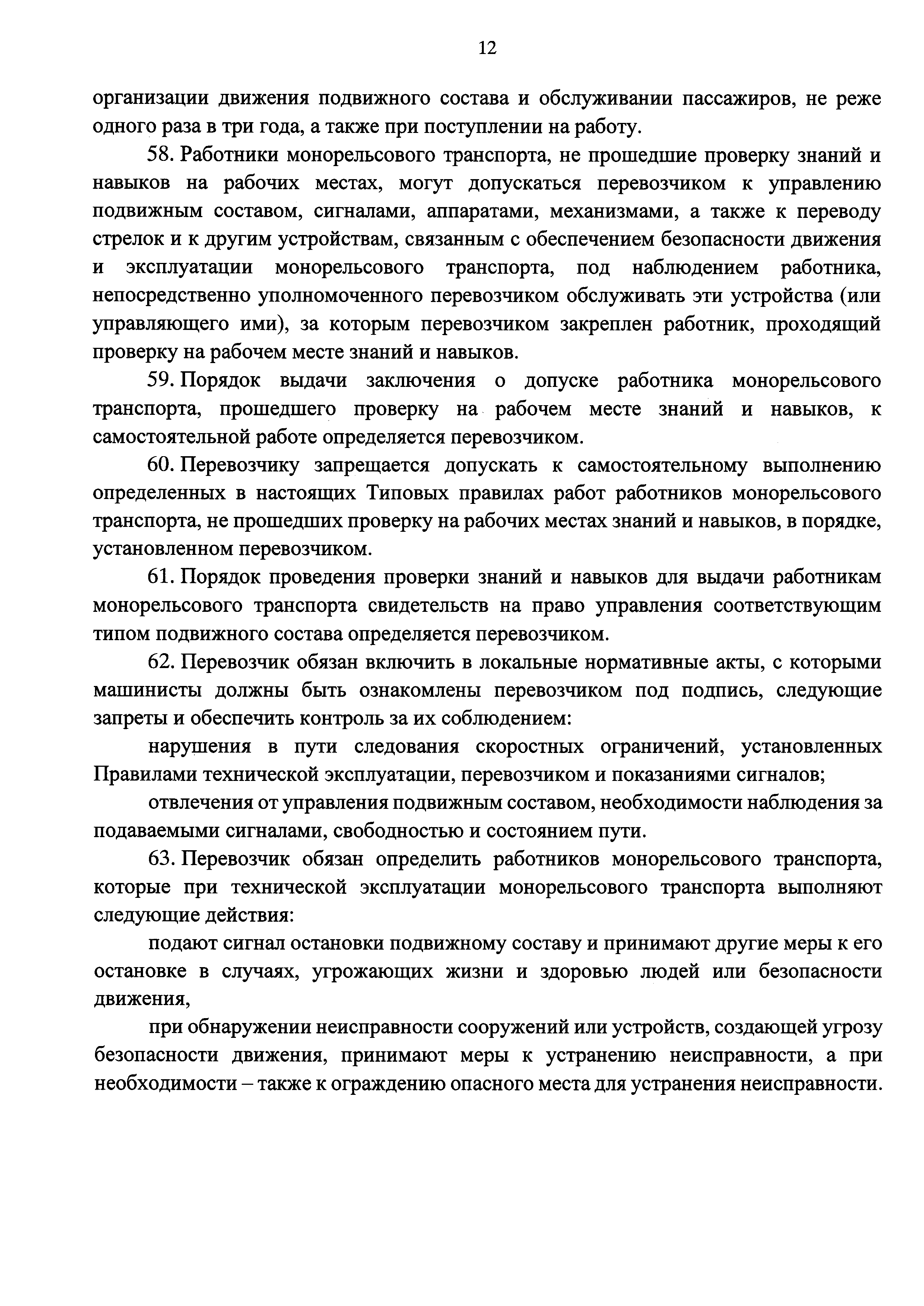 | Область применения: | Типовые правила технической эксплуатации монорельсового транспорта устанавливают порядок движения подвижного состава и организации маневровой работы, функционирования объектов инфраструктуры монорельсового транспорта, систему сигналов, относящихся к движению подвижного состава и организации маневровой работы, типы сигнальных приборов, при помощи которых эти сигналы подаются, определяют действия работников юридических лиц и индивидуальных предпринимателей, осуществляющих перевозки пассажиров монорельсовым транспортом при технической эксплуатации монорельсового транспорта |