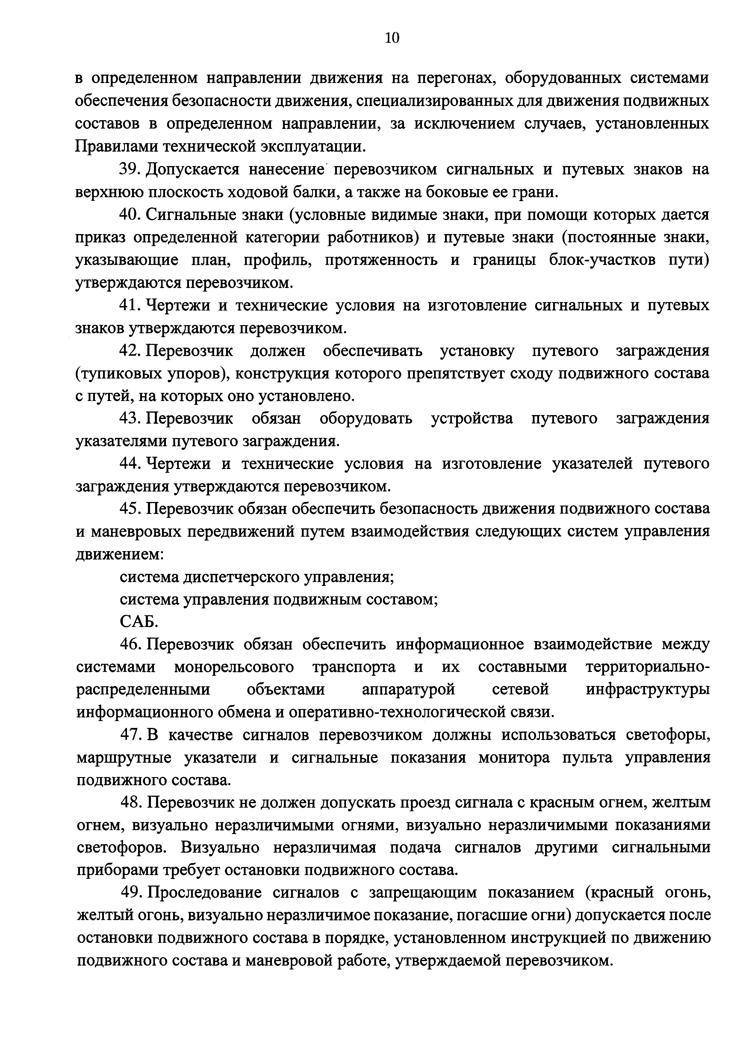 | Оглавление: | I. Общие положения II. Порядок движения подвижного состава монорельсового транспорта и организации маневровой работы III. Порядок функционирования объектов инфраструктуры монорельсового транспорта IV. Система сигналов, относящихся к движению подвижного состава и организации маневровой работы, а также типы сигнальных приборов, при помощи которых эти сигналы подаются V. Действия работников монорельсового транспорта при технической эксплуатации монорельсового транспорта |
