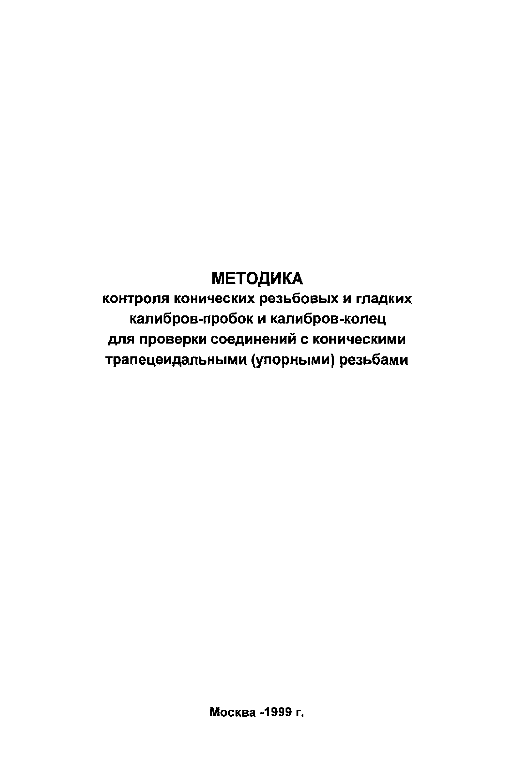 | Название рус.: | Методика контроля конических резьбовых и гладких калибров-пробок и калибров-колец для проверки соединений с коническими трапецеидальными (упорными) резьбами |