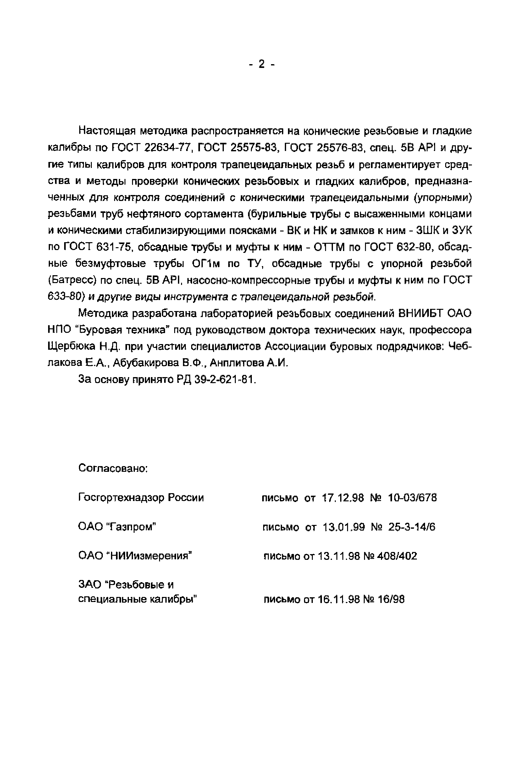 | Принят: | 17.12.1998 Госгортехнадзор России (Russian Federation Gosgortekhnadzor 10-03/678) 13.01.1999 ОАО Газпром (Gazprom OAO 25-3-14/6) 13.11.1998 ОАО НИИизмерения (408/402) 16.11.1998 ЗАО Резьбовые и специальные калибры (16/98) |