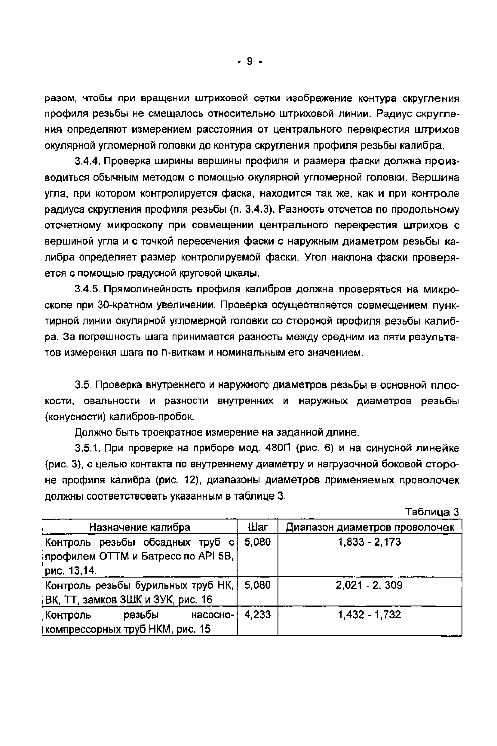 | Область применения: | Методика распространяется на конические резьбовые и гладкие калибры по ГОСТ 22634-17, ГОСТ 25575-83, ГОСТ 25576-83, спец. 5В АРI и другие типы калибров для контроля трапецеидальных резьб и регламентирует средства и методы проверки конических резьбовых и гладких калибров, предназначенных для контроля соединений с коническими трапецеидальными (упорными) резьбами труб нефтяного сортамента (бурильные трубы с высаженными концами и коническими стабилизирующими поясками - ВК и НК и замков к ним - ЗШК и ЗУК по ГОСТ 631-75, обсадные трубы и муфты к ним - ОТТМ по ГОСТ 632-80, обсадные безмуфтовые трубы ОГ1м по ТУ, обсадные трубы с упорной резьбой (Батресс) по спец. 5В АРI, насосно-компрессорные трубы и муфты к ним по ГОСТ 633-80) и другие виды инструмента с трапецеидальной резьбой |