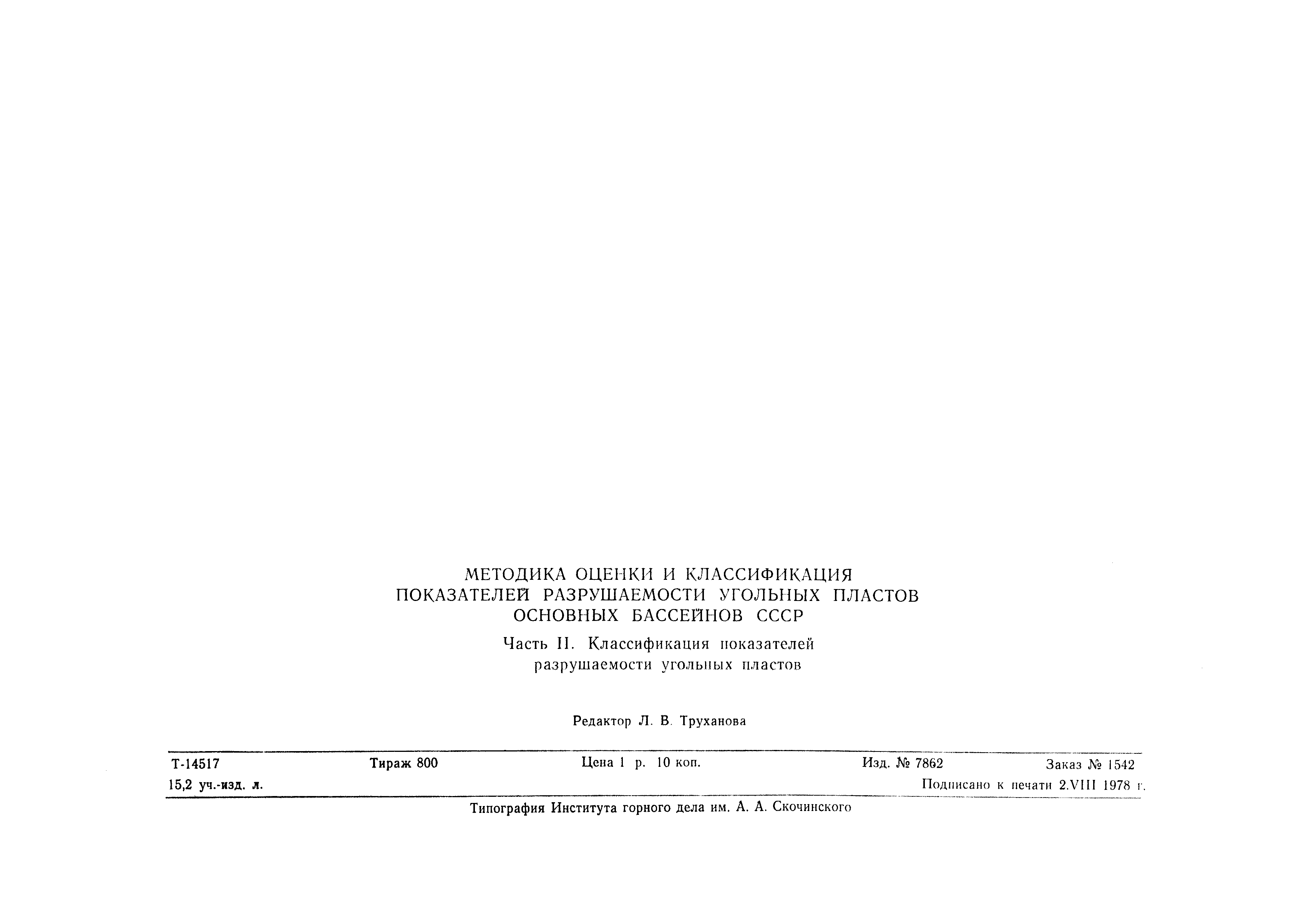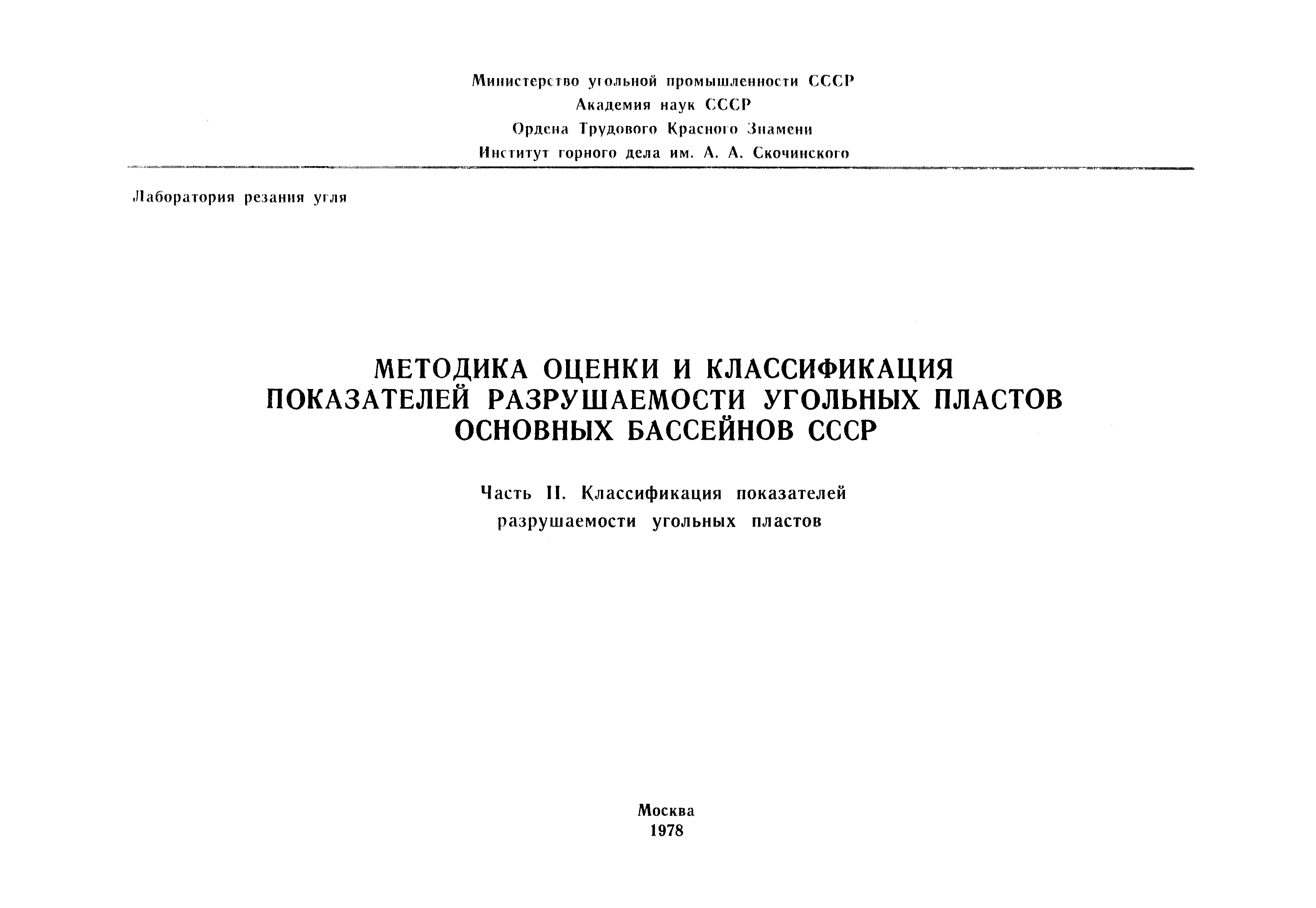 | Название рус.: | Методика оценки и классификация показателей разрушаемости угольных пластов основных бассейнов СССР. Часть 2. Классификация показателей разрушаемости угольных пластов |