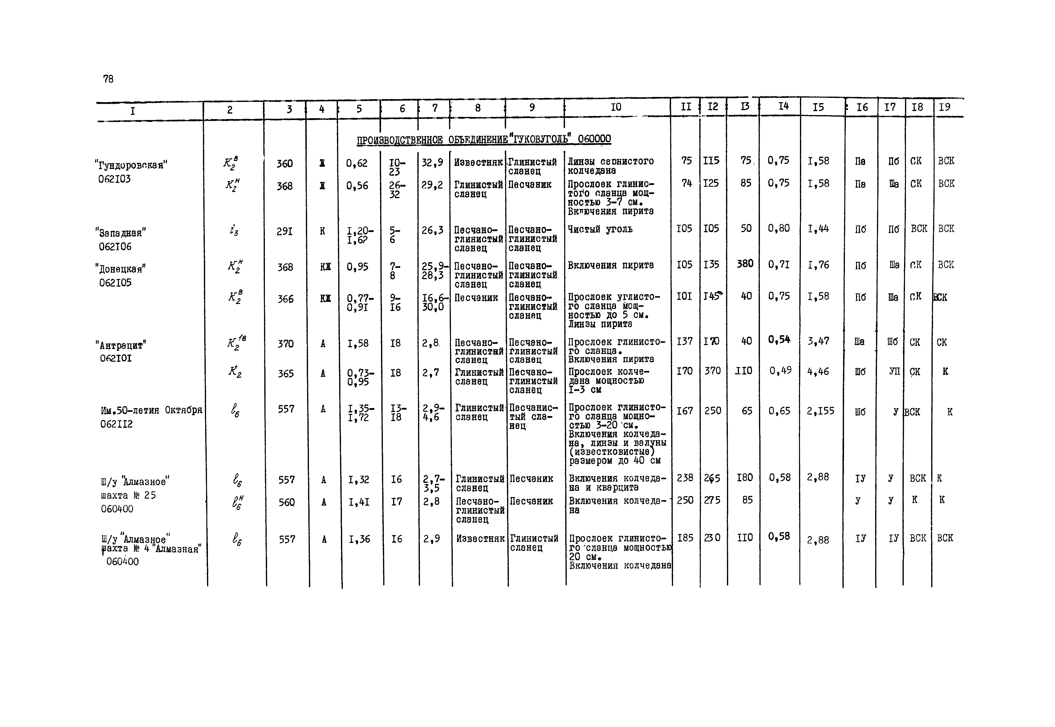 | Оглавление: | Донецкий бассейн (УССР) Производственное объединение "Донецкуголь" Производственное объединение "Макеевуголь" Производственное объединение "Красноармейскуголь" Производственное объединение "Добропольеуголь" Производственное объединение "Артемуголь" Производственное объединение "Орджоникидзеуголь" Производственное объединение "Шахтерскантрацит" Производственное объединение "Торезантрацит" Производственное объединение "Ворошиловградуголь" Производственное объединение "Стахановуголь" Производственное объединение "Первомайскуголь" Производственное объединение "Донбассантрацит" Производственное объединение "Краснодонуголь" Производственное объединение "Свердловантрацит" Производственное объединение "Павлоградуголь" Производственное объединение "Укрзападуголь" Донецкий бассейн (РСФСР) Производственное объединение "Ростовуголь" Производственное объединение "Гуковуголь" Кузнецкий бассейн Производственное объединение "Прокопьевскуголь" Производственное объединение "Кузбассуголь" Производственное объединение "Южкузбассуголь" Карагандинский бассейн Производственное объединение "Карагандауголь" Кизеловский бассейн Производственное объединение "Кизелуголь" Челябинский бассейн Производственное объединение "Челябинскуголь" |