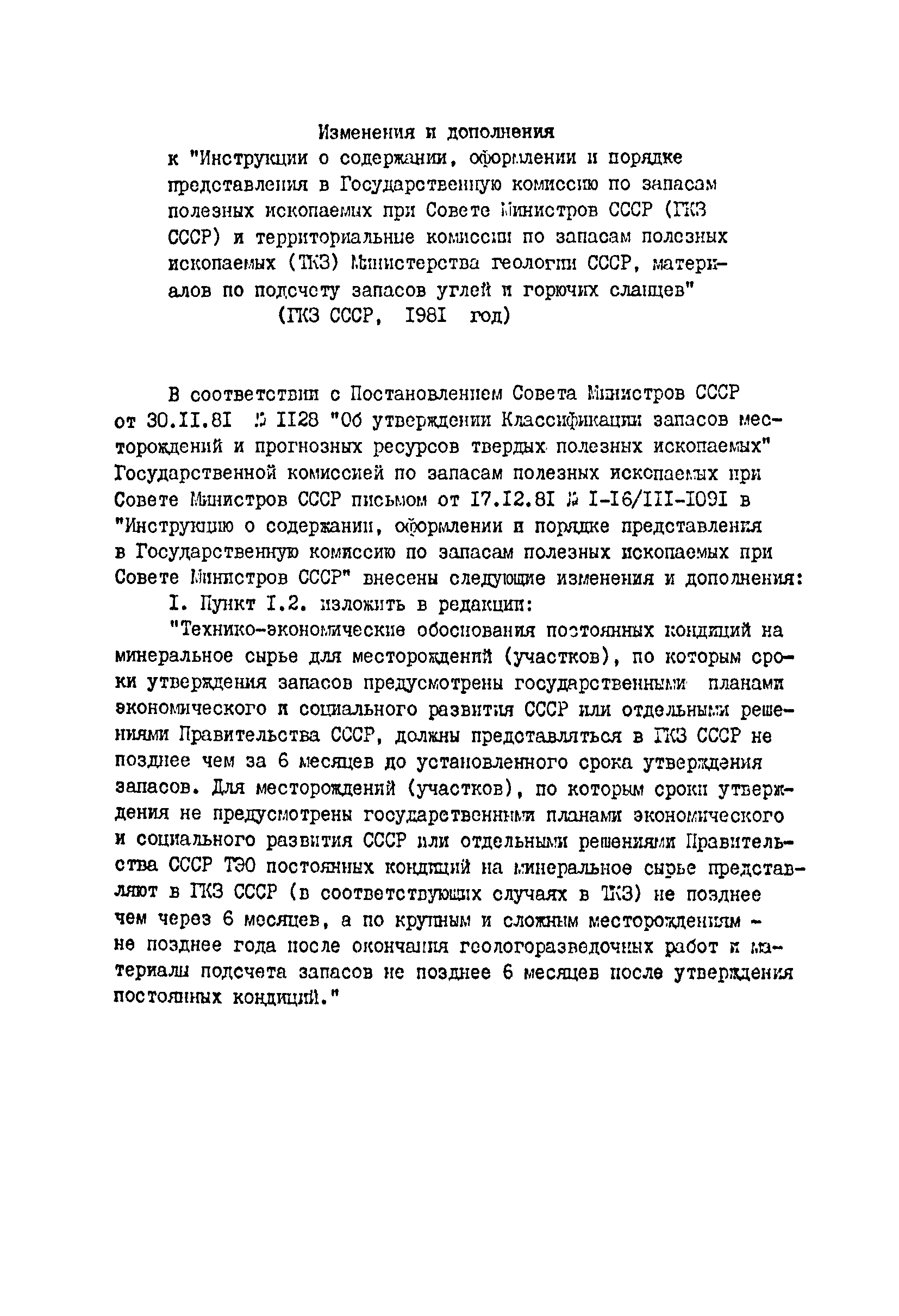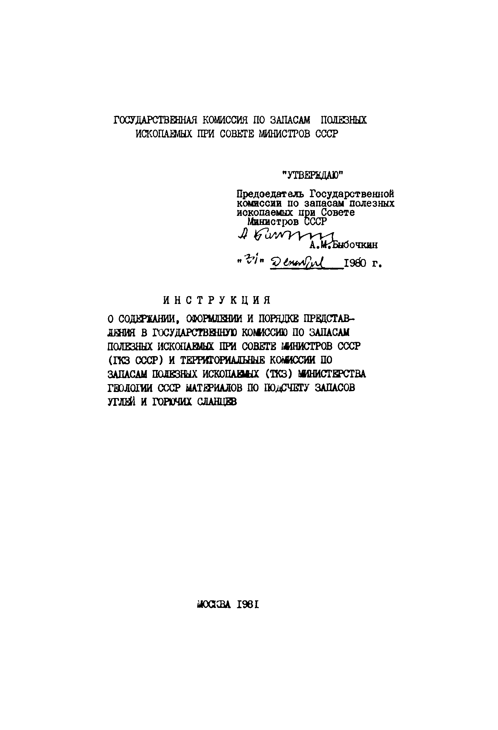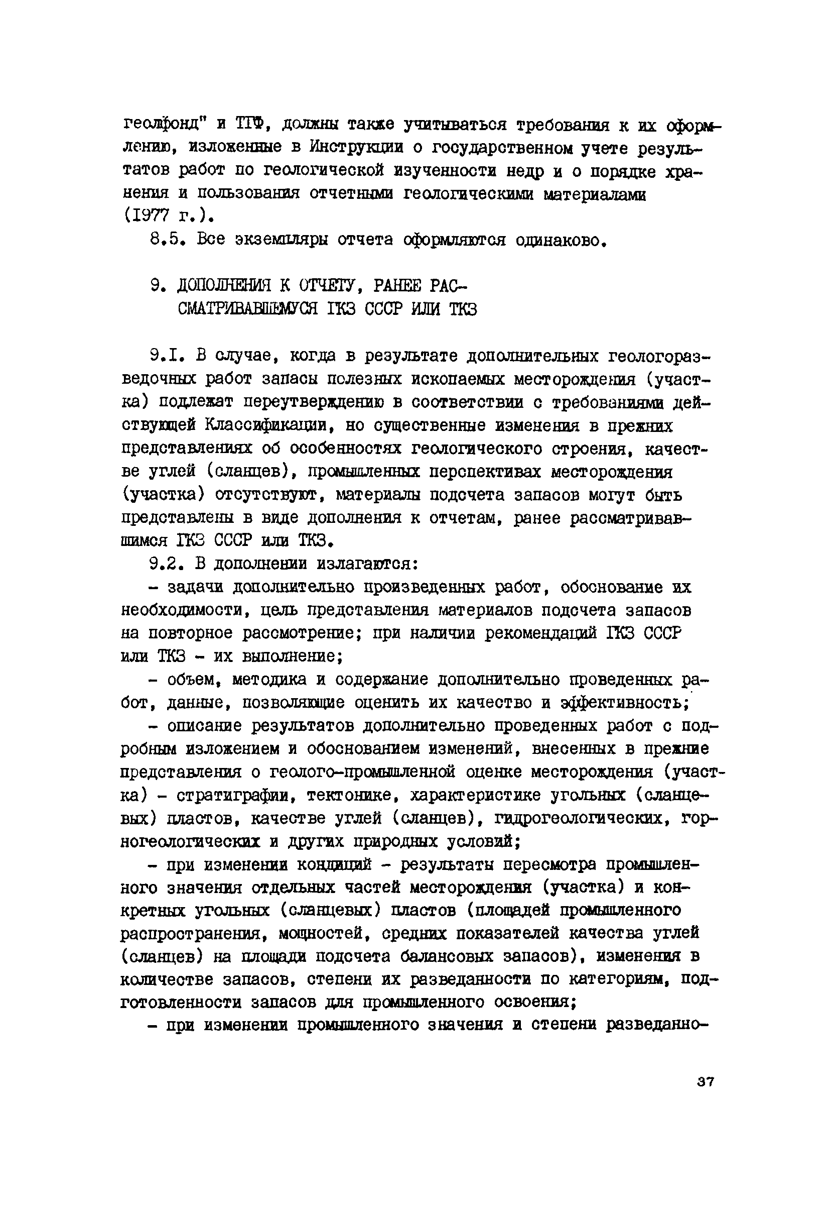 | Название рус.: | Инструкция о содержании, оформлении и порядке предоставления в Государственную комиссию по запасам полезных ископаемых при Совете Министров СССР (ГКЗ СССР) и территориальные комиссии по запасам полезных ископаемых (ТКЗ) Министерства геологии СССР материалов по подсчету запасов углей и горючих сланцев |