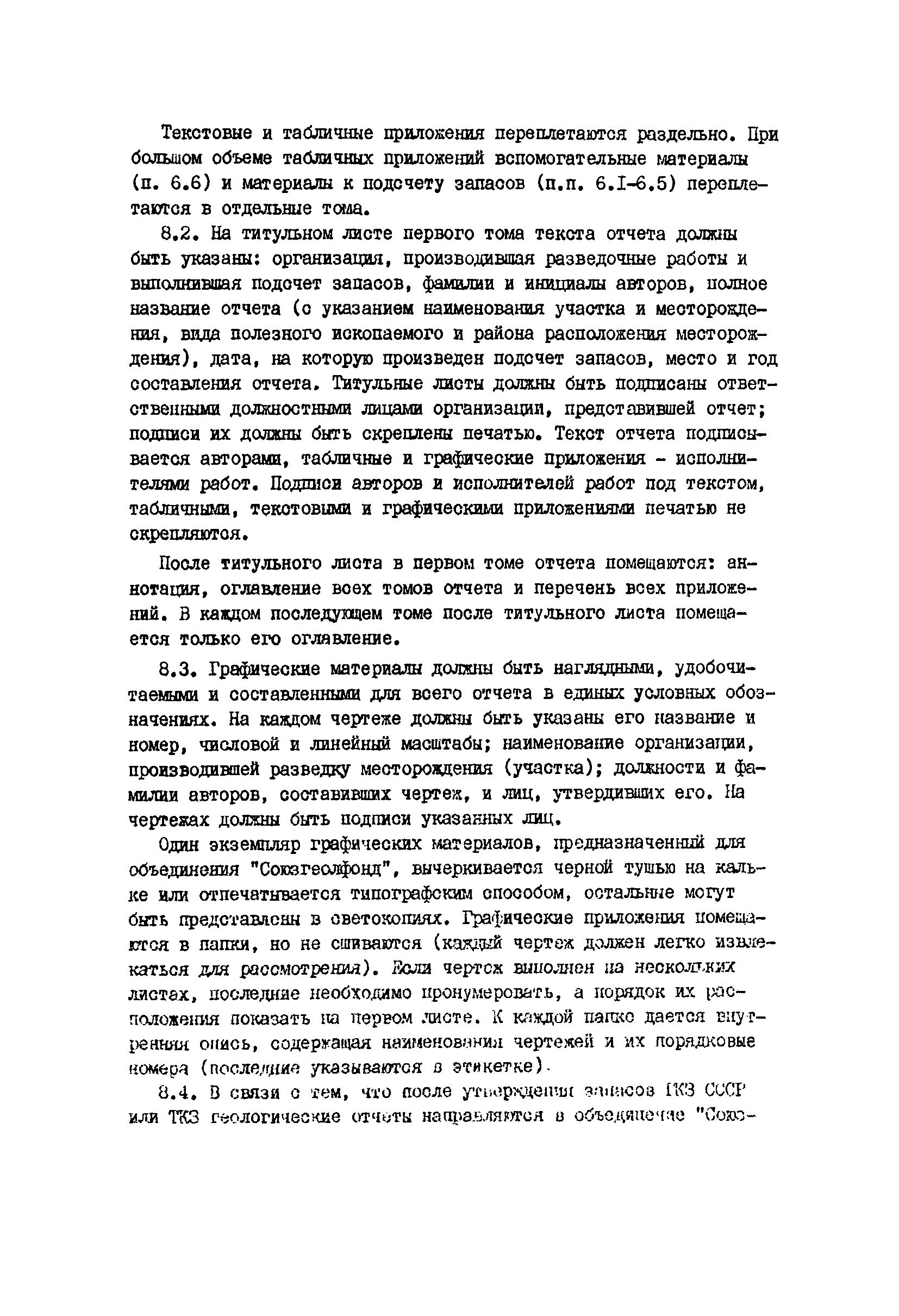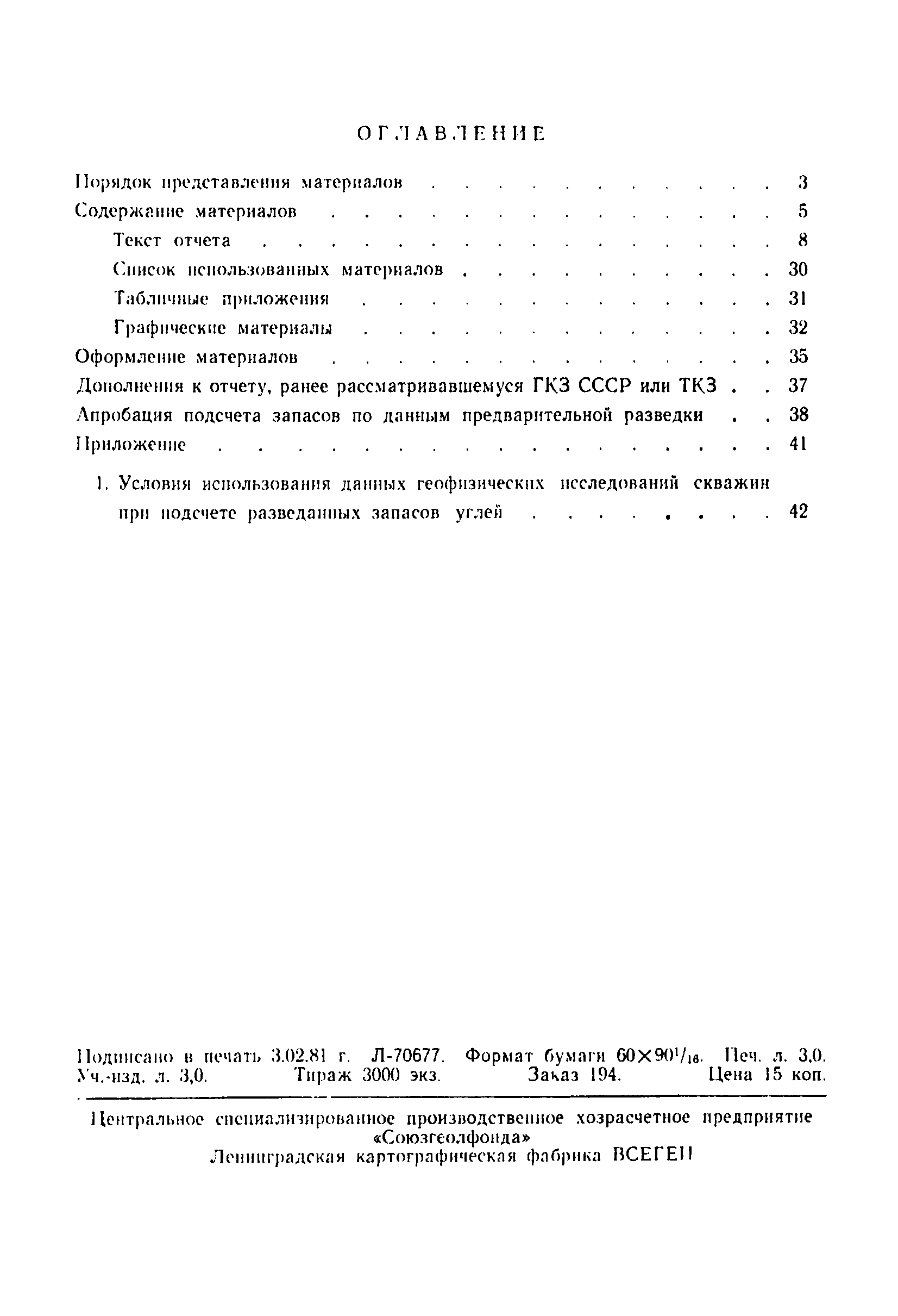 | Оглавление: | Порядок представления материалов Содержание материалов Текст отчета Список использованных материалов Текстовые приложения Табличные приложения Графические материалы Оформление материалов Дополнения к отчету, ранее рассматривавшемуся ГКЗ СССР или ТКЗ Апробация подсчета запасов по данным предварительной разведки Приложение 1. Условия использования данных геофизических исследований скважин при подсчете разведанных запасов углей |