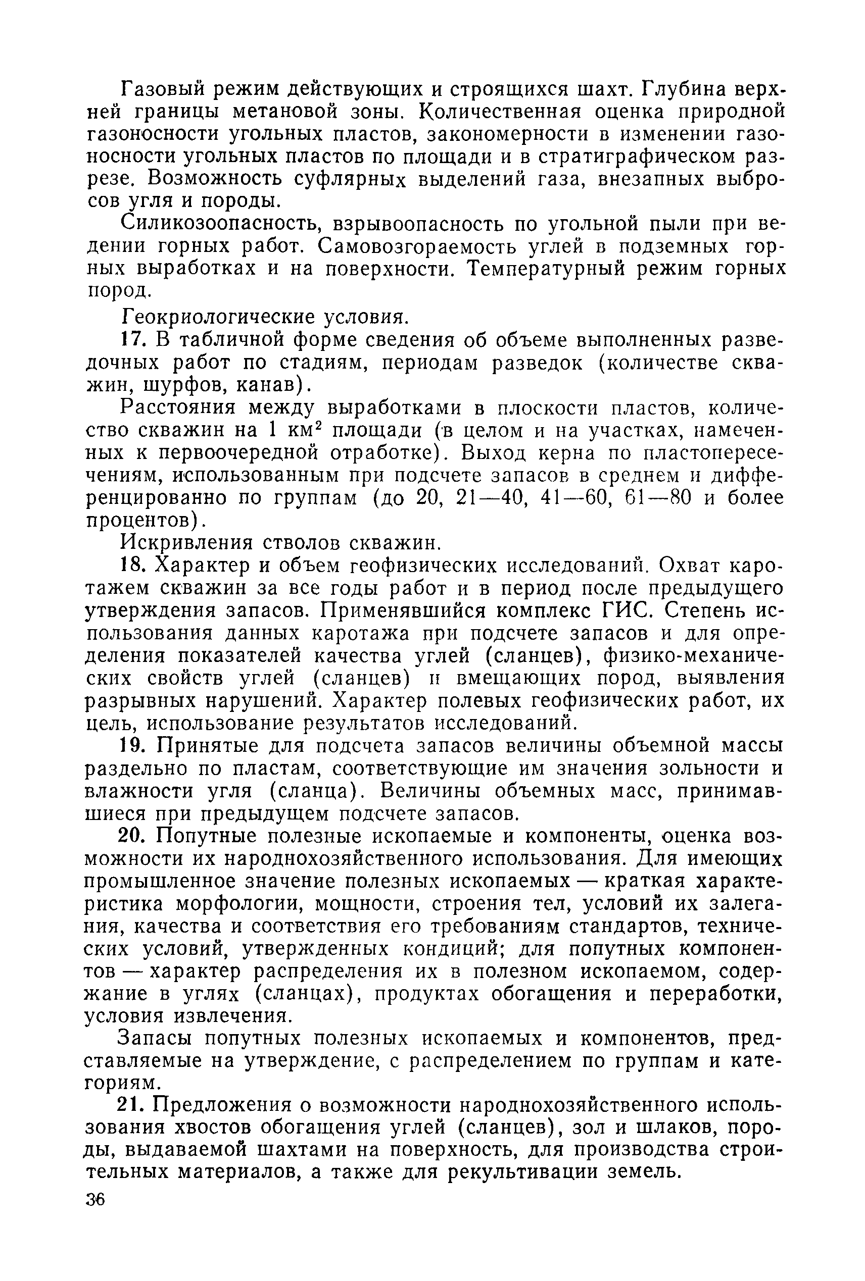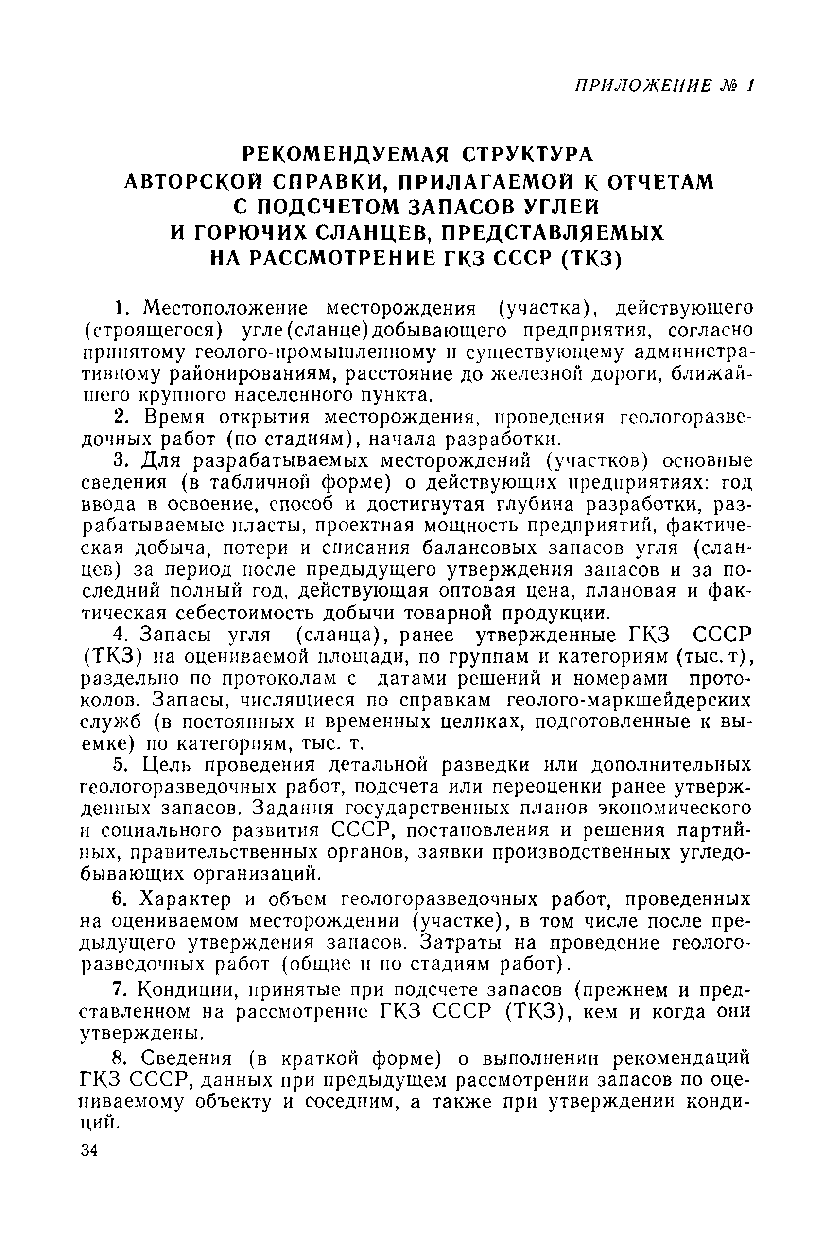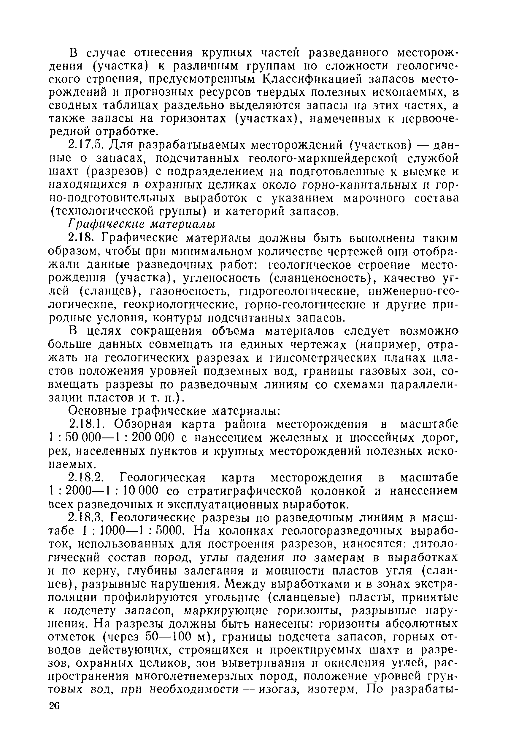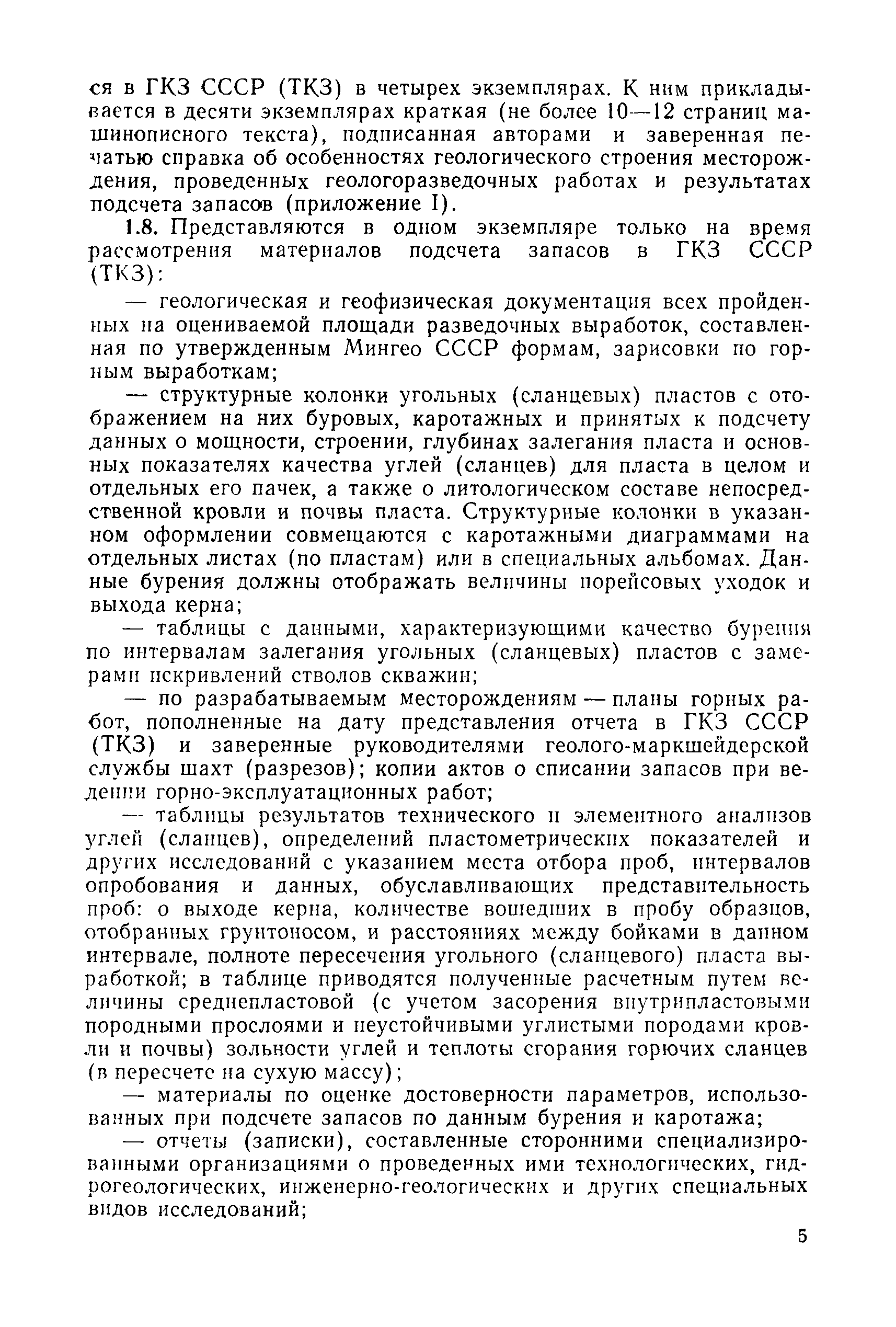 | Оглавление: | 1. Порядок представления и рассмотрения материалов 2. Содержание материалов по подсчету разведанных запасов углей (сланцев) на подготовленных для промышленного освоения месторождениях (участках) 3. Содержание материалов по пересчету ранее утвержденных запасов углей (сланцев) на разрабатываемых месторождениях или с дополнительным подсчетом запасов на площадях, прирезаемых к полям действующих шахт (разрезов) 4. Содержание материалов, представляемых с целью апробации запасов, подсчитанных по результатам предварительной разведки 5. Оформление материалов Приложение 1. Рекомендуемая структура авторской справки, прилагаемой к отчетам с подсчетом запасов углей и горючих сланцев, представляемых на рассмотрение ГКЗ СССР (ТКЗ) Приложение 2. Рекомендуемые критерии отнесения угольных (сланцевых) месторождений к различным группам по сложности геологического строения |
