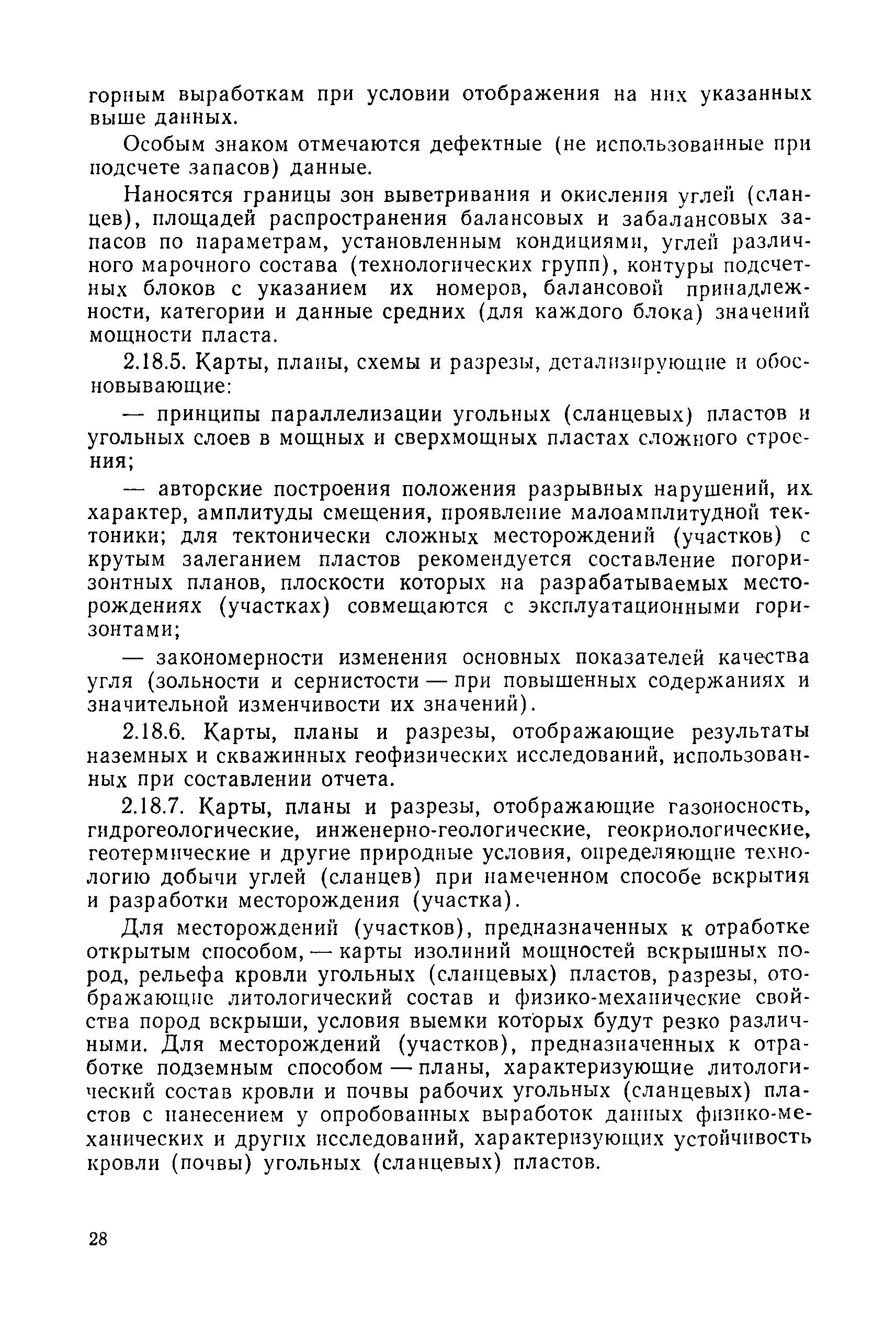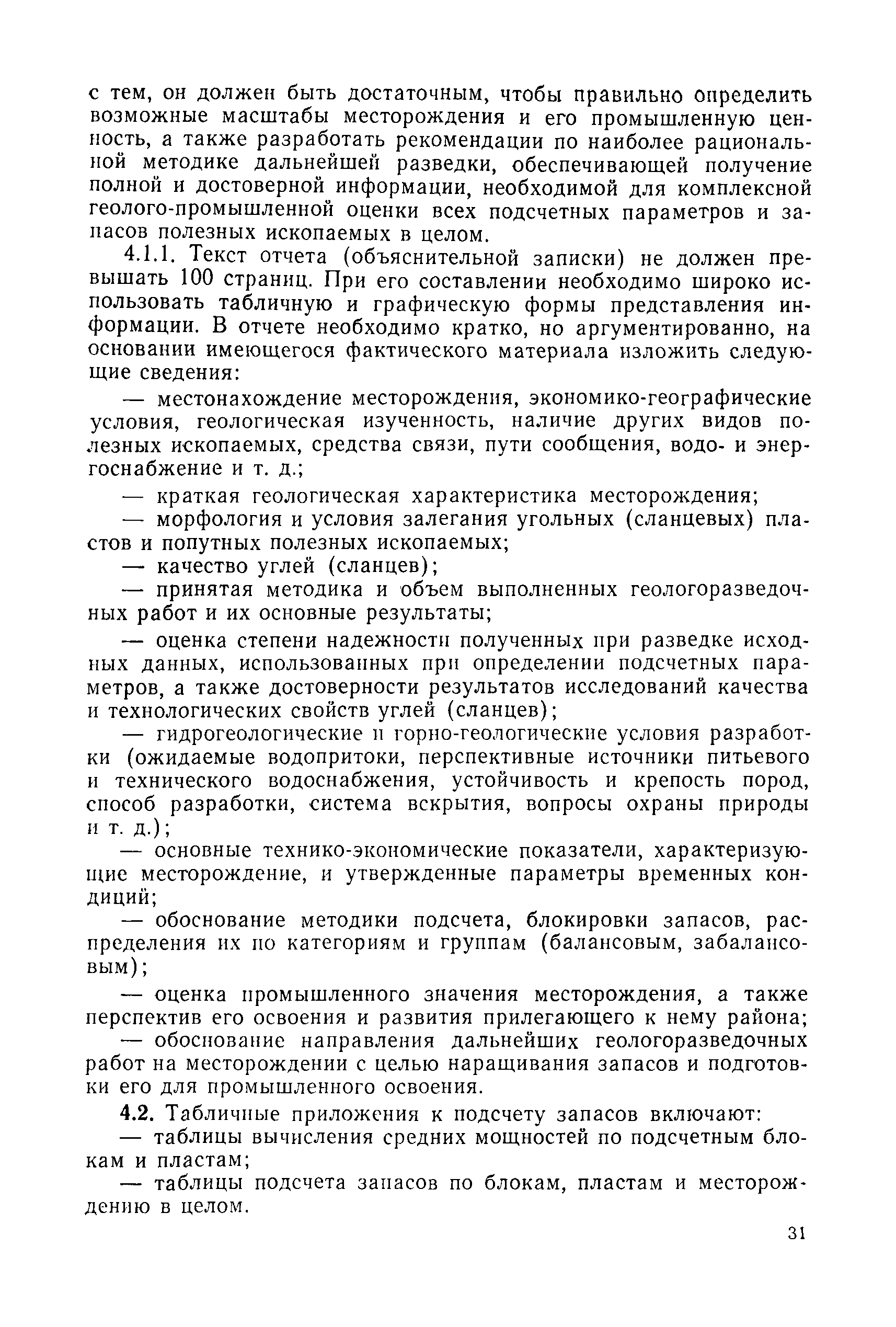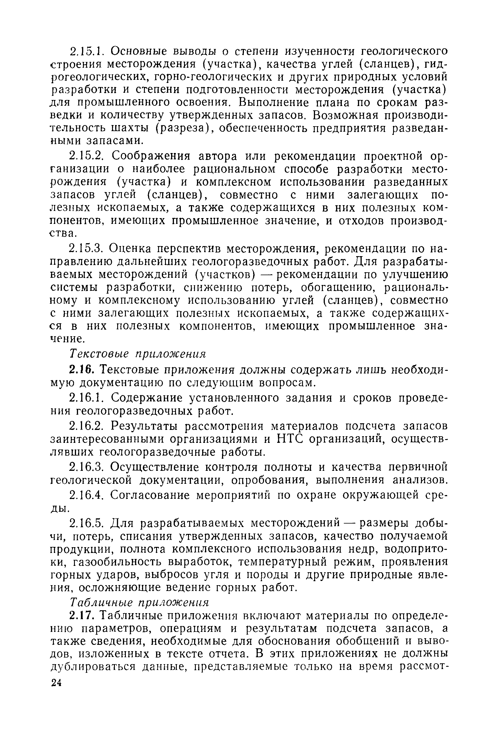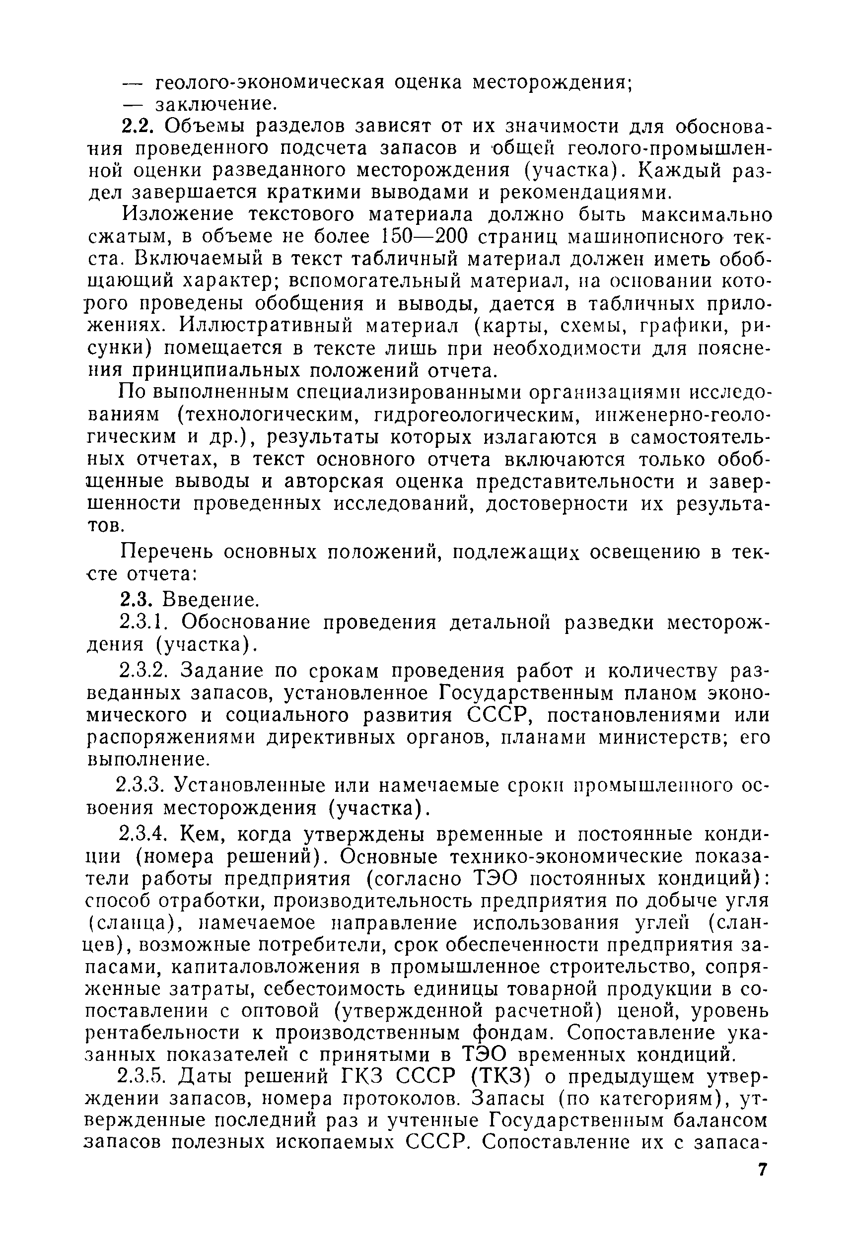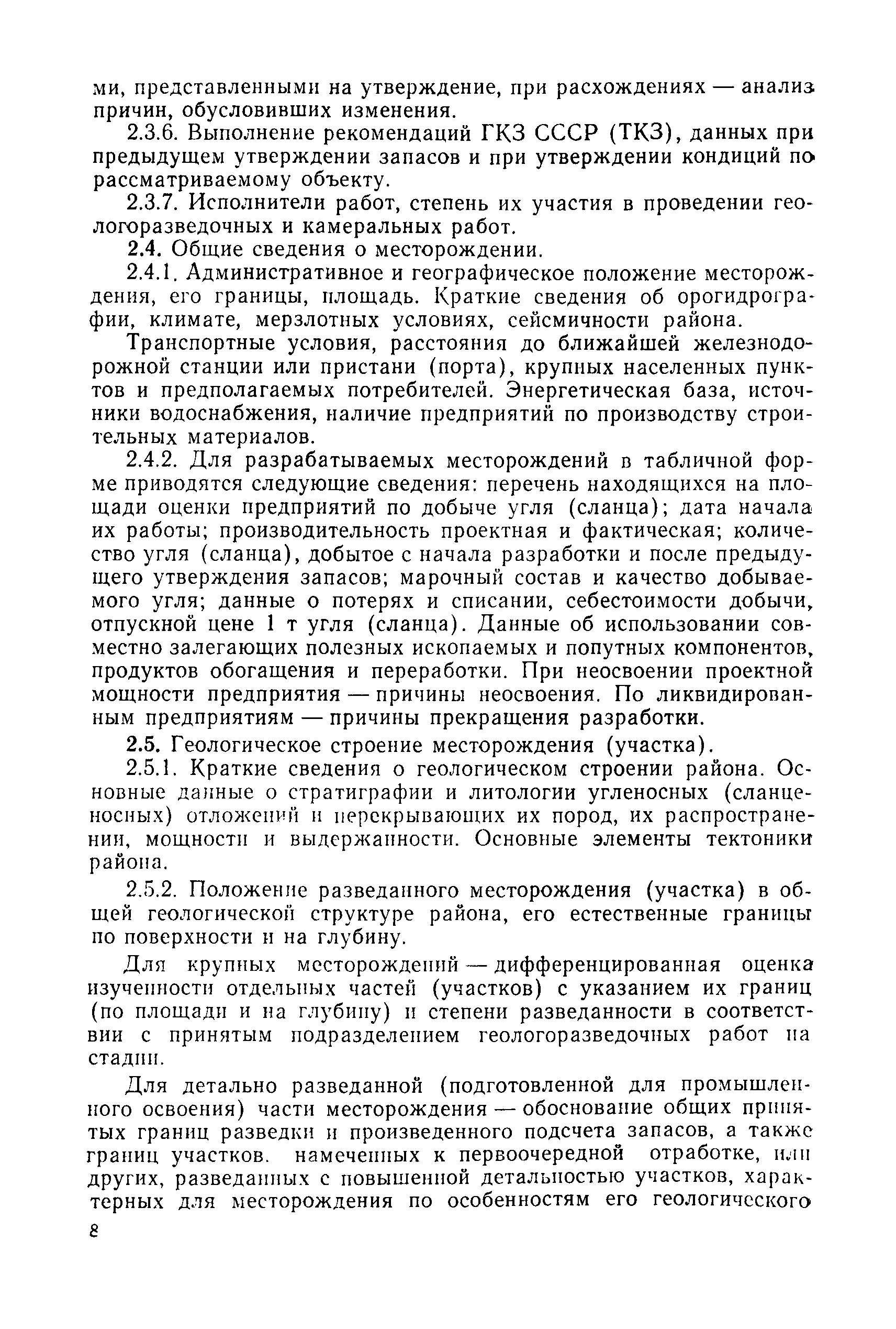 | Оглавление: | 1. Порядок представления и рассмотрения материалов 2. Содержание материалов по подсчету разведанных запасов углей (сланцев) на подготовленных для промышленного освоения месторождениях (участках) 3. Содержание материалов по пересчету ранее утвержденных запасов углей (сланцев) на разрабатываемых месторождениях или с дополнительным подсчетом запасов на площадях, прирезаемых к полям действующих шахт (разрезов) 4. Содержание материалов, представляемых с целью апробации запасов, подсчитанных по результатам предварительной разведки 5. Оформление материалов Приложение 1. Рекомендуемая структура авторской справки, прилагаемой к отчетам с подсчетом запасов углей и горючих сланцев, представляемых на рассмотрение ГКЗ СССР (ТКЗ) Приложение 2. Рекомендуемые критерии отнесения угольных (сланцевых) месторождений к различным группам по сложности геологического строения |
