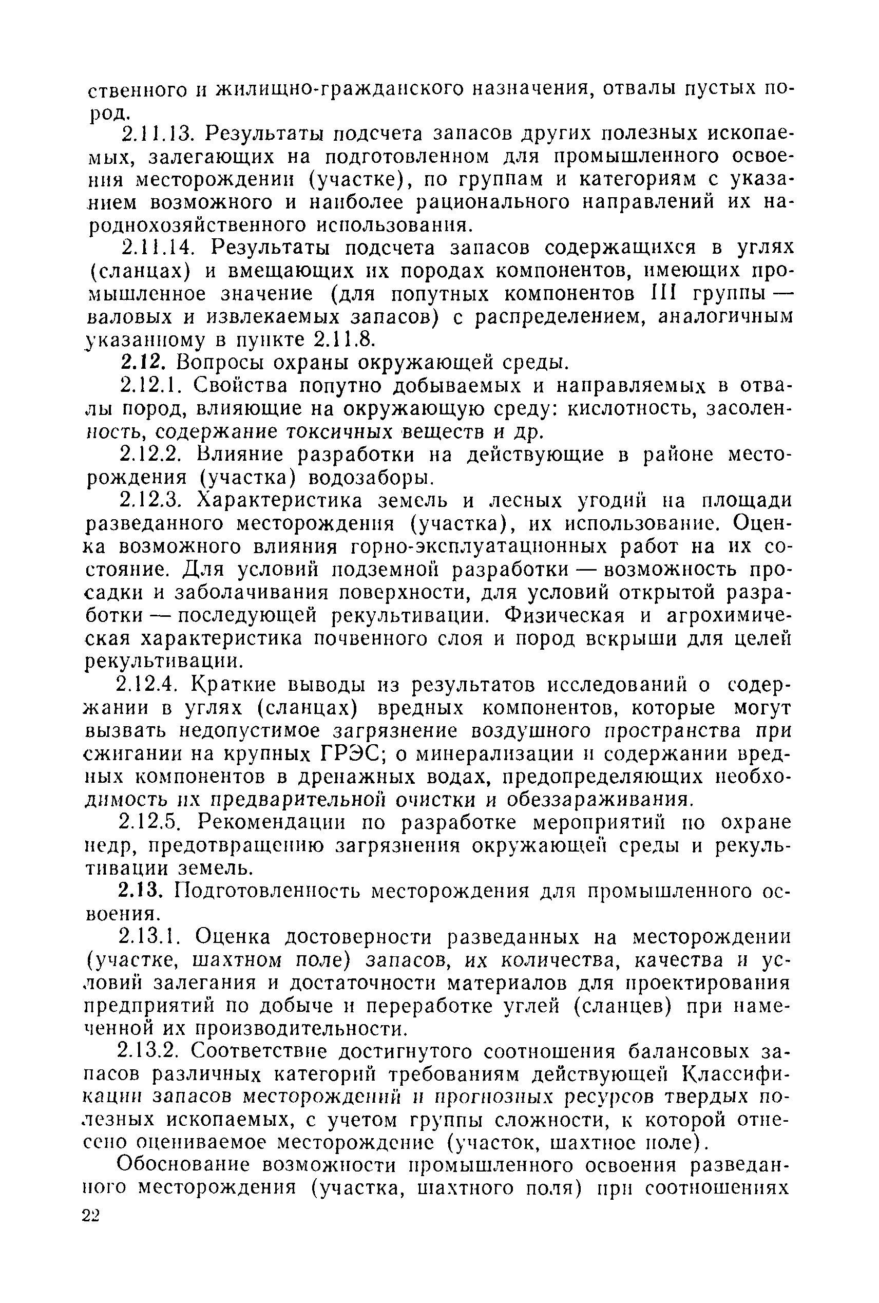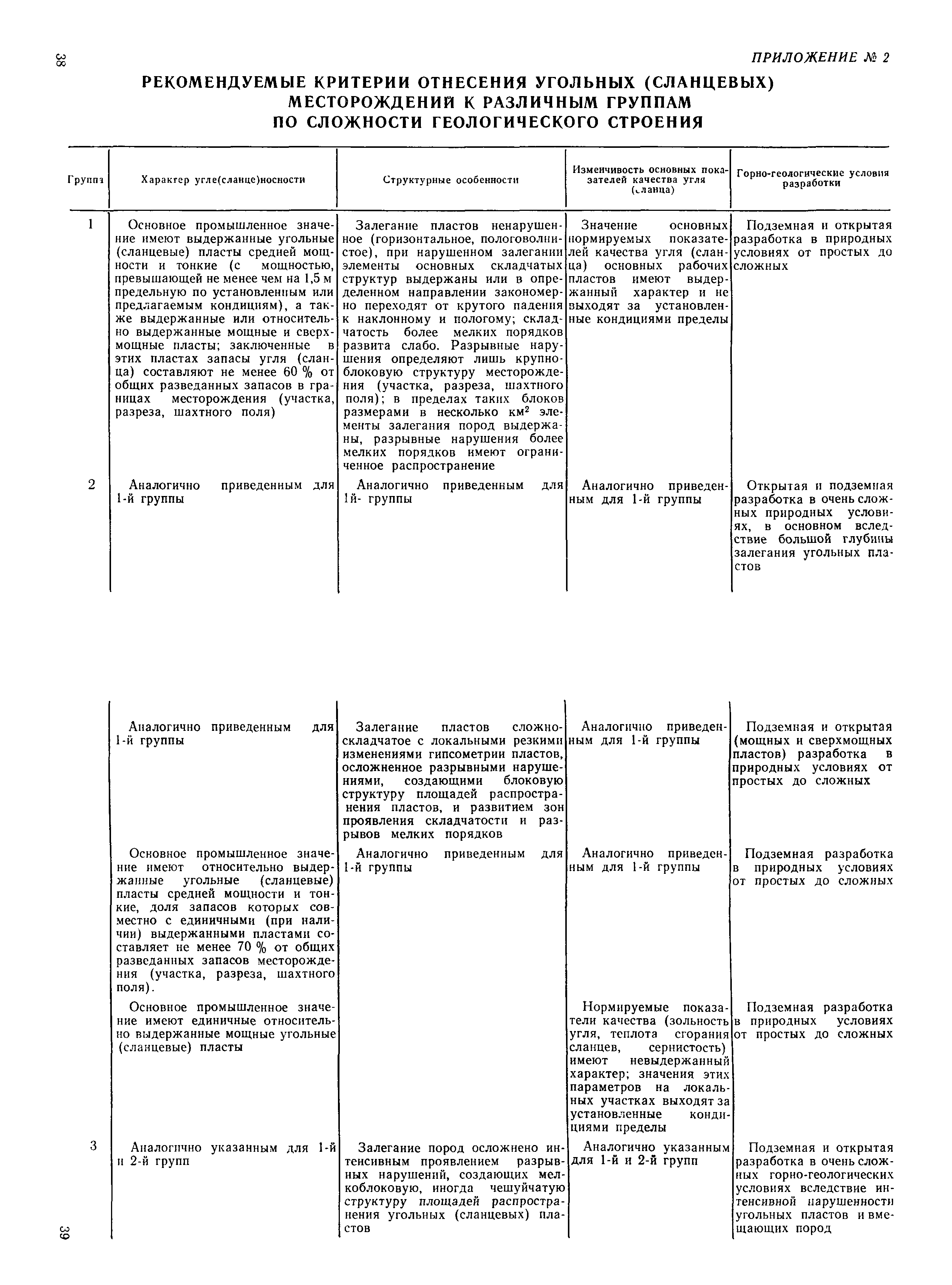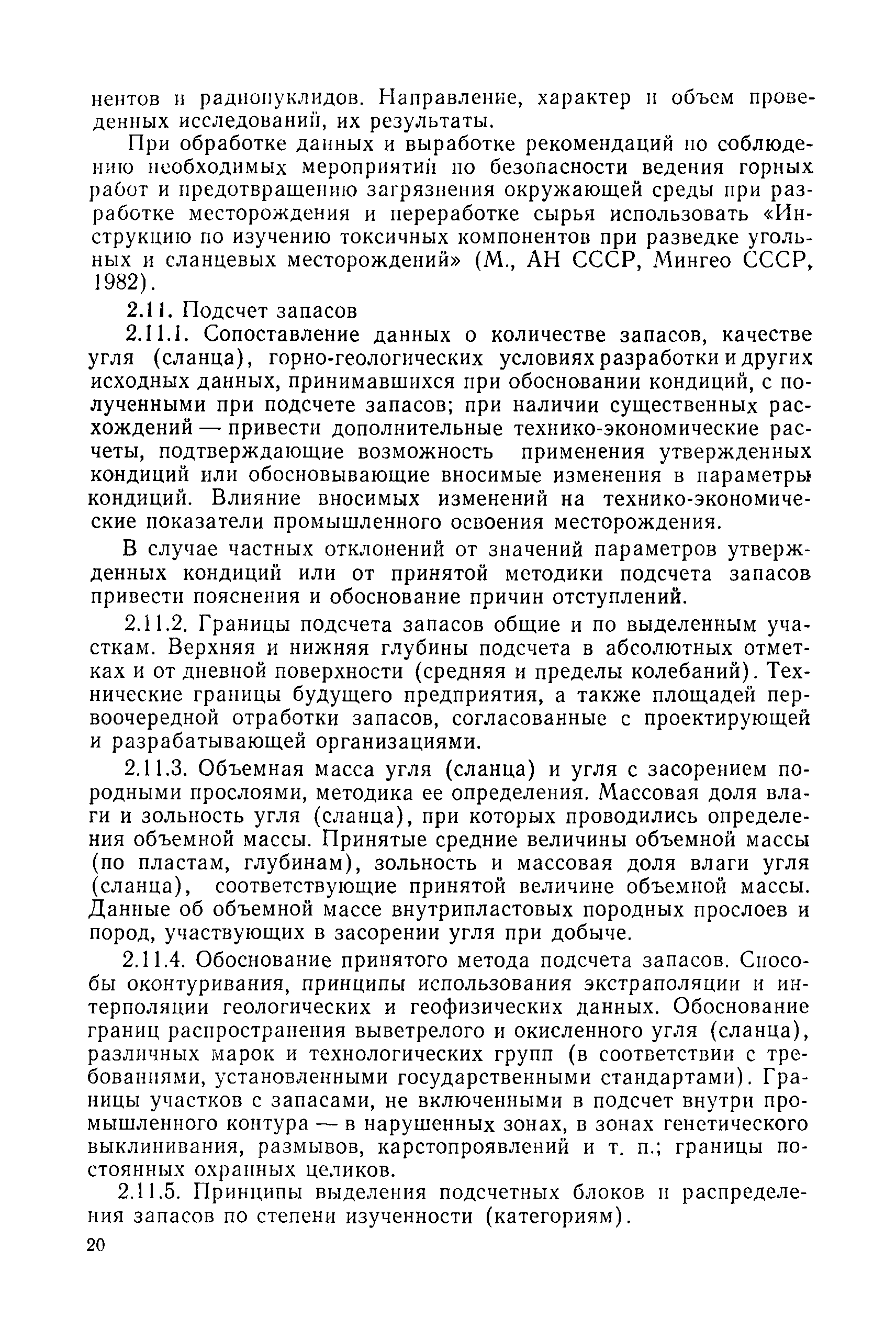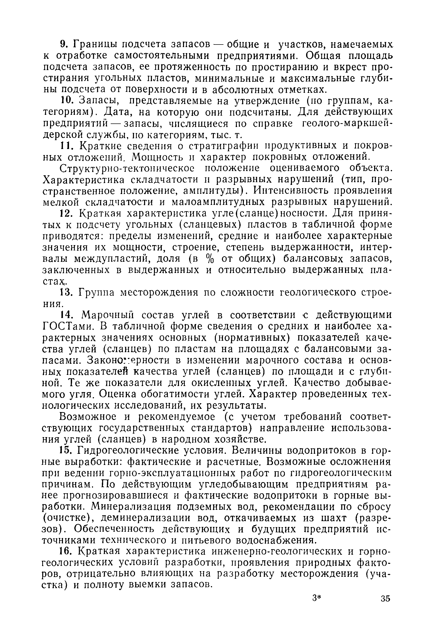| Оглавление: | 1. Порядок представления и рассмотрения материалов 2. Содержание материалов по подсчету разведанных запасов углей (сланцев) на подготовленных для промышленного освоения месторождениях (участках) 3. Содержание материалов по пересчету ранее утвержденных запасов углей (сланцев) на разрабатываемых месторождениях или с дополнительным подсчетом запасов на площадях, прирезаемых к полям действующих шахт (разрезов) 4. Содержание материалов, представляемых с целью апробации запасов, подсчитанных по результатам предварительной разведки 5. Оформление материалов Приложение 1. Рекомендуемая структура авторской справки, прилагаемой к отчетам с подсчетом запасов углей и горючих сланцев, представляемых на рассмотрение ГКЗ СССР (ТКЗ) Приложение 2. Рекомендуемые критерии отнесения угольных (сланцевых) месторождений к различным группам по сложности геологического строения |