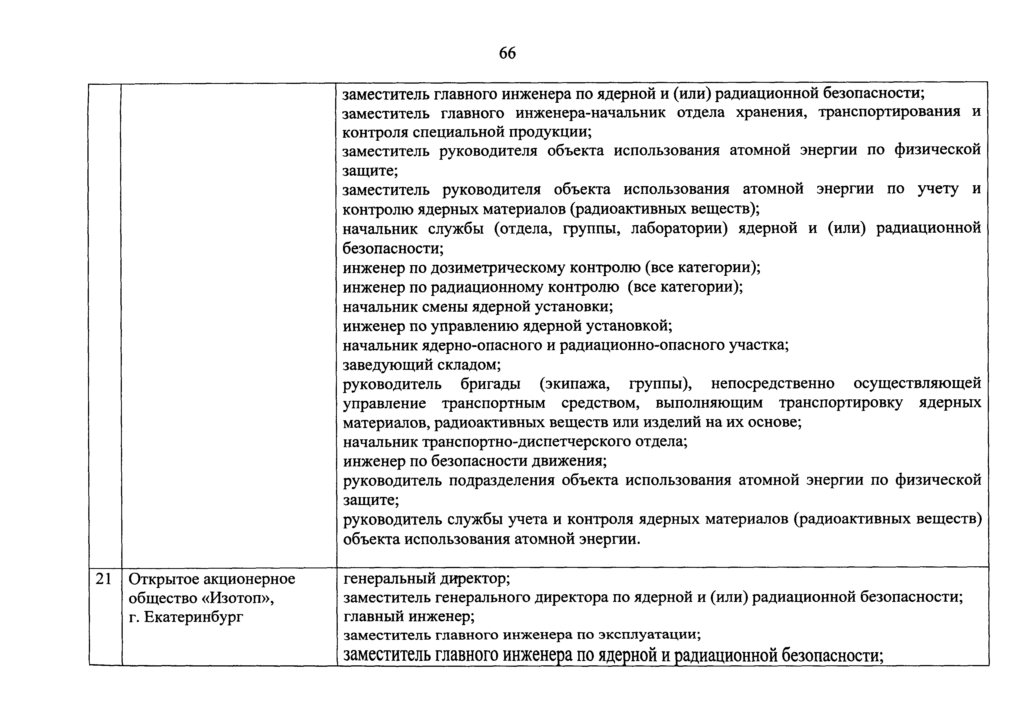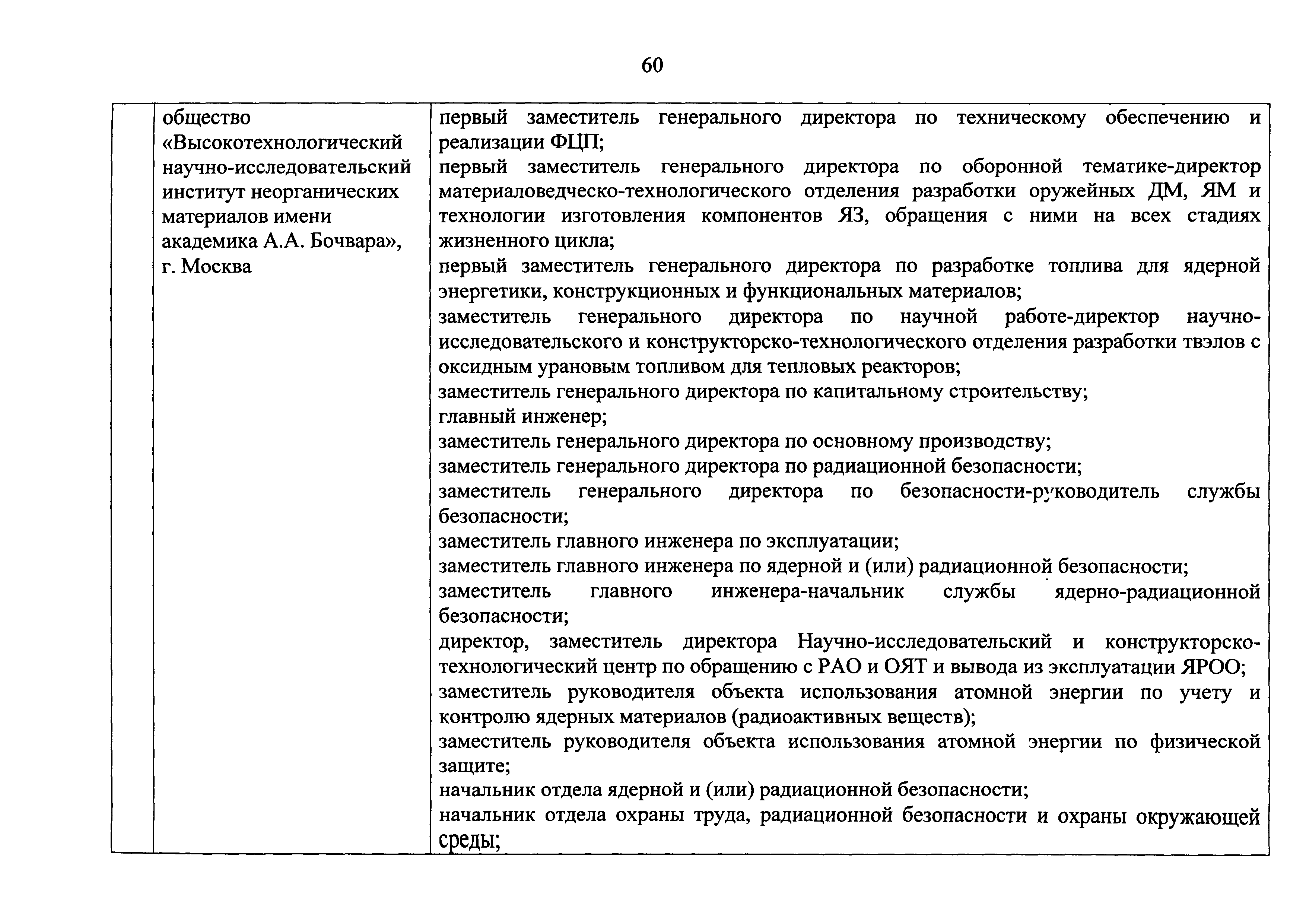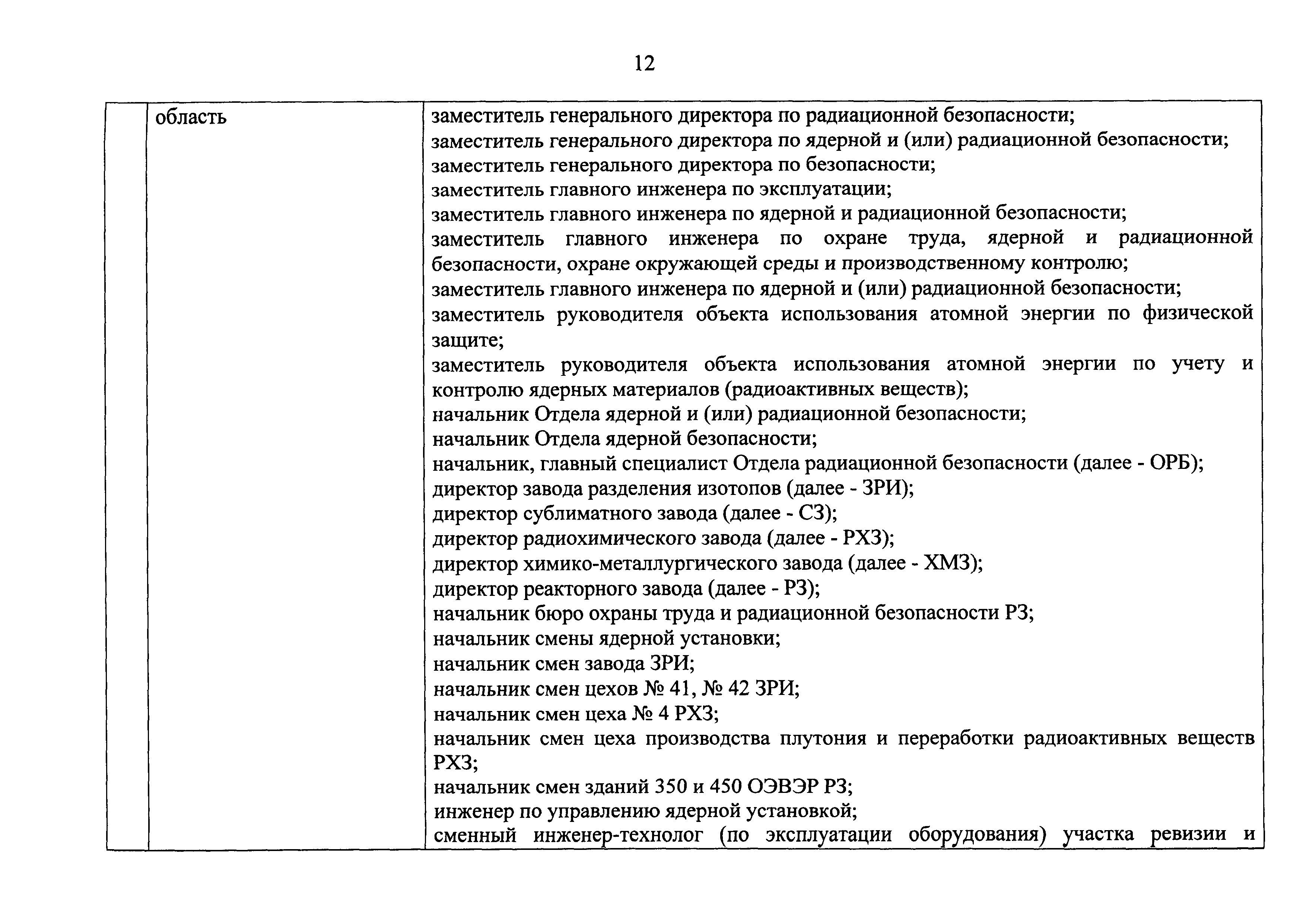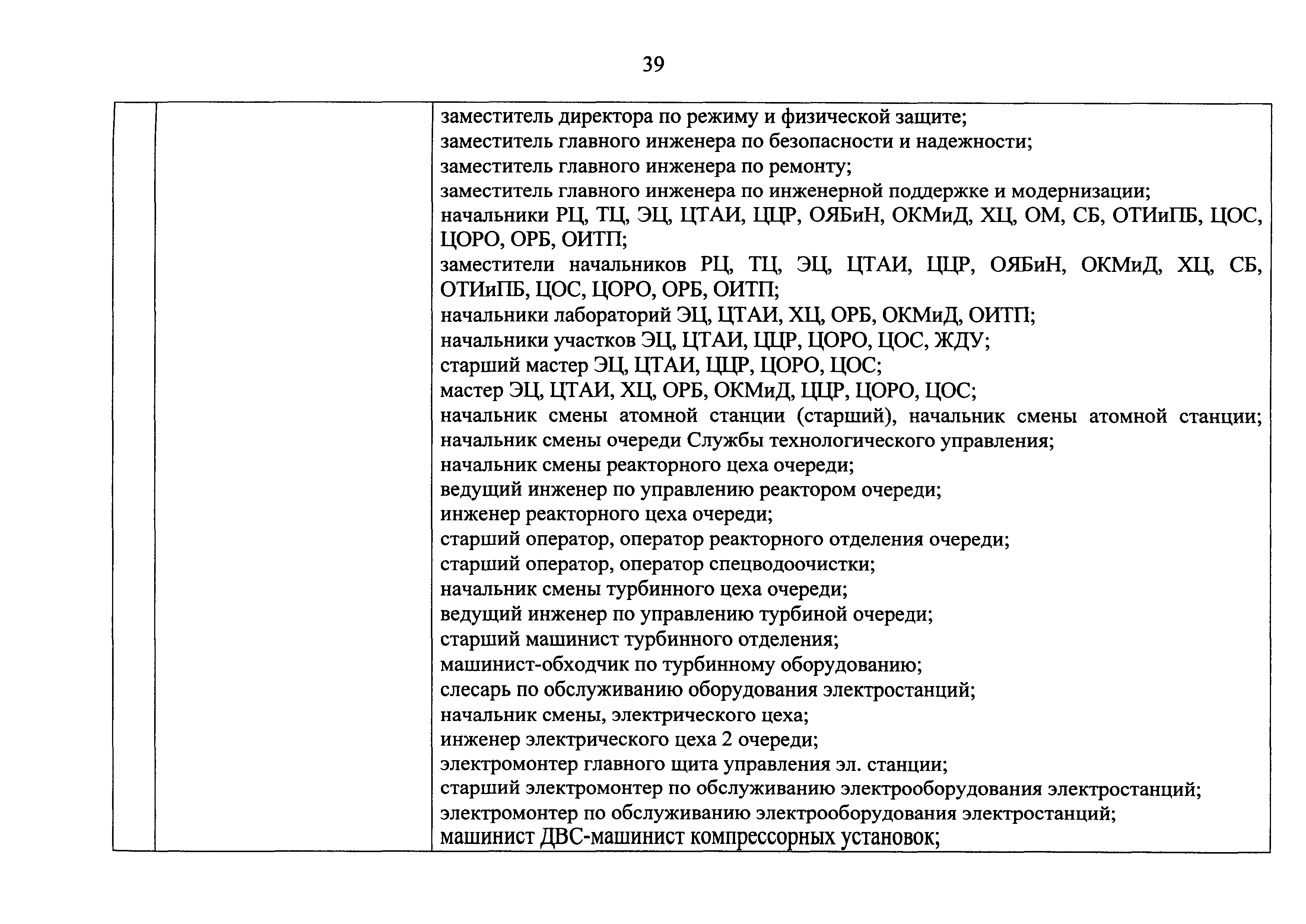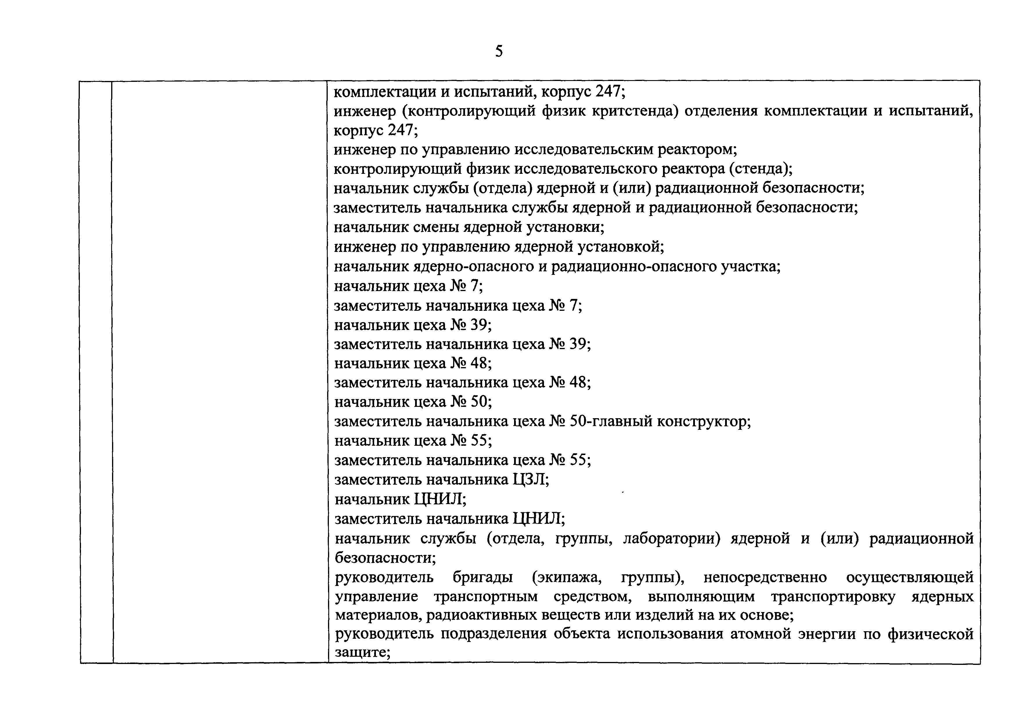 Перечень должностей (профессий) работников эксплуатирующих организаций, в том числе работников, непосредственно обеспечивающих безопасность особо радиационно опасных и ядерно опасных производств и объектов в области использования атомной энергии| Статус: | действует | | Название рус.: | Перечень должностей (профессий) работников эксплуатирующих организаций, в том числе работников, непосредственно обеспечивающих безопасность особо радиационно опасных и ядерно опасных производств и объектов в области использования атомной энергии | | Дата добавления в базу: | 01.02.2020 | | Дата актуализации: | 01.01.2021 | | Дата введения: | 04.04.2014 | | Утверждён: | 18.12.2013 Государственная корпорация по атомной энергии РОСАТОМ (1/21-НПА)