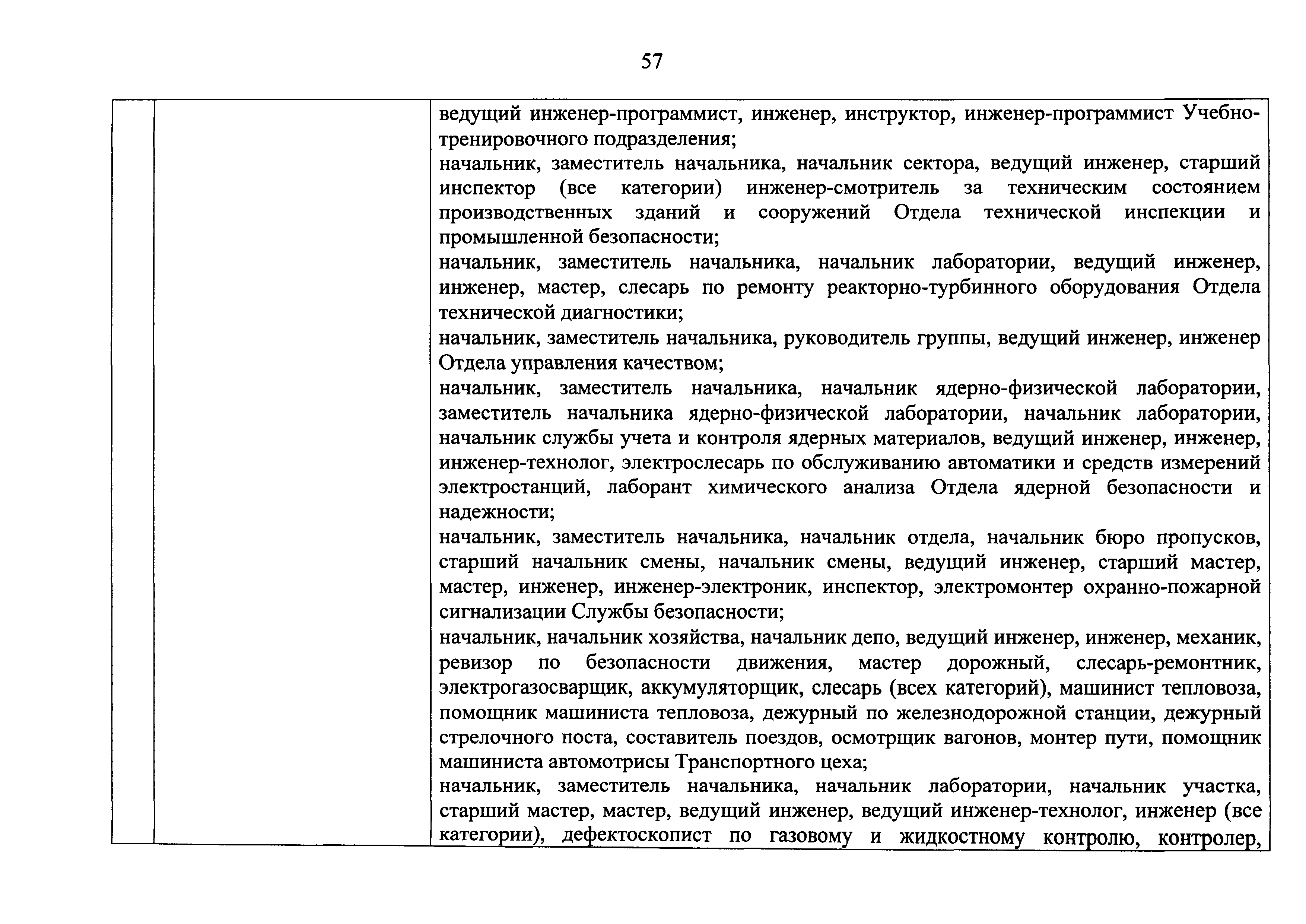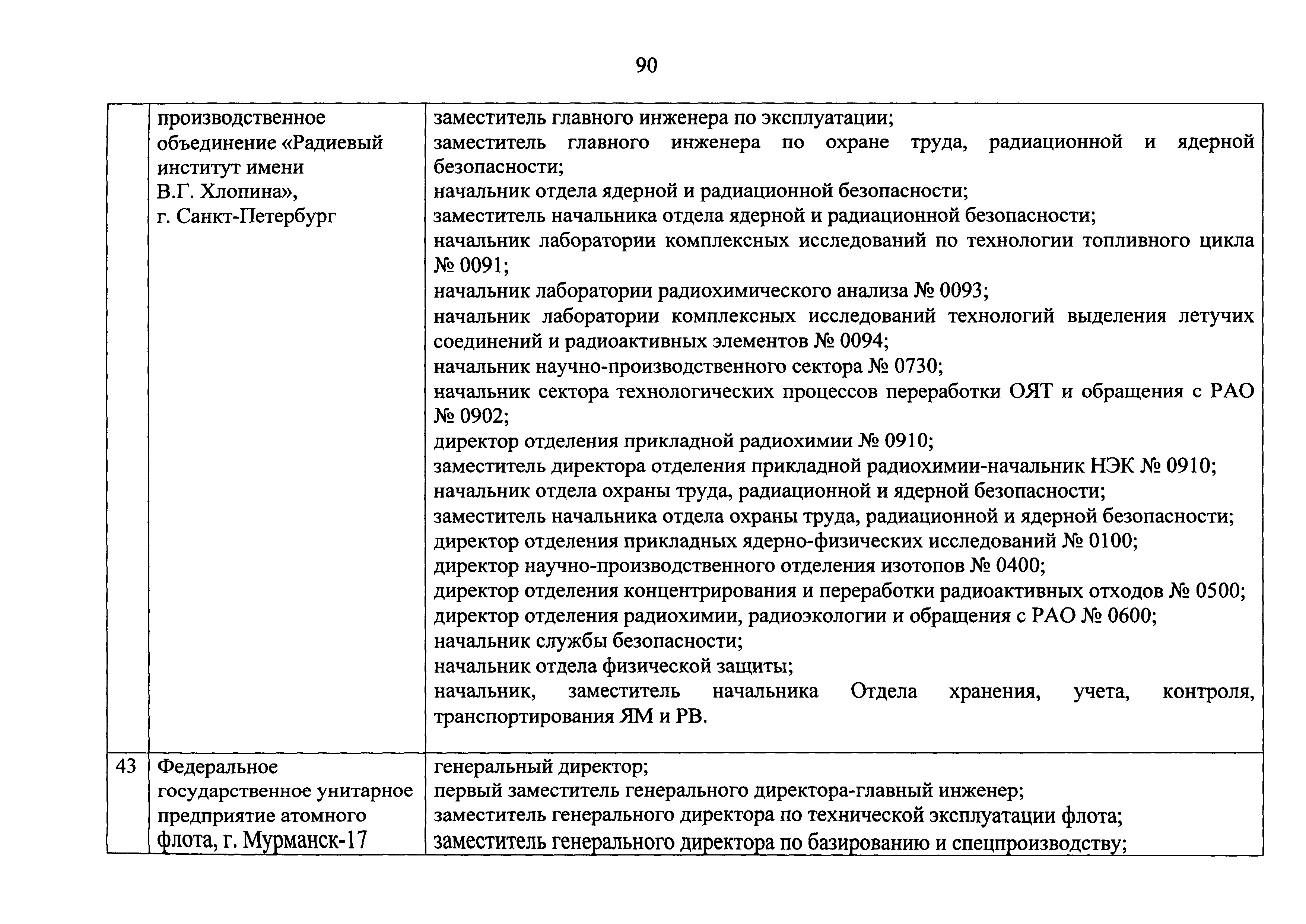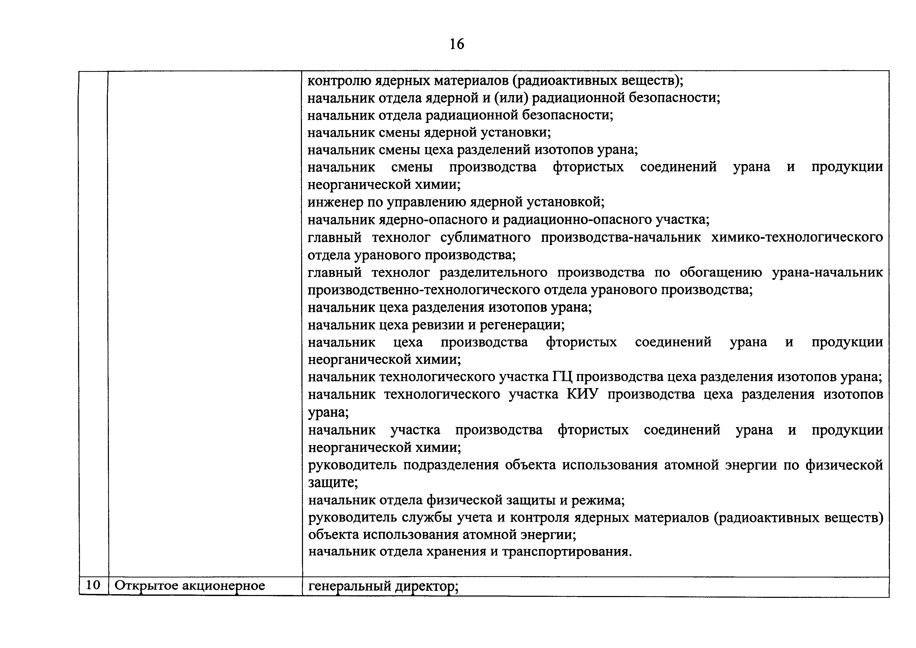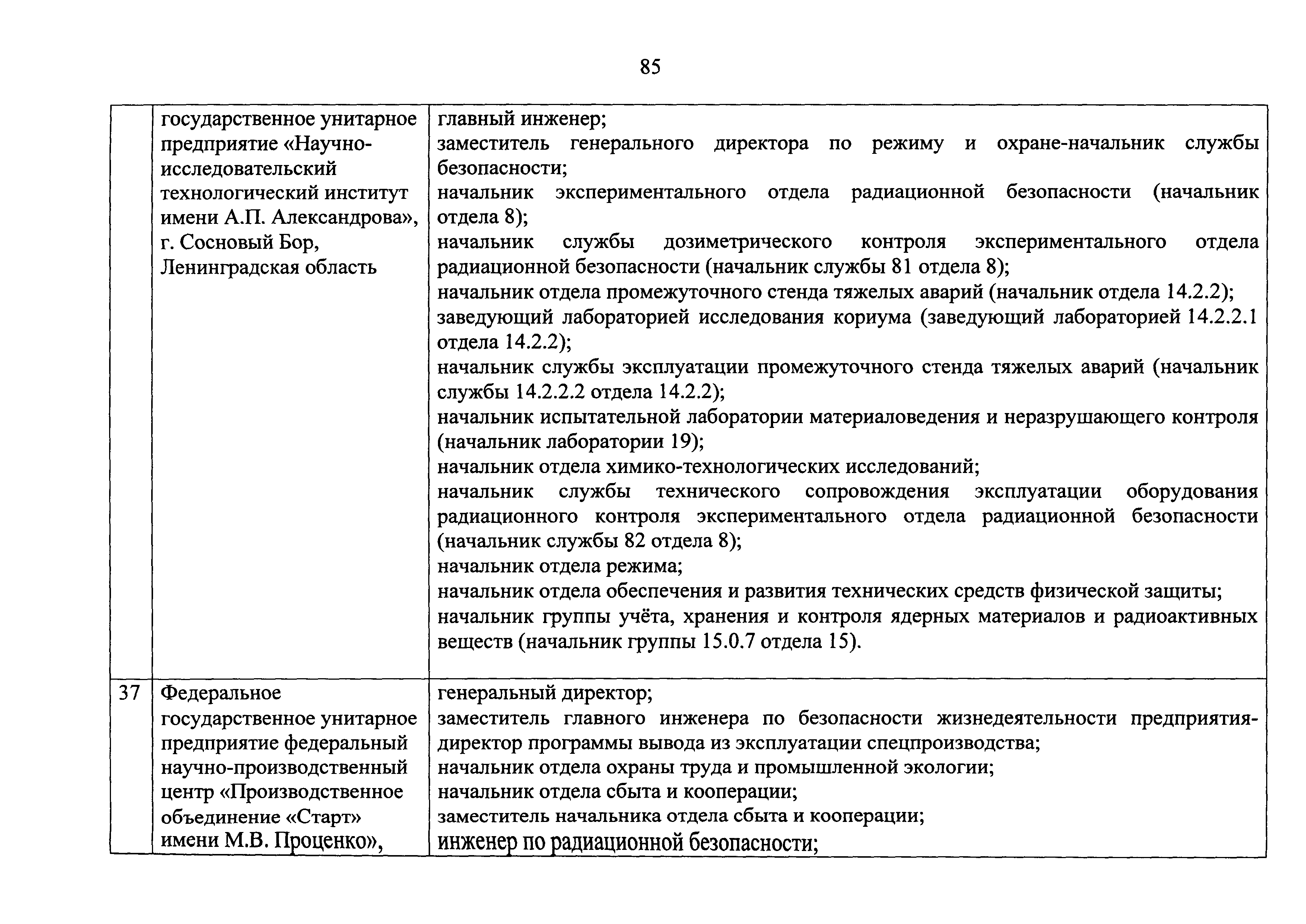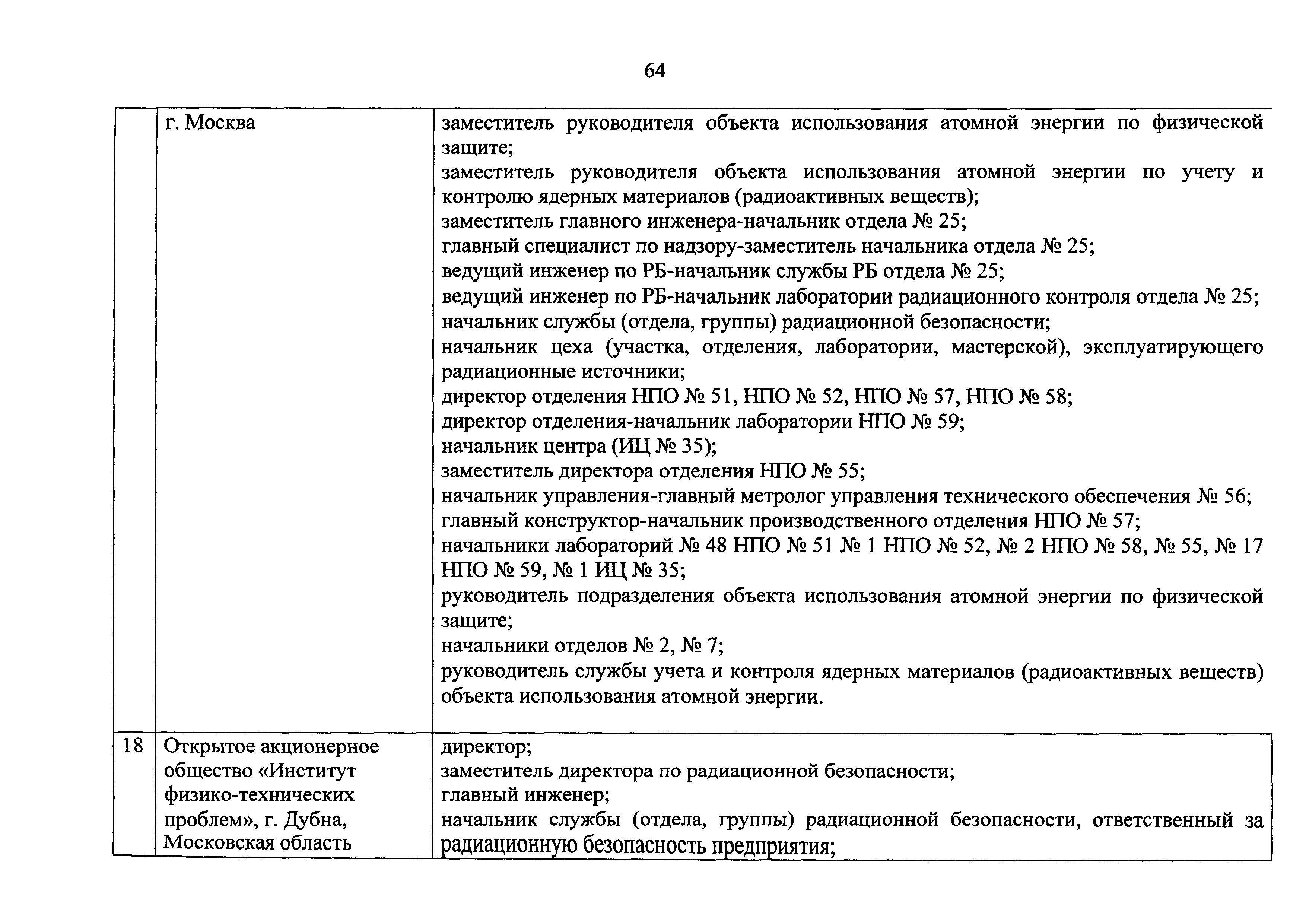 Перечень должностей (профессий) работников эксплуатирующих организаций, в том числе работников, непосредственно обеспечивающих безопасность особо радиационно опасных и ядерно опасных производств и объектов в области использования атомной энергии| Статус: | действует | | Название рус.: | Перечень должностей (профессий) работников эксплуатирующих организаций, в том числе работников, непосредственно обеспечивающих безопасность особо радиационно опасных и ядерно опасных производств и объектов в области использования атомной энергии | | Дата добавления в базу: | 01.02.2020 | | Дата актуализации: | 01.01.2021 | | Дата введения: | 04.04.2014 | | Утверждён: | 18.12.2013 Государственная корпорация по атомной энергии РОСАТОМ (1/21-НПА)